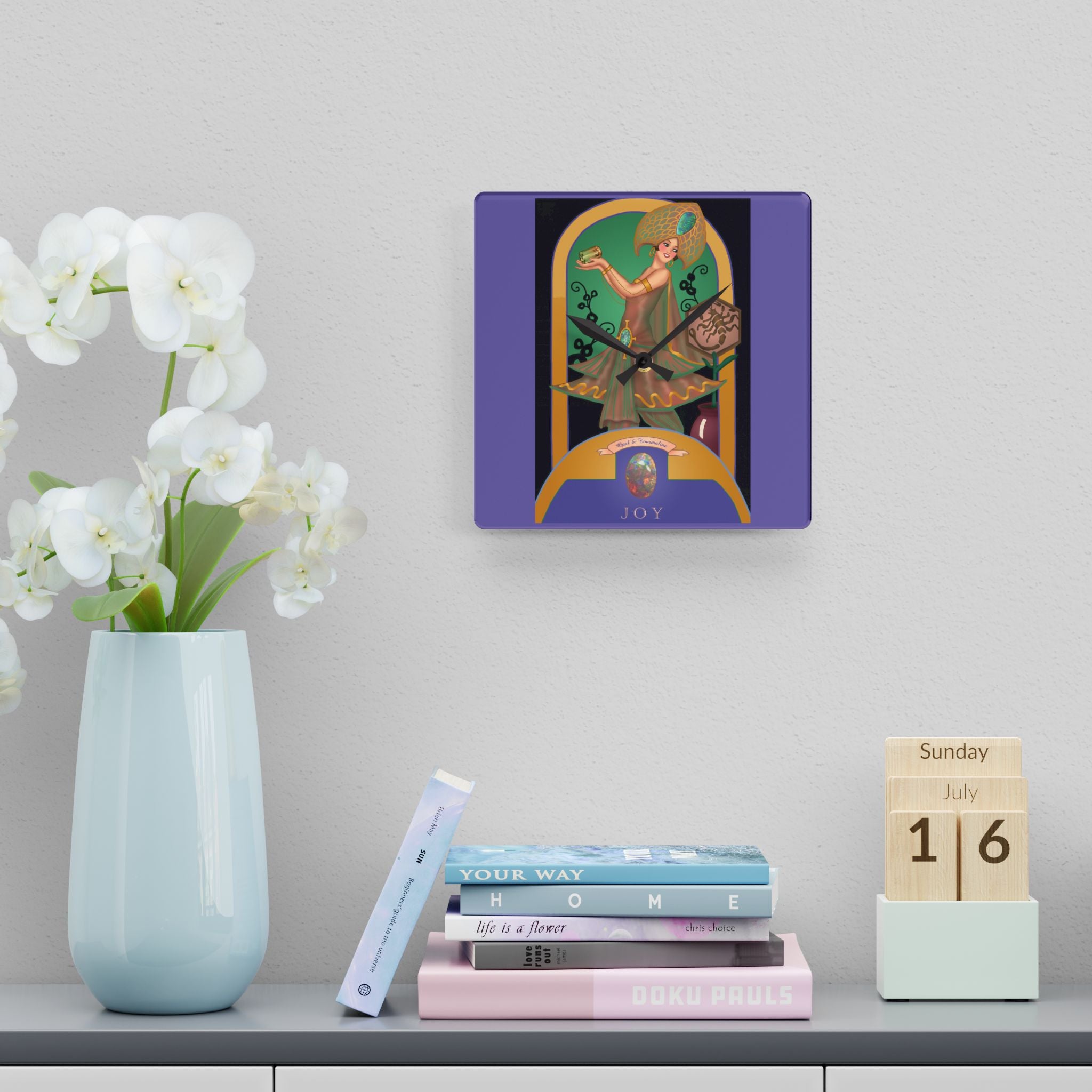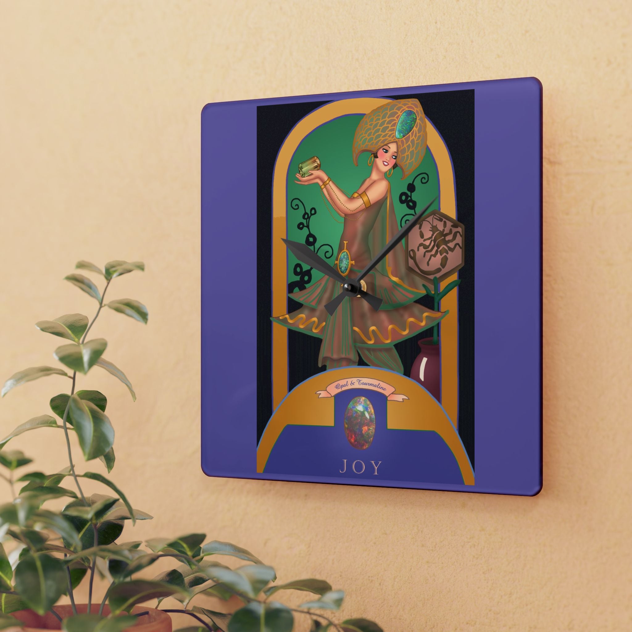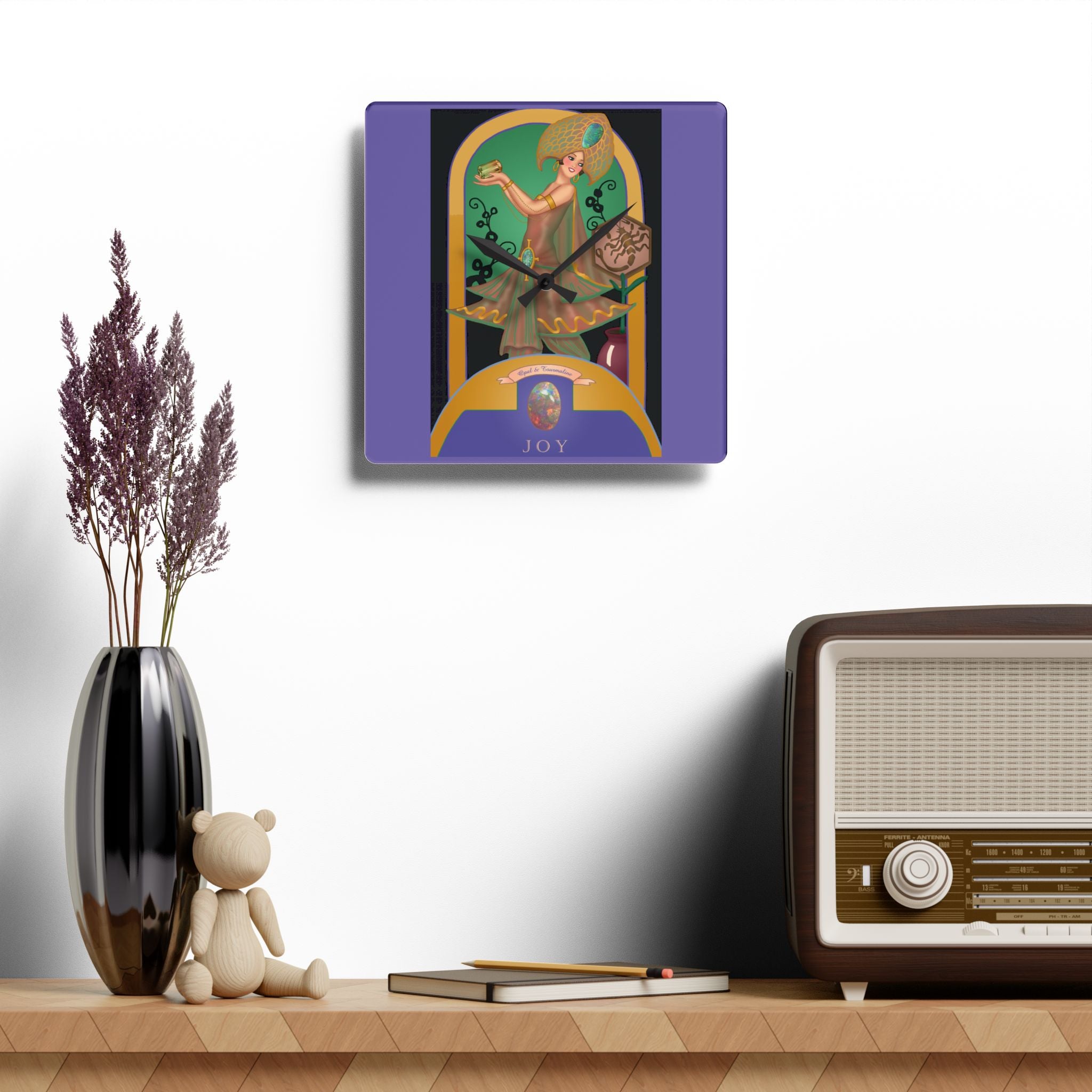 October & Opal, Tourmaline Zodiac Acrylic Wall Clock captures the iridescent beauty and mystical aura of October’s dual birthstones. Made from sleek, durable acrylic that resembles glass, this zodiac clock combines artistic heritage with modern craftsmanship—perfect as an elegant accent or a meaningful gift for October birthdays.