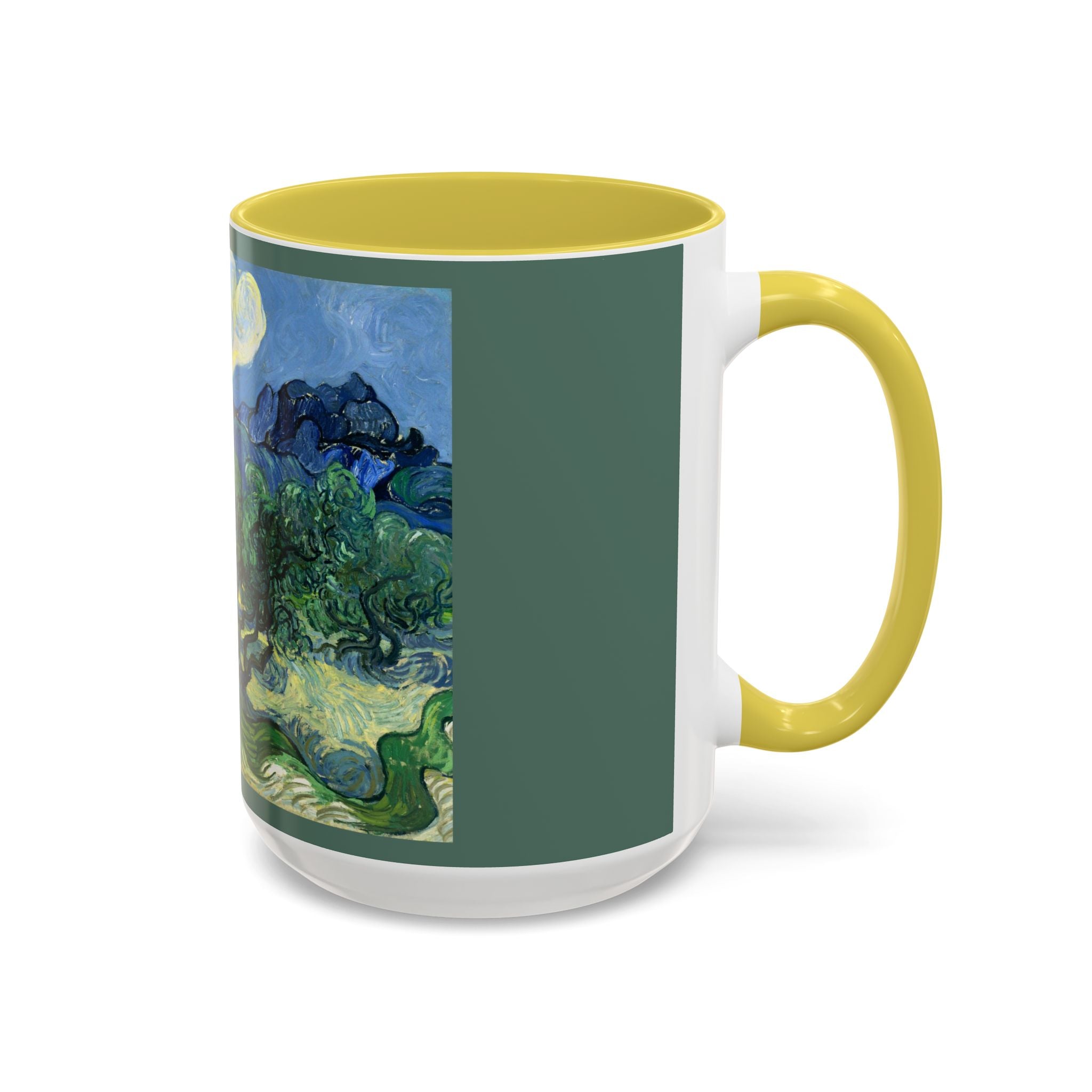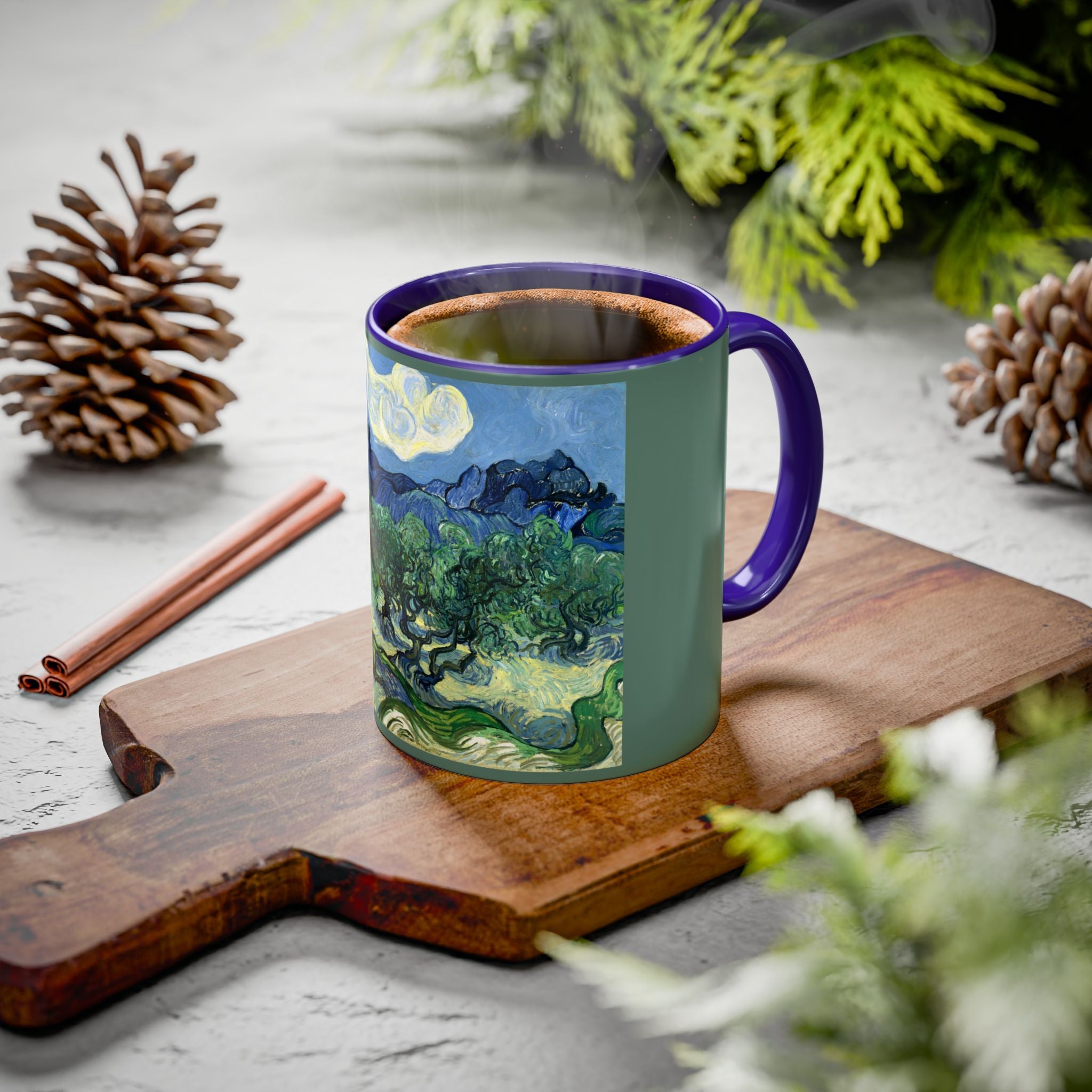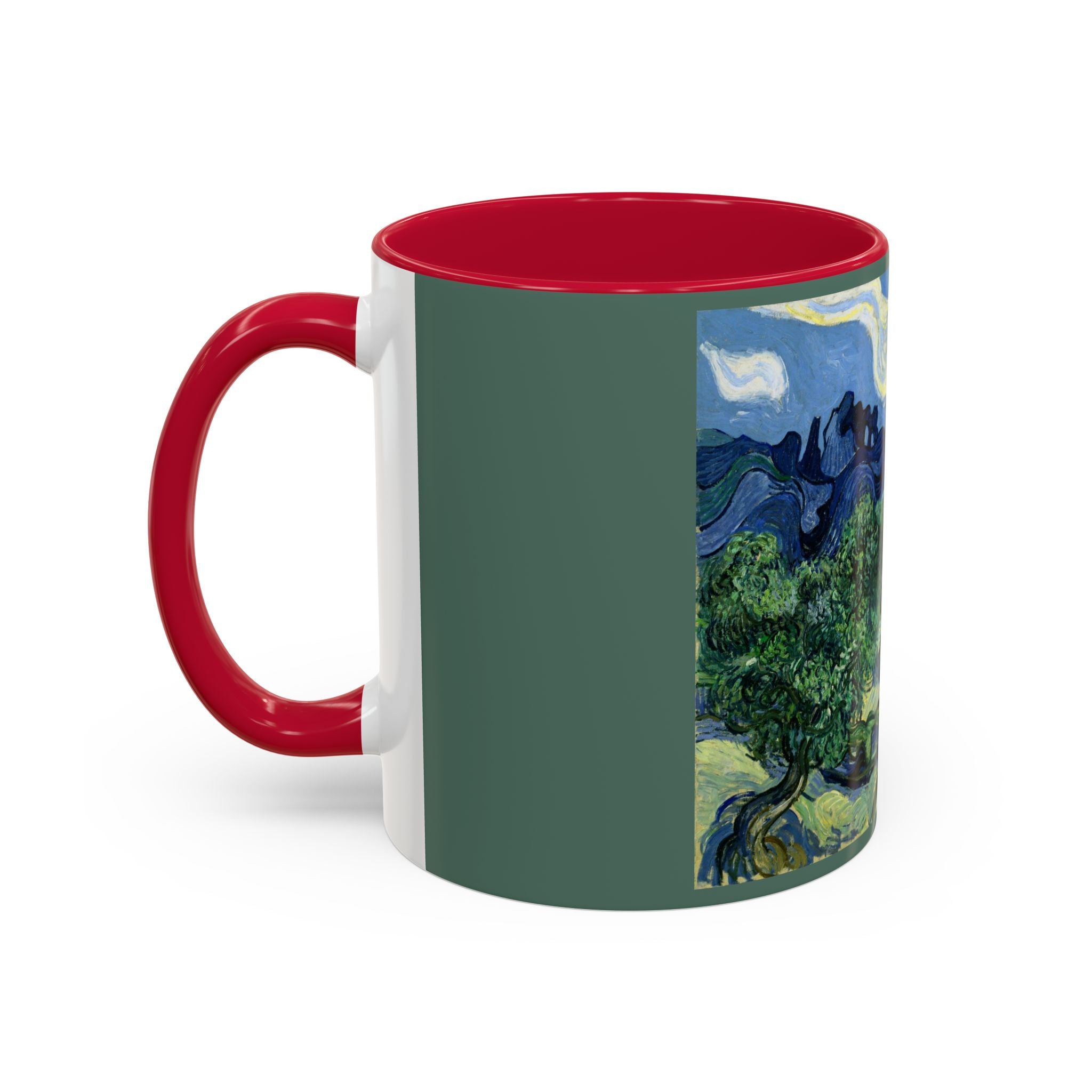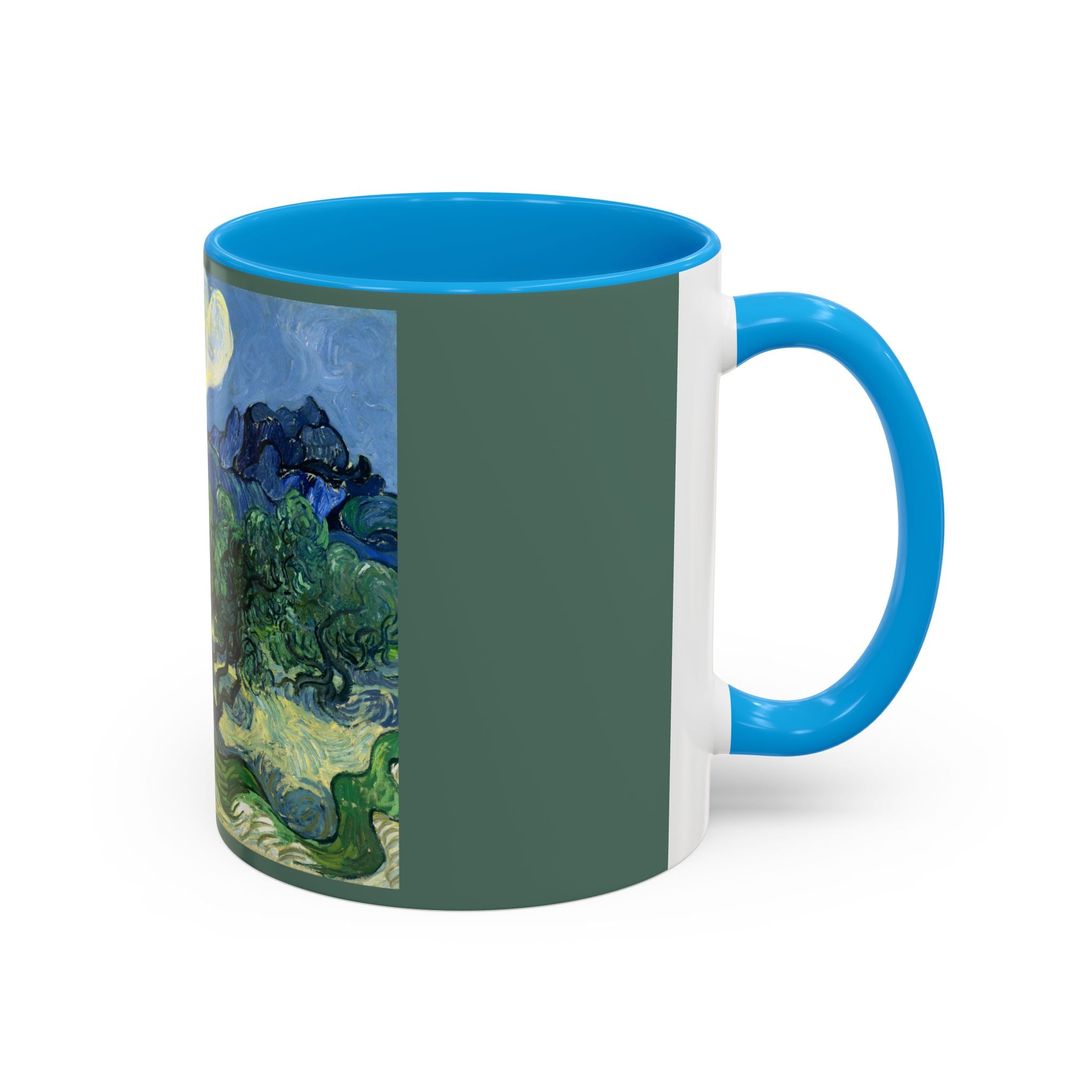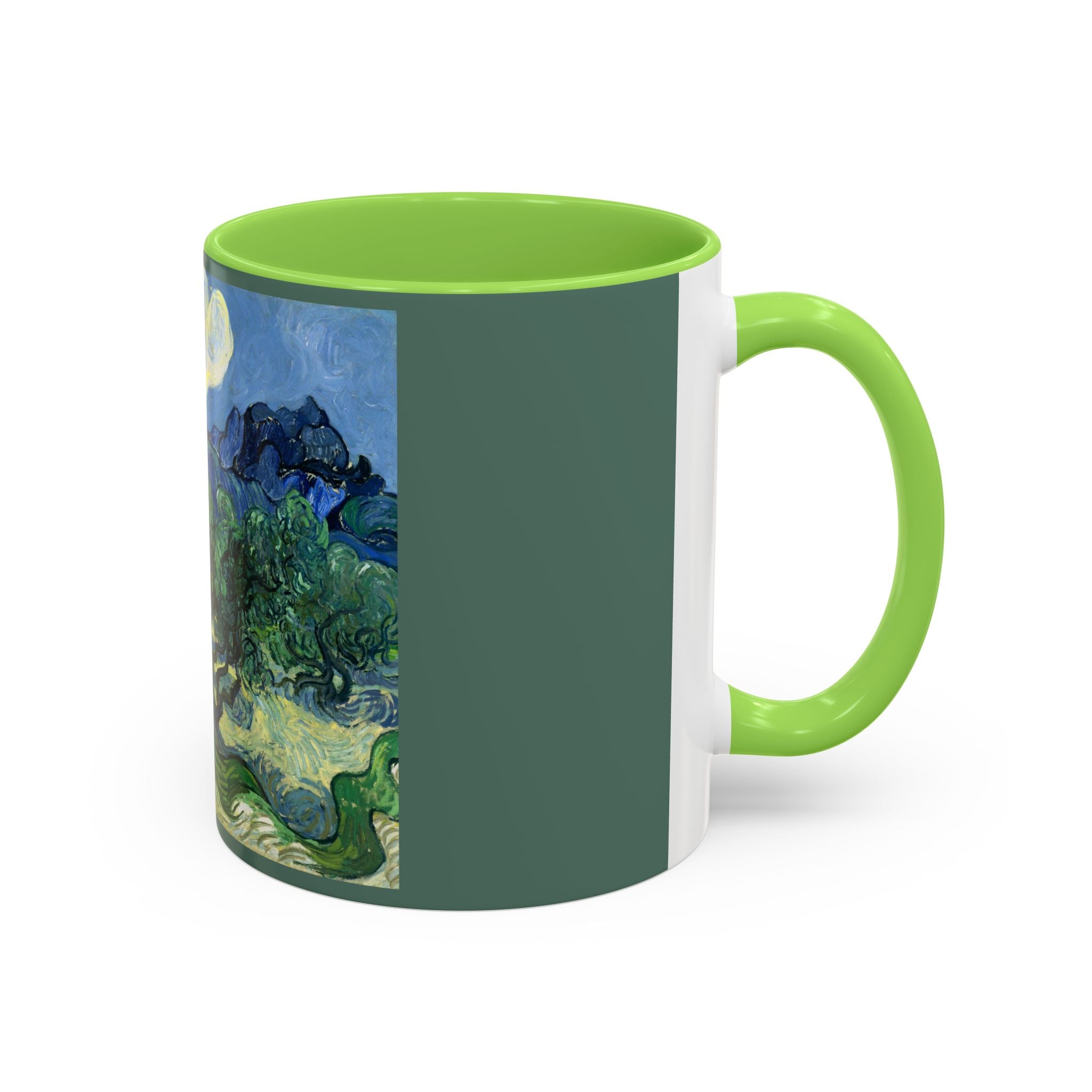 Mugs are a kitchen essential, and when infused with a personalized touch, they transform into cherished favorites. These mugs, offered in 12 vibrant color choices, can hold up to 11oz of your preferred rejuvenating beverage and feature a colored handle and interior. The glossy finish adds an elegant accent that beautifully complements the high-fidelity artwork print, making them not only a delightful addition to your kitchen but also a fantastic choice for thoughtful gifts.