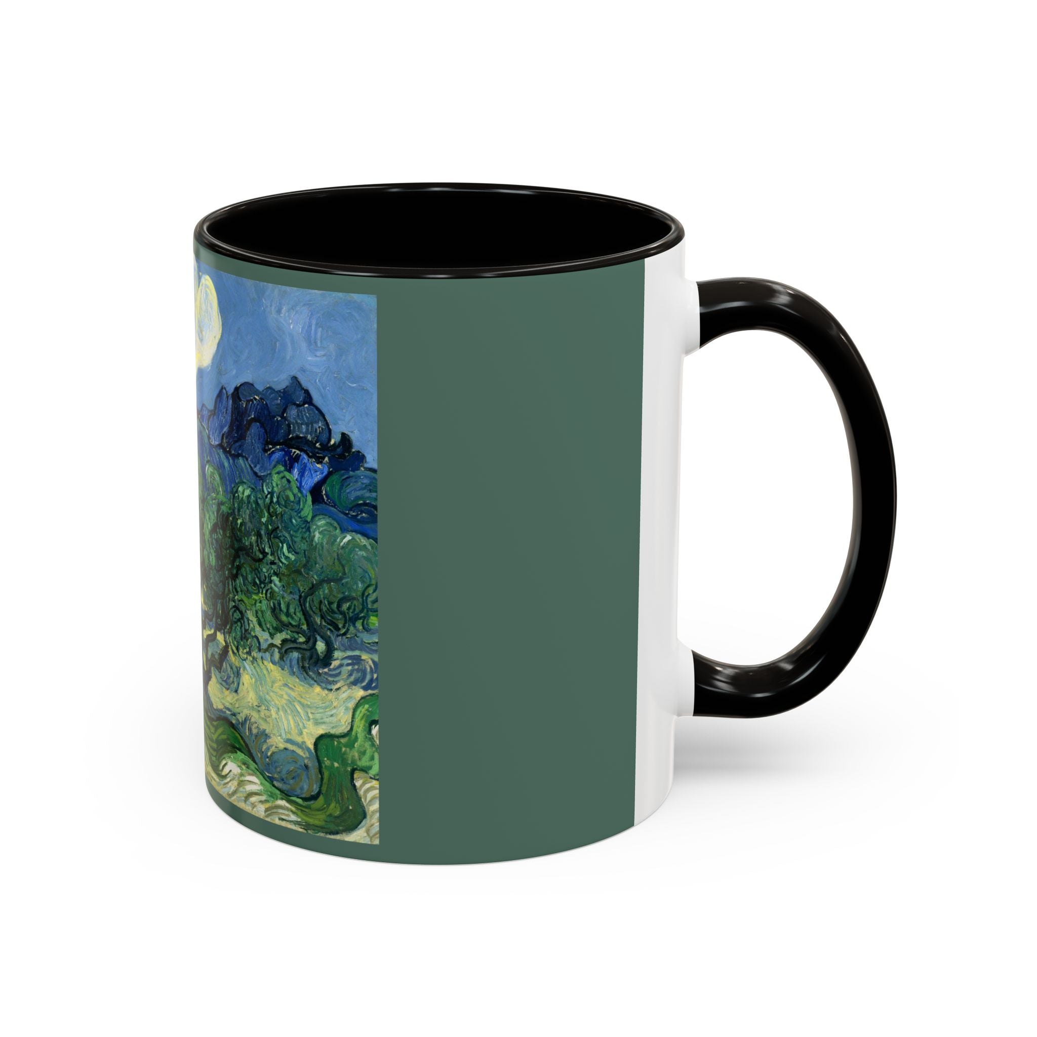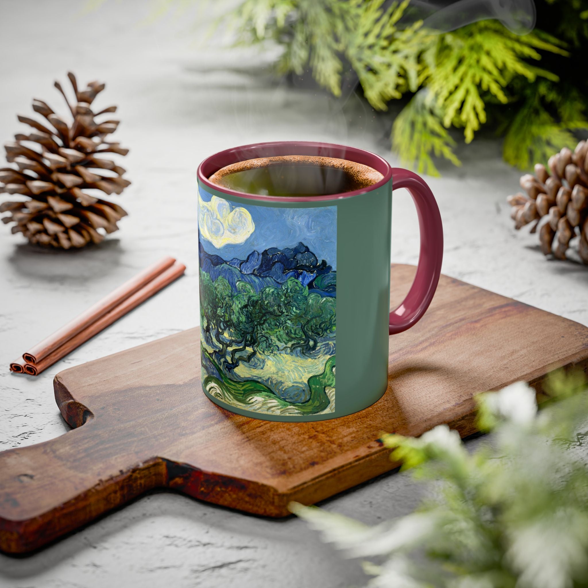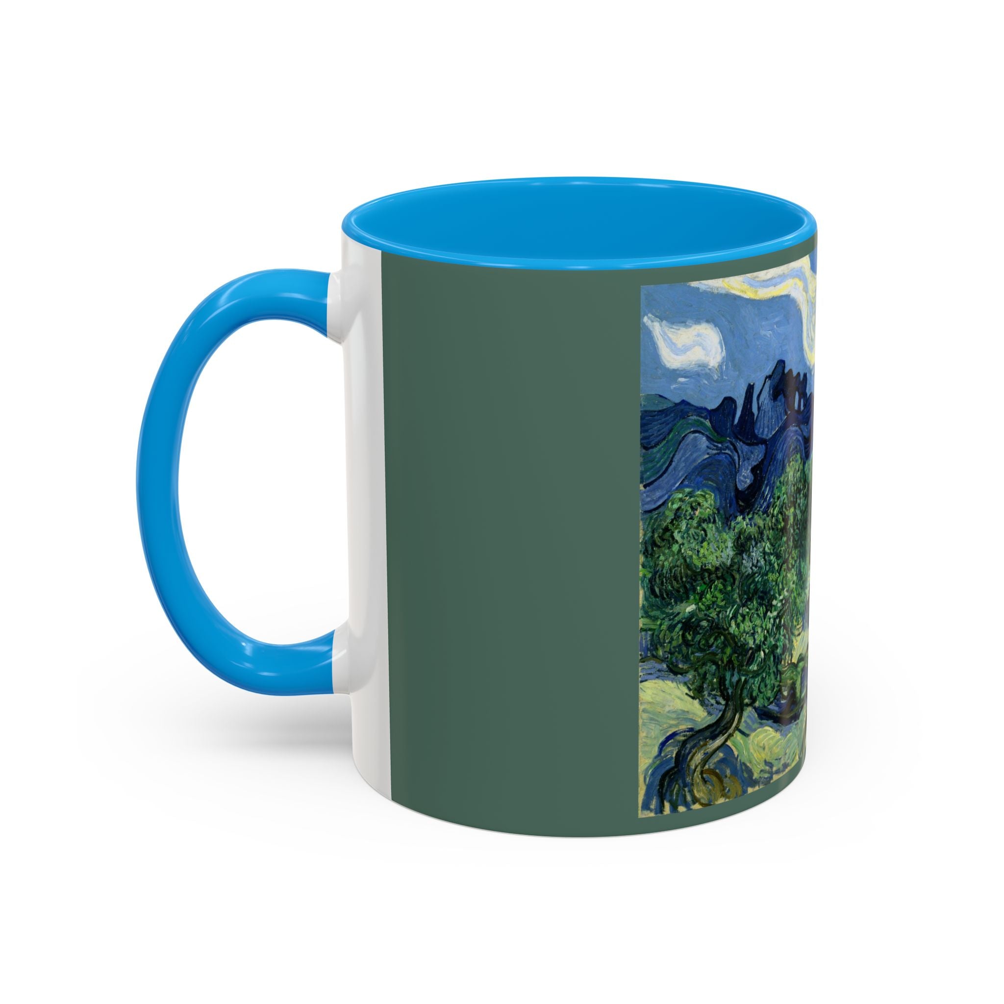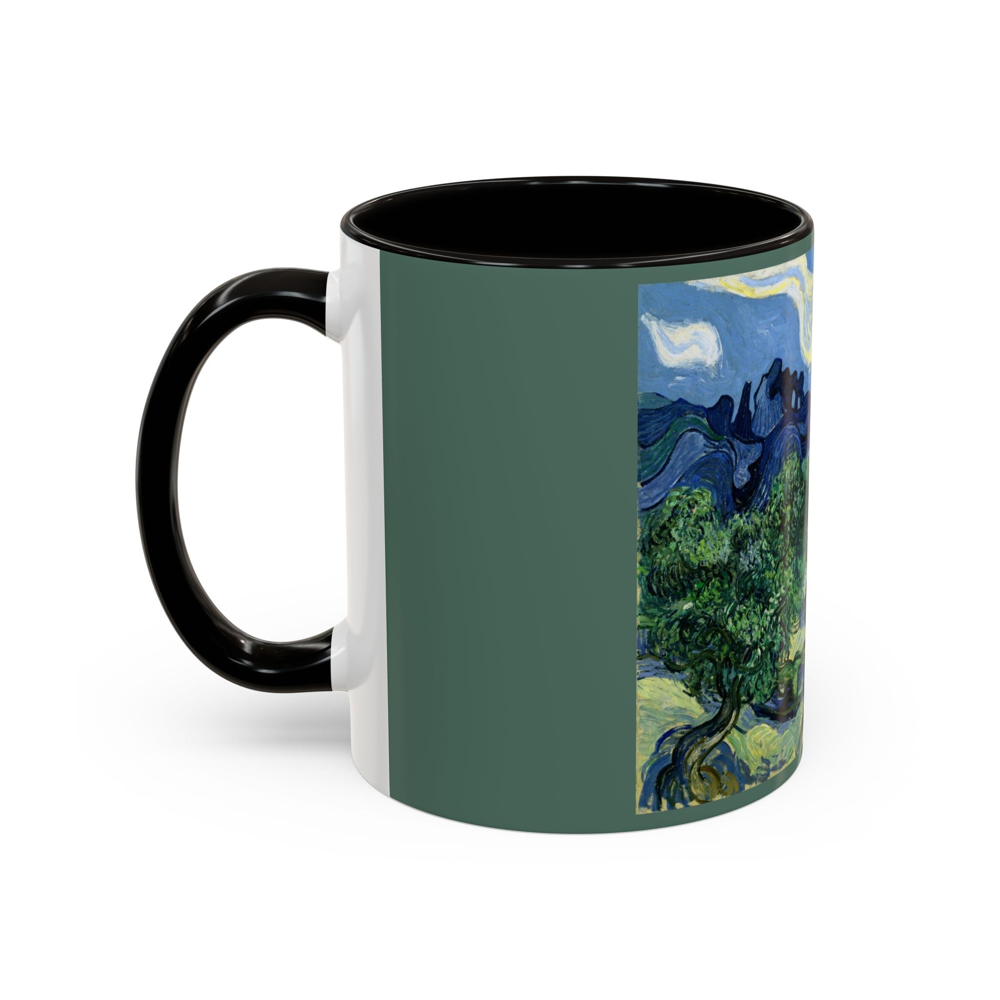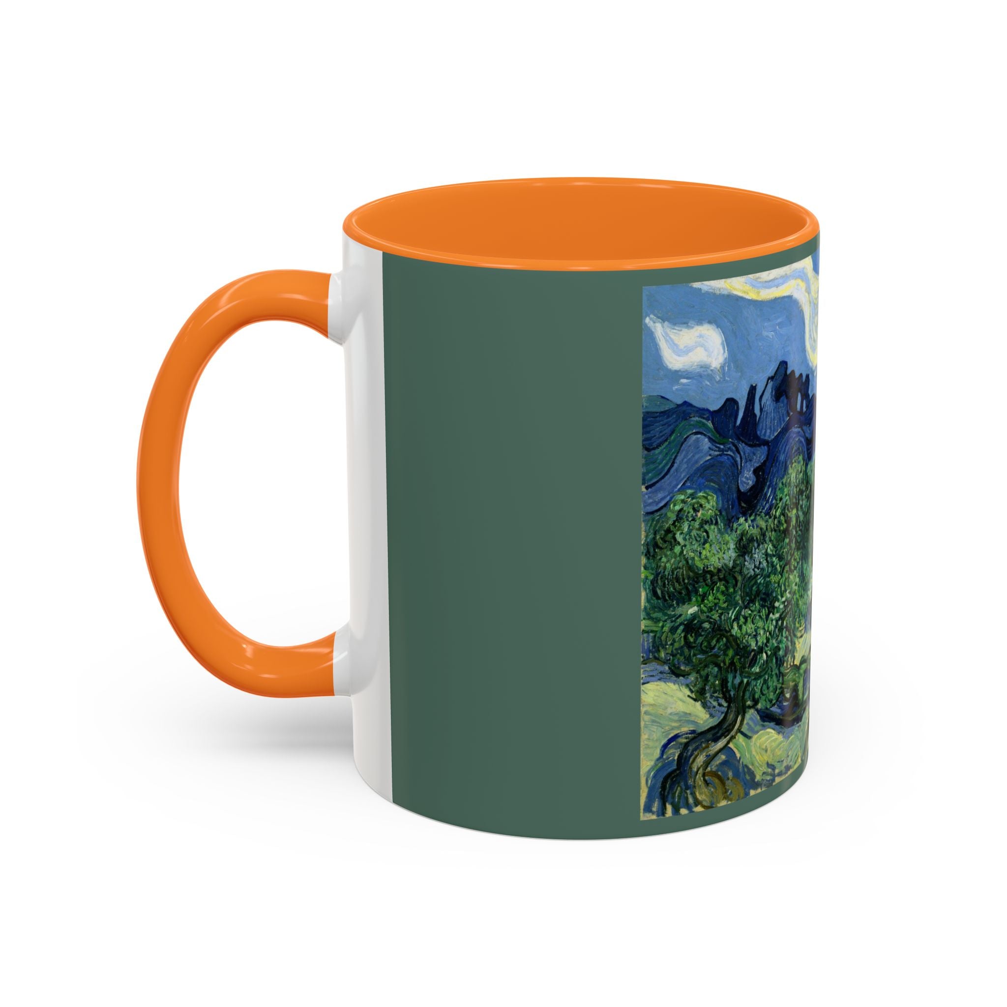 Mugs are a kitchen essential, and when infused with a personalized touch, they transform into cherished favorites. These mugs, offered in 12 vibrant color choices, can hold up to 11oz of your preferred rejuvenating beverage and feature a colored handle and interior. The glossy finish adds an elegant accent that beautifully complements the high-fidelity artwork print, making them not only a delightful addition to your kitchen but also a fantastic choice for thoughtful gifts.