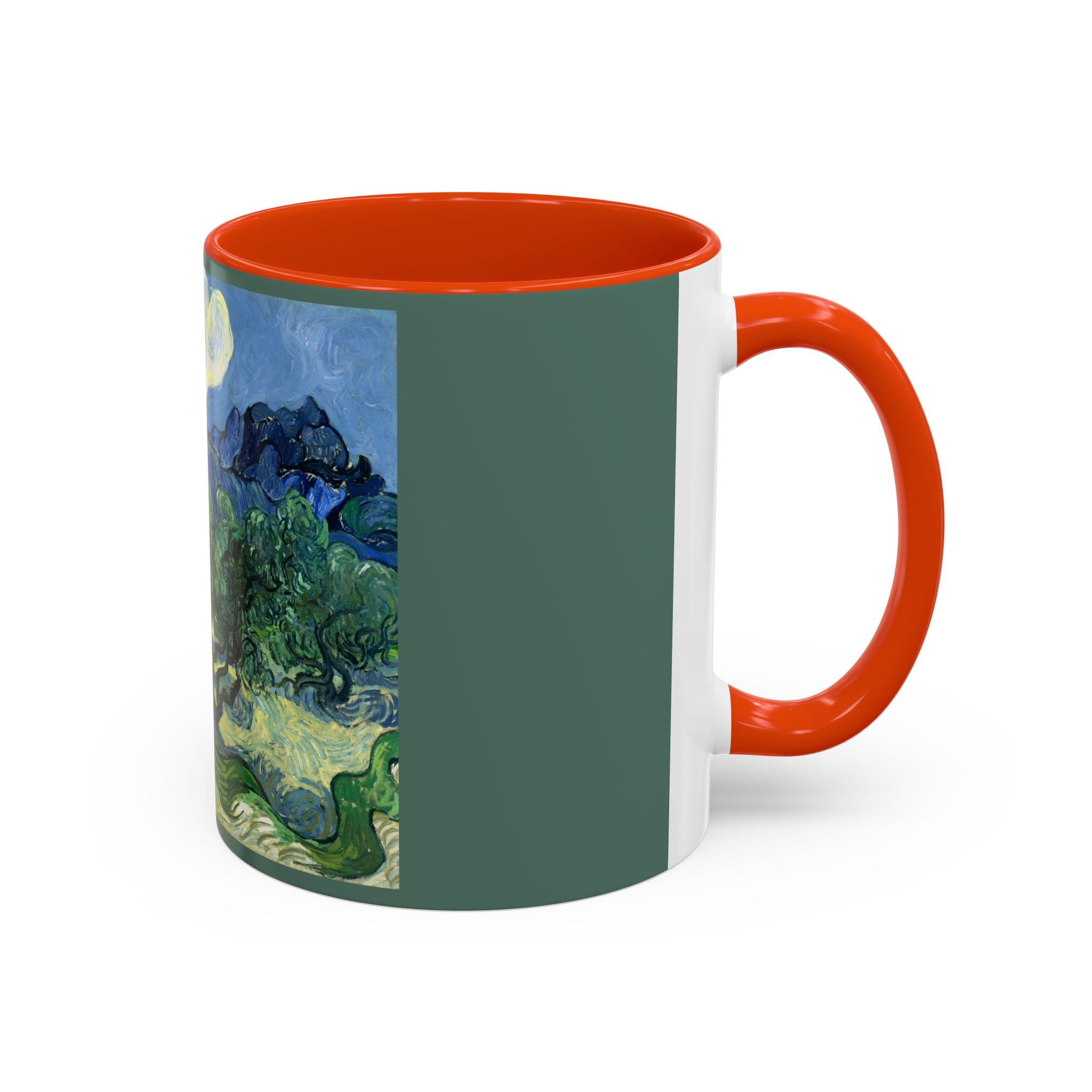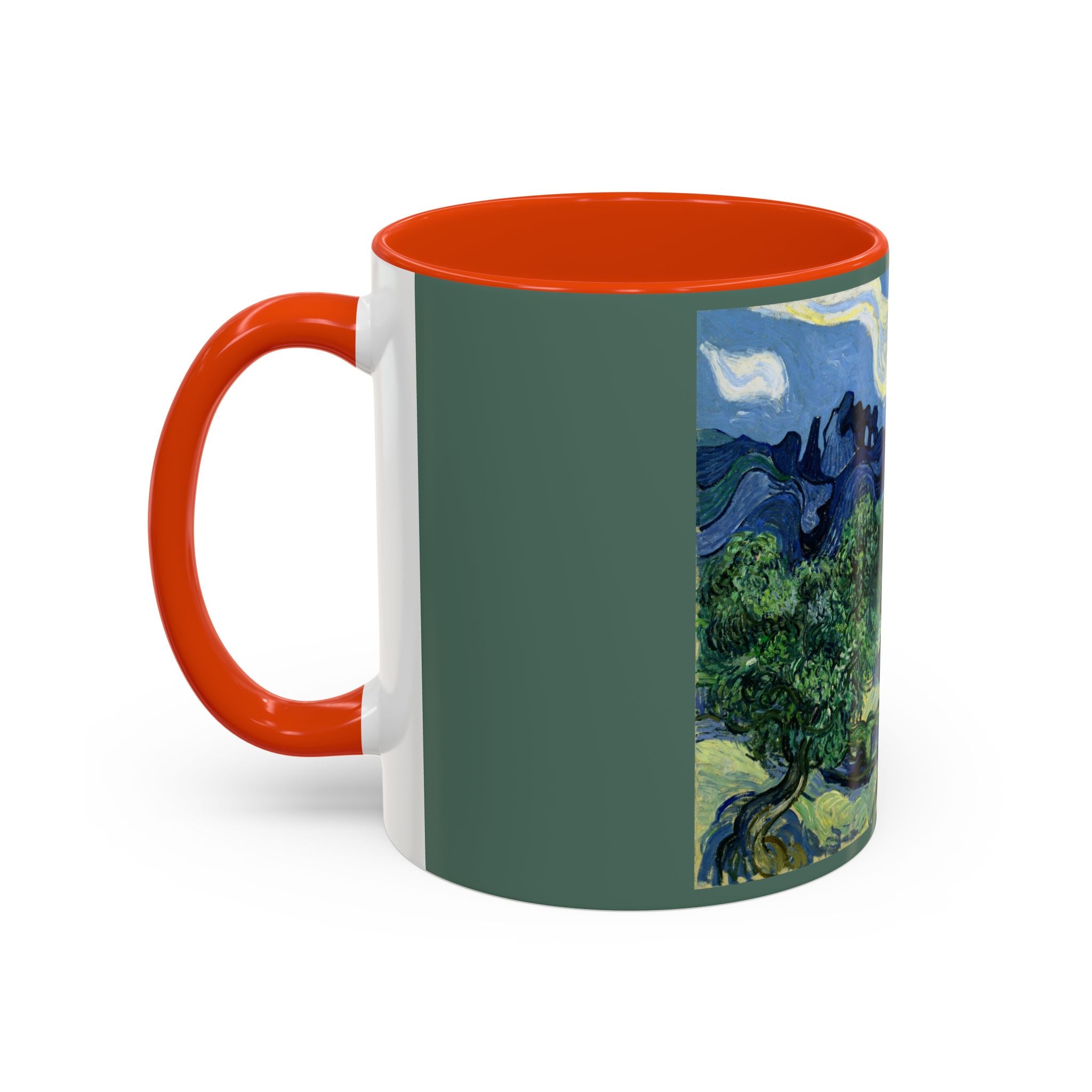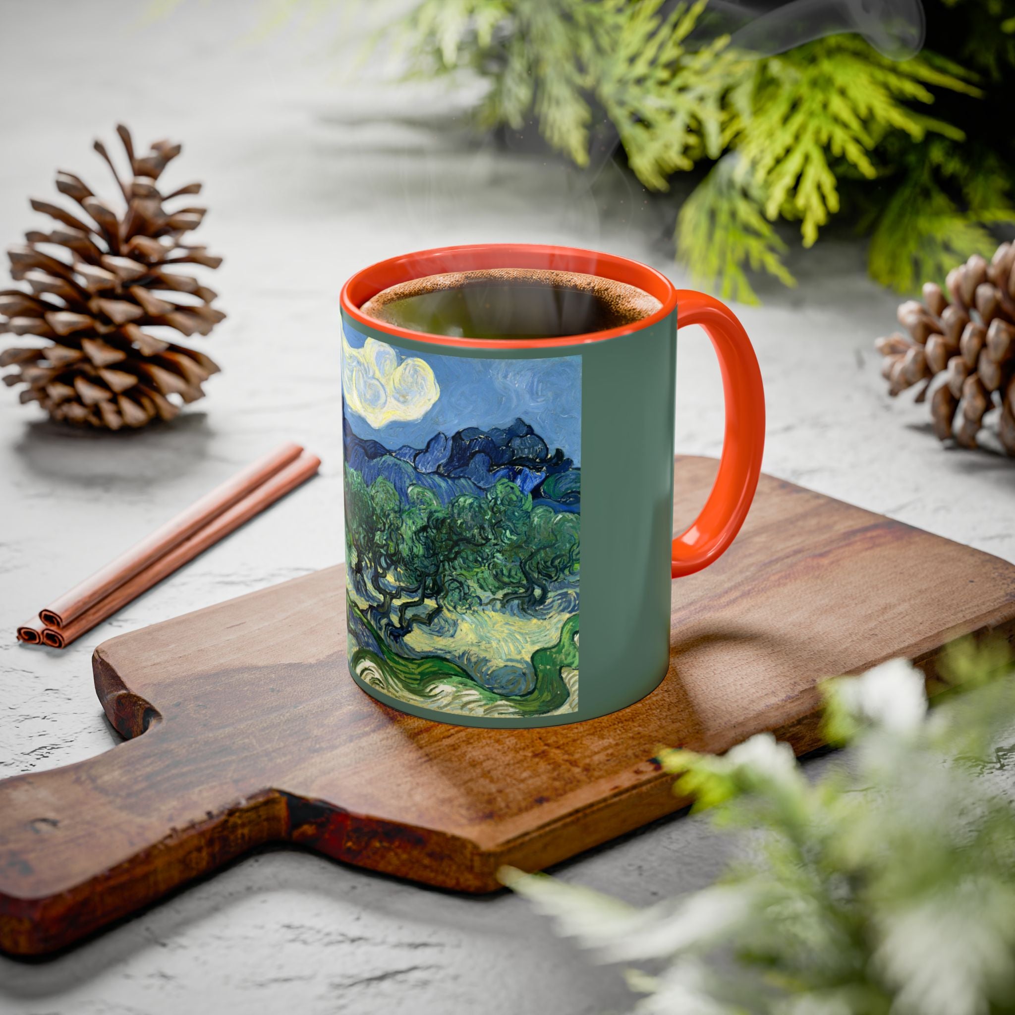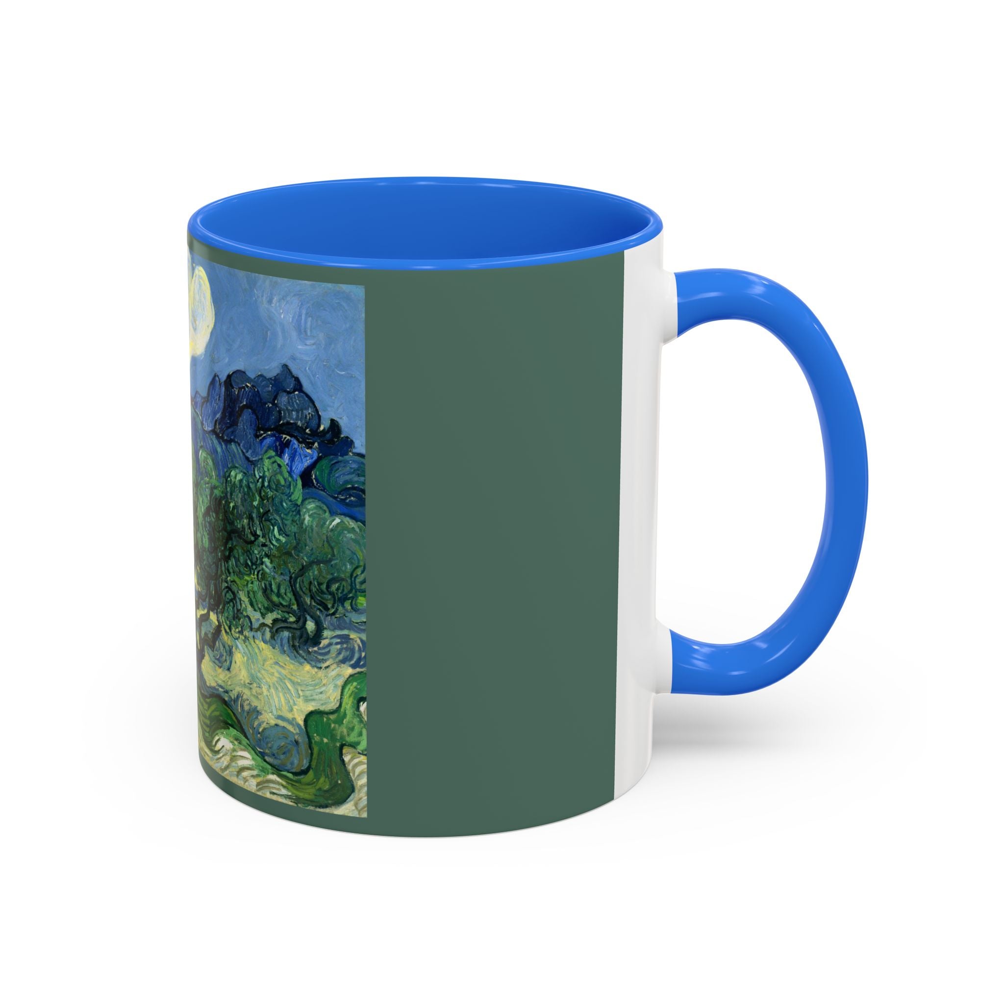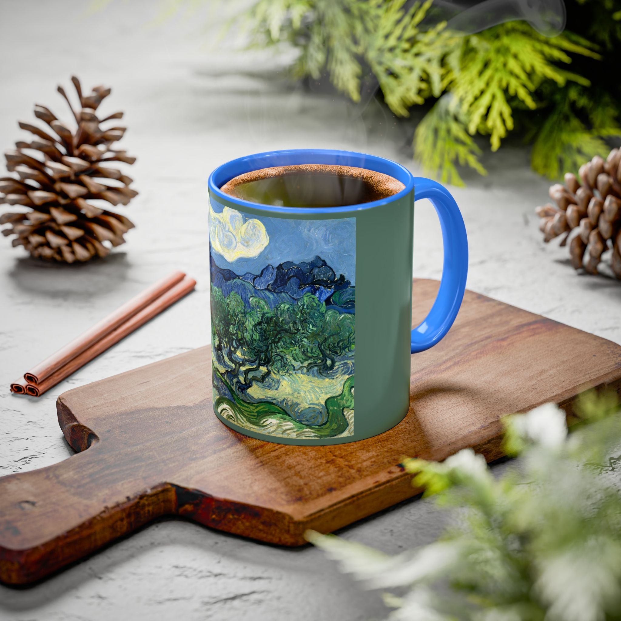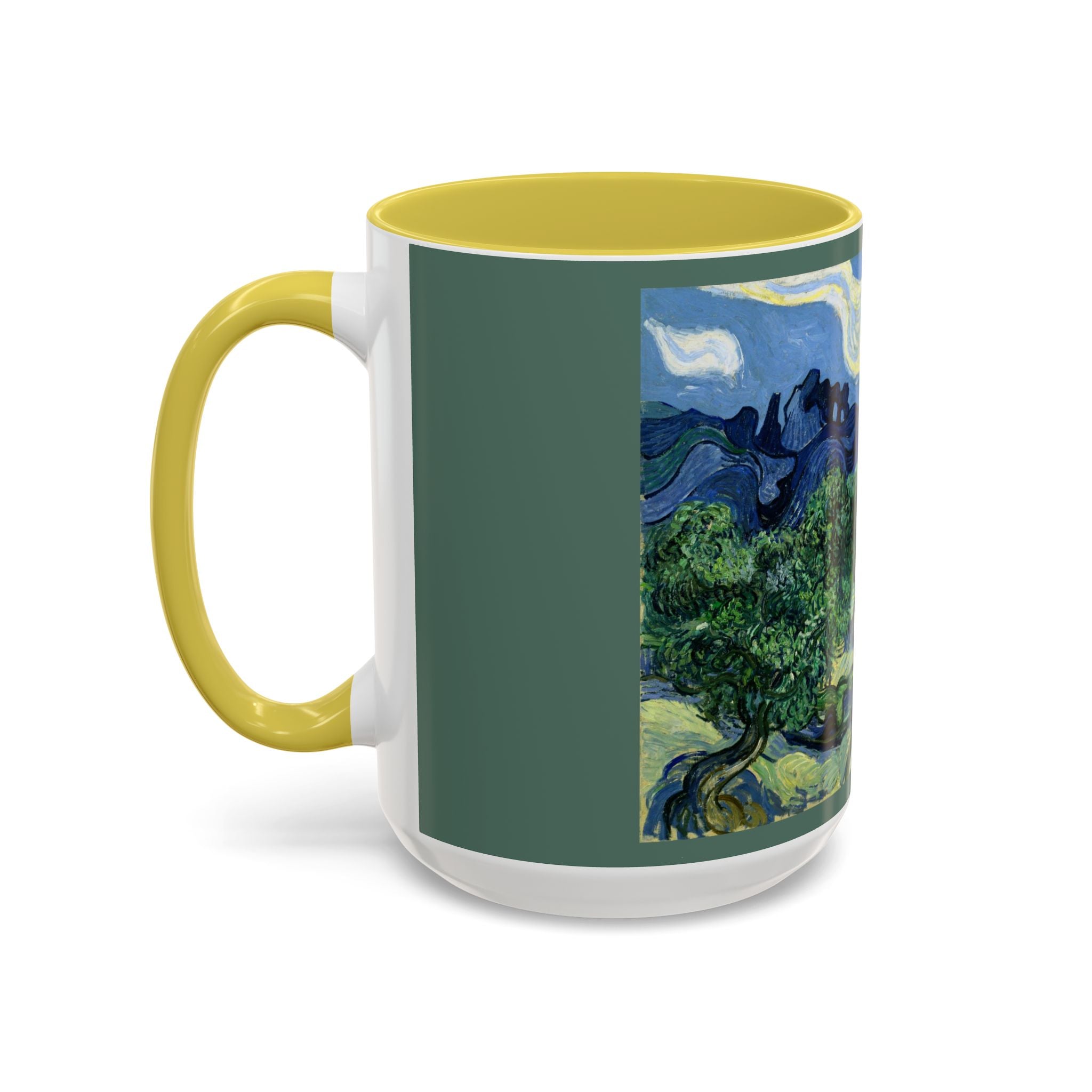 Mugs are a kitchen essential, and when infused with a personalized touch, they transform into cherished favorites. These mugs, offered in 12 vibrant color choices, can hold up to 11oz of your preferred rejuvenating beverage and feature a colored handle and interior. The glossy finish adds an elegant accent that beautifully complements the high-fidelity artwork print, making them not only a delightful addition to your kitchen but also a fantastic choice for thoughtful gifts.