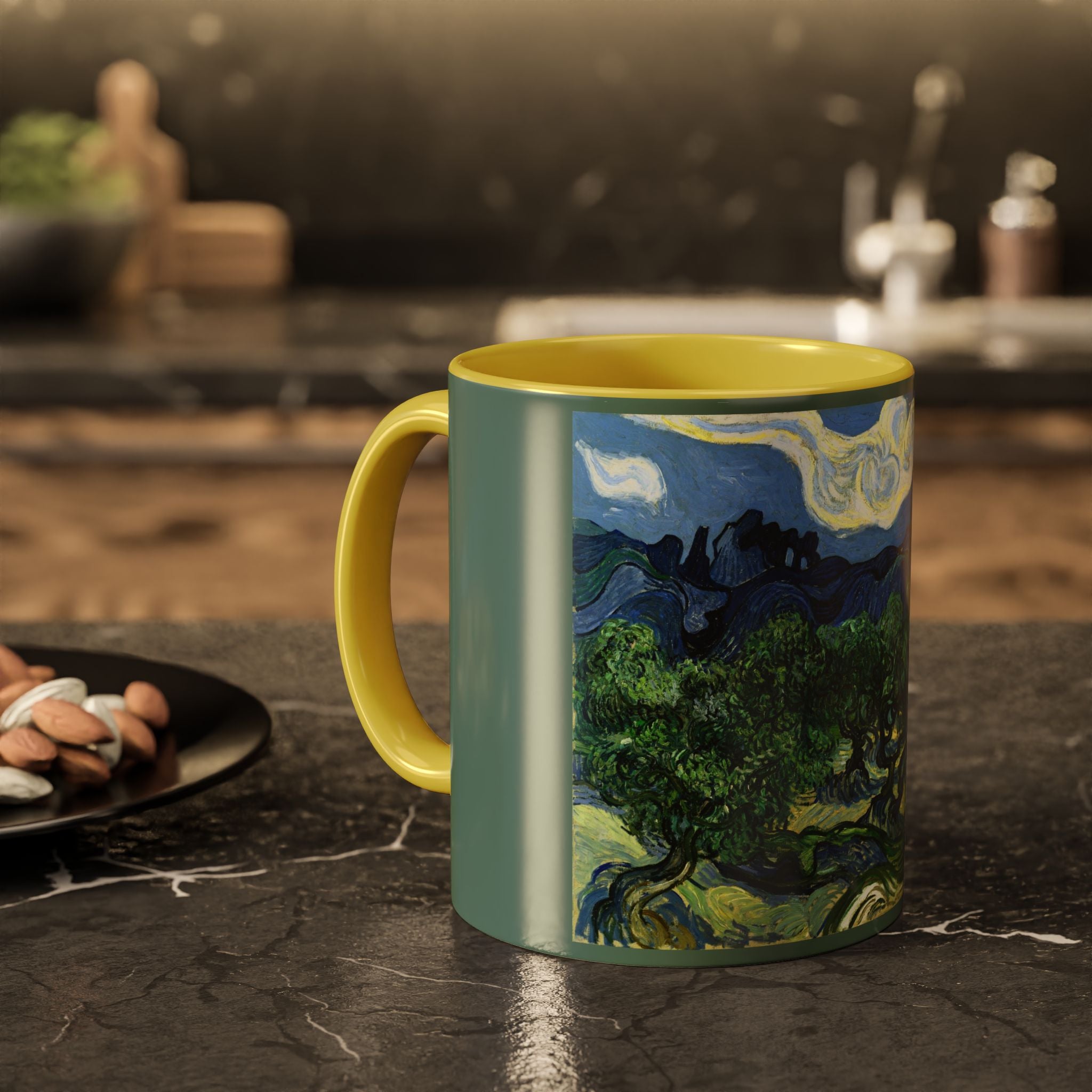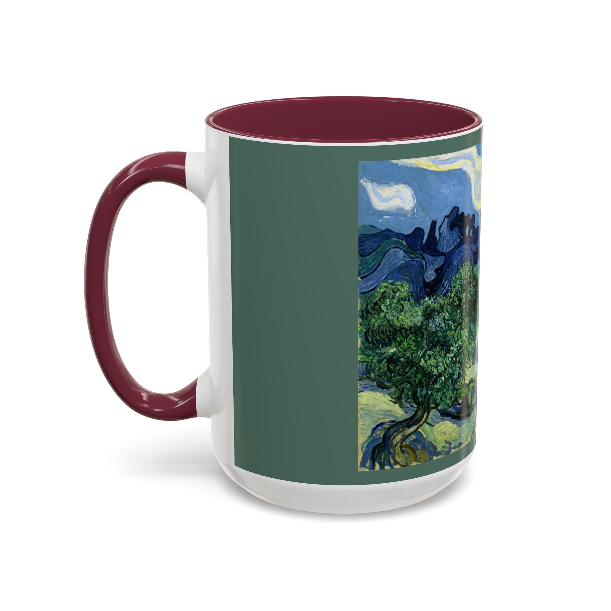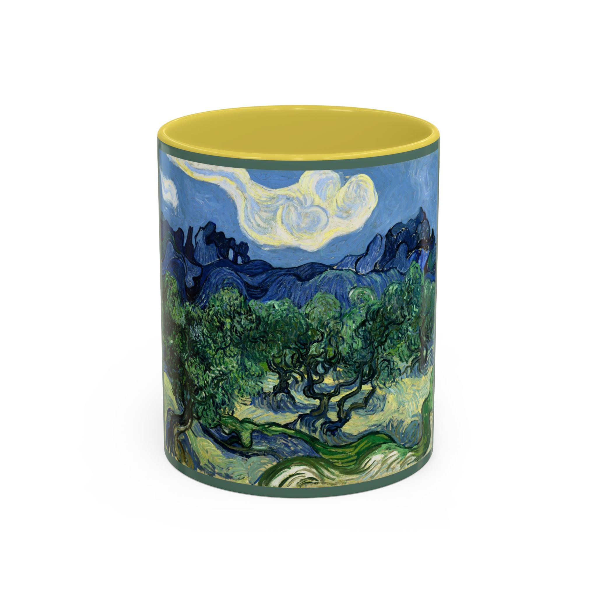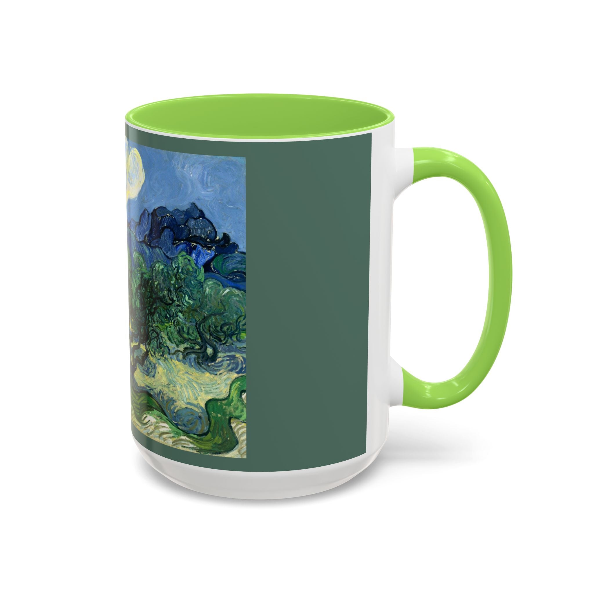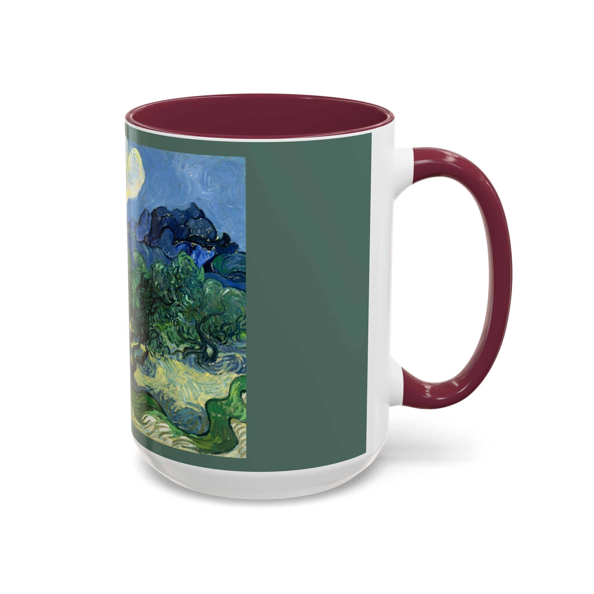 Mugs are a kitchen essential, and when infused with a personalized touch, they transform into cherished favorites. These mugs, offered in 12 vibrant color choices, can hold up to 11oz of your preferred rejuvenating beverage and feature a colored handle and interior. The glossy finish adds an elegant accent that beautifully complements the high-fidelity artwork print, making them not only a delightful addition to your kitchen but also a fantastic choice for thoughtful gifts.