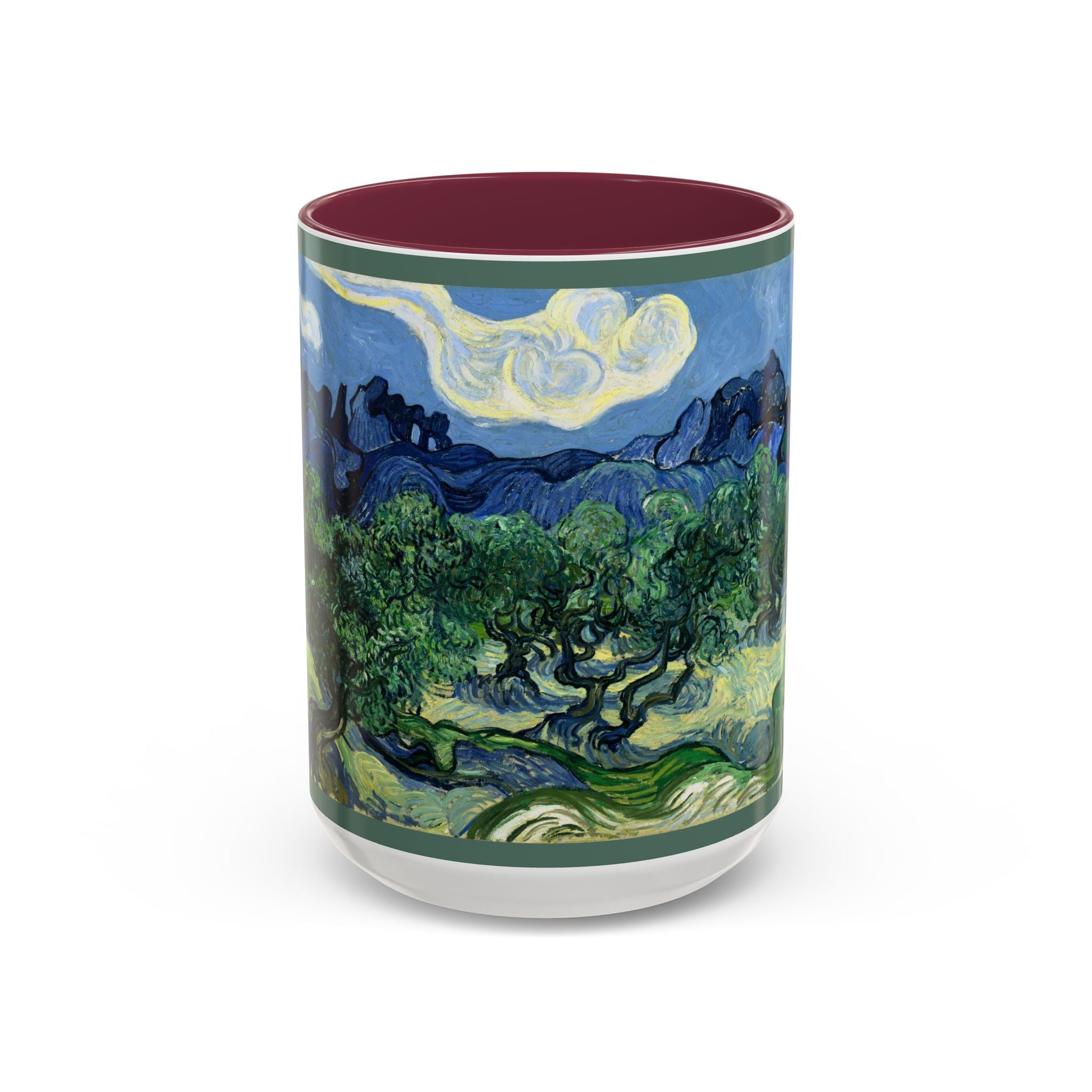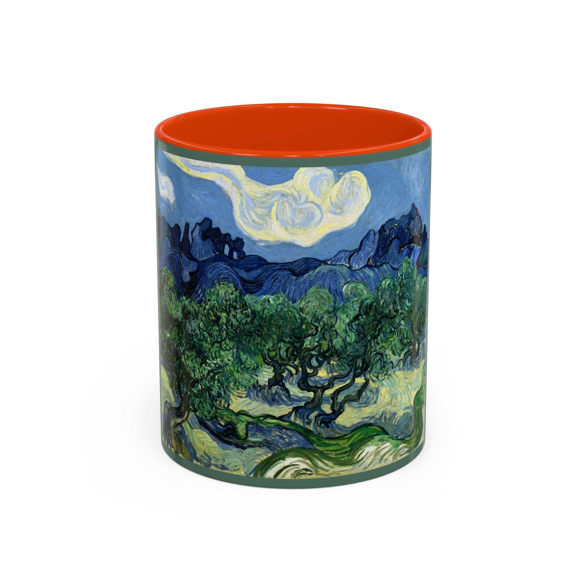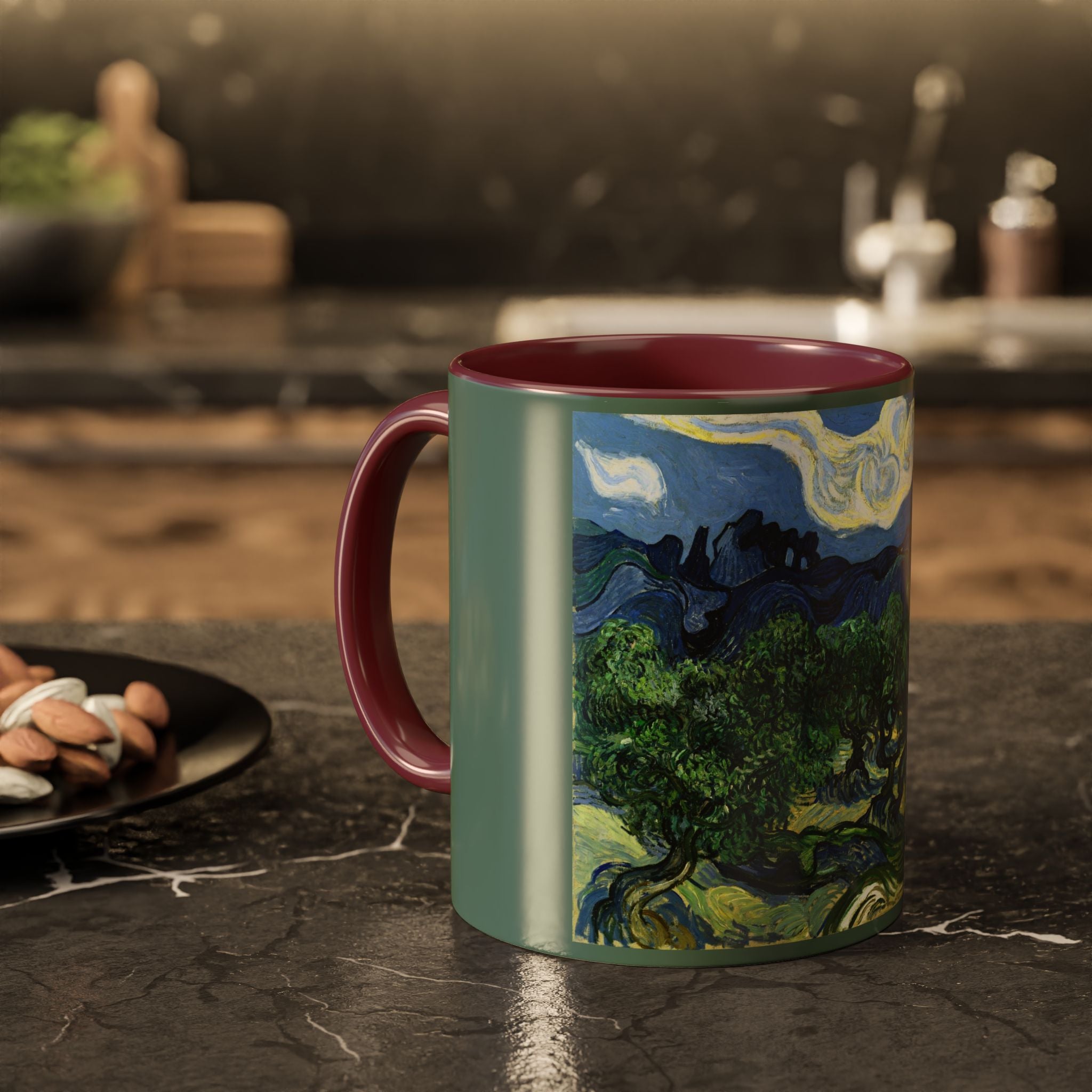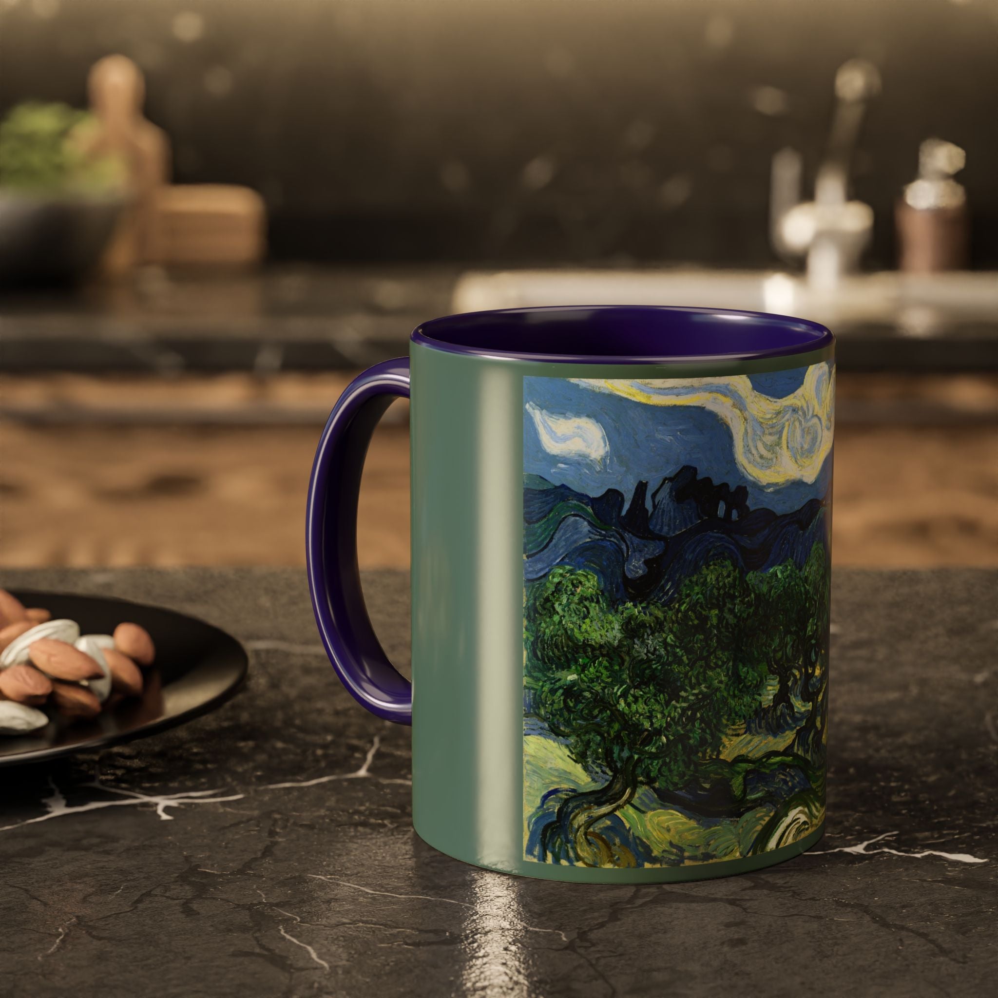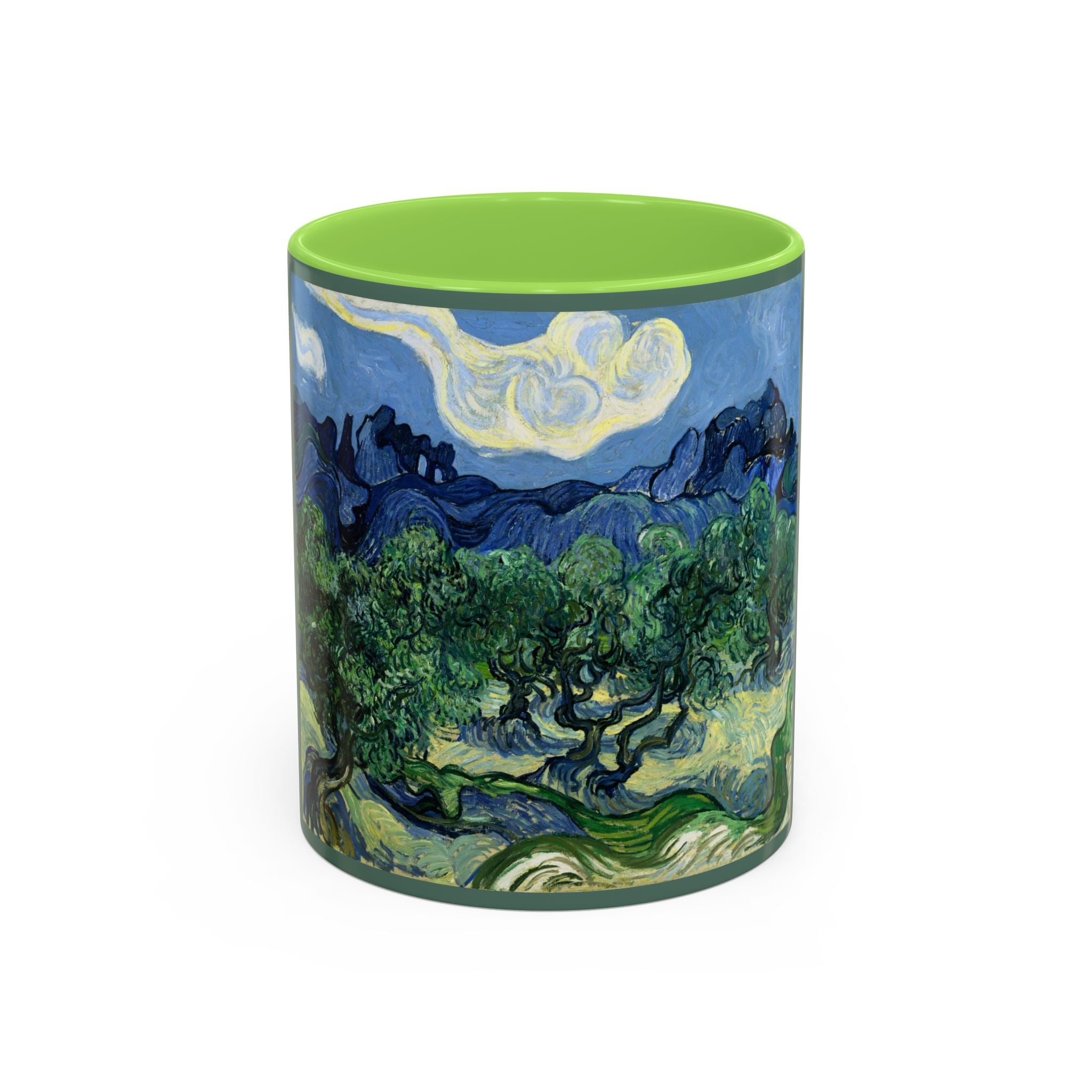 Mugs are a kitchen essential, and when infused with a personalized touch, they transform into cherished favorites. These mugs, offered in 12 vibrant color choices, can hold up to 11oz of your preferred rejuvenating beverage and feature a colored handle and interior. The glossy finish adds an elegant accent that beautifully complements the high-fidelity artwork print, making them not only a delightful addition to your kitchen but also a fantastic choice for thoughtful gifts.