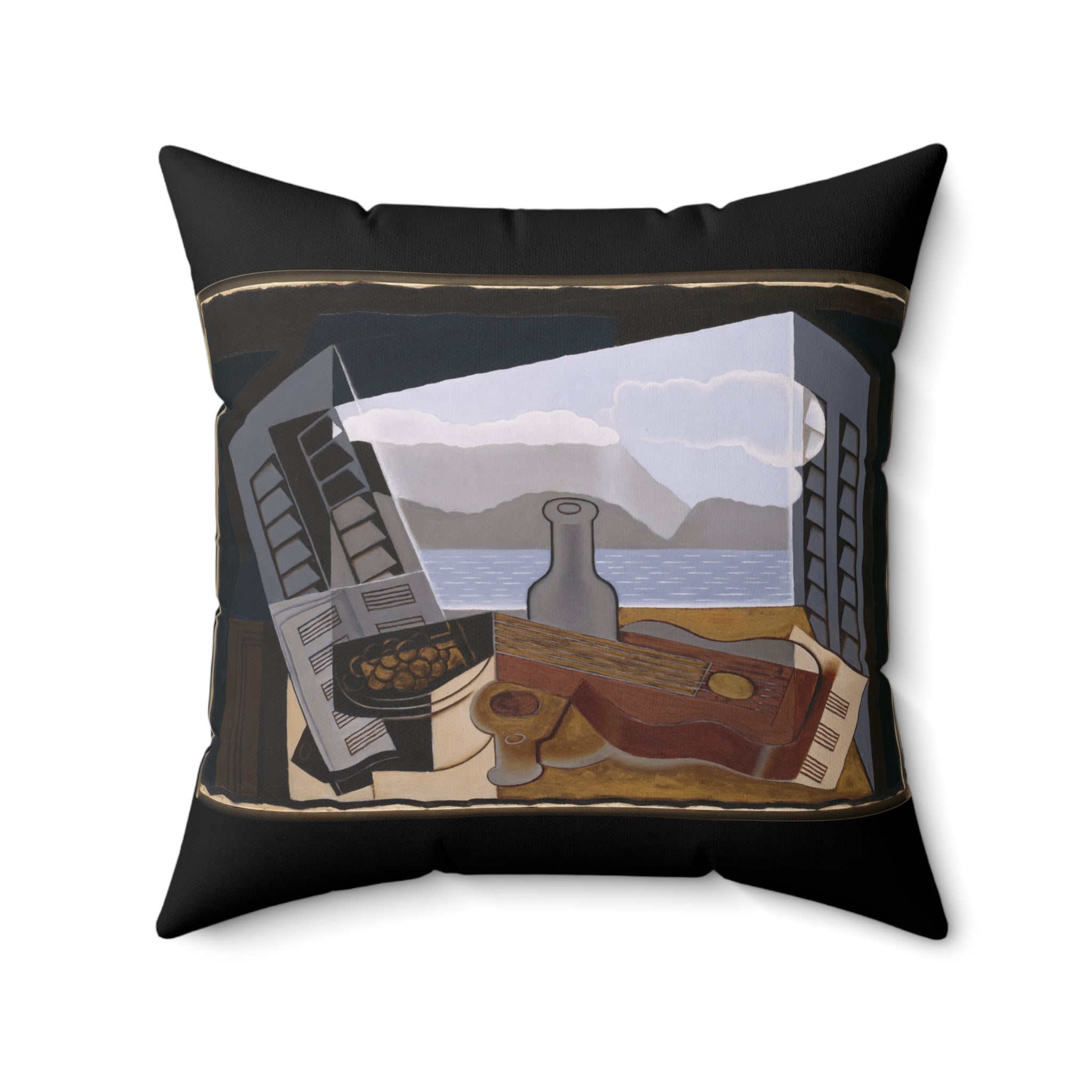 Artwork designed and digitally remastered by Sarasvati Designs. The “Open Window” is a painting by Juan Gris, created in 1921. The painting depicts a view from a window in Gris's studio in Paris. It is an oil on canvas work that depicts a still life arrangement of a guitar, a newspaper, and a bottle of wine on a table in front of an open window.