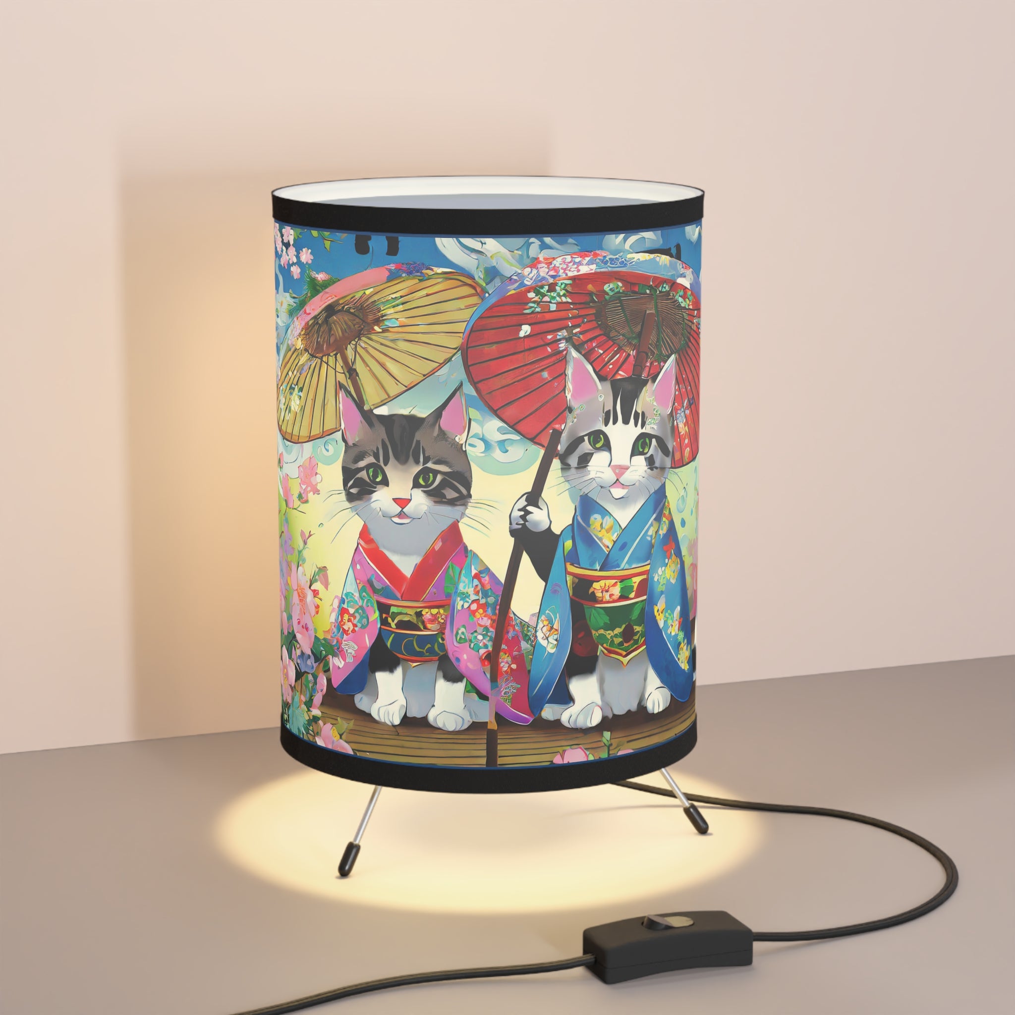 Transform your room with this epic tripod lamp! This sturdy lamp has a cool metal base, and the best part? It comes with an awesome pre-designed artwork for the shade! The high-resolution image is super vibrant, so your favorite design will light up your space in style. This lamp isn't just for lighting, it's a statement piece that lets you show off your personality. Light up your room and your imagination with this must-have lamp!
