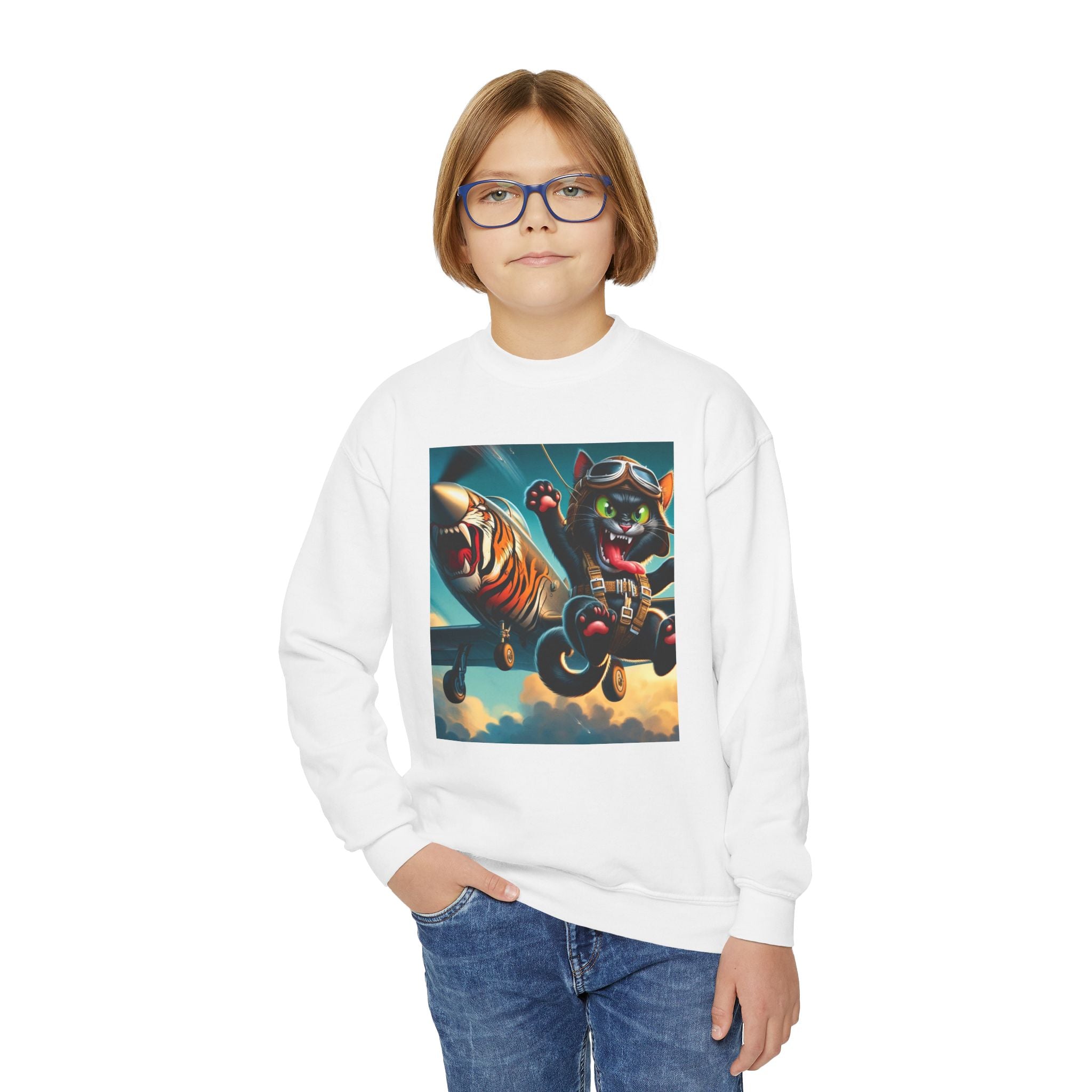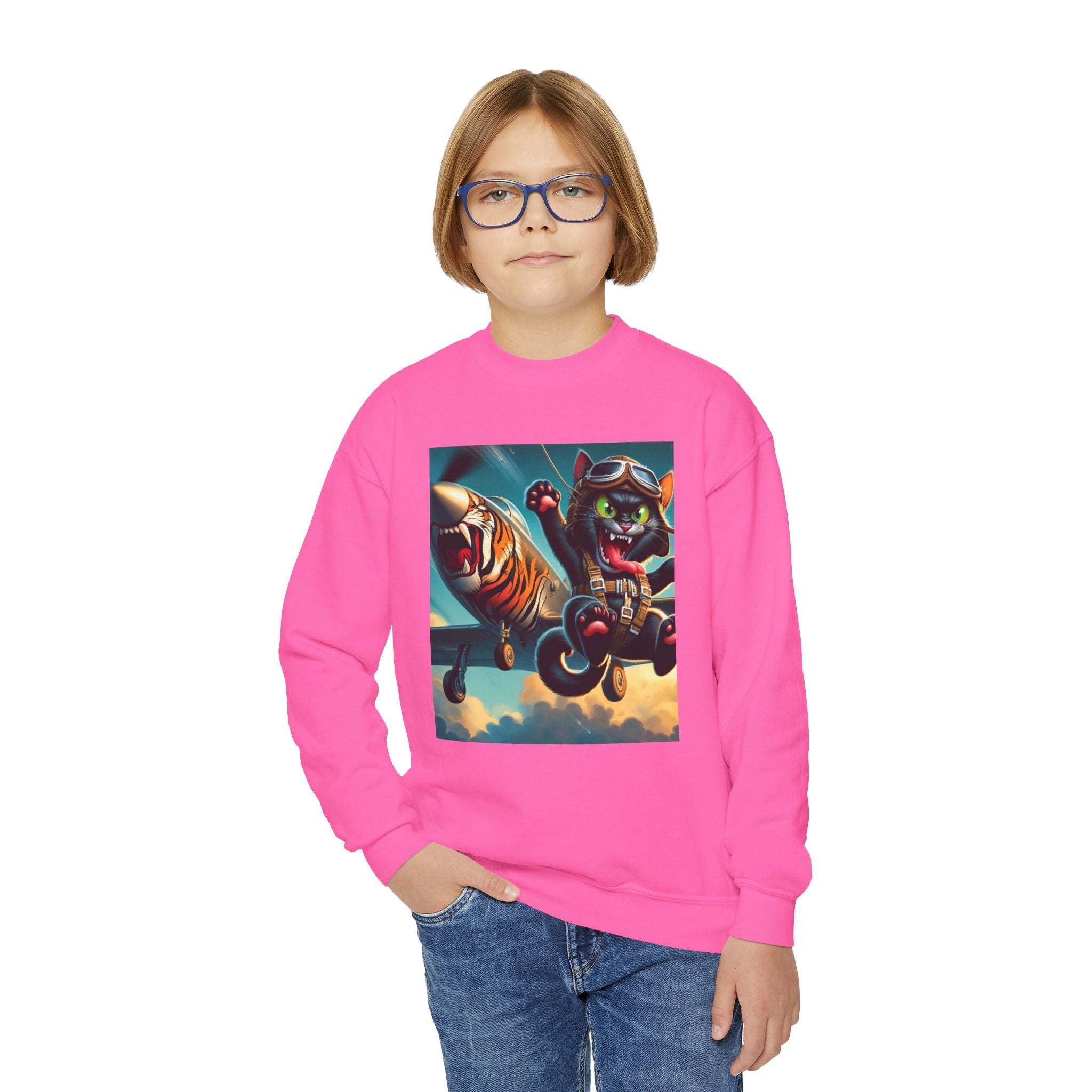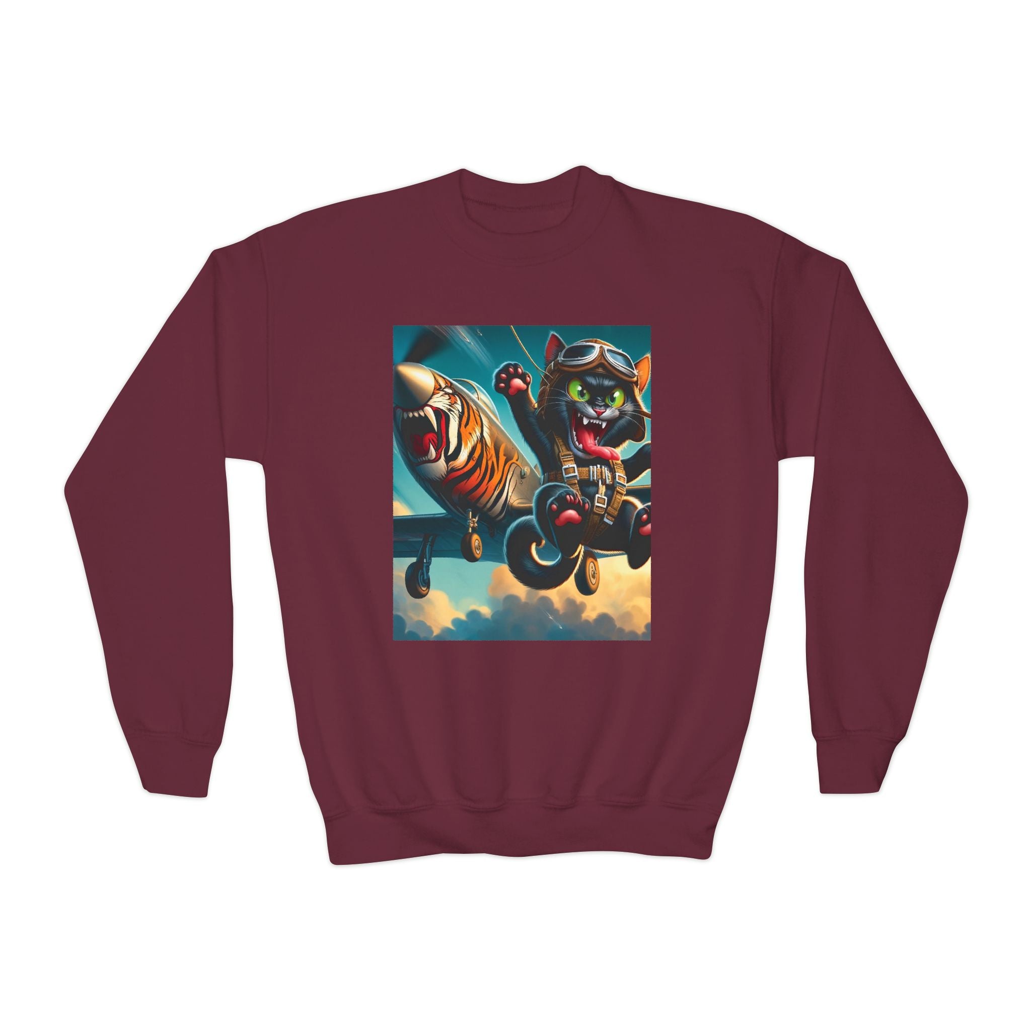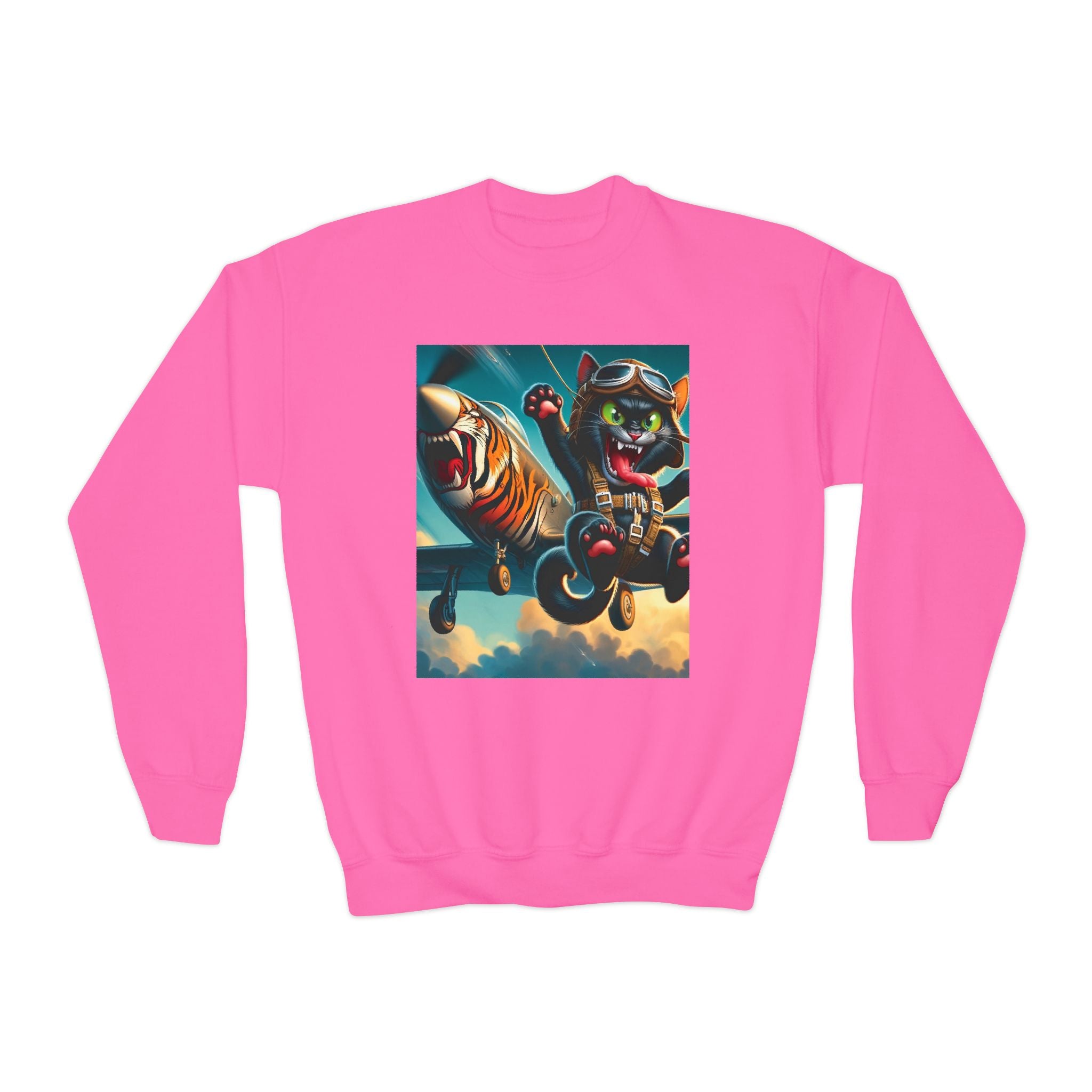 Parachuting Cat Commando Youth Crewneck Sweatshirt combines cozy comfort with sky-high adventure. Made from a balanced blend of 50% cotton and 50% polyester, this Gildan 18000B sweatshirt is perfect for school, playtime, or lounging in fearless style. The medium-heavy fabric keeps it warm and durable, while the loose fit offers easy movement for every mission. Please note: due to the fabric properties, the White color variant may appear slightly off-white.