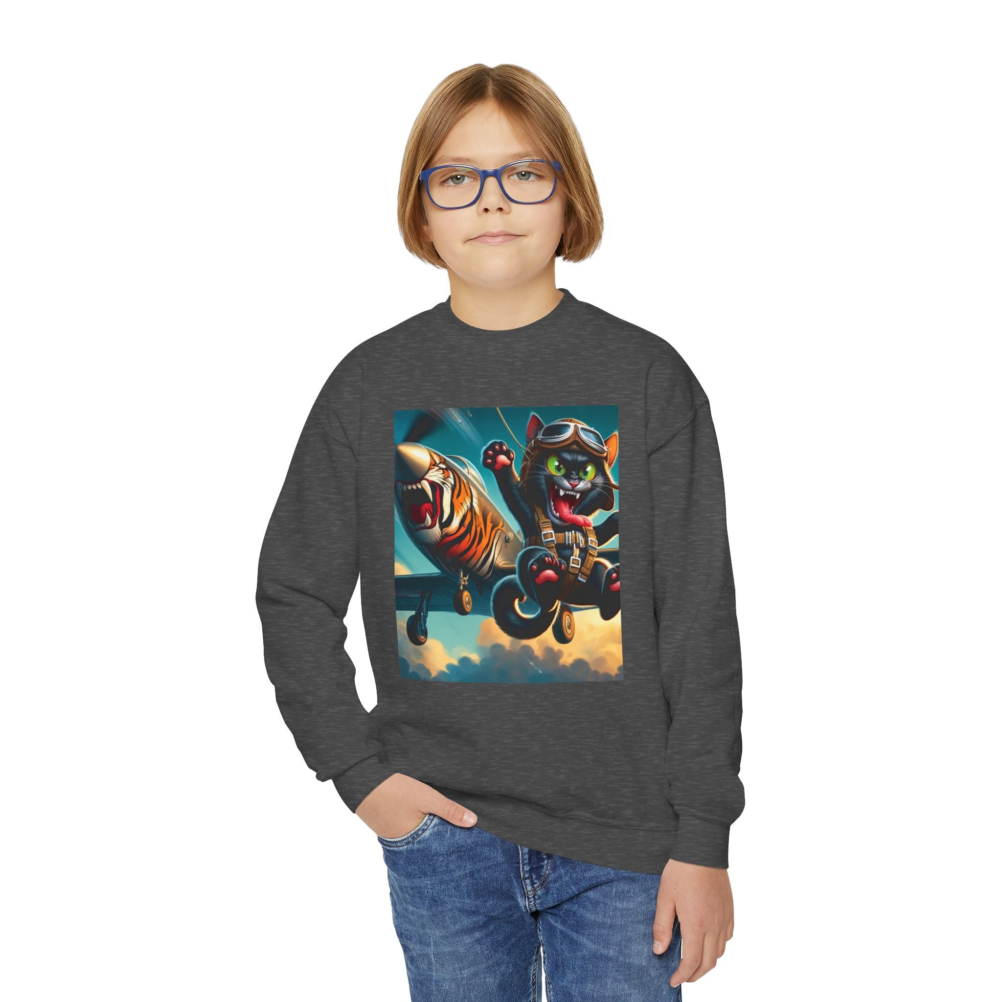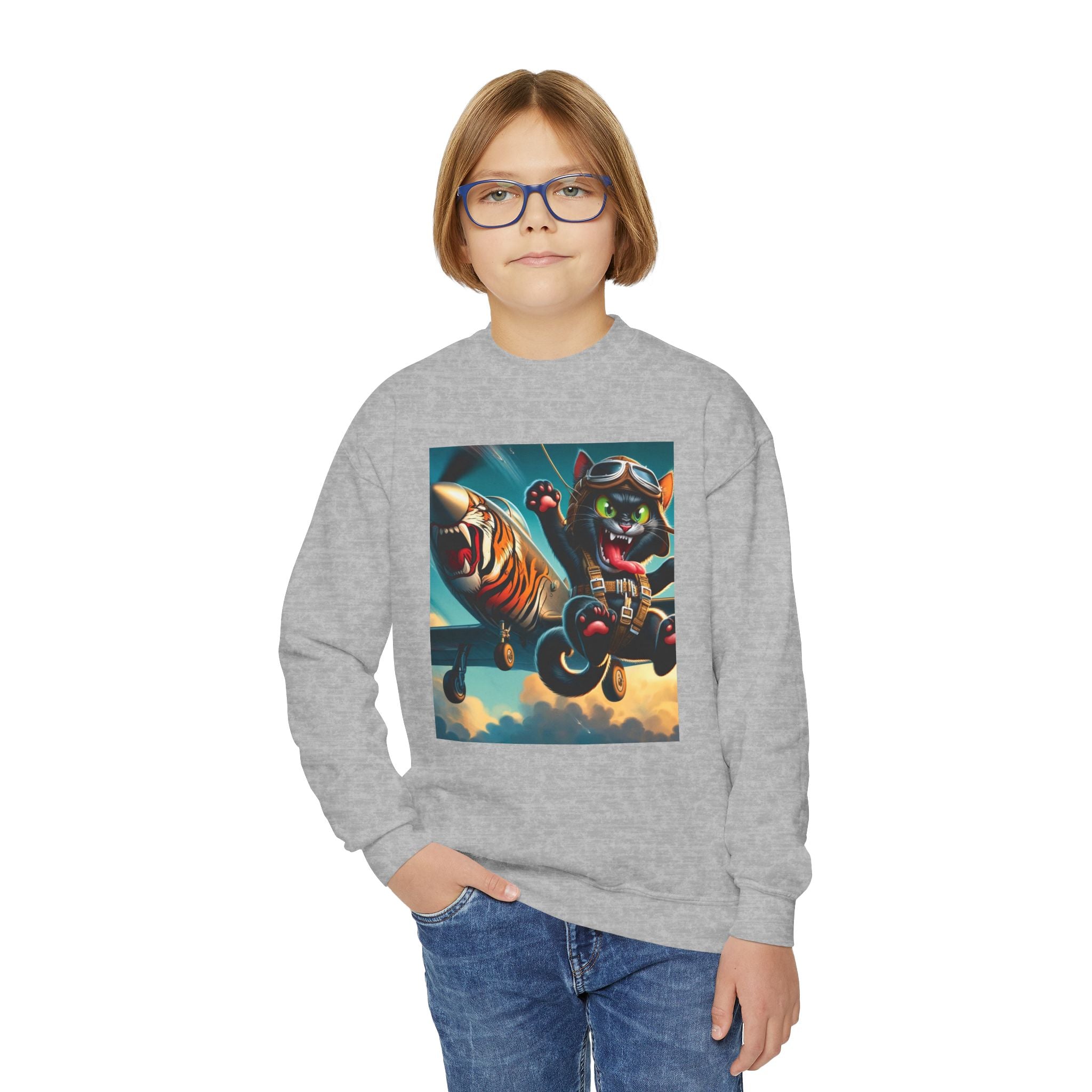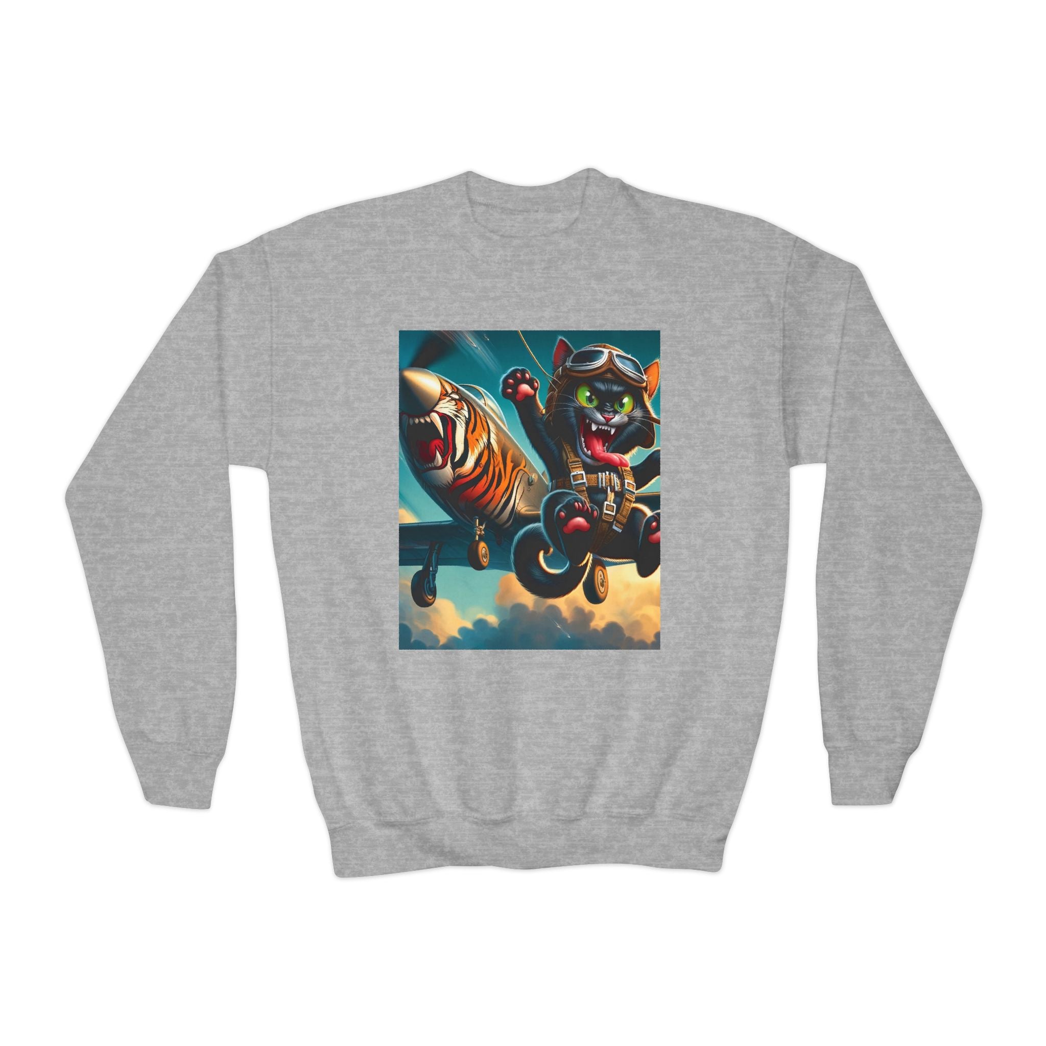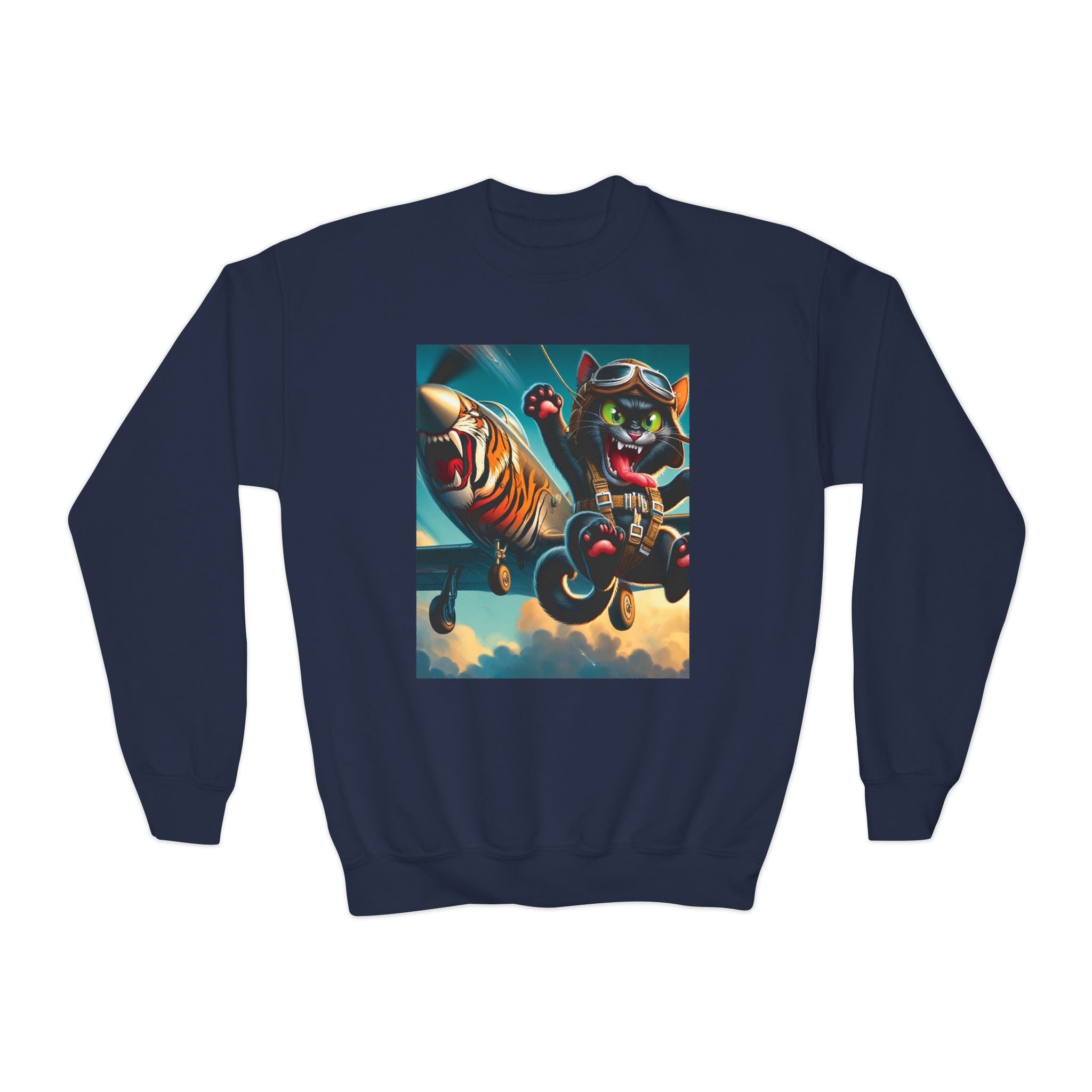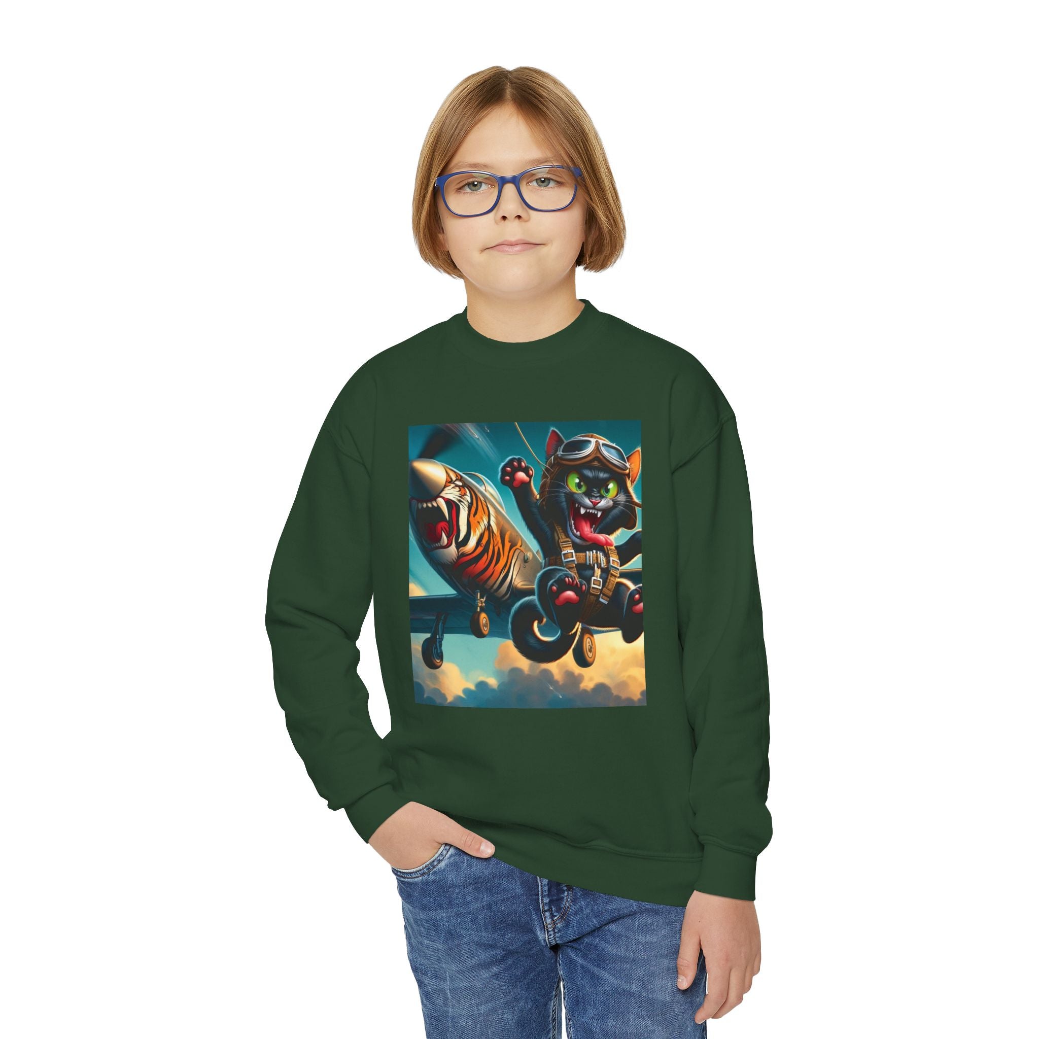 Parachuting Cat Commando Youth Crewneck Sweatshirt combines cozy comfort with sky-high adventure. Made from a balanced blend of 50% cotton and 50% polyester, this Gildan 18000B sweatshirt is perfect for school, playtime, or lounging in fearless style. The medium-heavy fabric keeps it warm and durable, while the loose fit offers easy movement for every mission. Please note: due to the fabric properties, the White color variant may appear slightly off-white.