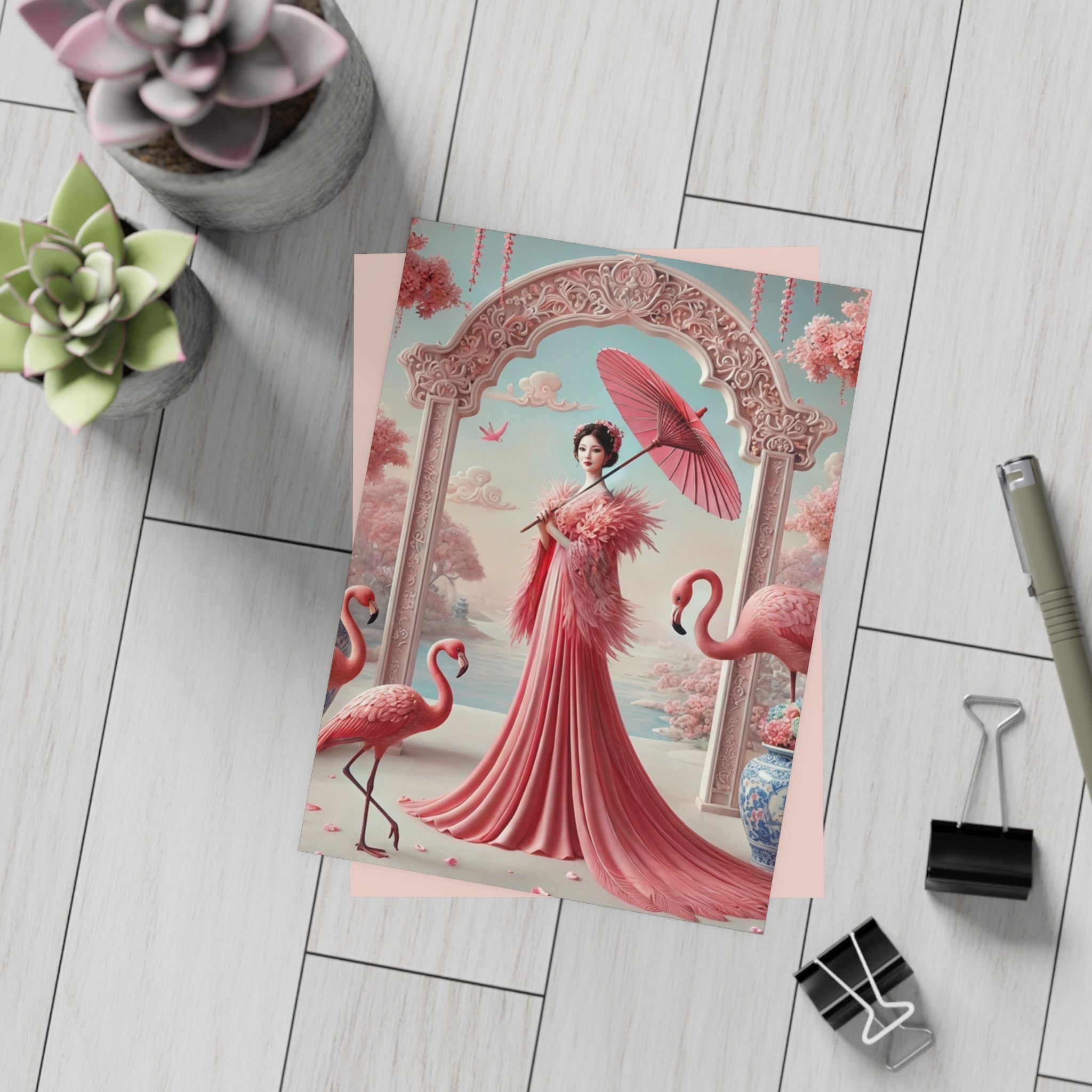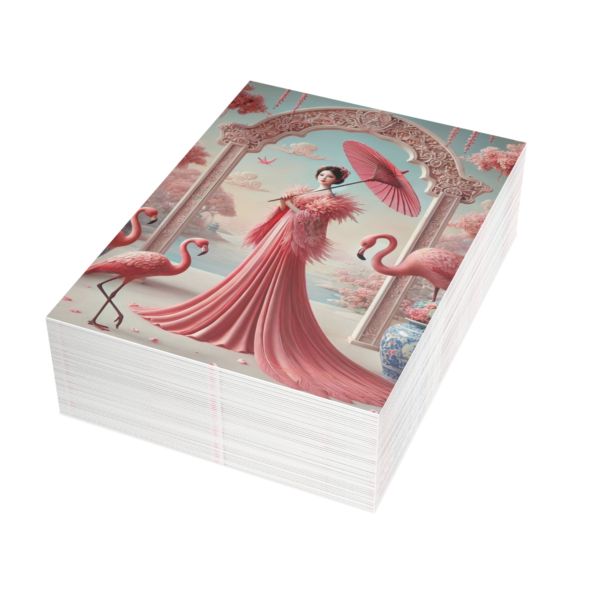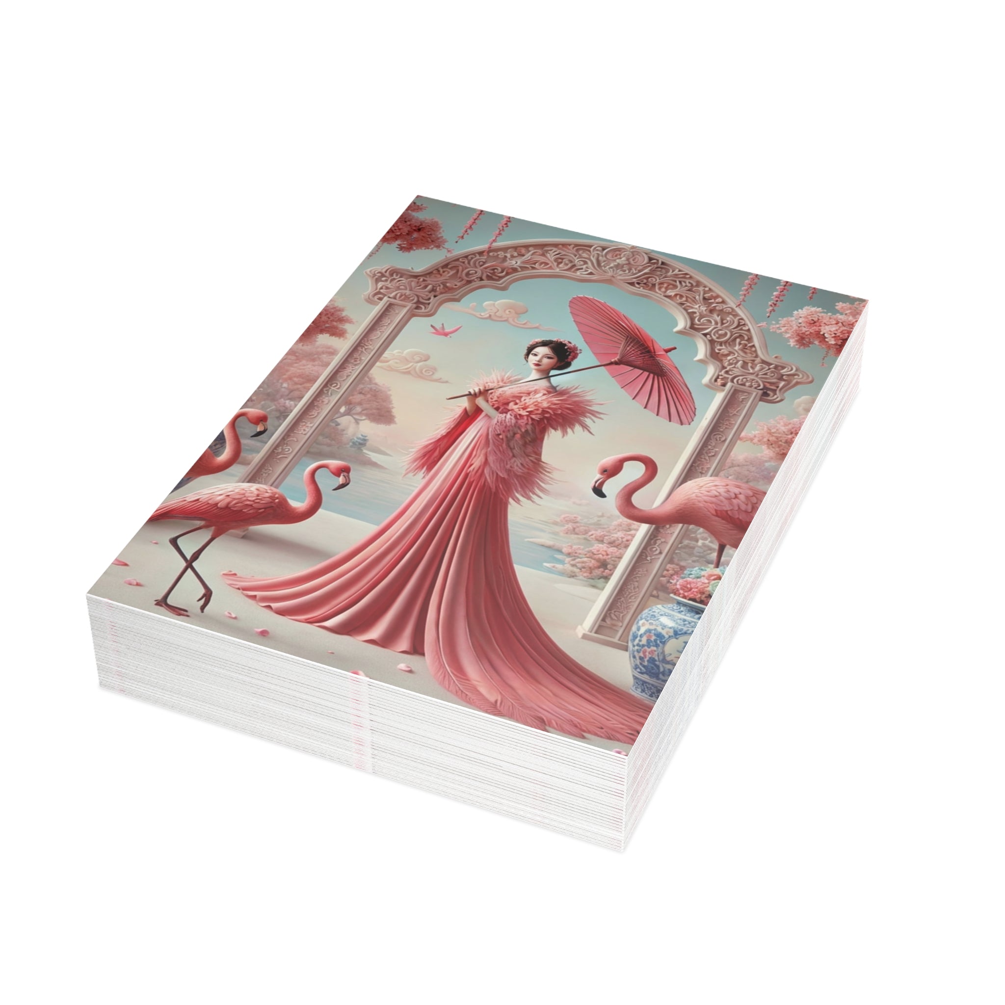Petals, Porcelain, and Flamingos Postcard Bundles (Envelopes Included) offer an artful way to send notes, greetings, or keepsakes. Available in multiple paper finishes and bundle sizes, they are designed for both everyday correspondence and gifting.