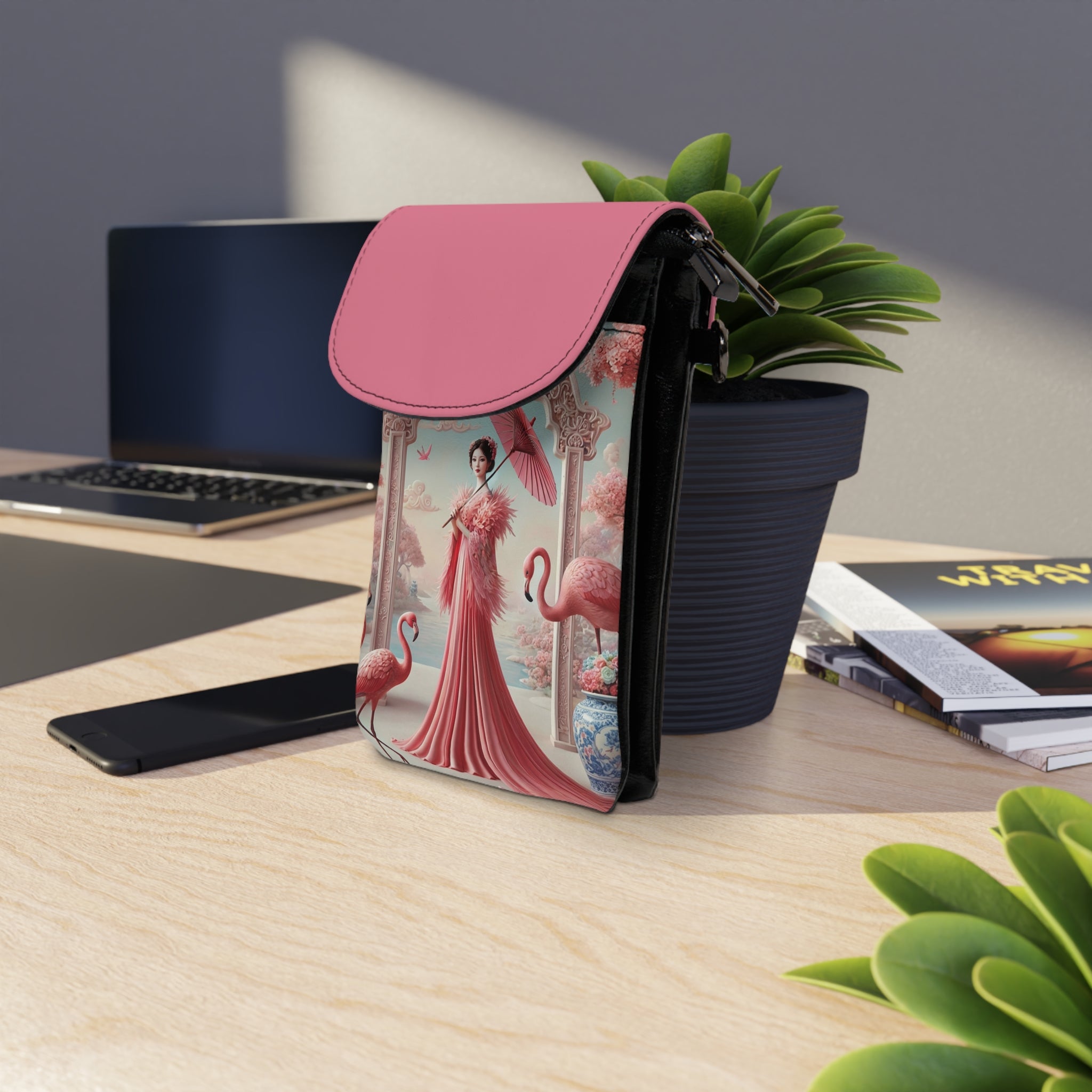 Petals, Porcelain, and Flamingos Small Cell Phone Wallet is designed for days when you want to carry just the essentials—beautifully and effortlessly. Compact and lightweight, this wallet adds a refined splash of style to daily errands, travel, or evenings out. Made from high-grade faux leather with a smooth, durable feel, it features an adjustable, detachable strap so it can be worn comfortably crossbody or carried on its own.