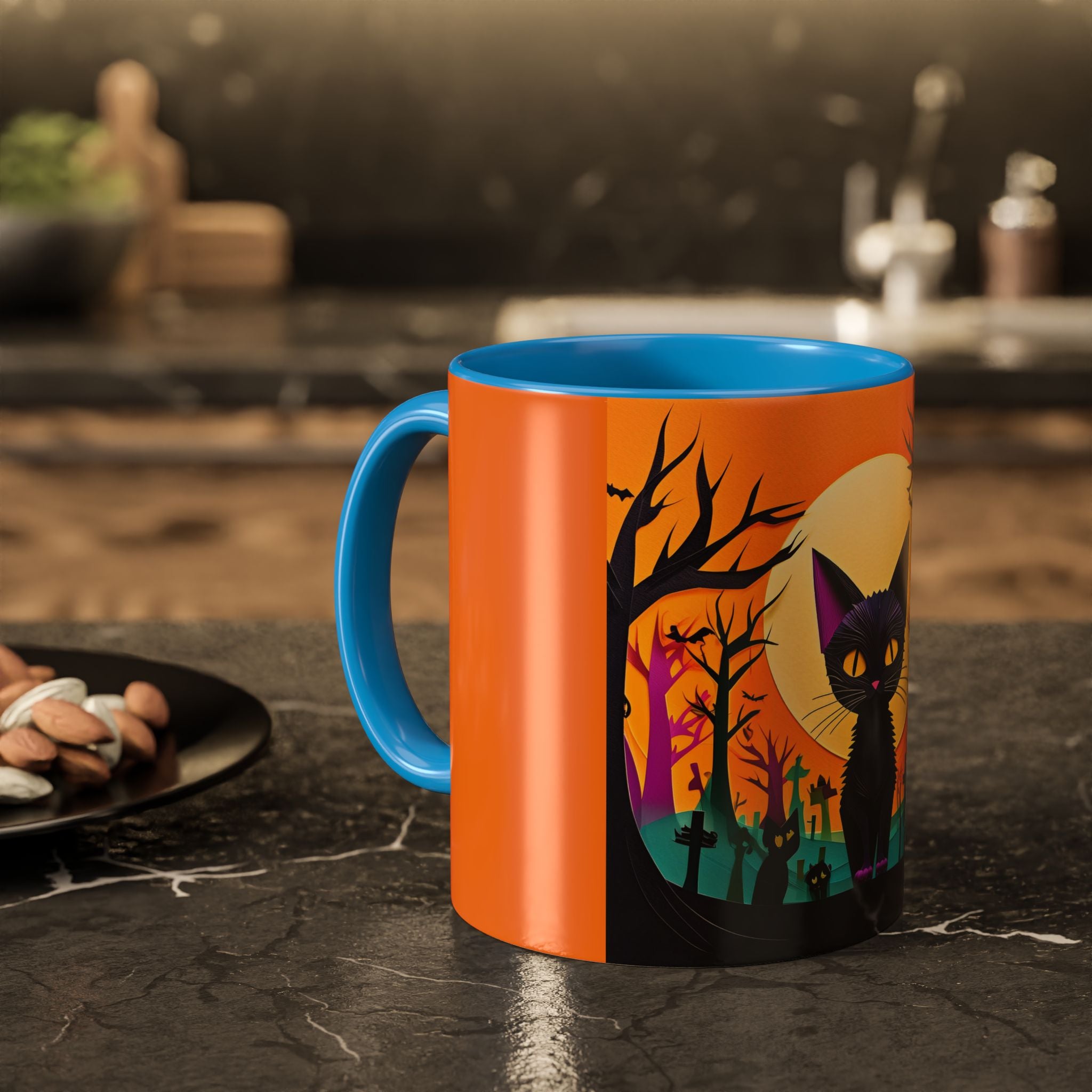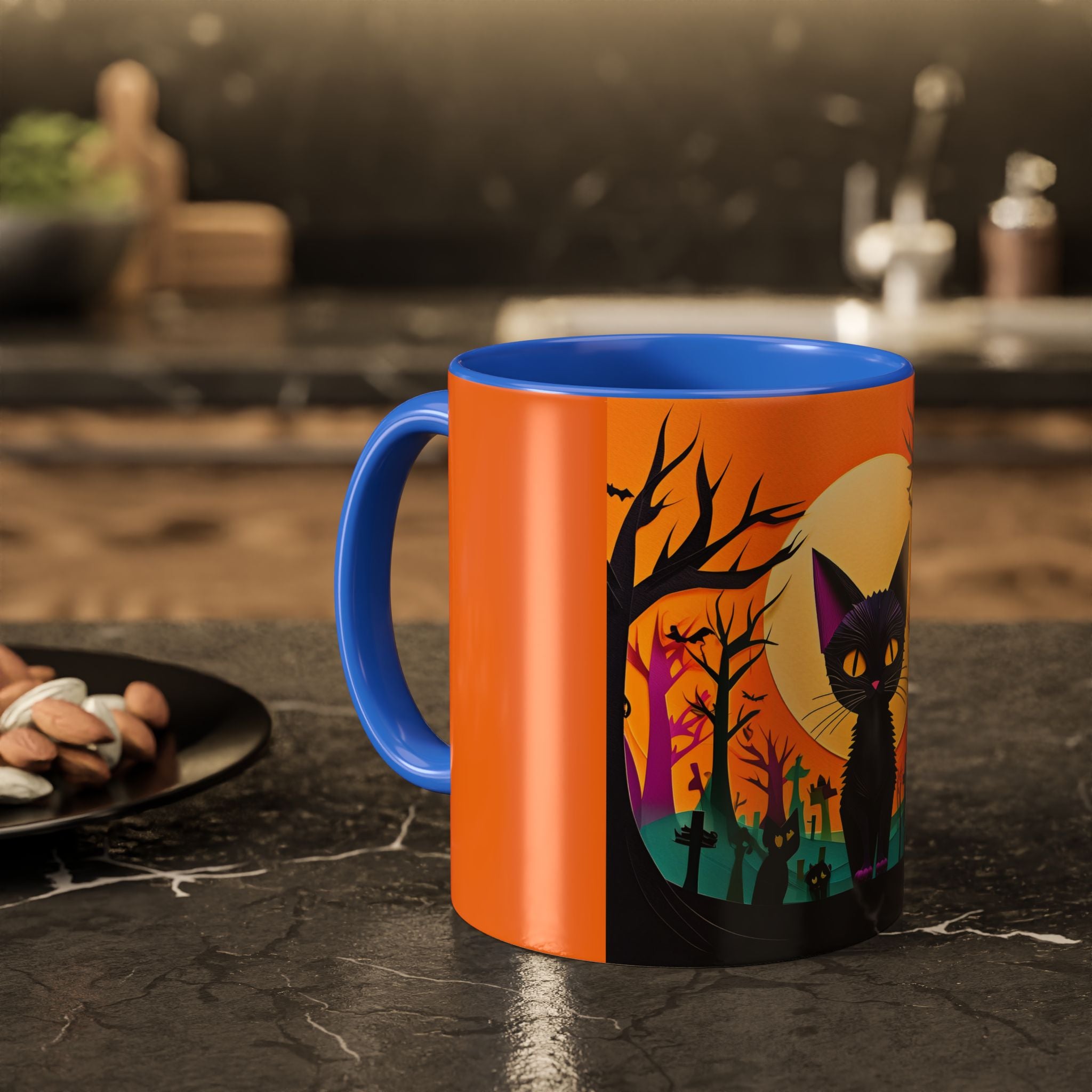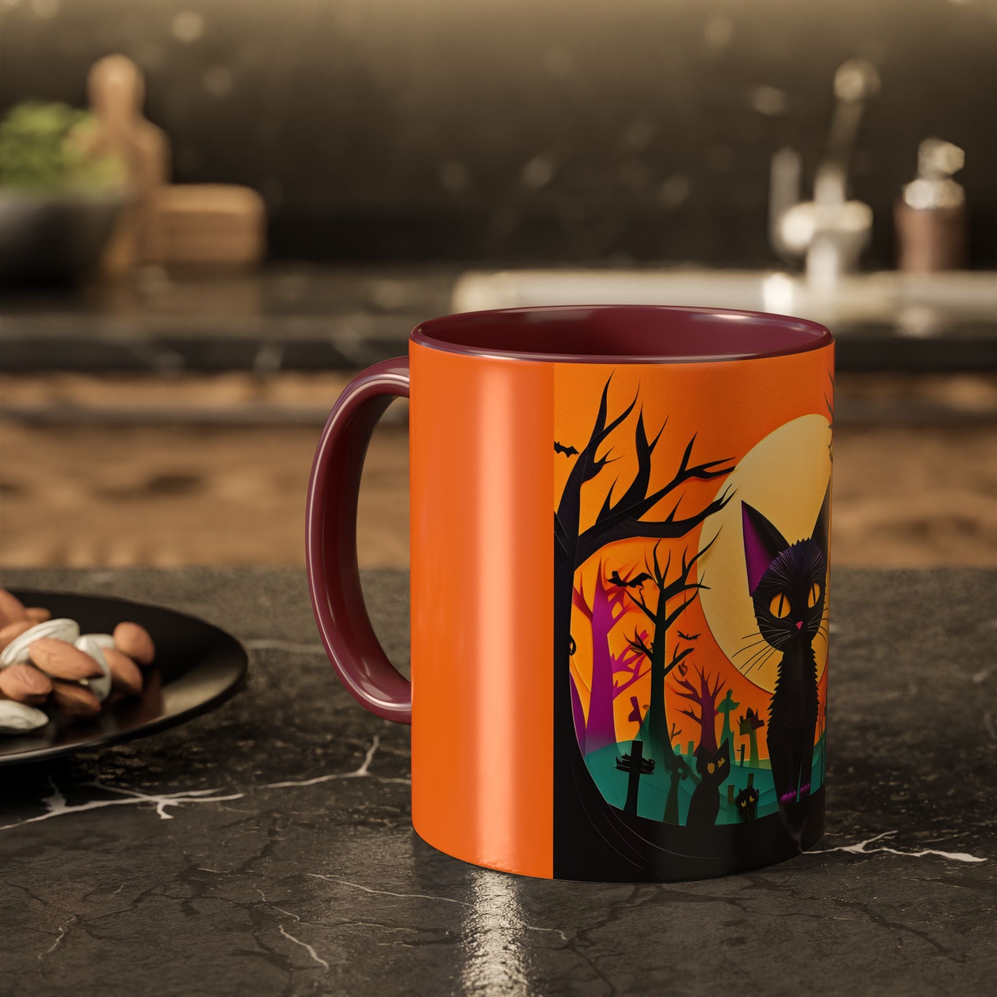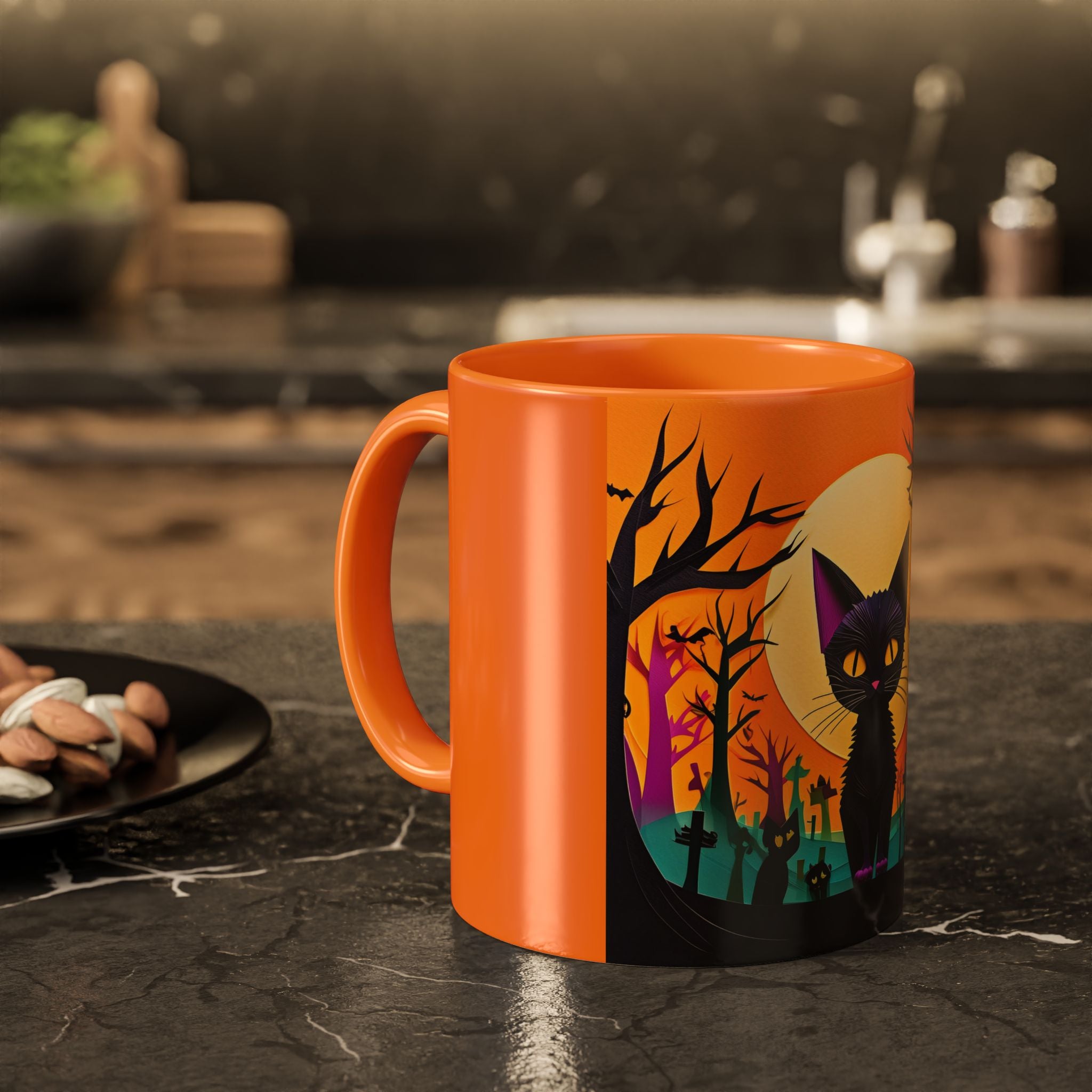 Mugs are a kitchen essential, and when infused with a Halloween touch, they become cherished seasonal favorites. These Halloween-themed mugs, available in 12 vibrant color choices, hold up to 11oz or 15oz of your favorite beverage and feature a colored handle and interior. The glossy finish adds an elegant accent that beautifully complements the spooky artwork, making them a delightful addition to your Halloween decor and a fantastic choice for thoughtful gifts.