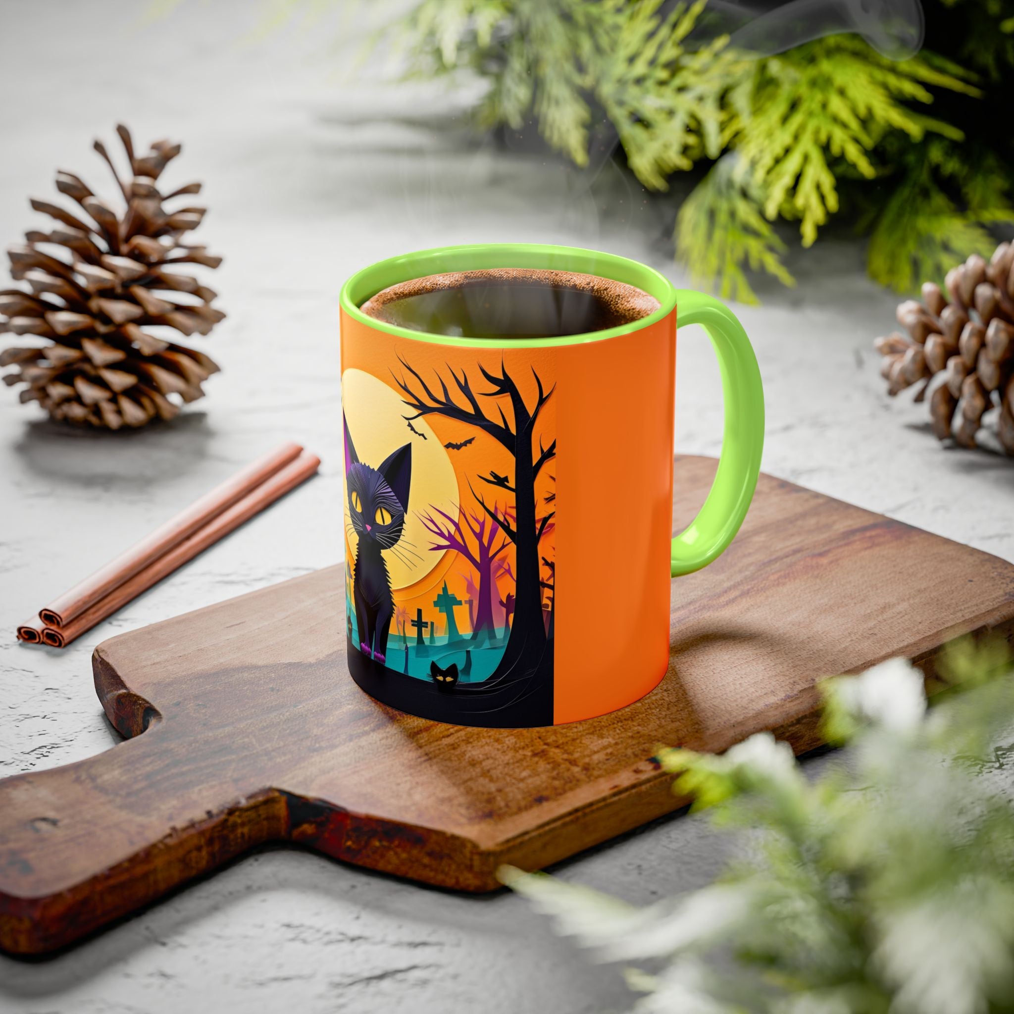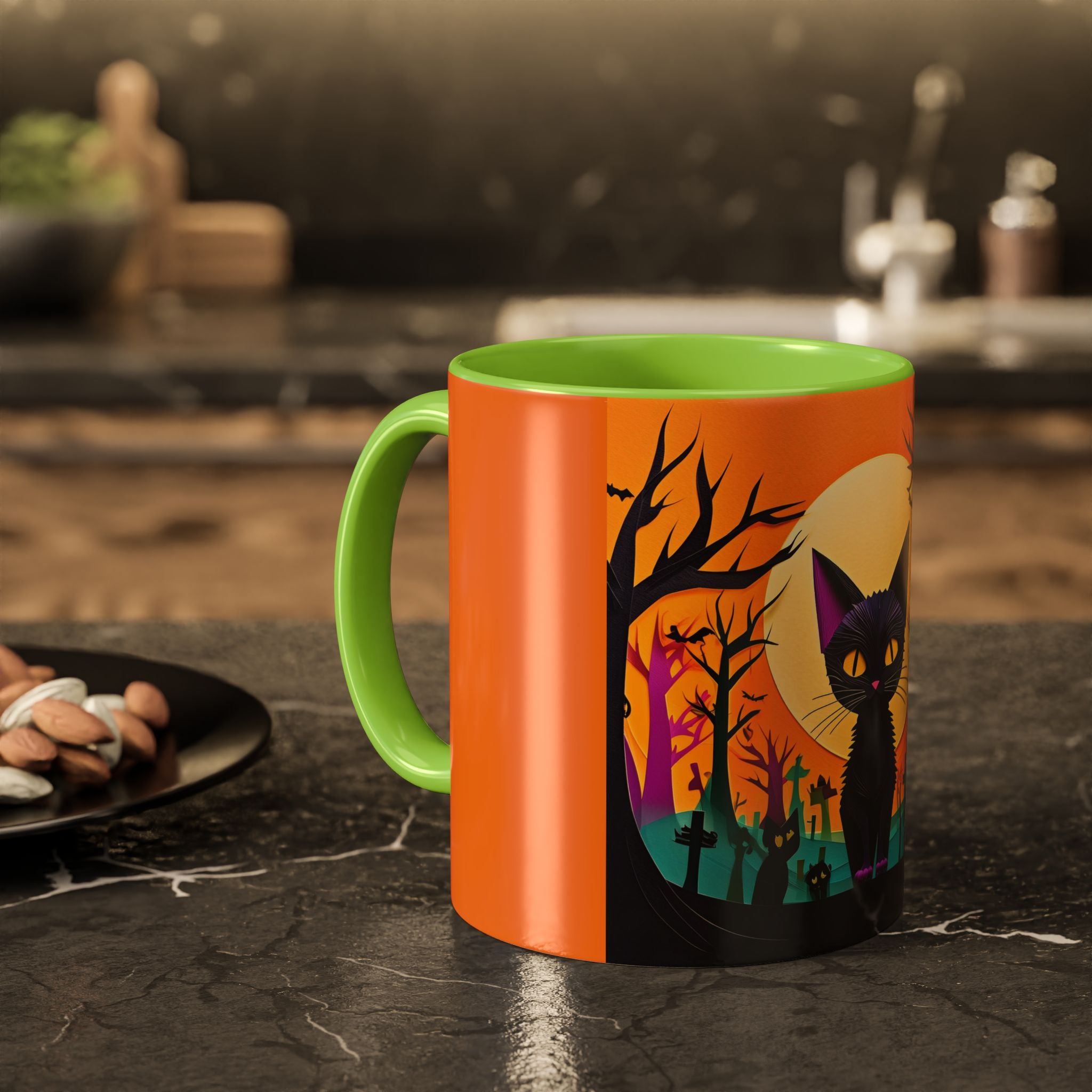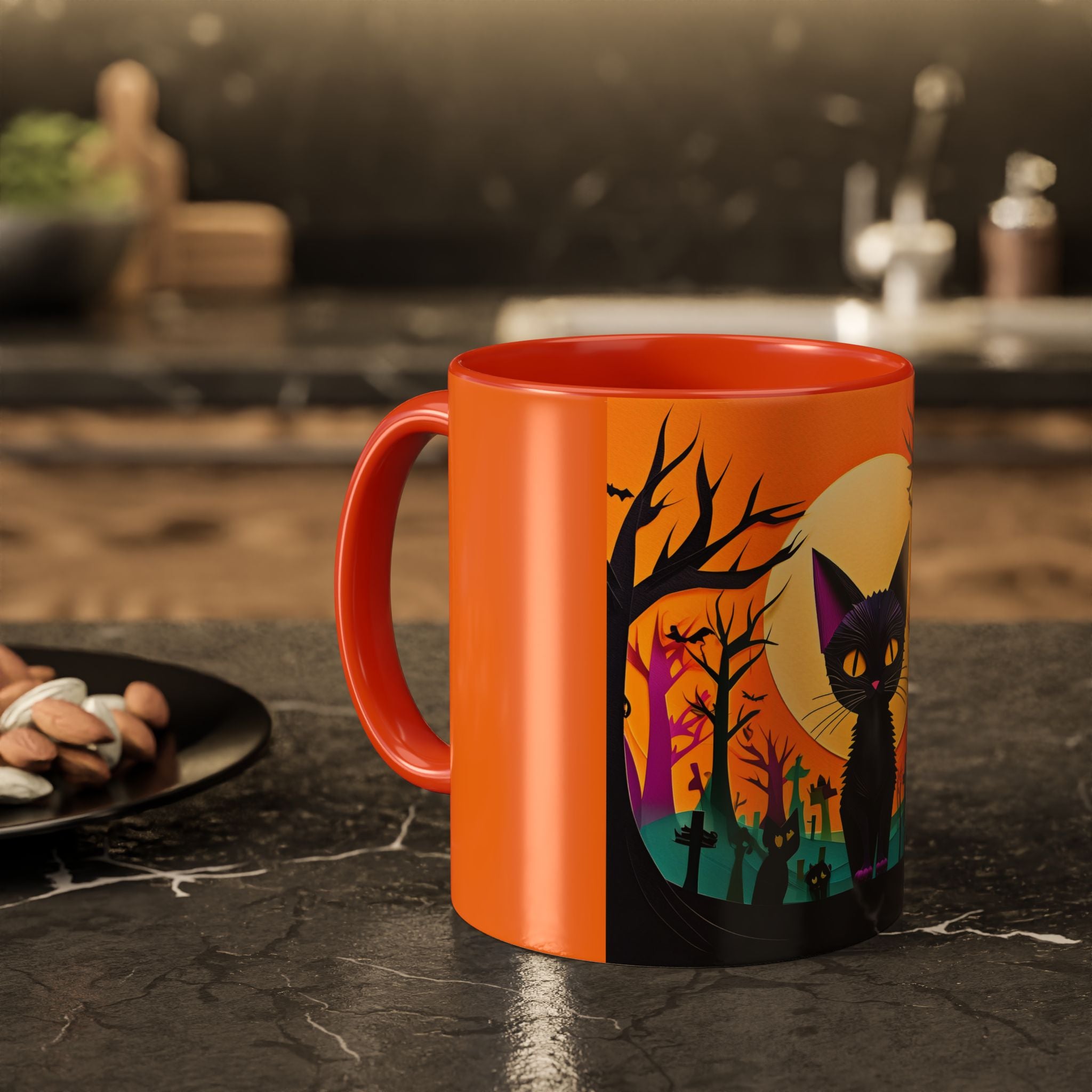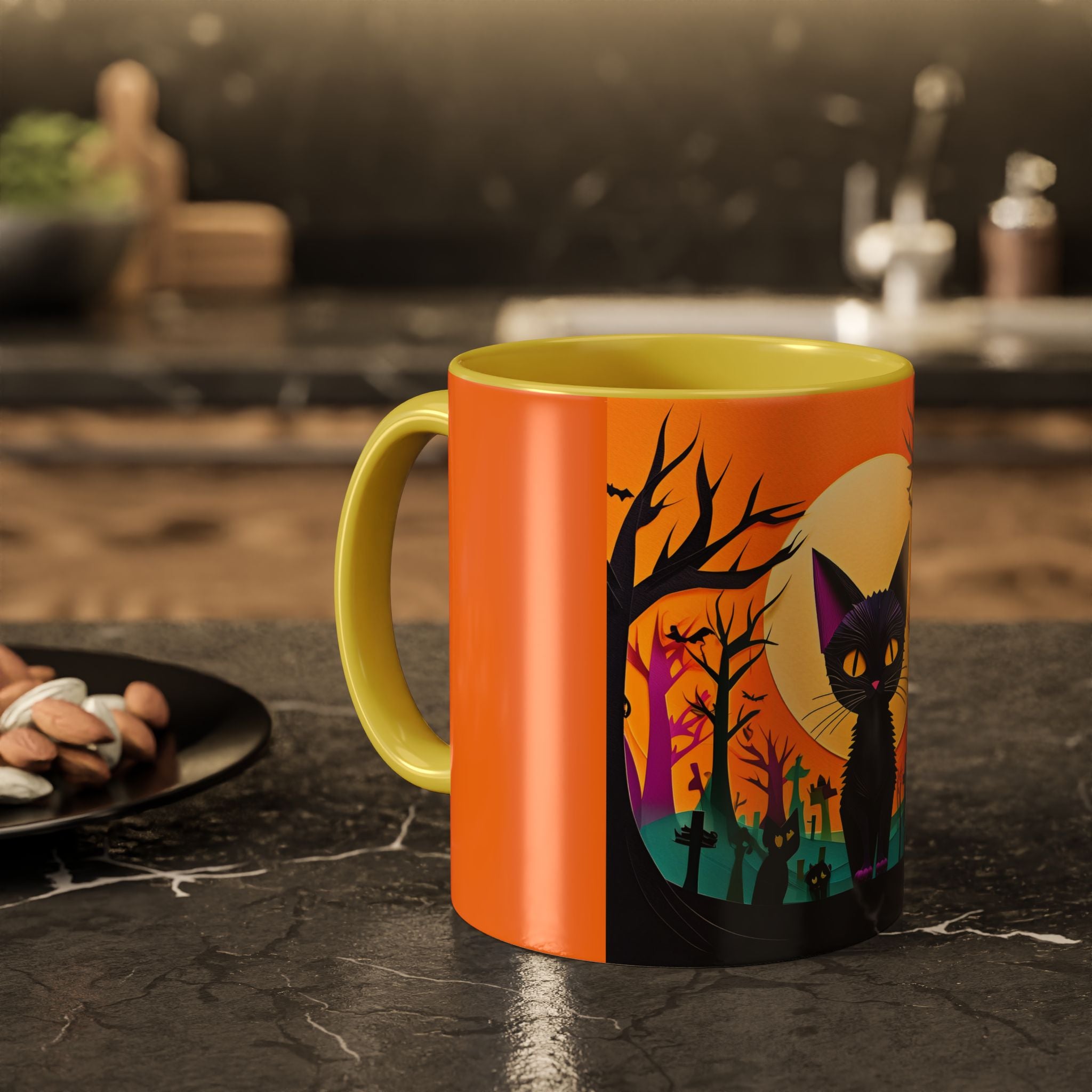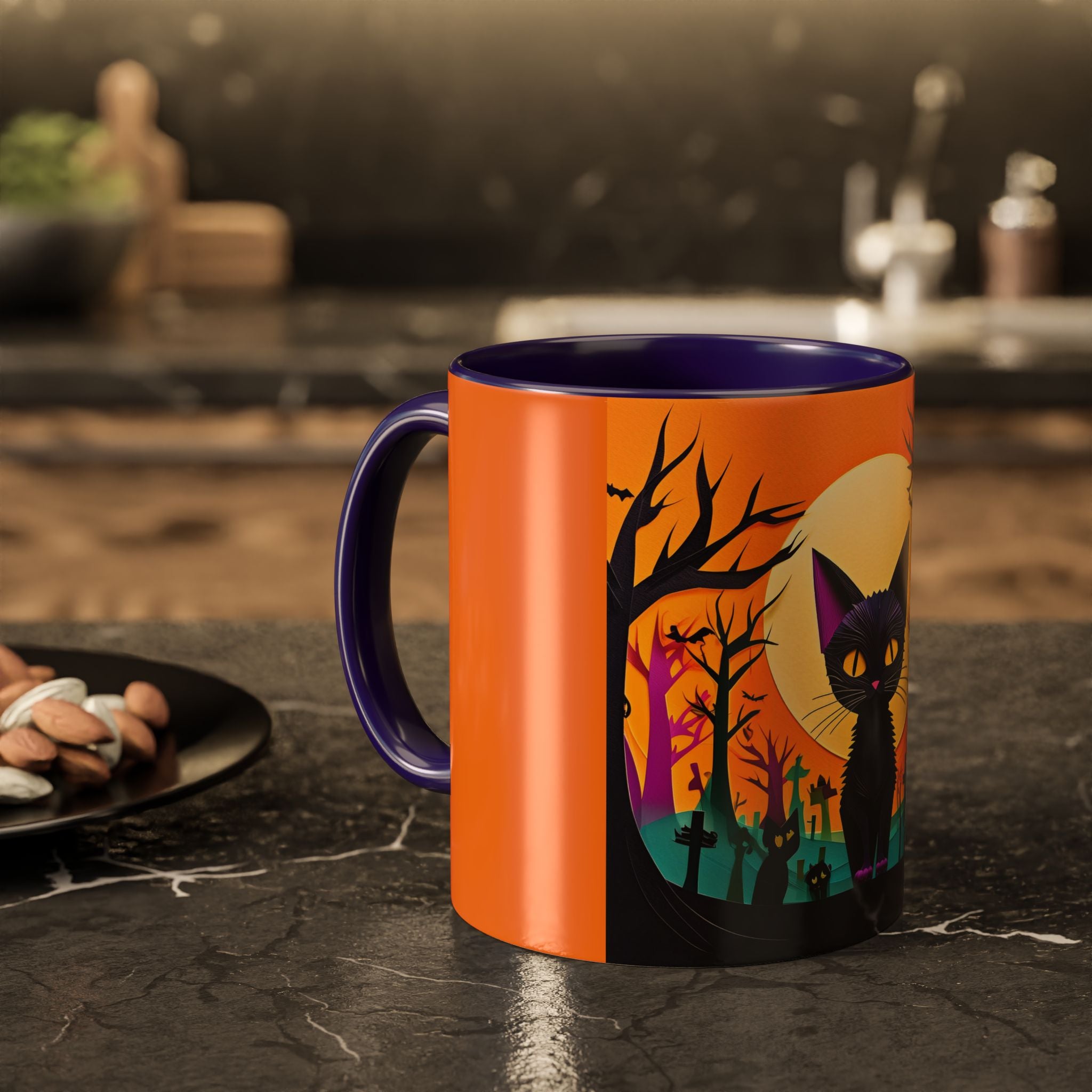 Mugs are a kitchen essential, and when infused with a Halloween touch, they become cherished seasonal favorites. These Halloween-themed mugs, available in 12 vibrant color choices, hold up to 11oz or 15oz of your favorite beverage and feature a colored handle and interior. The glossy finish adds an elegant accent that beautifully complements the spooky artwork, making them a delightful addition to your Halloween decor and a fantastic choice for thoughtful gifts.