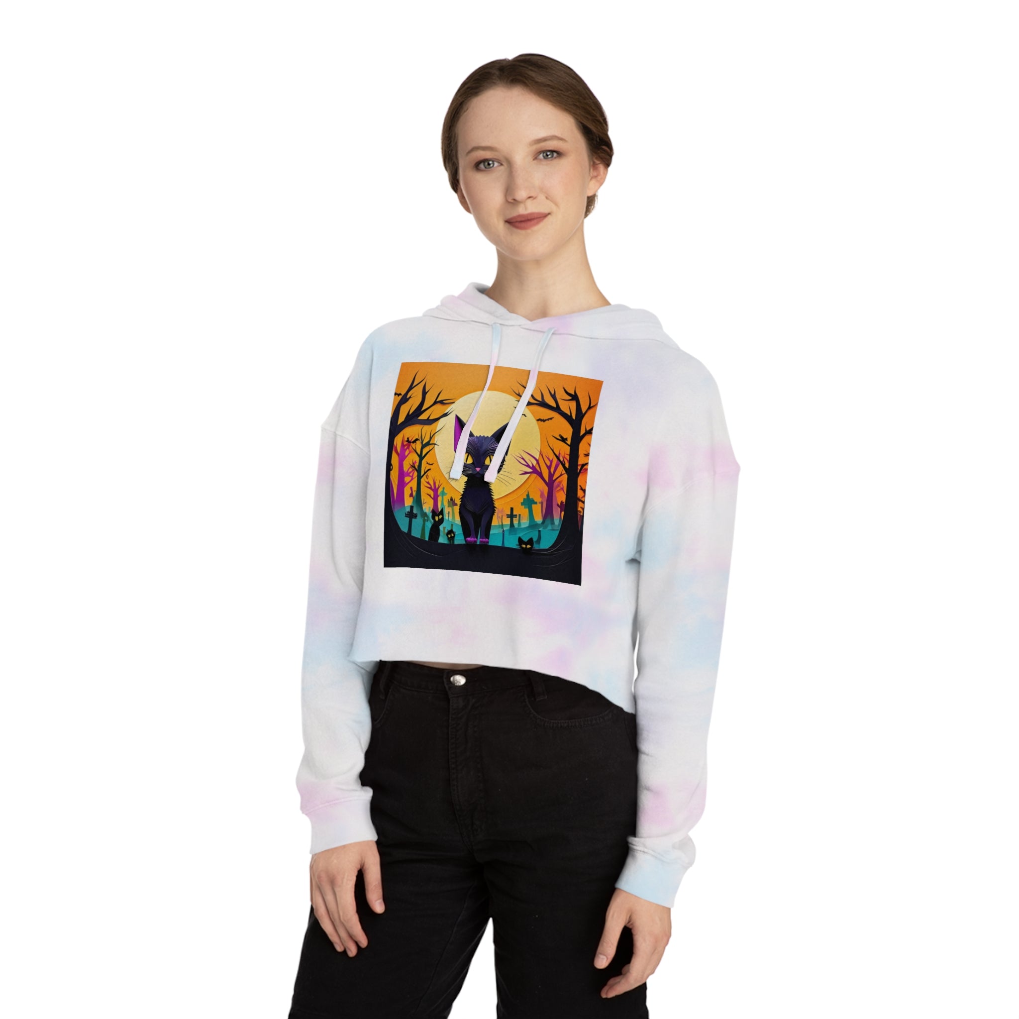 With its cropped style and Halloween-themed tie-dye pattern, this hooded sweatshirt is the perfect blend of spooky and chic. Crafted from a cozy ring-spun cotton/polyester blend fleece, with a 100% cotton face yarn, it feels silky soft to the touch. The 3/8” flat drawcord adds a stylish detail, making this sweatshirt a comfy and fashionable choice for embracing the Halloween season.