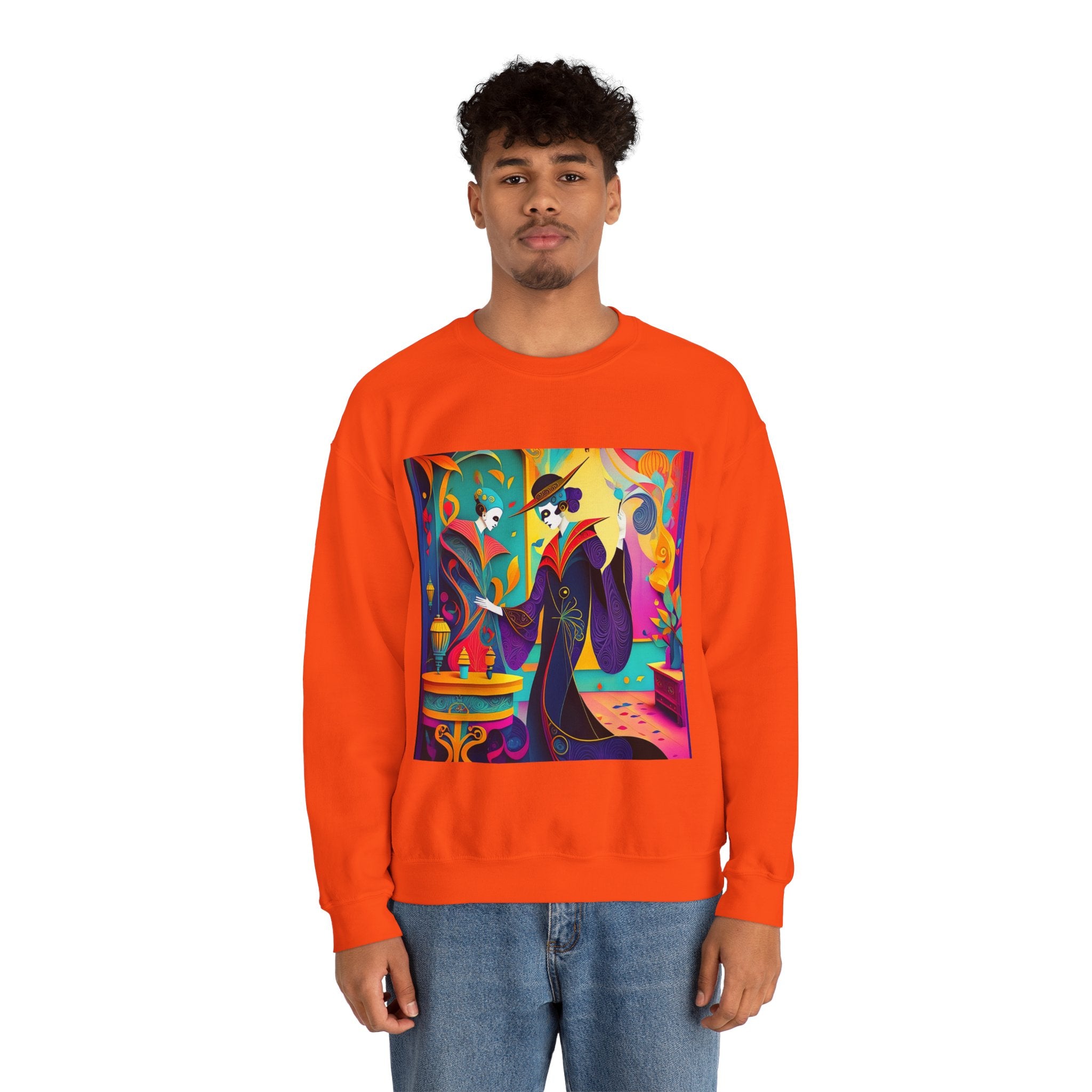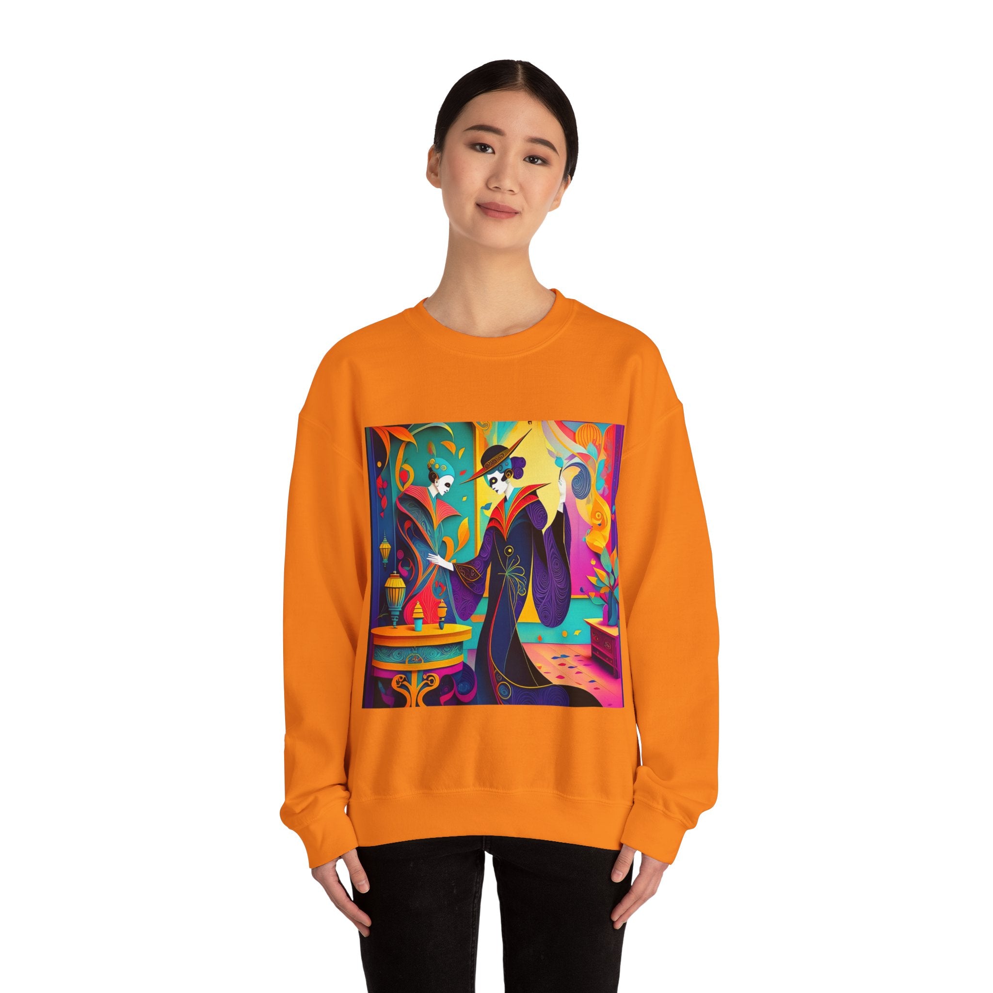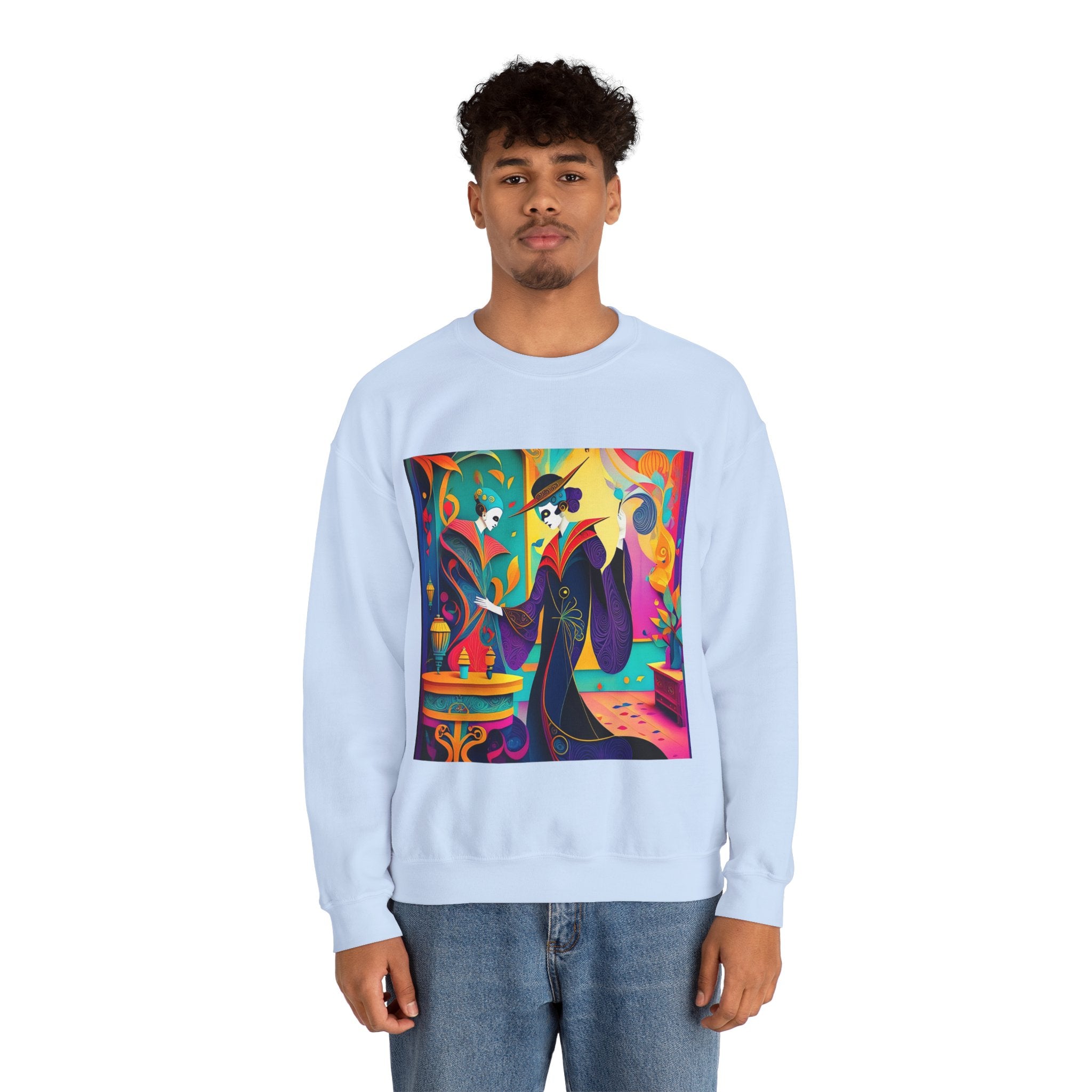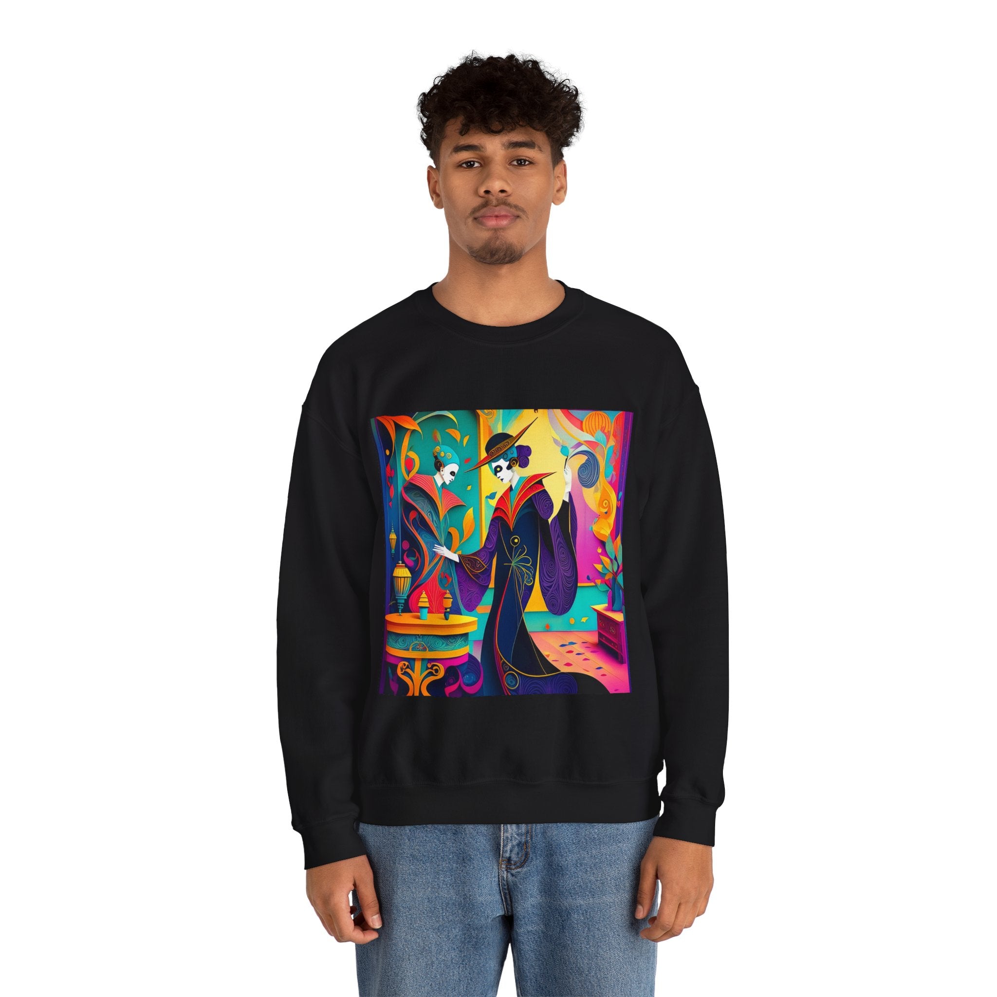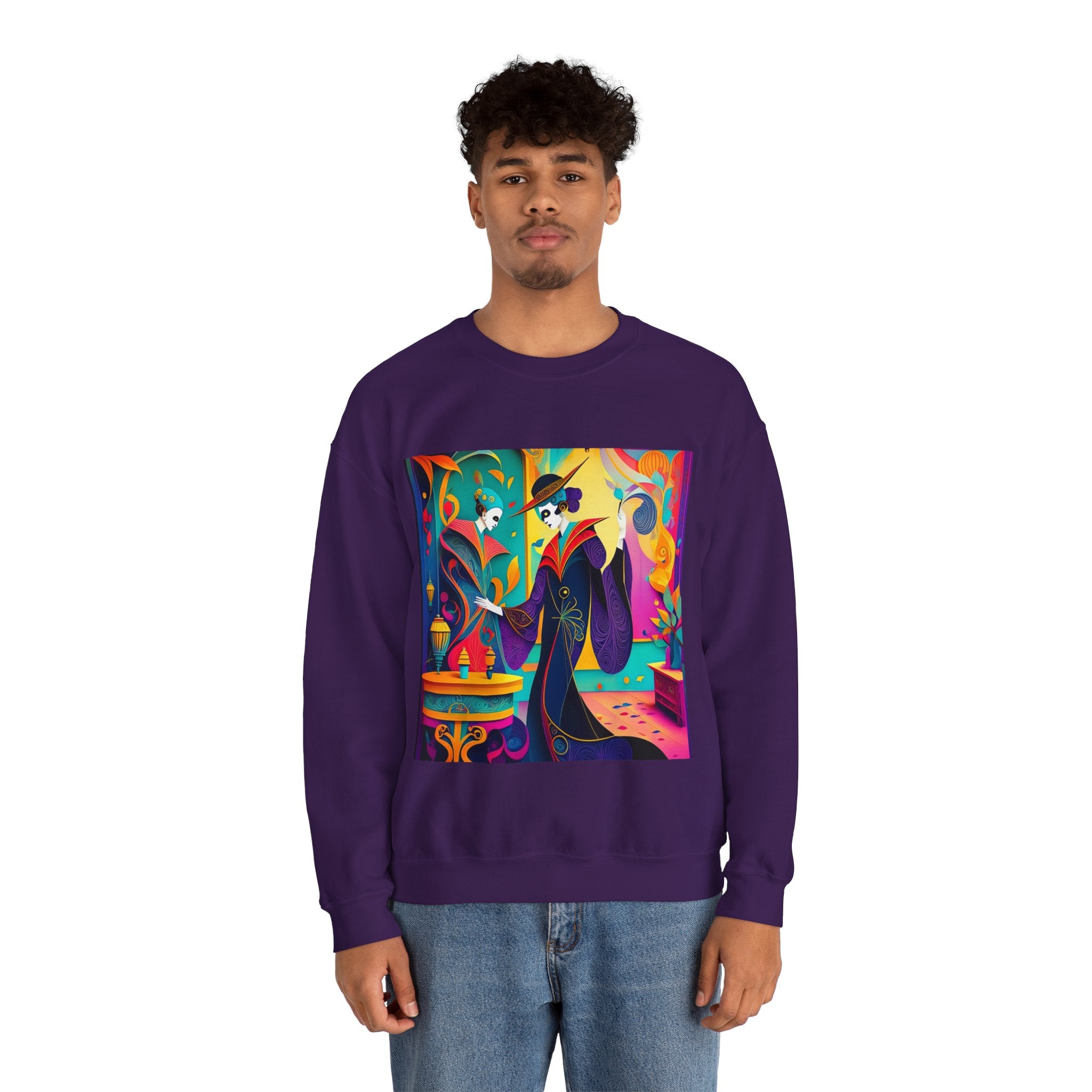 Perfect for embracing the Halloween spirit, the unisex heavy blend crewneck sweatshirt is the epitome of comfort and festive style. Made from a cozy blend of 50% polyester and 50% cotton, this medium-heavy fabric ensures that the Halloween-themed artwork appears fresh and vibrant. The ribbed knit collar maintains its shape even after numerous washes, and the absence of itchy side seams enhances comfort. With a classic fit and crew neckline, this sweatshirt offers a cozy wearing experience with a clean, stylish look, while the double-needle stitching at critical seams guarantees exceptional durability.