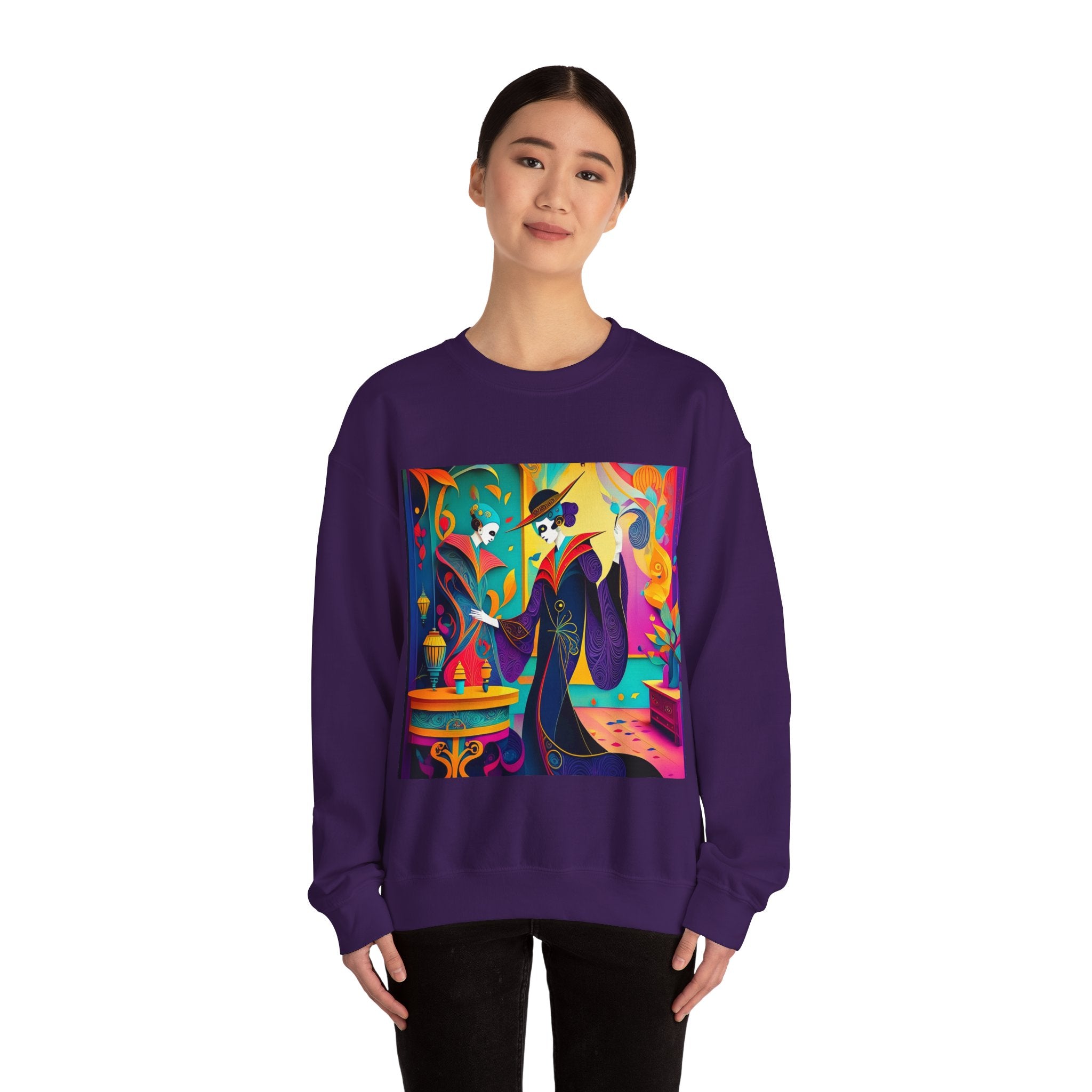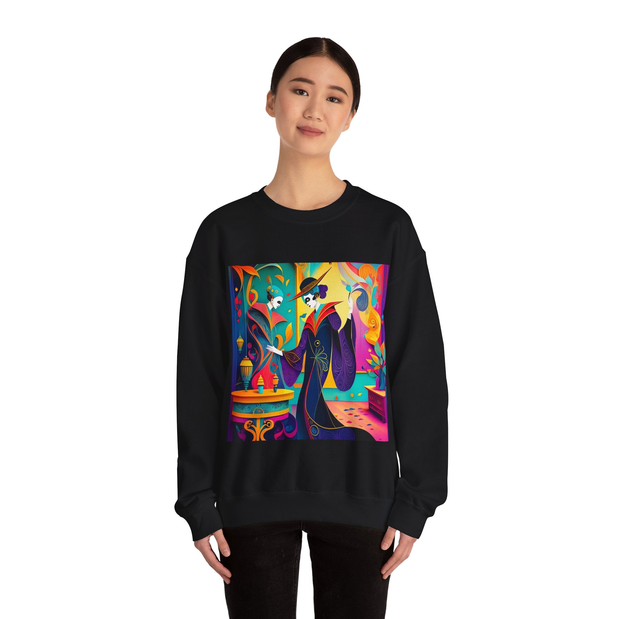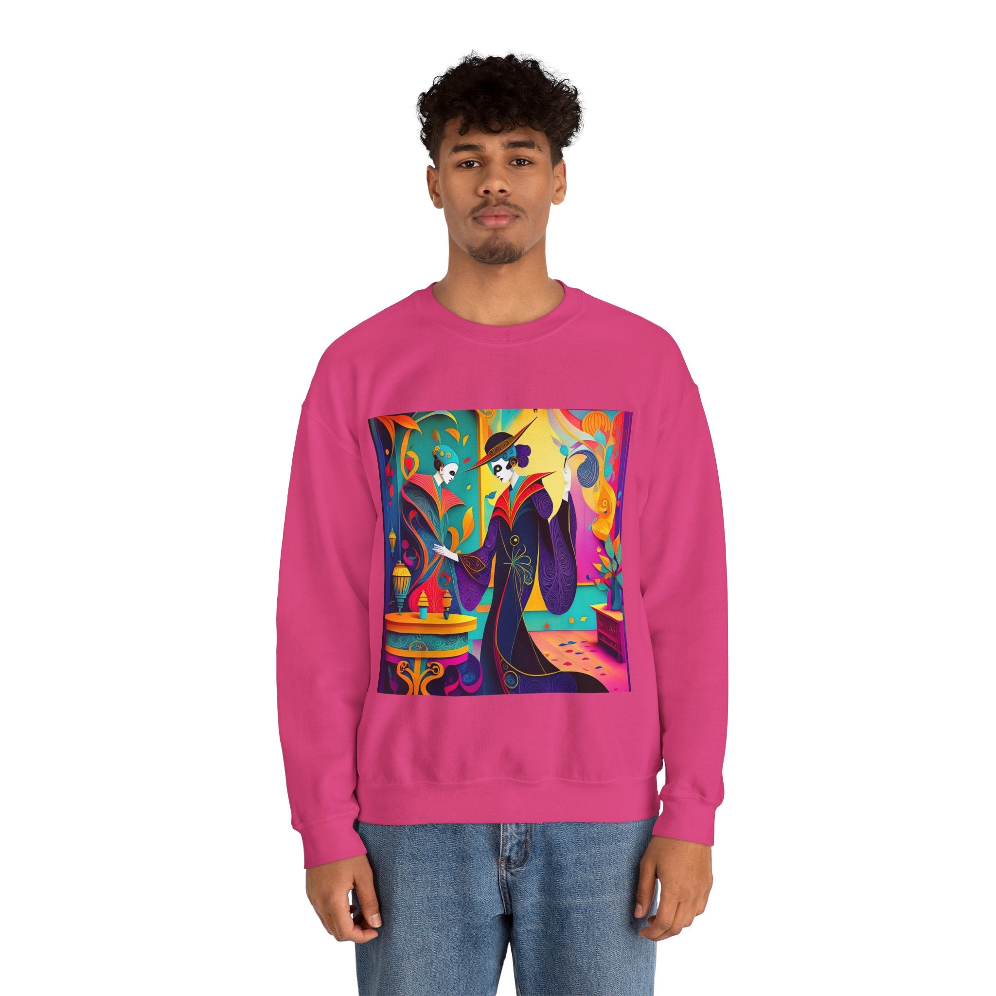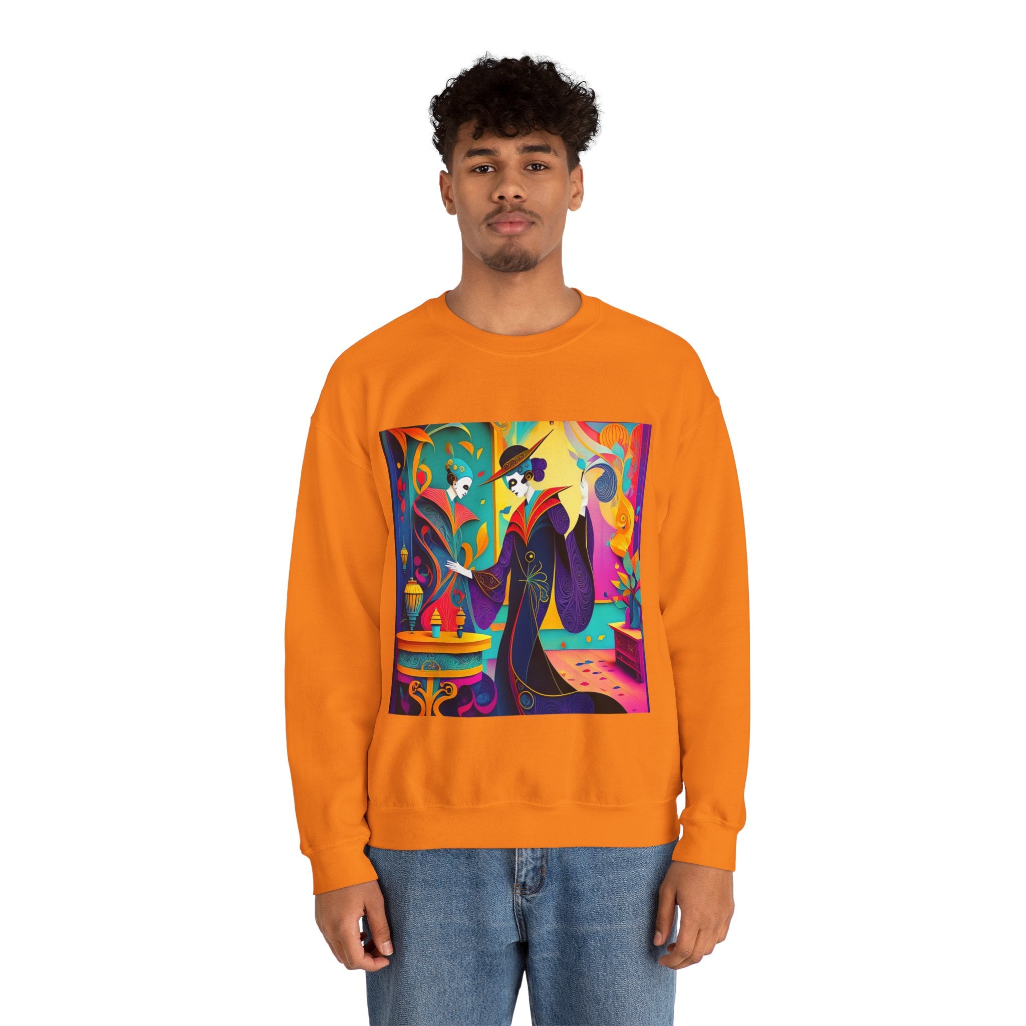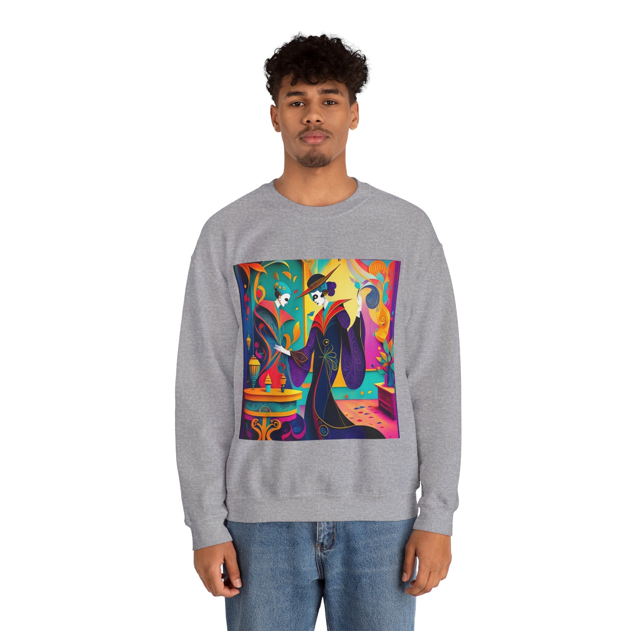 Perfect for embracing the Halloween spirit, the unisex heavy blend crewneck sweatshirt is the epitome of comfort and festive style. Made from a cozy blend of 50% polyester and 50% cotton, this medium-heavy fabric ensures that the Halloween-themed artwork appears fresh and vibrant. The ribbed knit collar maintains its shape even after numerous washes, and the absence of itchy side seams enhances comfort. With a classic fit and crew neckline, this sweatshirt offers a cozy wearing experience with a clean, stylish look, while the double-needle stitching at critical seams guarantees exceptional durability.