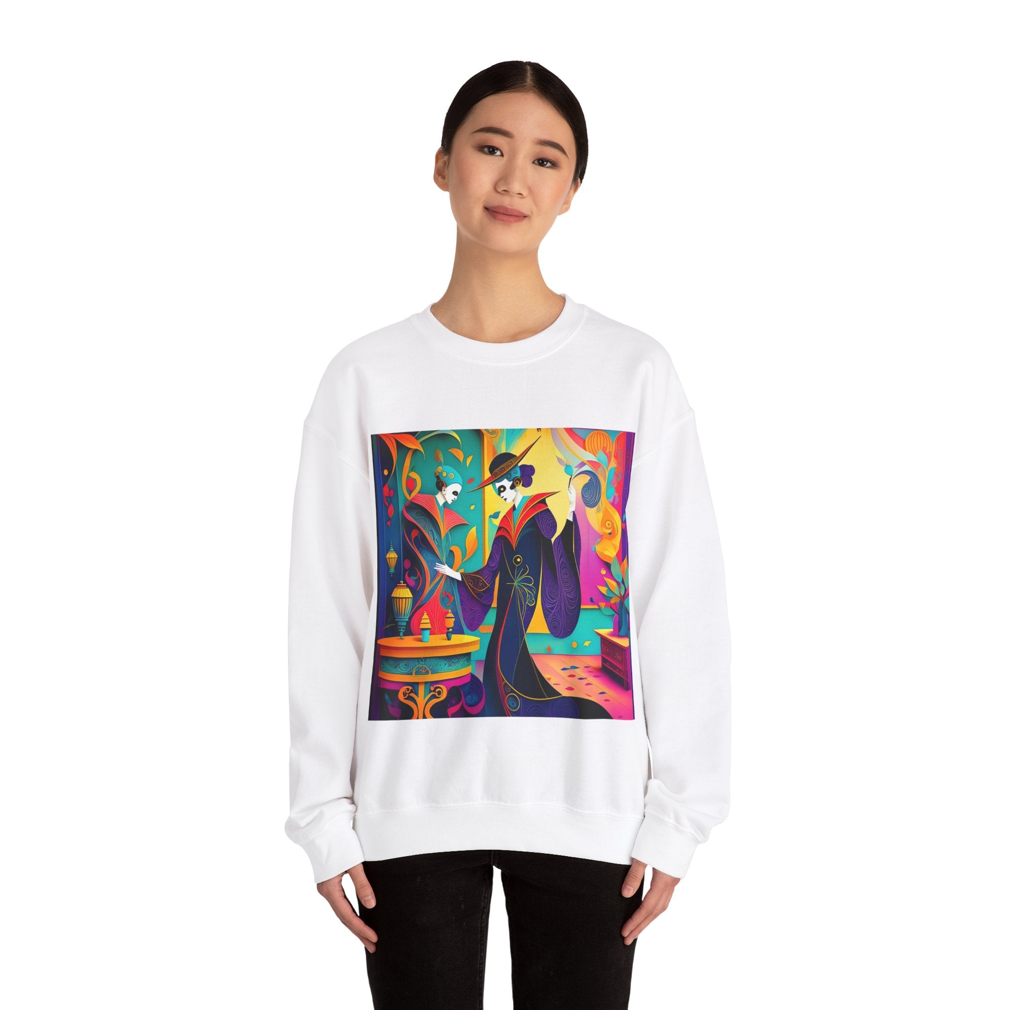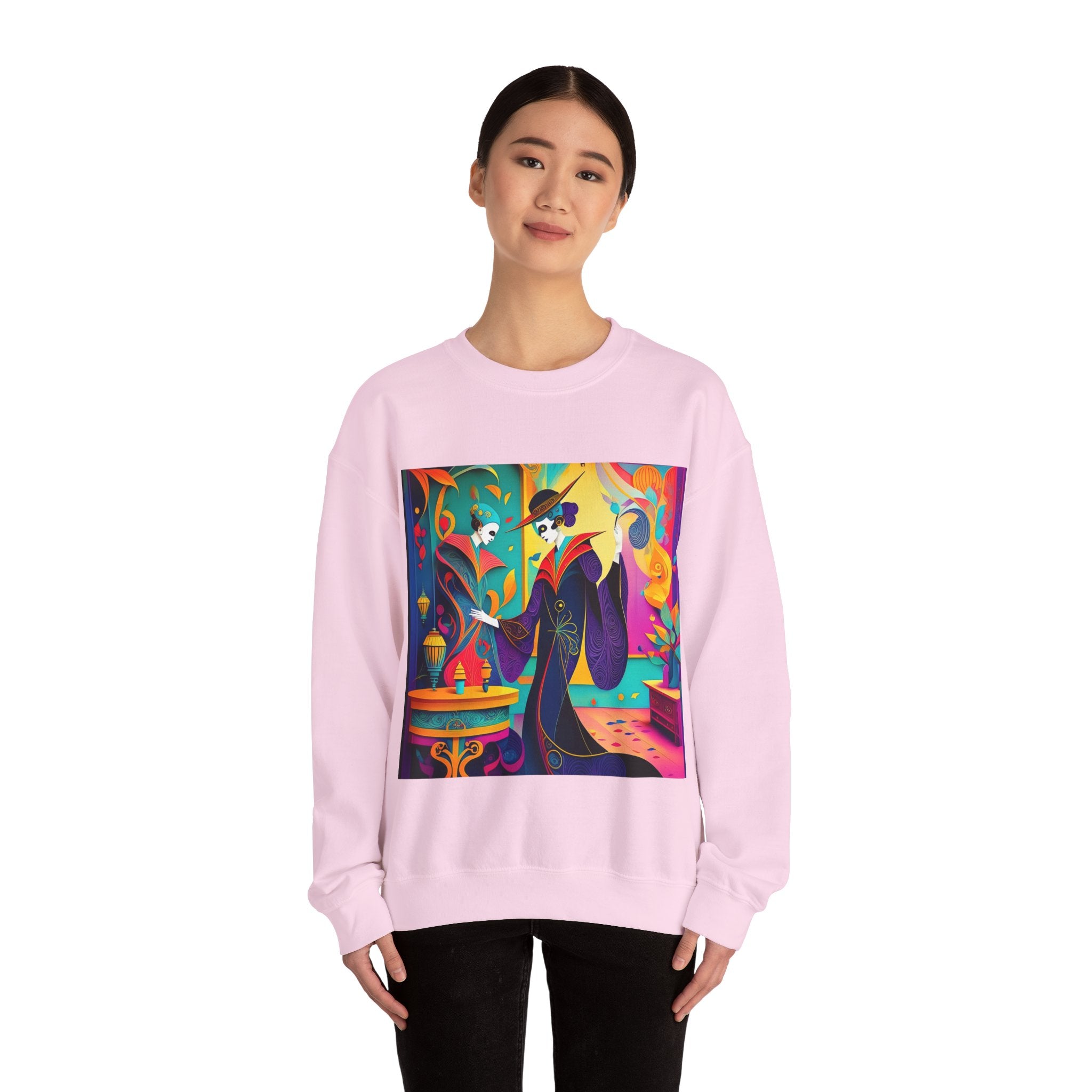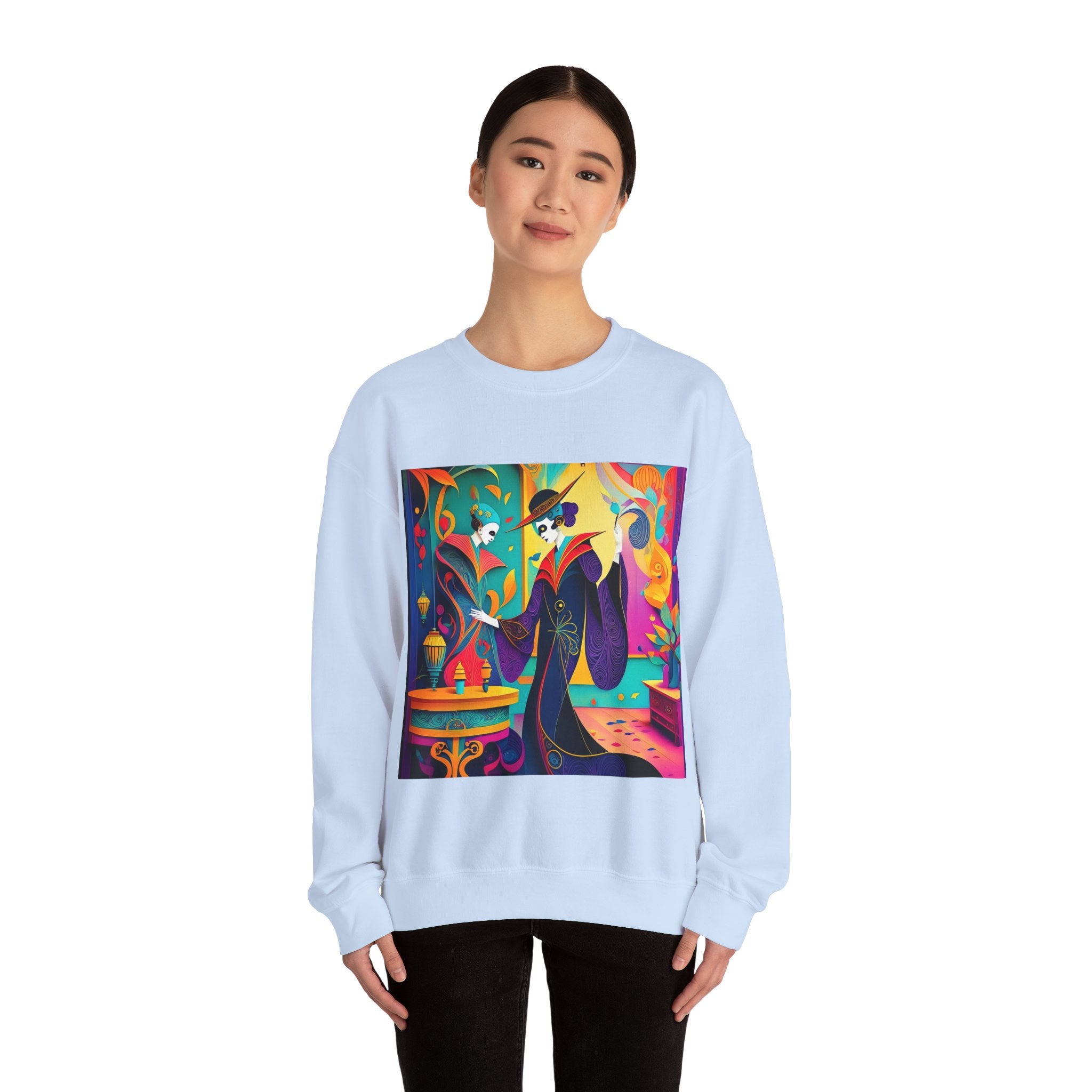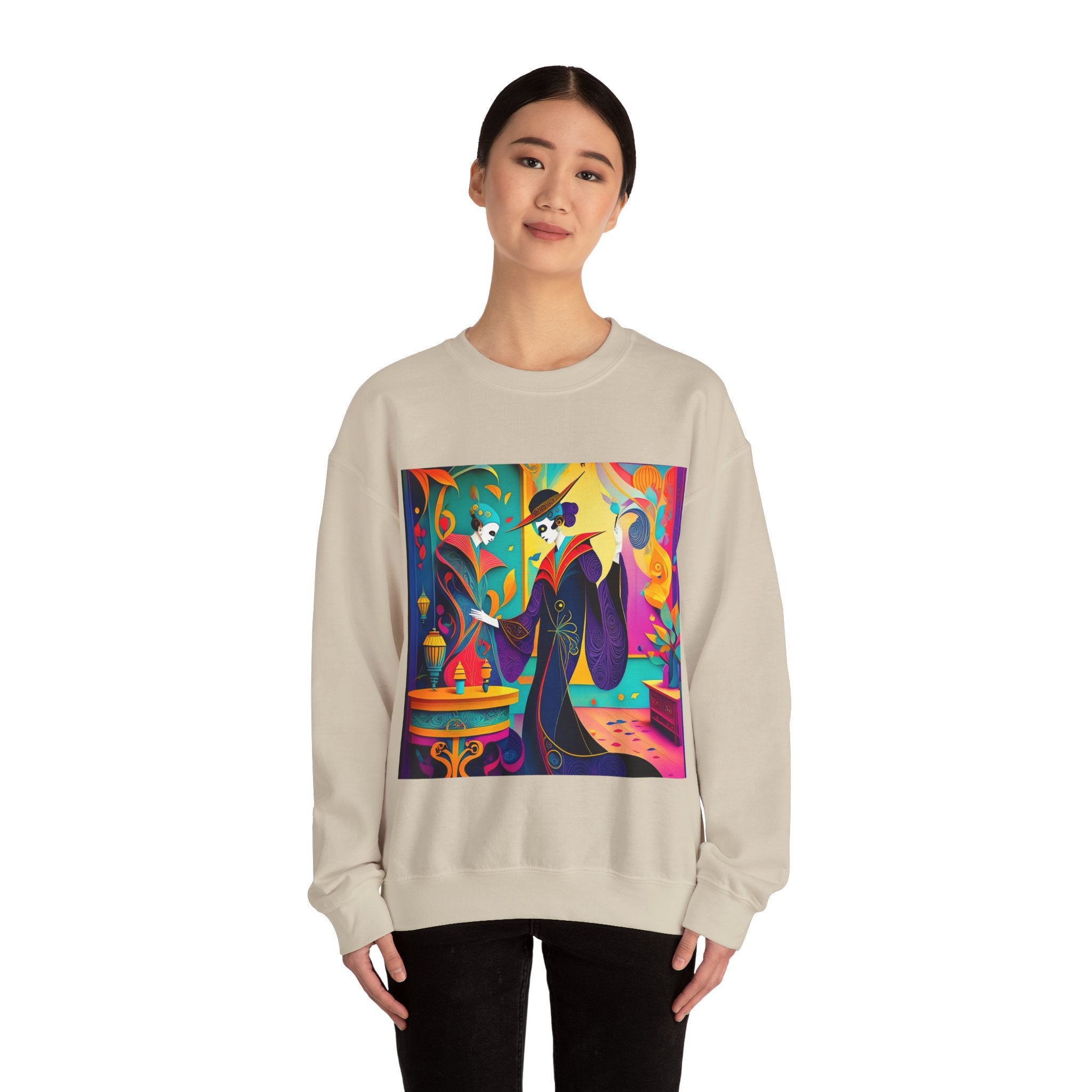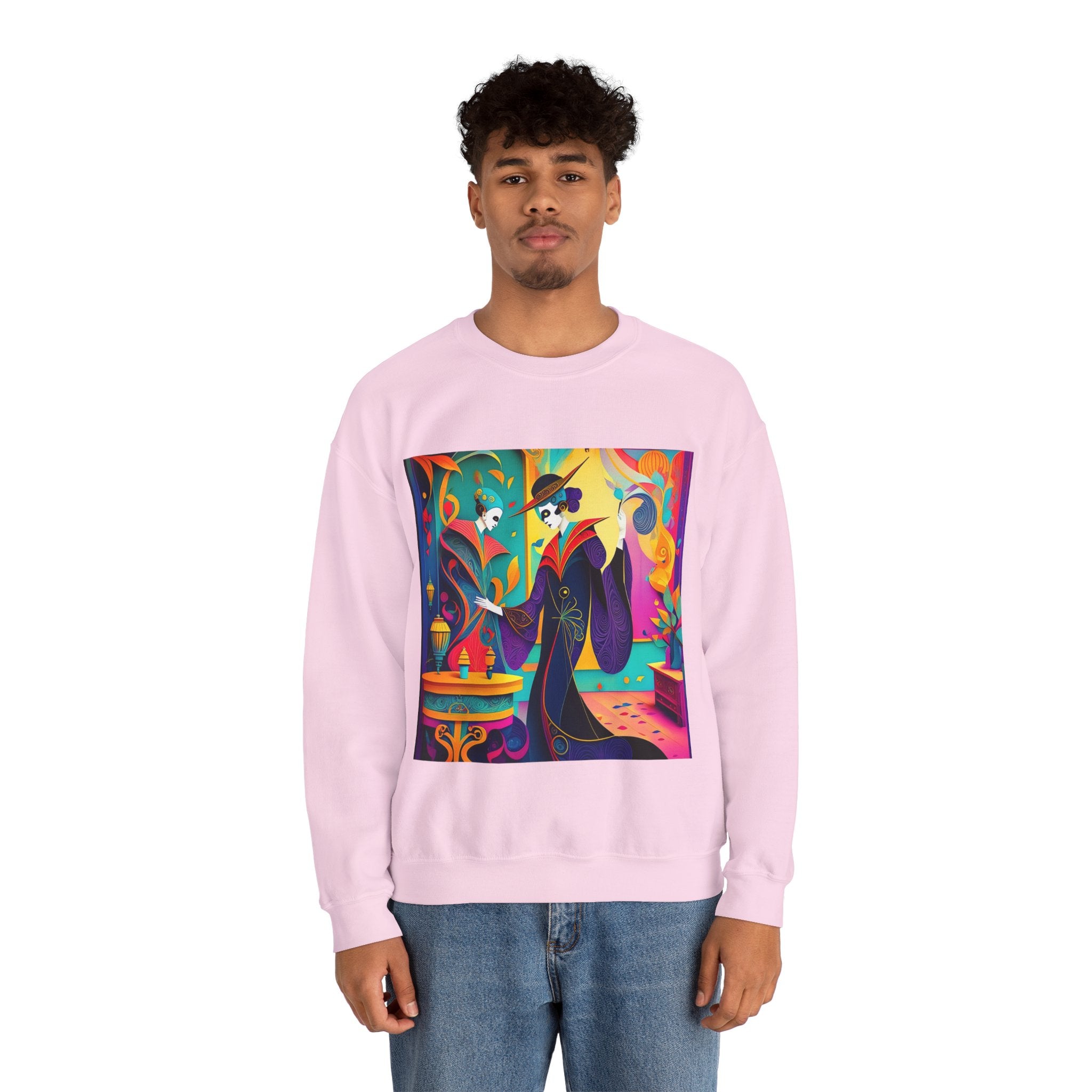 Perfect for embracing the Halloween spirit, the unisex heavy blend crewneck sweatshirt is the epitome of comfort and festive style. Made from a cozy blend of 50% polyester and 50% cotton, this medium-heavy fabric ensures that the Halloween-themed artwork appears fresh and vibrant. The ribbed knit collar maintains its shape even after numerous washes, and the absence of itchy side seams enhances comfort. With a classic fit and crew neckline, this sweatshirt offers a cozy wearing experience with a clean, stylish look, while the double-needle stitching at critical seams guarantees exceptional durability.