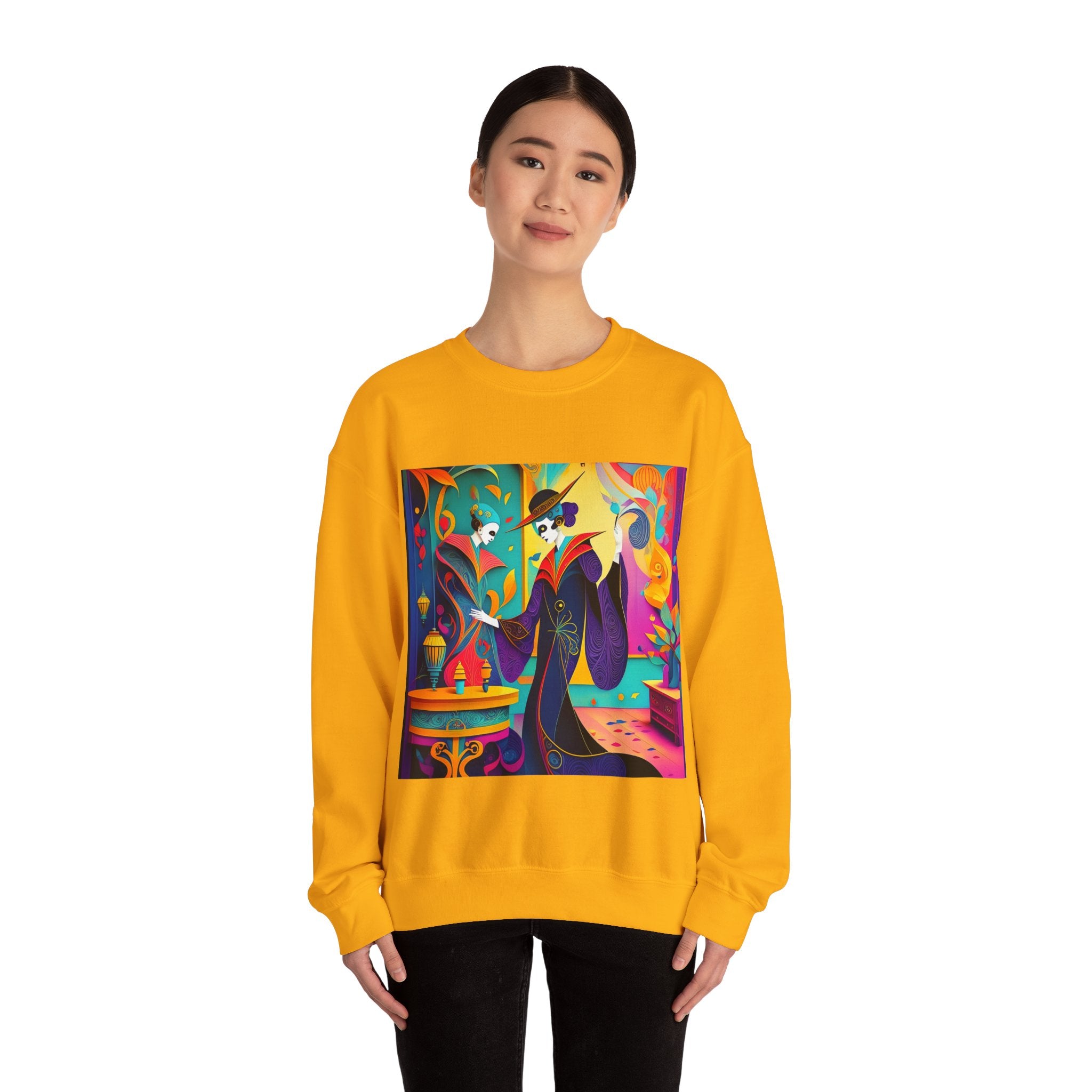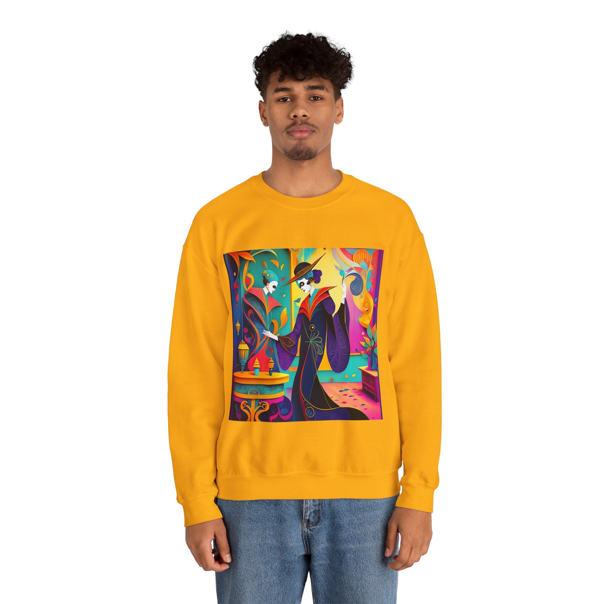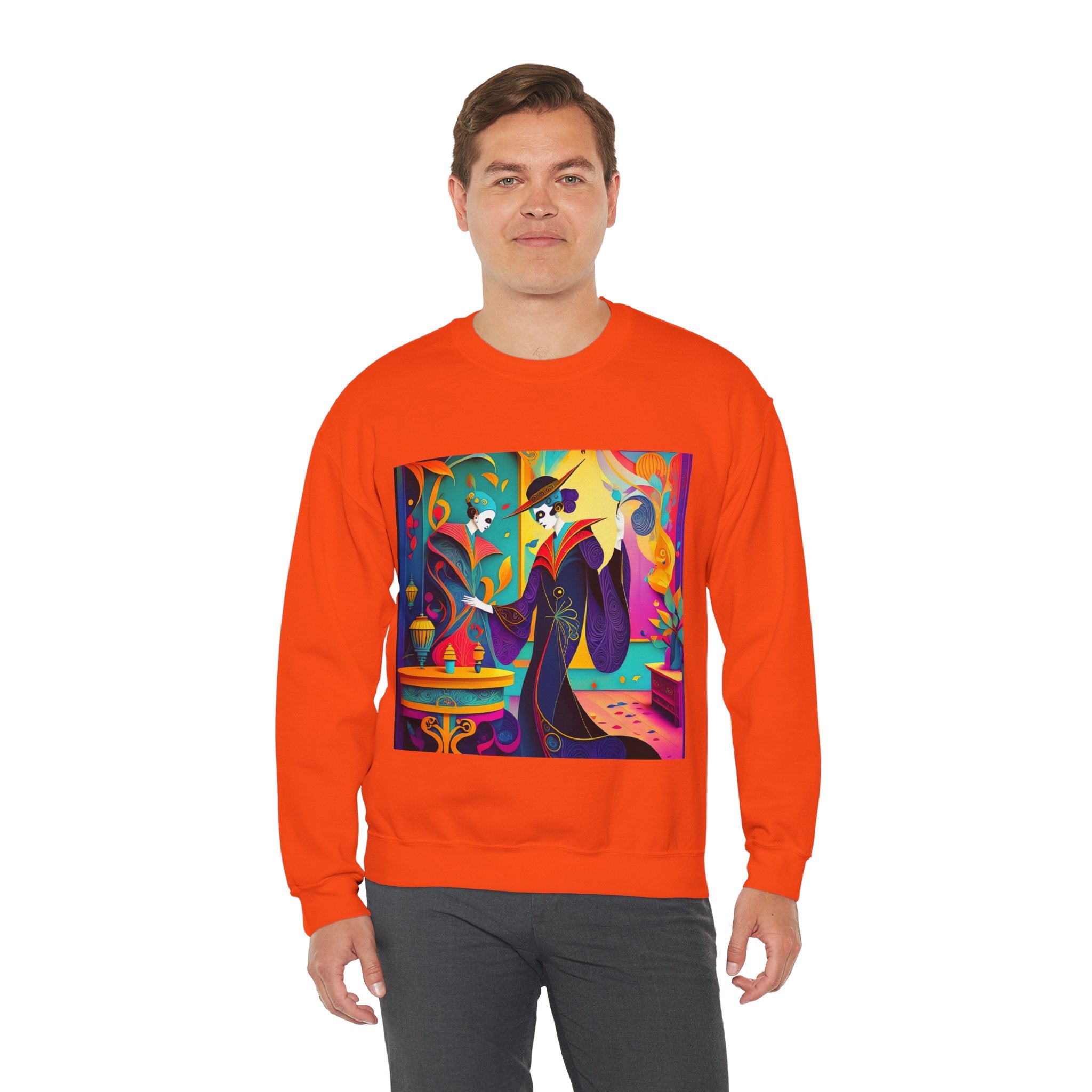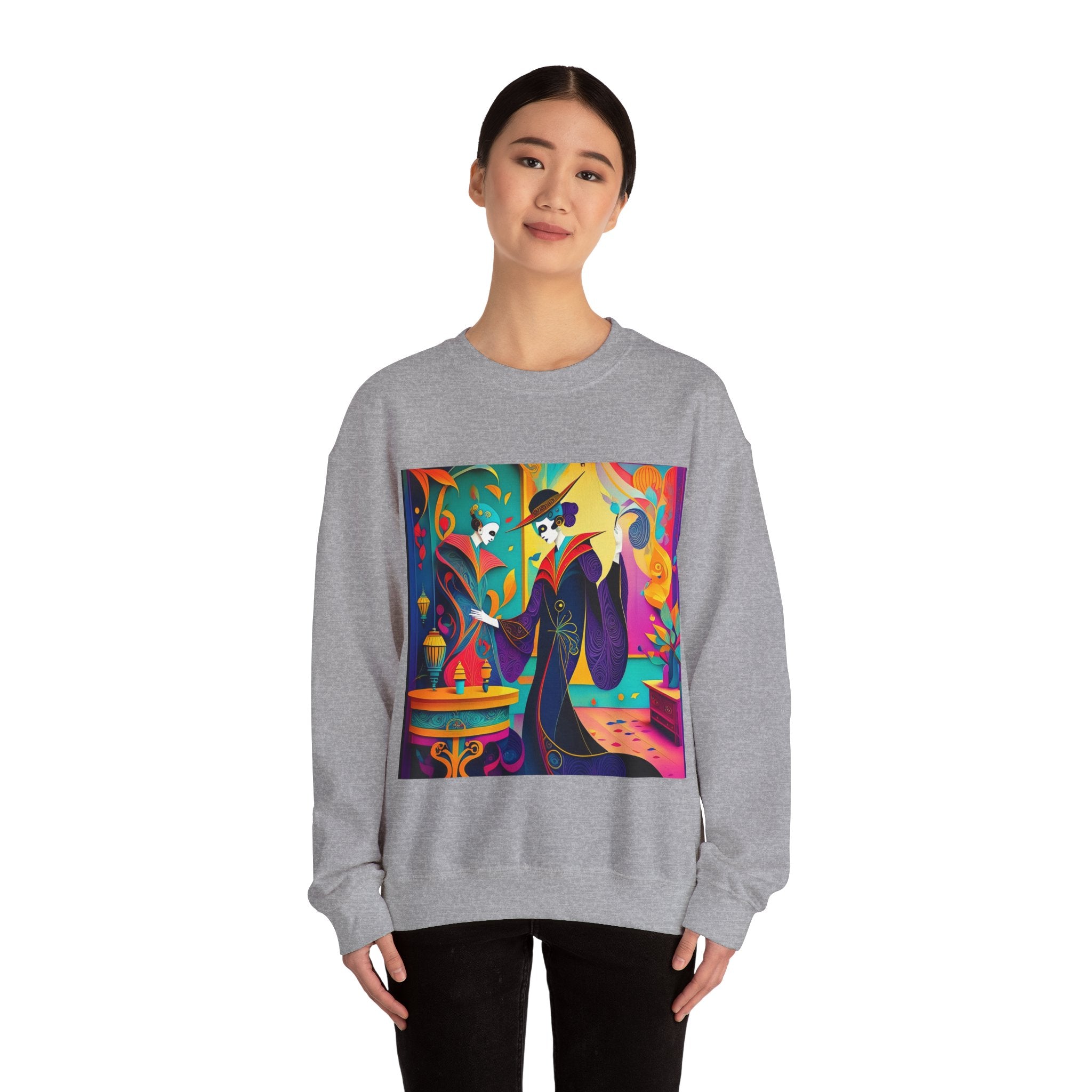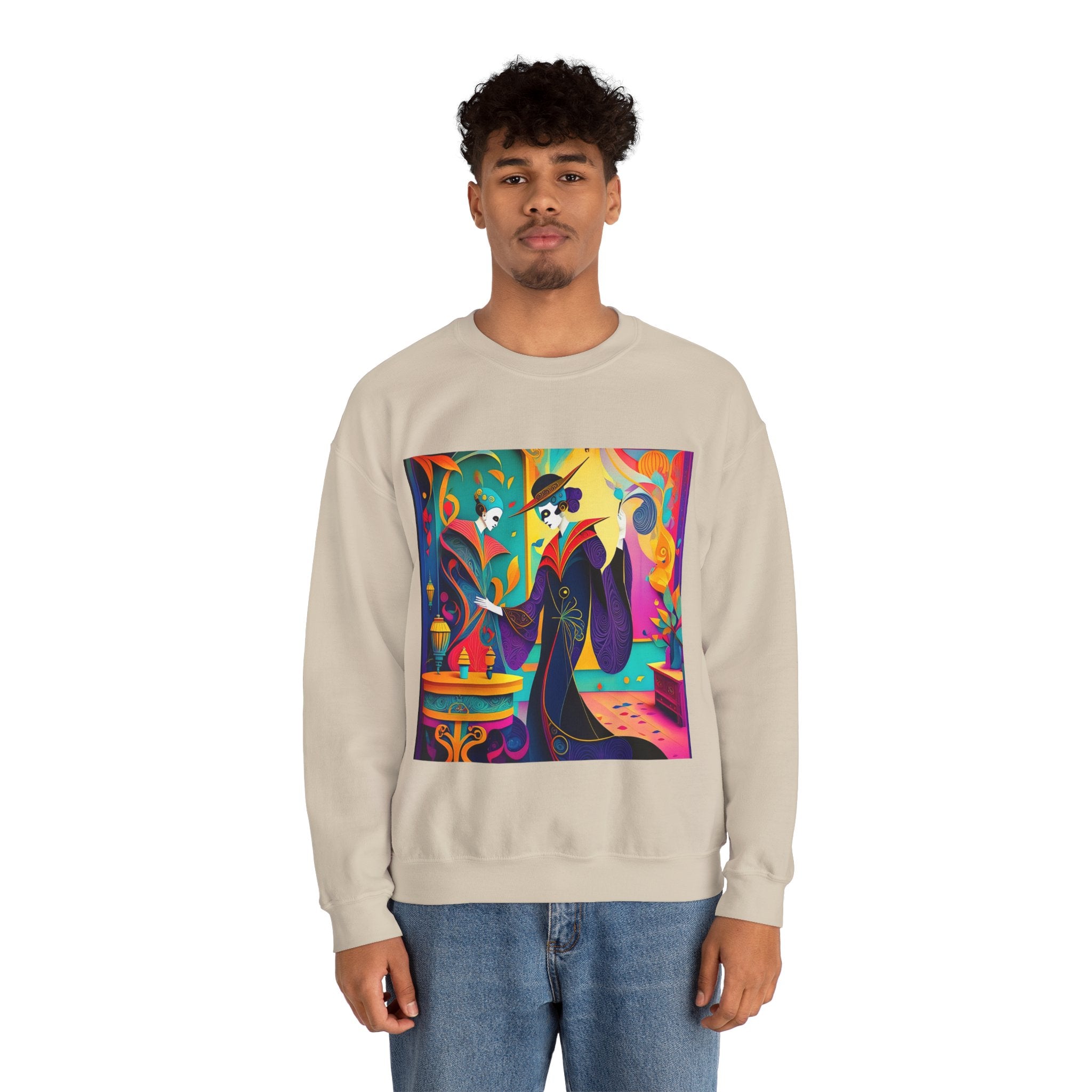 Perfect for embracing the Halloween spirit, the unisex heavy blend crewneck sweatshirt is the epitome of comfort and festive style. Made from a cozy blend of 50% polyester and 50% cotton, this medium-heavy fabric ensures that the Halloween-themed artwork appears fresh and vibrant. The ribbed knit collar maintains its shape even after numerous washes, and the absence of itchy side seams enhances comfort. With a classic fit and crew neckline, this sweatshirt offers a cozy wearing experience with a clean, stylish look, while the double-needle stitching at critical seams guarantees exceptional durability.
