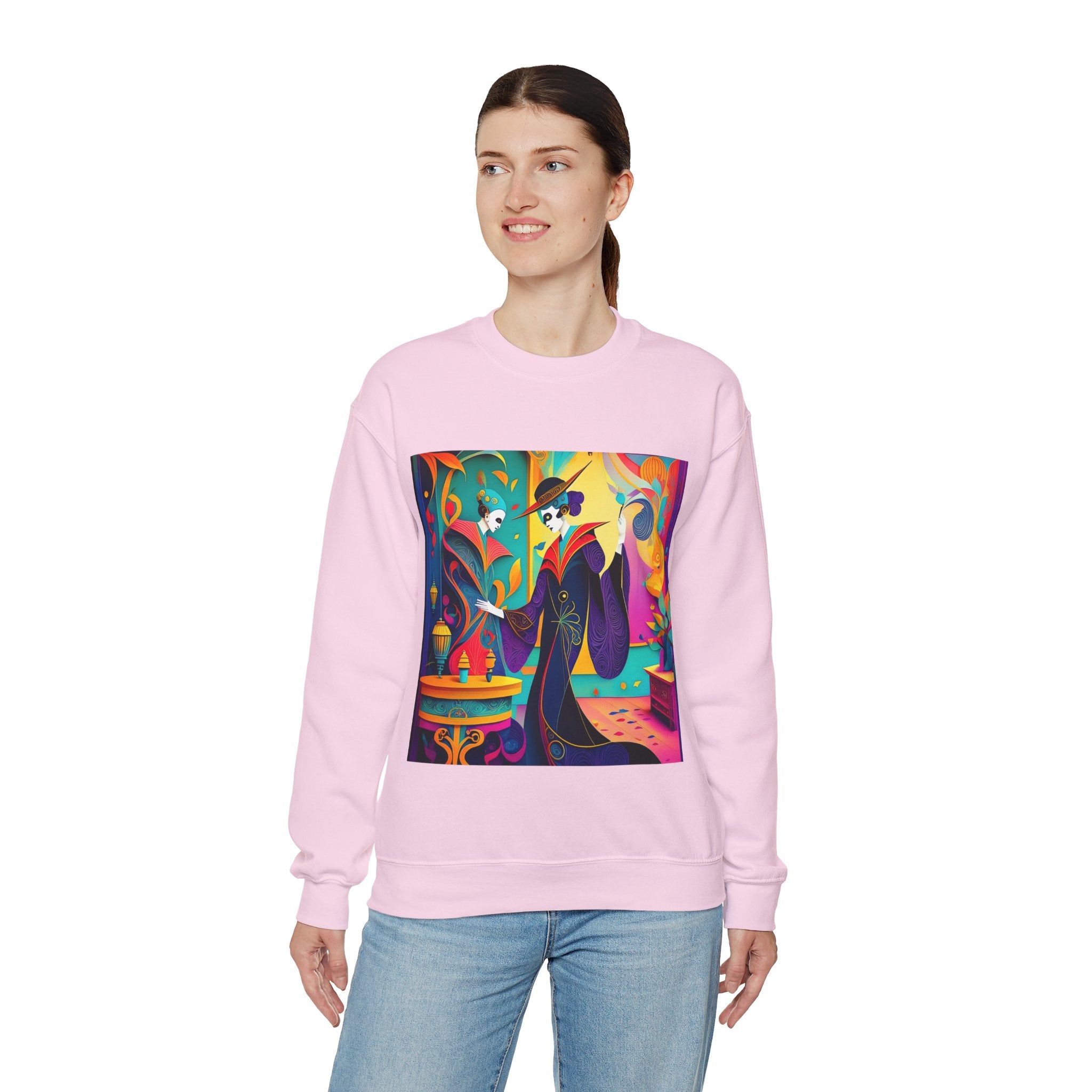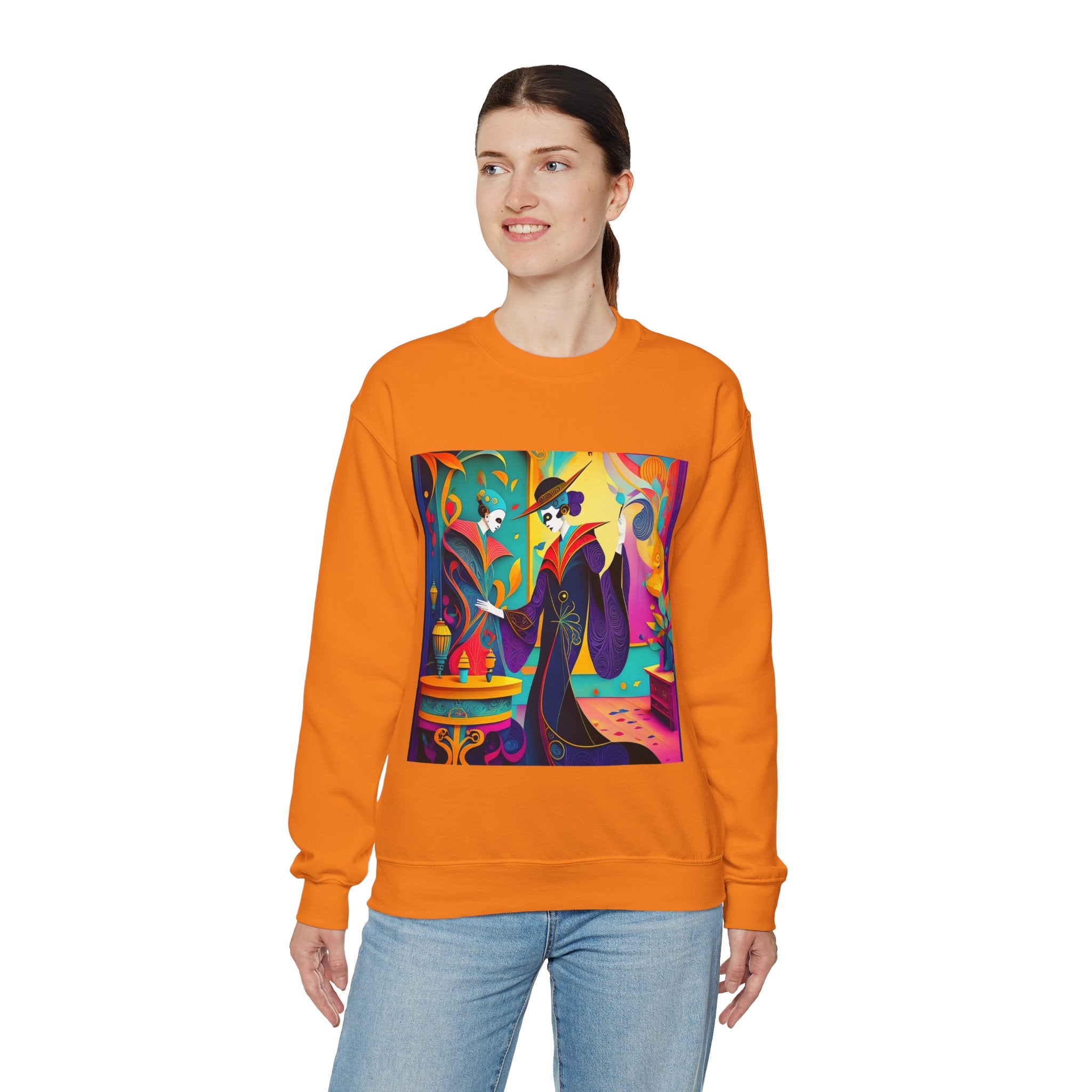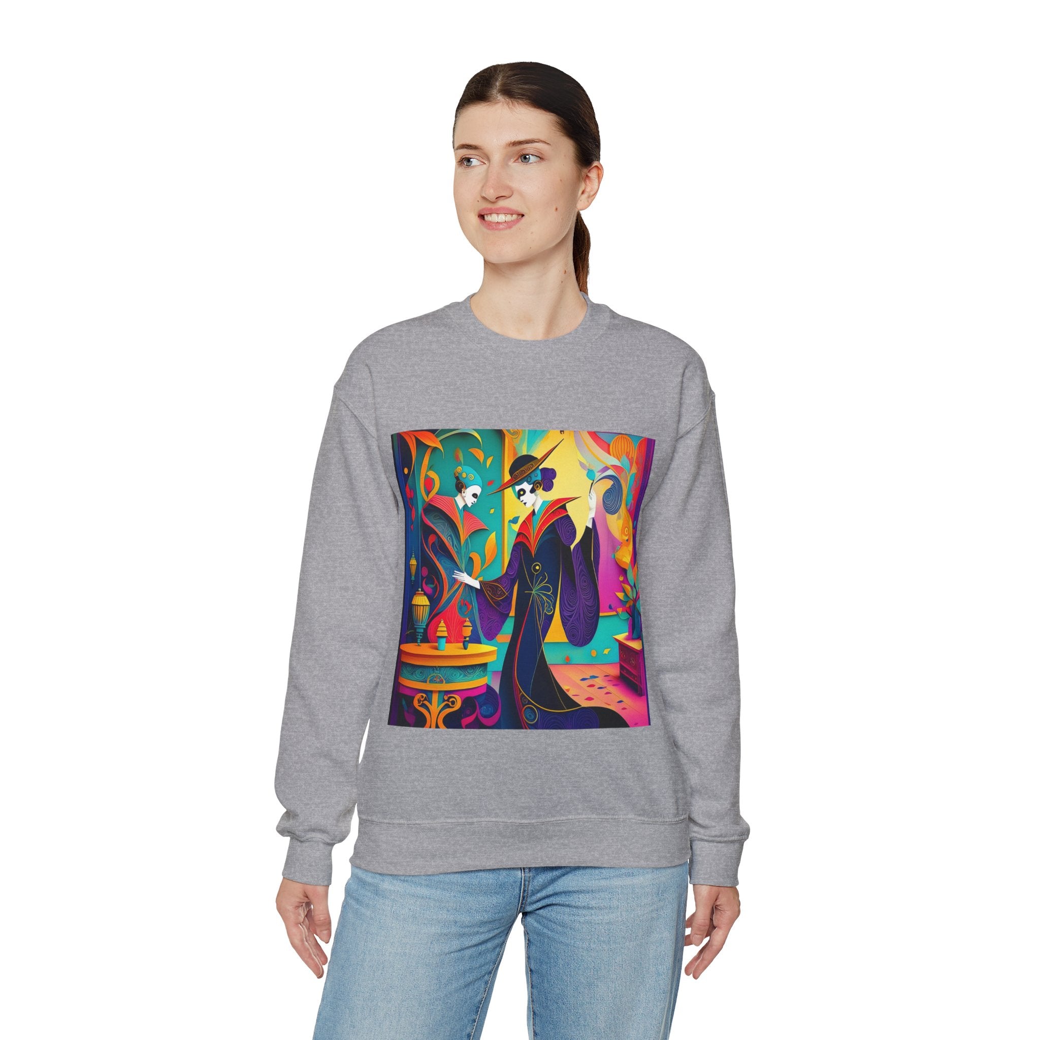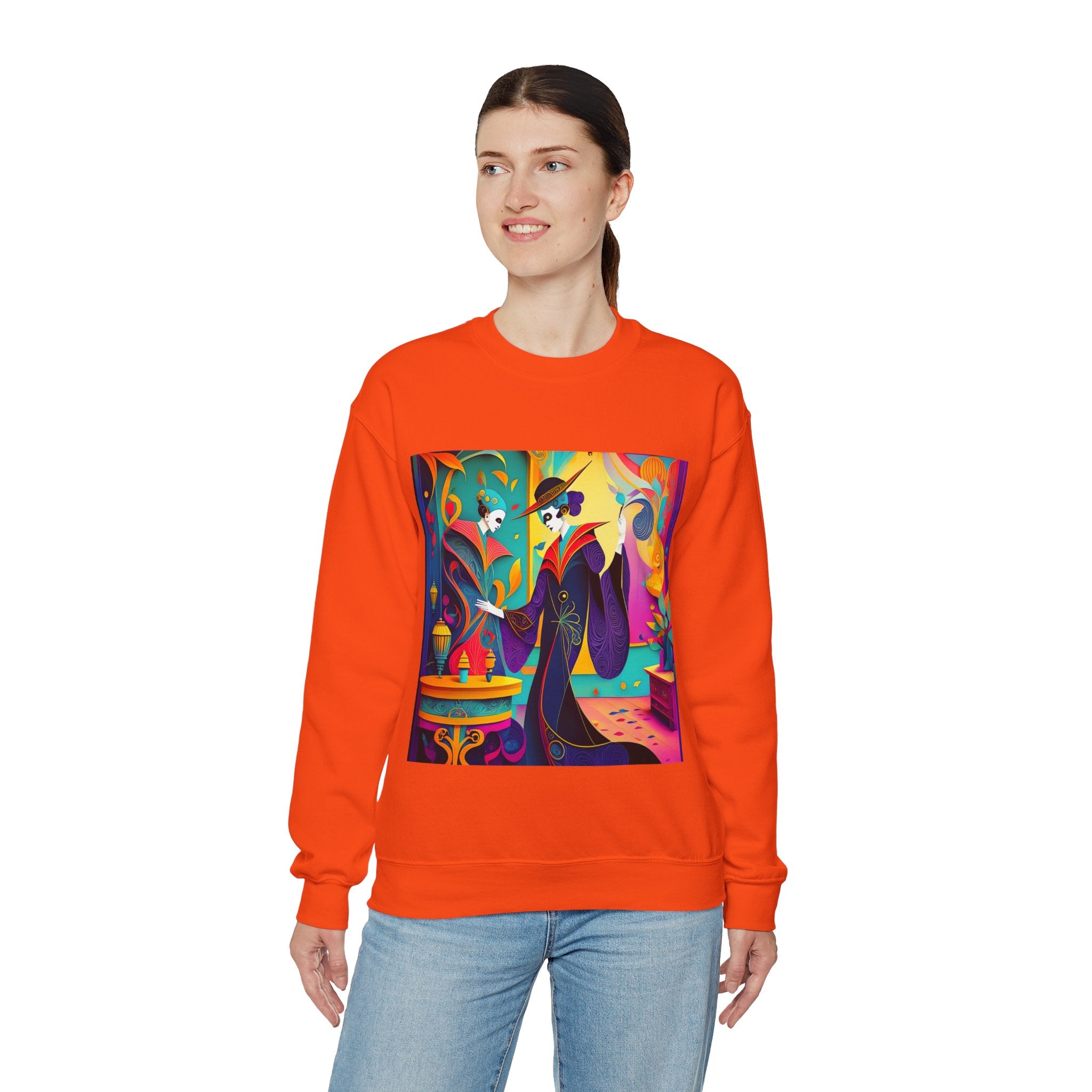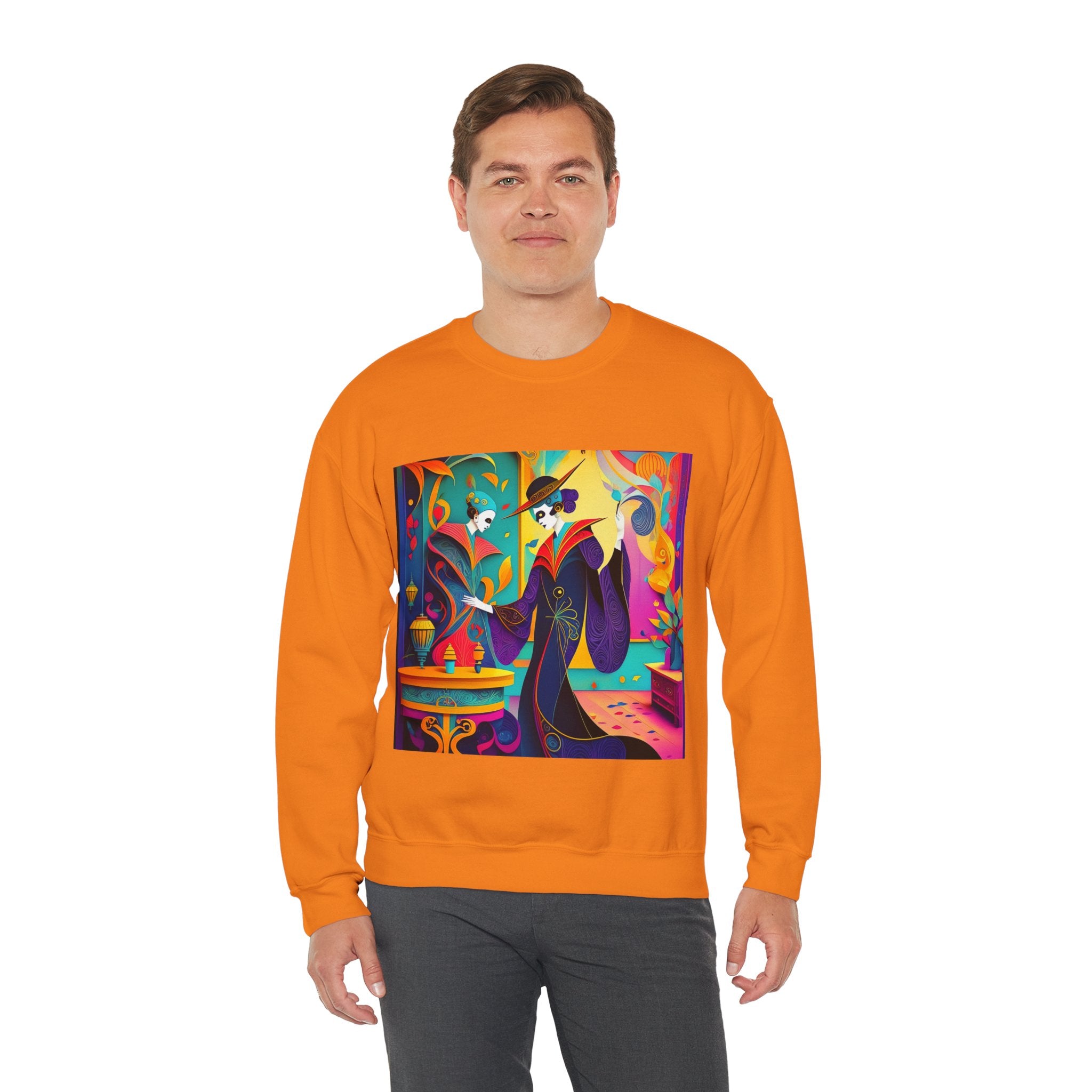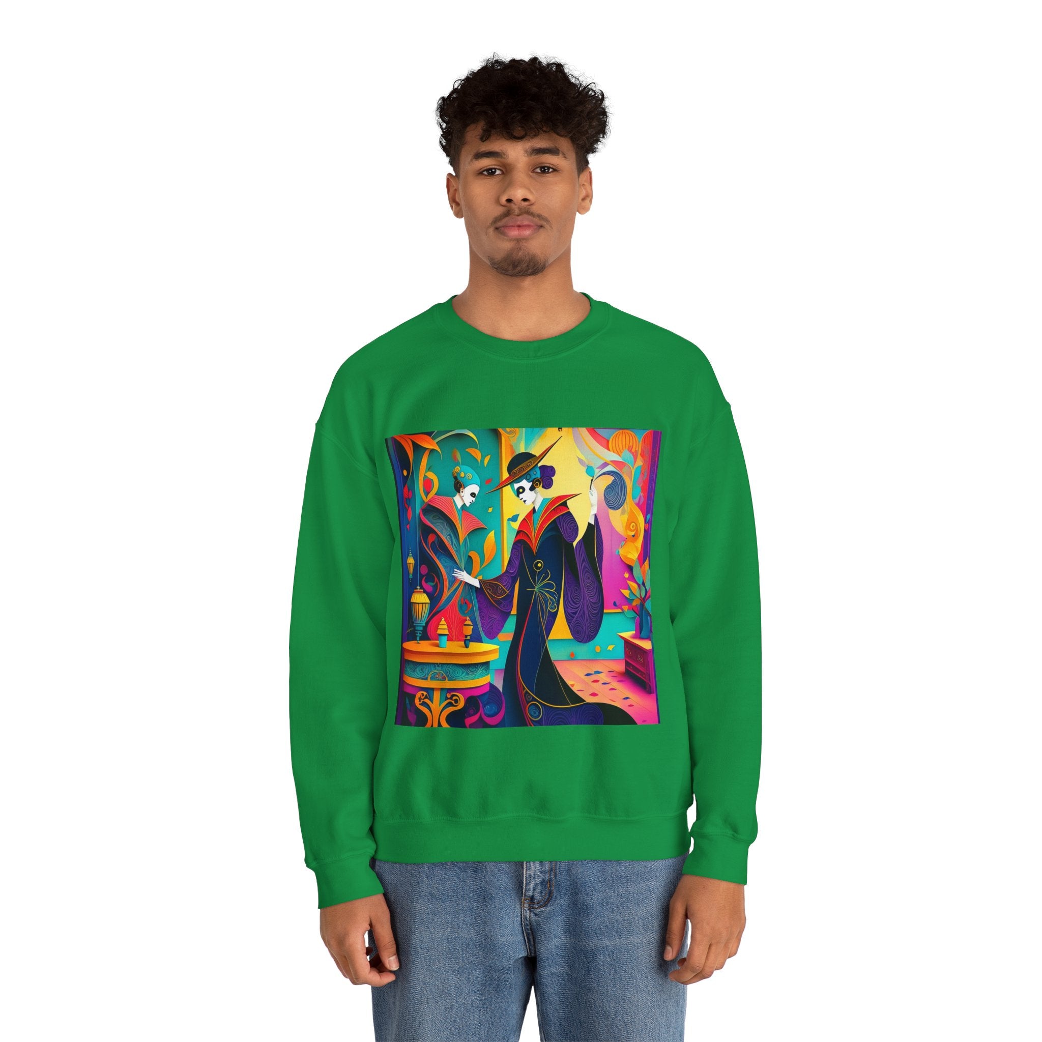 Perfect for embracing the Halloween spirit, the unisex heavy blend crewneck sweatshirt is the epitome of comfort and festive style. Made from a cozy blend of 50% polyester and 50% cotton, this medium-heavy fabric ensures that the Halloween-themed artwork appears fresh and vibrant. The ribbed knit collar maintains its shape even after numerous washes, and the absence of itchy side seams enhances comfort. With a classic fit and crew neckline, this sweatshirt offers a cozy wearing experience with a clean, stylish look, while the double-needle stitching at critical seams guarantees exceptional durability.