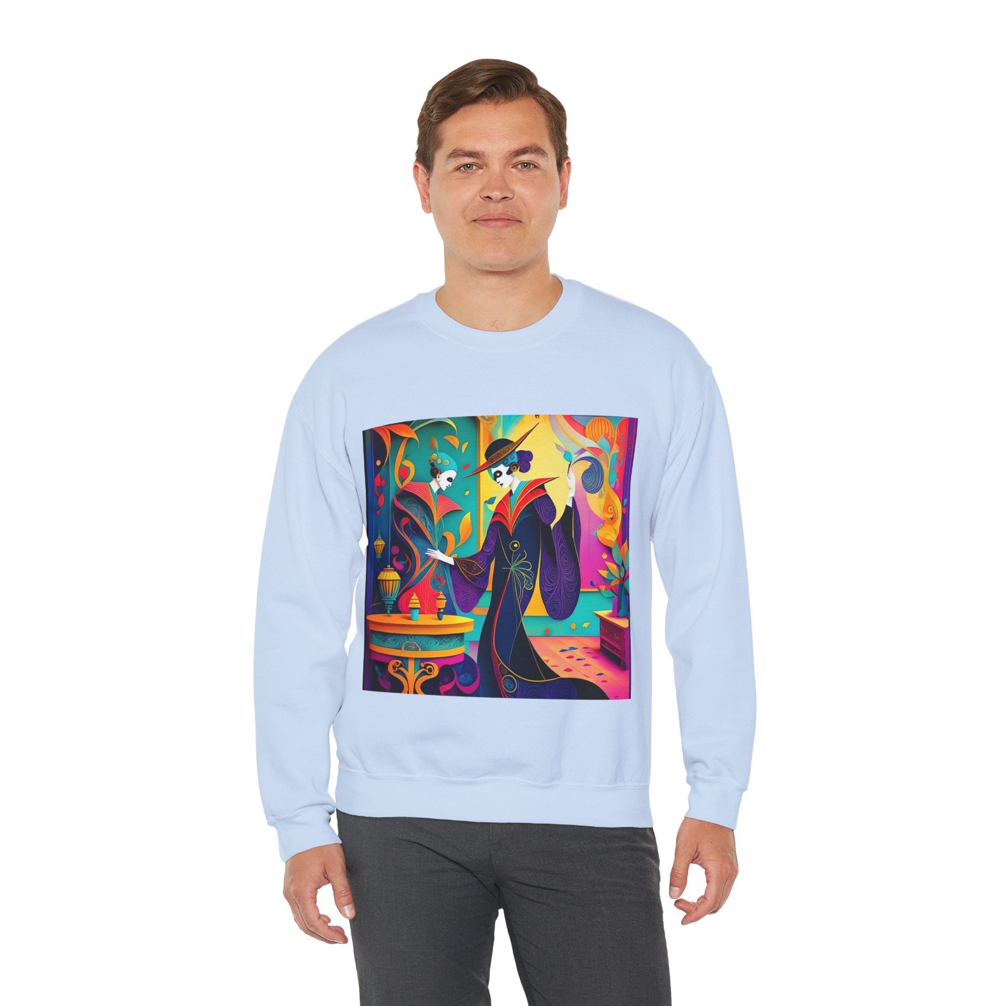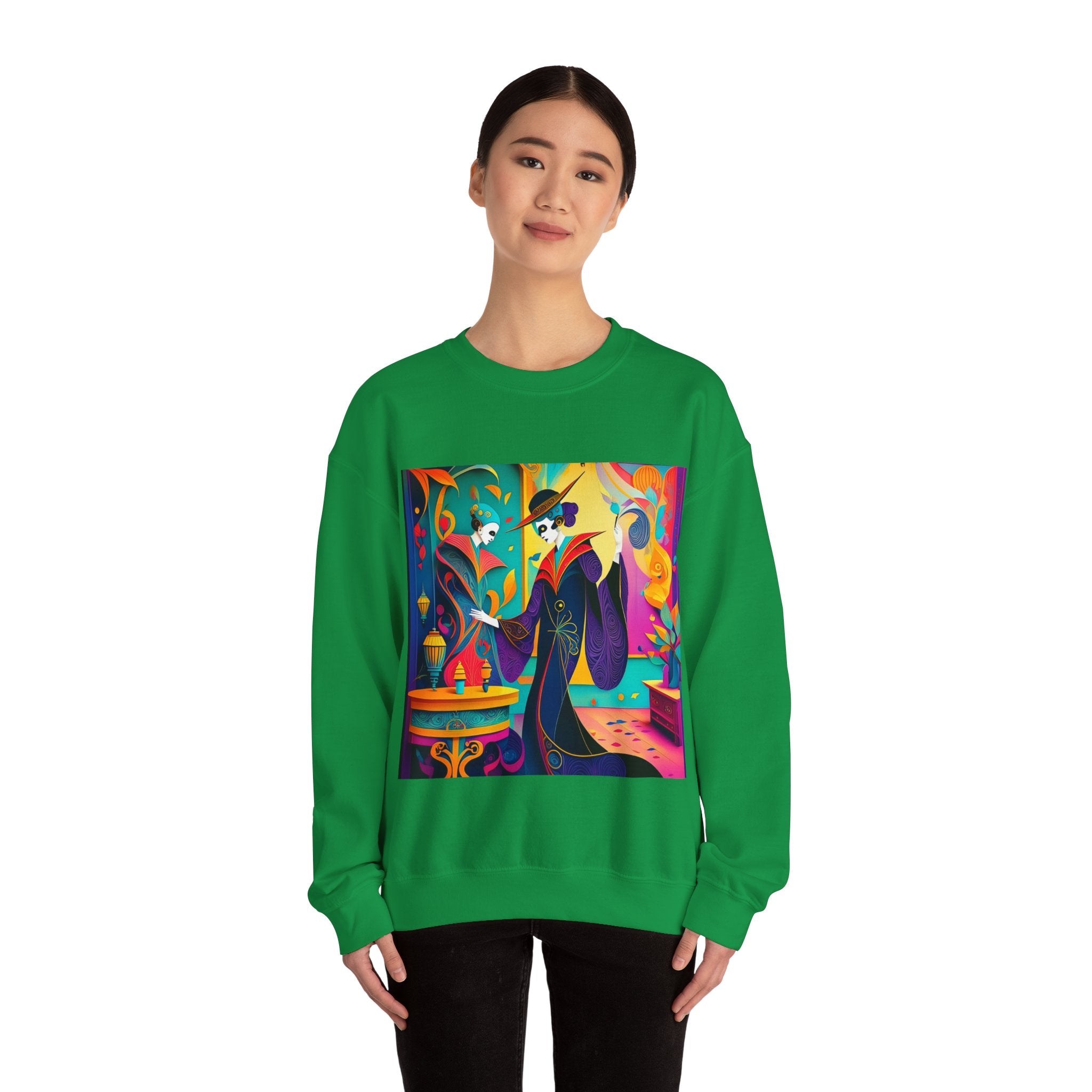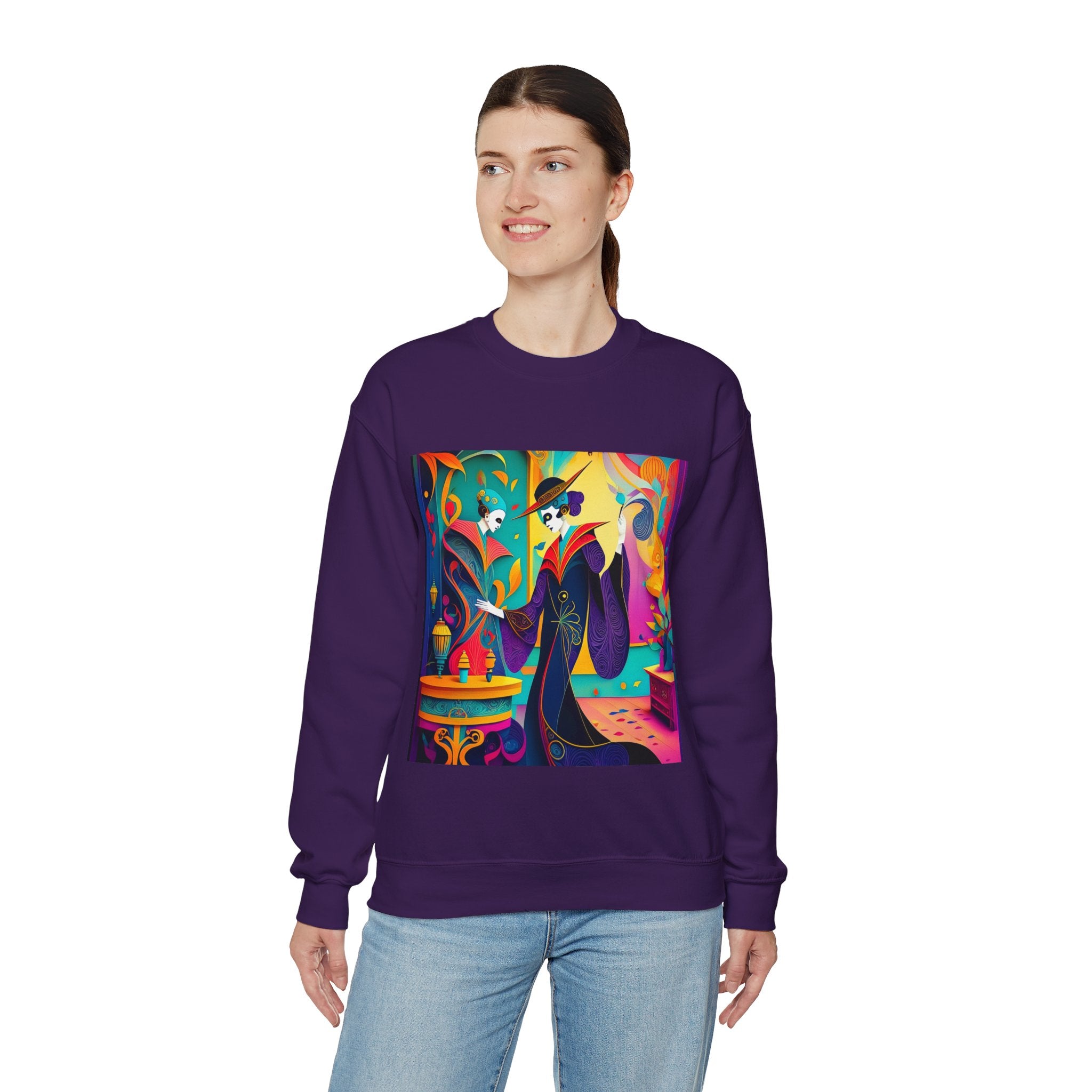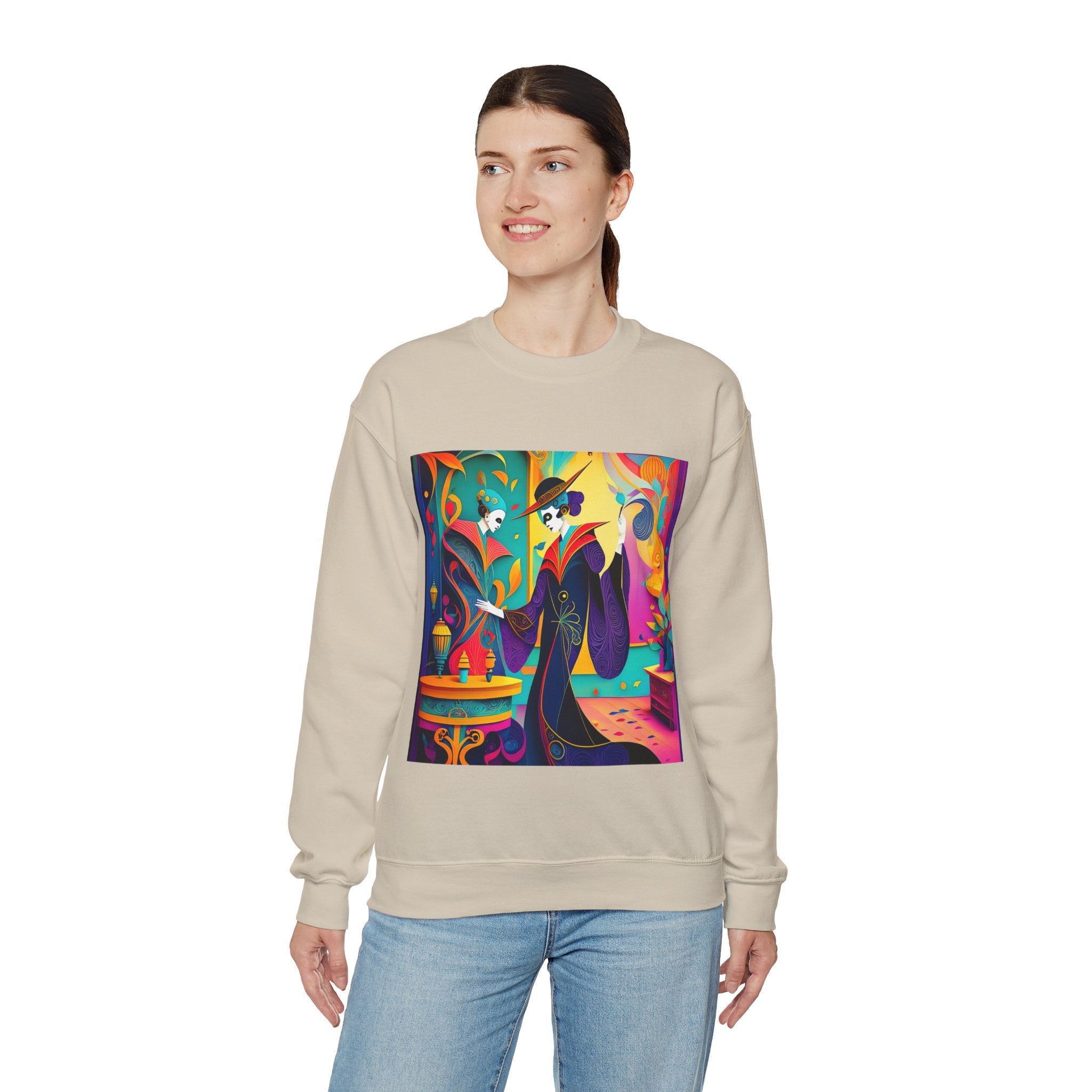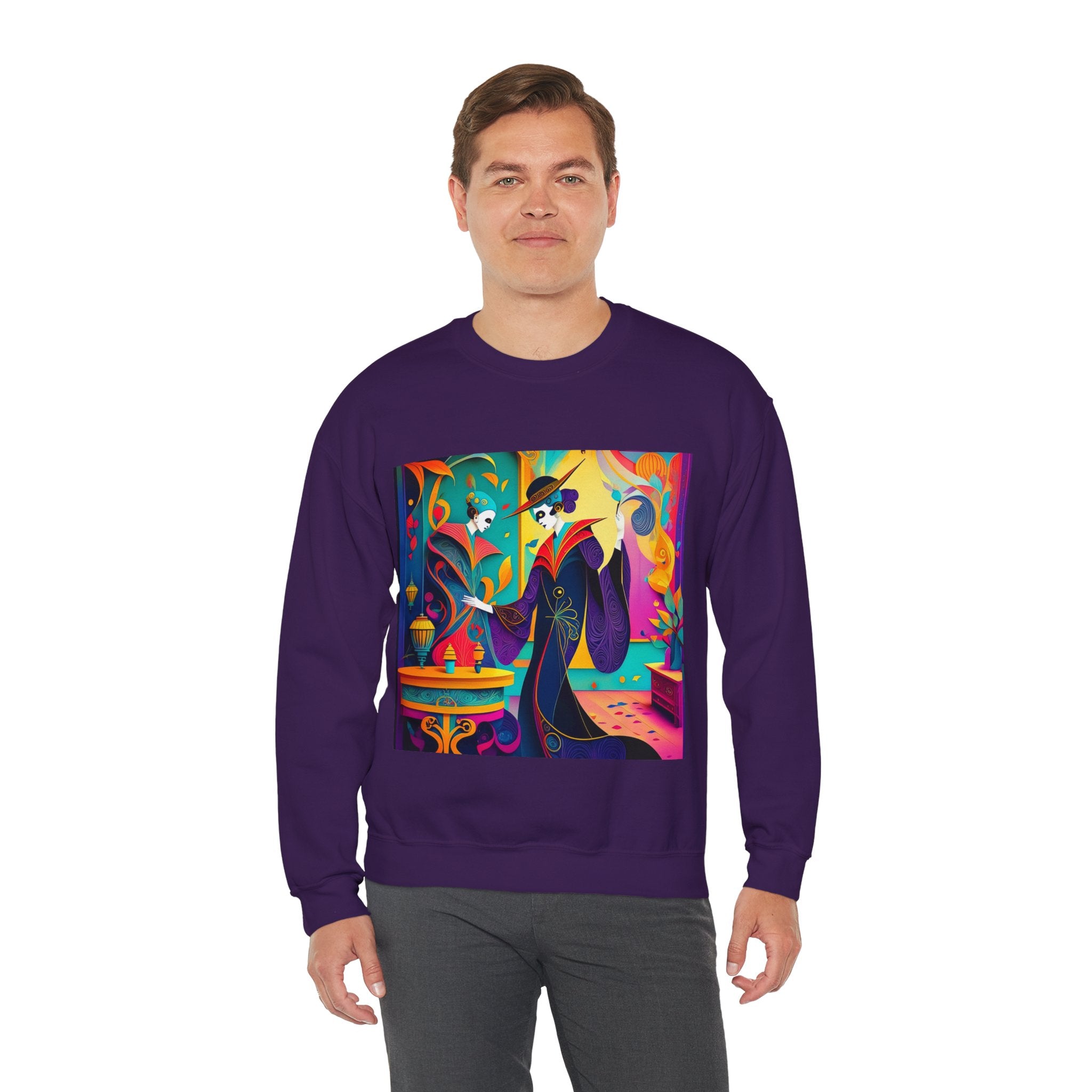 Perfect for embracing the Halloween spirit, the unisex heavy blend crewneck sweatshirt is the epitome of comfort and festive style. Made from a cozy blend of 50% polyester and 50% cotton, this medium-heavy fabric ensures that the Halloween-themed artwork appears fresh and vibrant. The ribbed knit collar maintains its shape even after numerous washes, and the absence of itchy side seams enhances comfort. With a classic fit and crew neckline, this sweatshirt offers a cozy wearing experience with a clean, stylish look, while the double-needle stitching at critical seams guarantees exceptional durability.