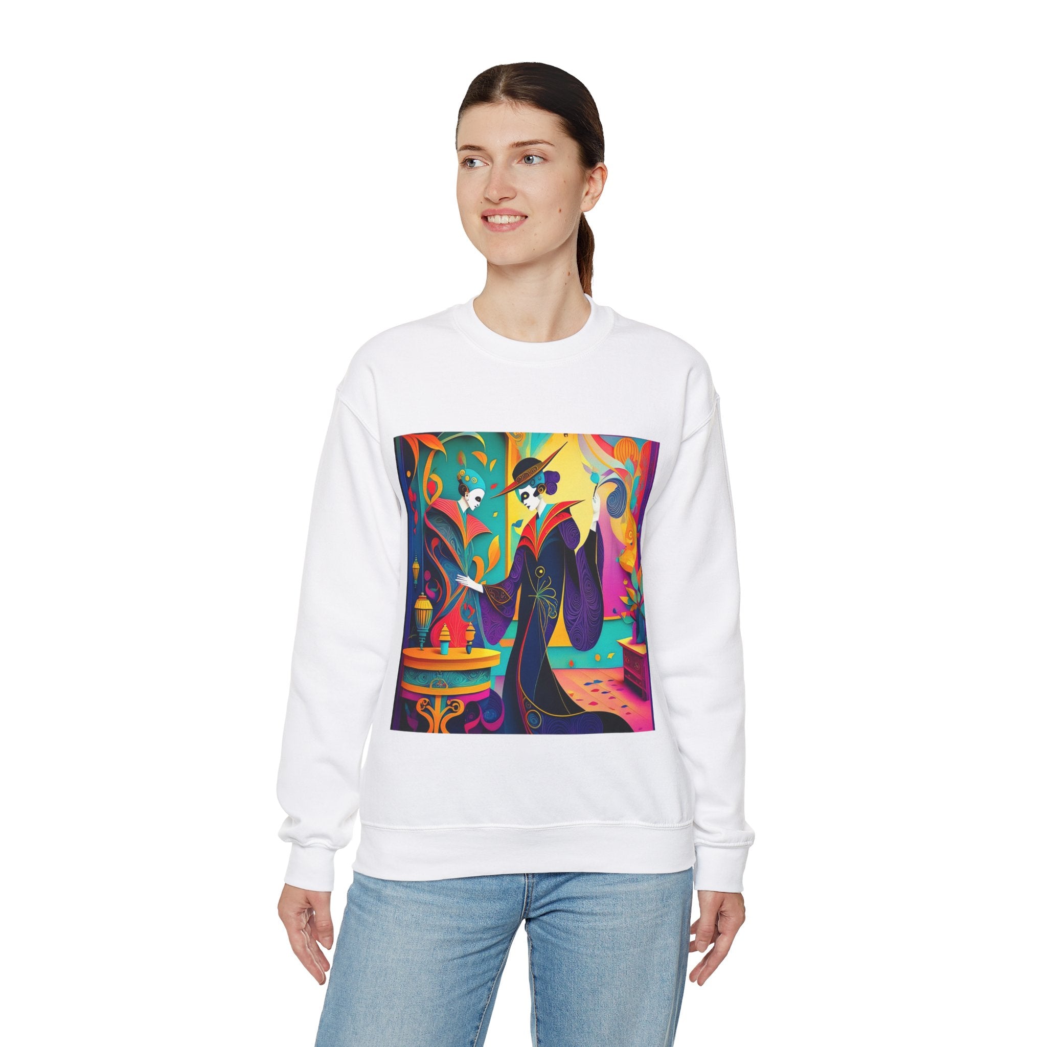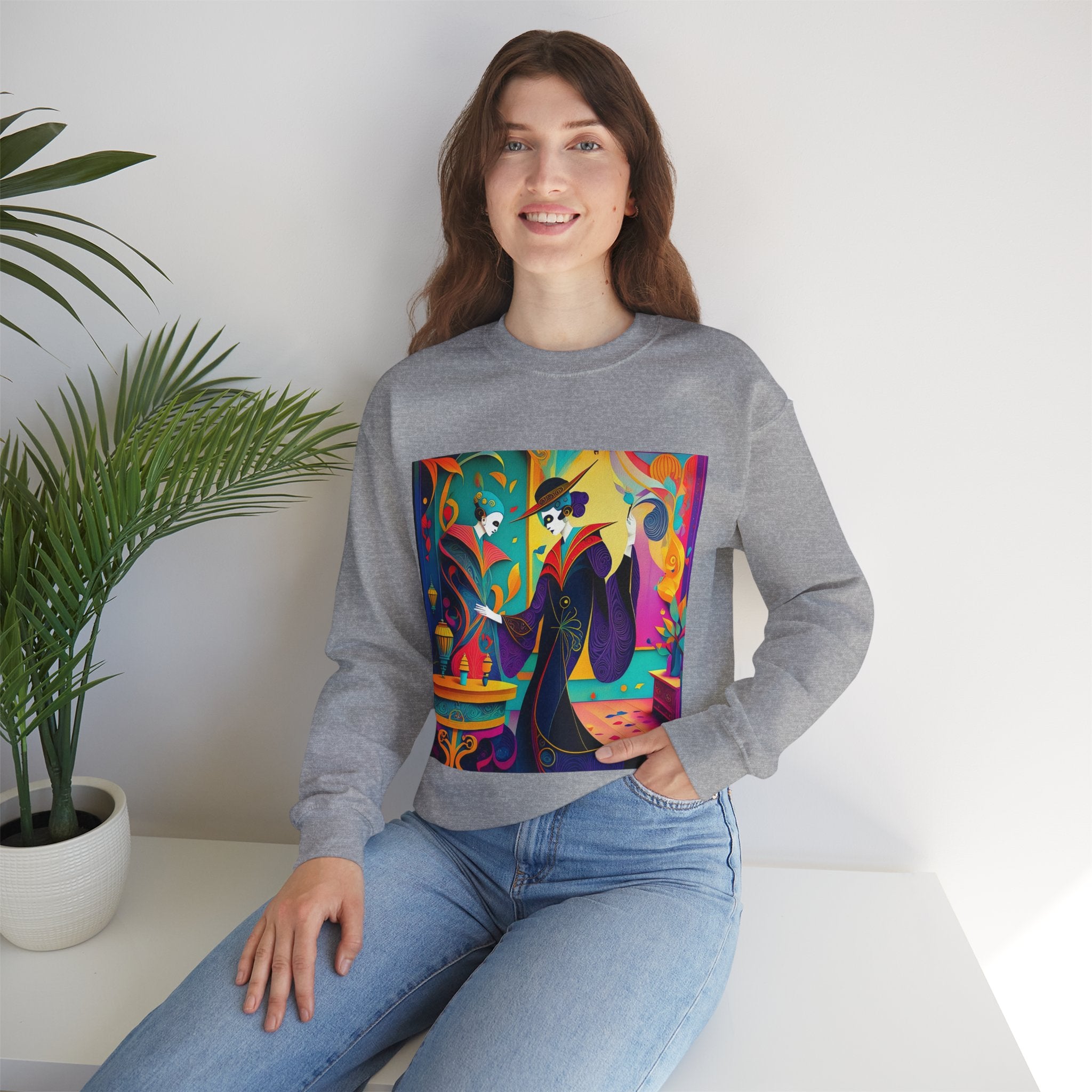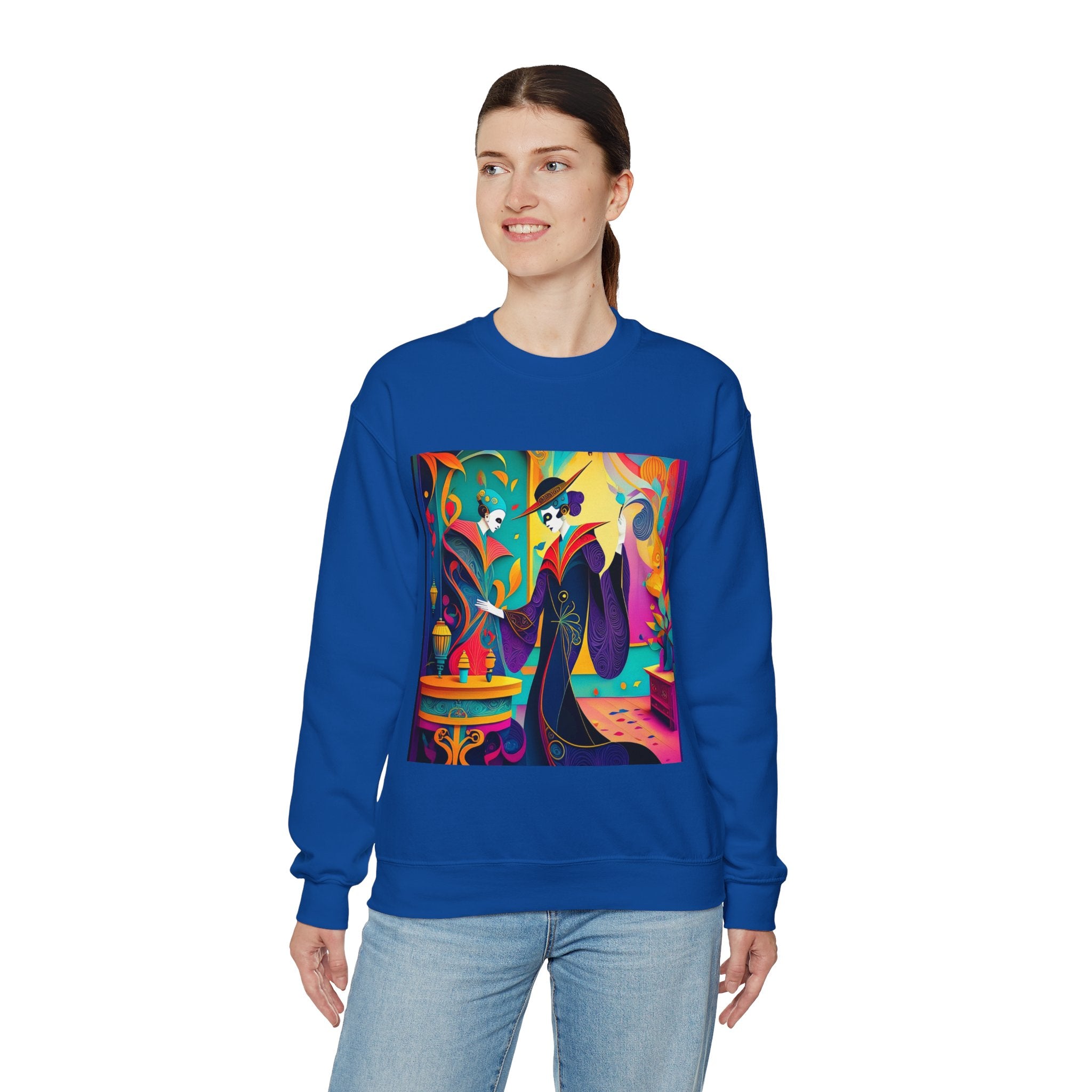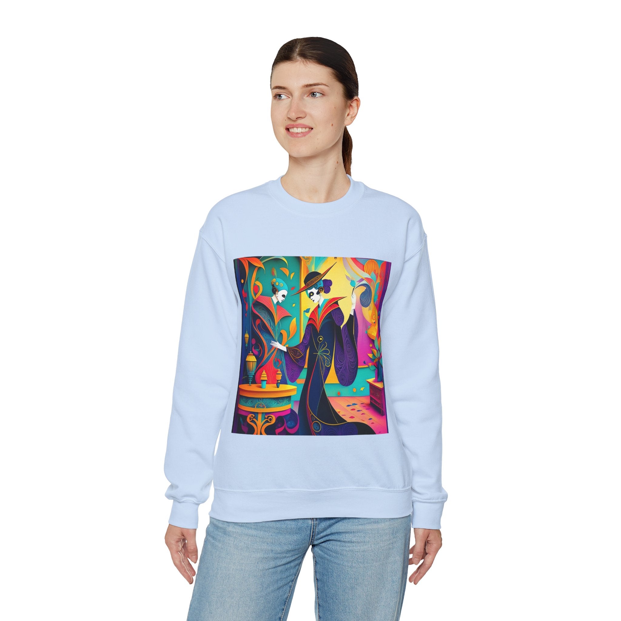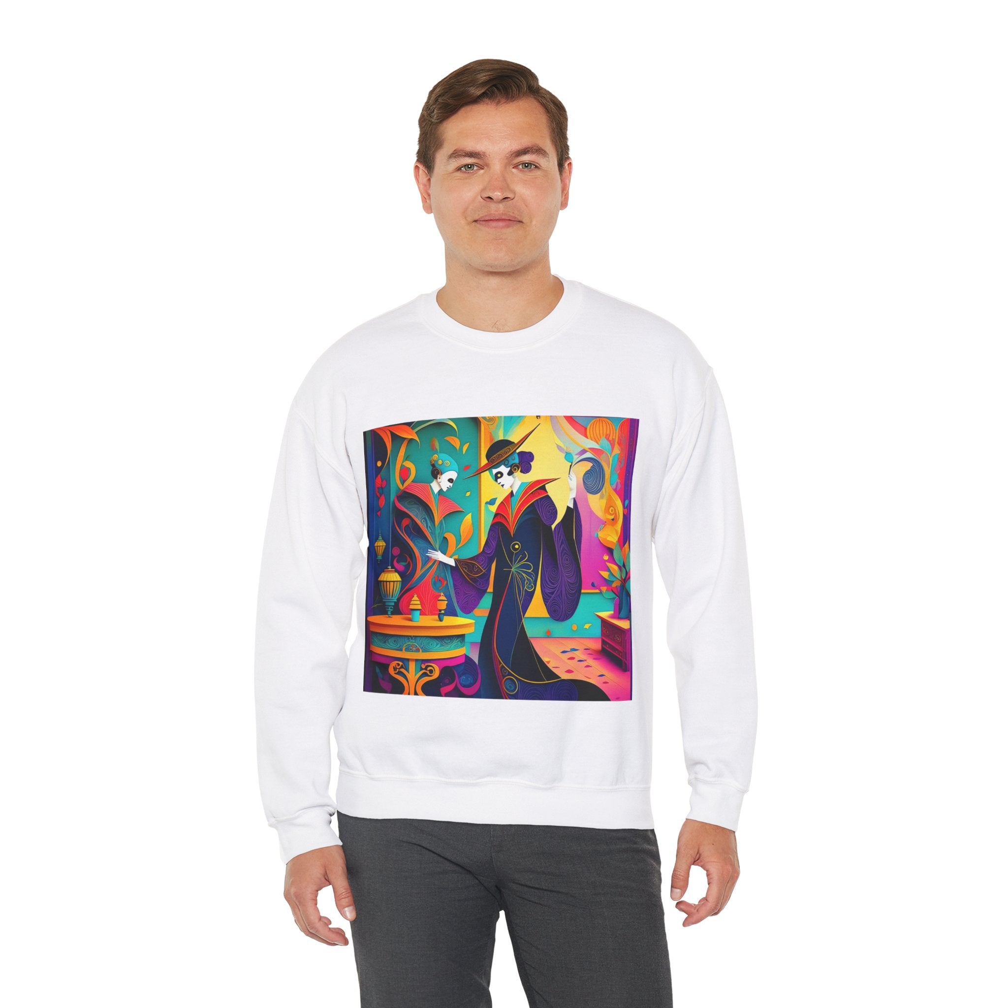 Perfect for embracing the Halloween spirit, the unisex heavy blend crewneck sweatshirt is the epitome of comfort and festive style. Made from a cozy blend of 50% polyester and 50% cotton, this medium-heavy fabric ensures that the Halloween-themed artwork appears fresh and vibrant. The ribbed knit collar maintains its shape even after numerous washes, and the absence of itchy side seams enhances comfort. With a classic fit and crew neckline, this sweatshirt offers a cozy wearing experience with a clean, stylish look, while the double-needle stitching at critical seams guarantees exceptional durability.