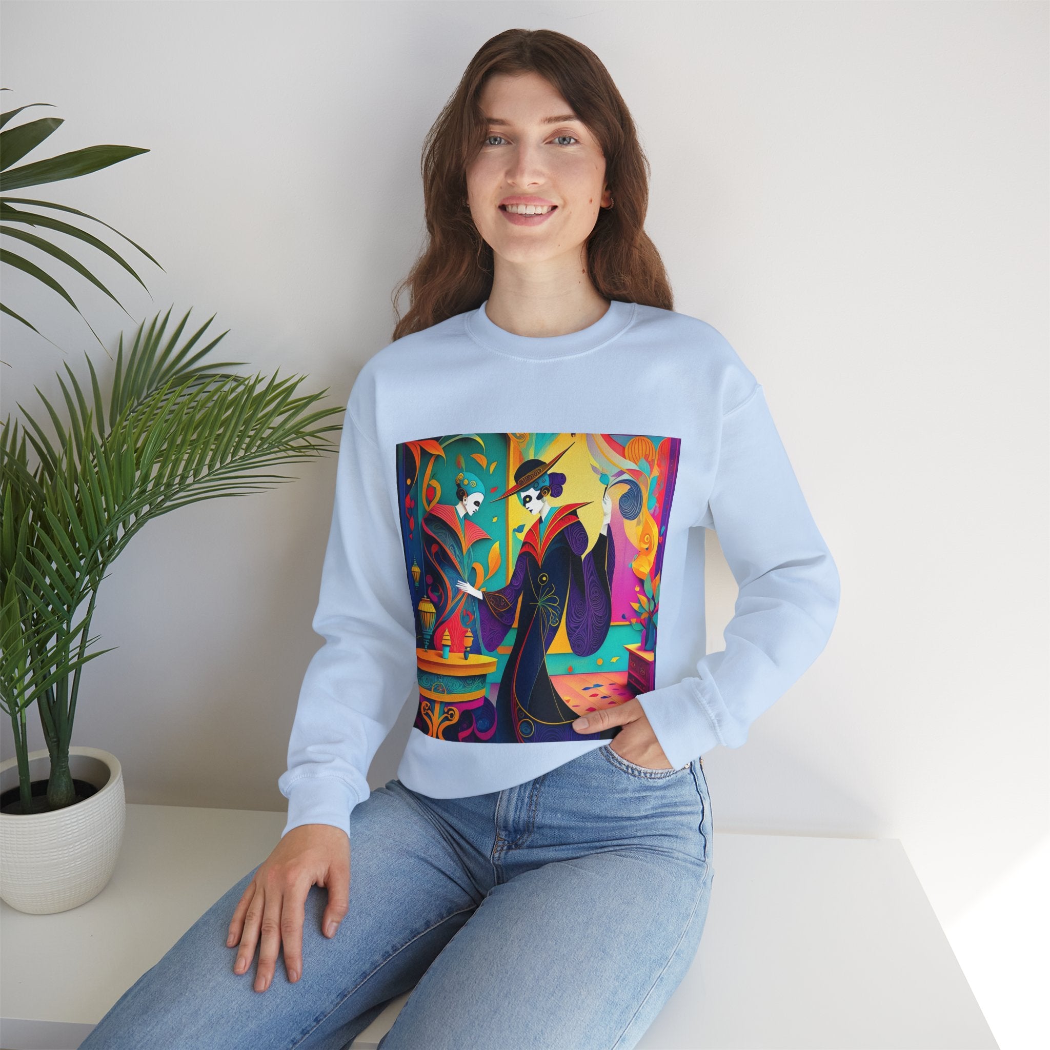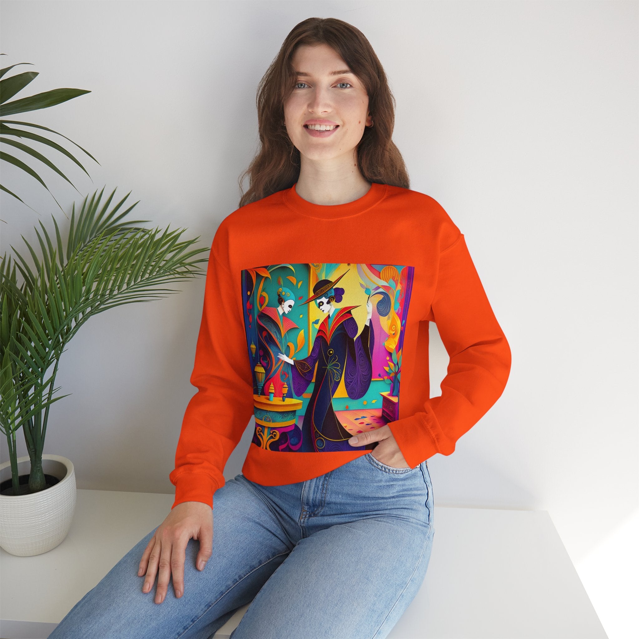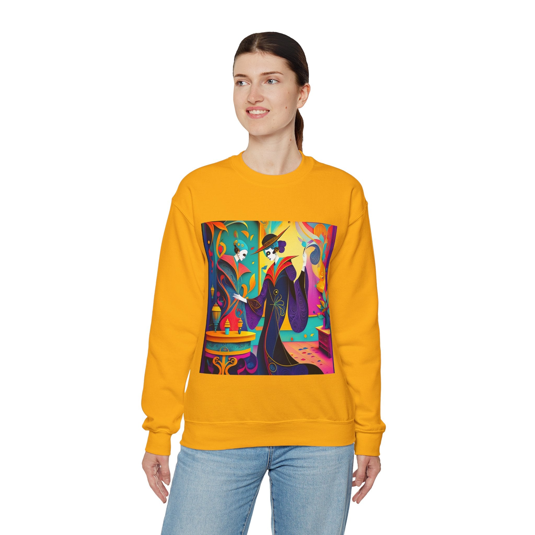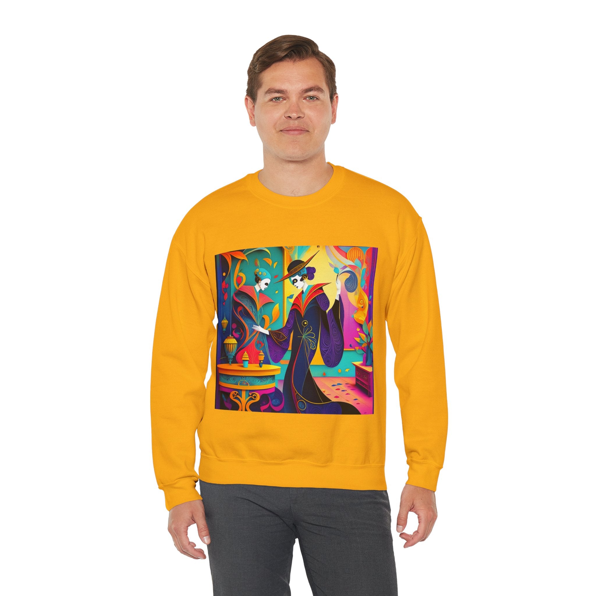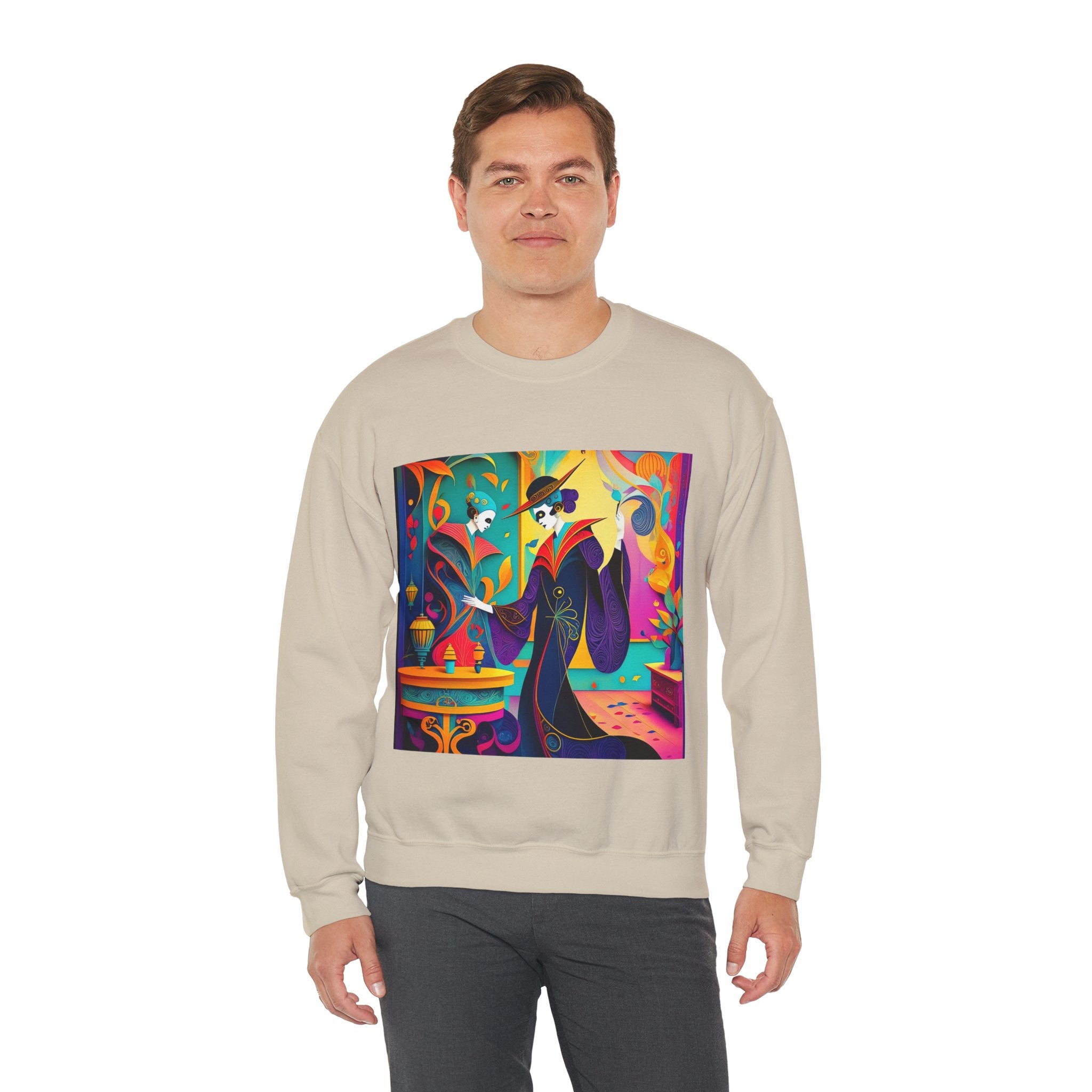 Perfect for embracing the Halloween spirit, the unisex heavy blend crewneck sweatshirt is the epitome of comfort and festive style. Made from a cozy blend of 50% polyester and 50% cotton, this medium-heavy fabric ensures that the Halloween-themed artwork appears fresh and vibrant. The ribbed knit collar maintains its shape even after numerous washes, and the absence of itchy side seams enhances comfort. With a classic fit and crew neckline, this sweatshirt offers a cozy wearing experience with a clean, stylish look, while the double-needle stitching at critical seams guarantees exceptional durability.
