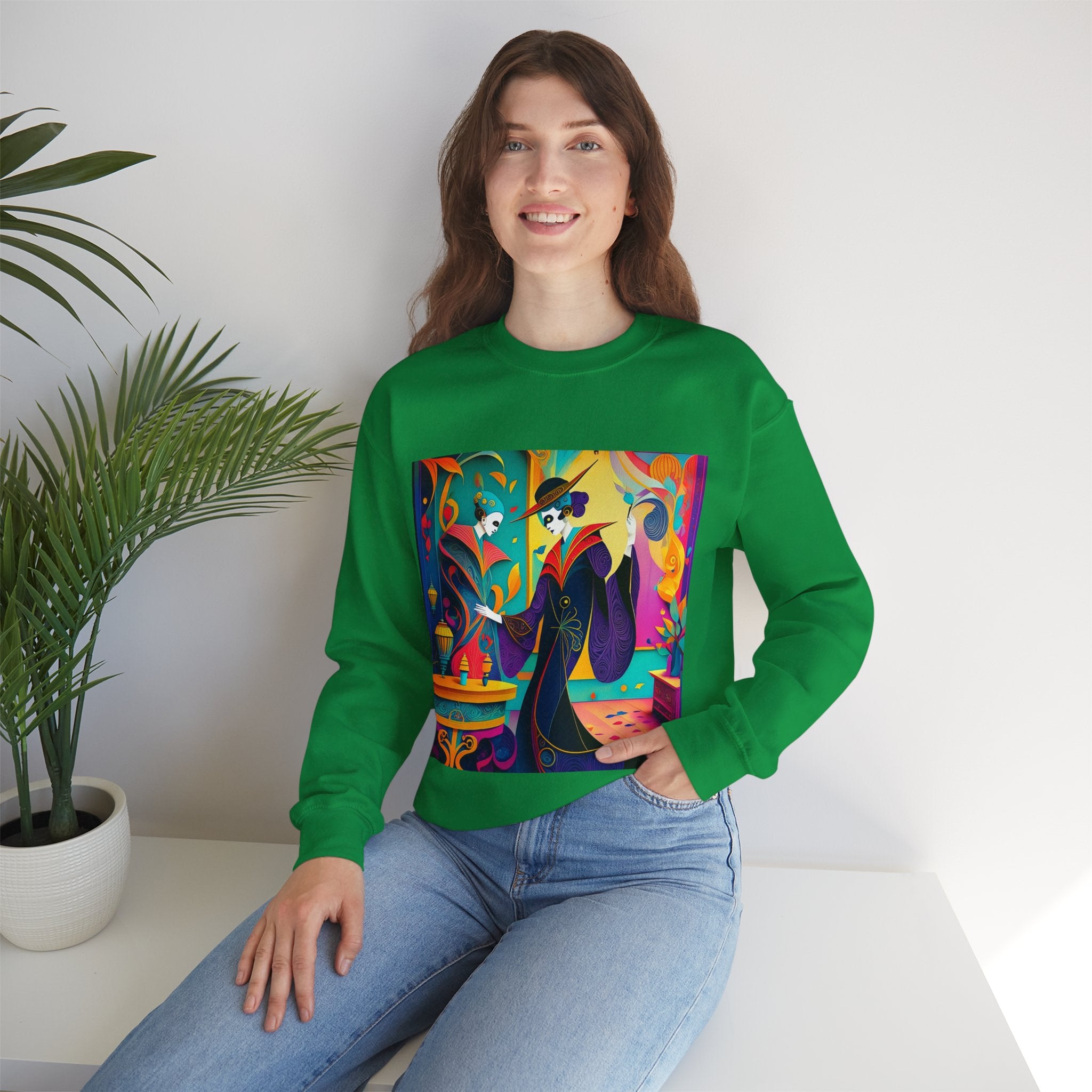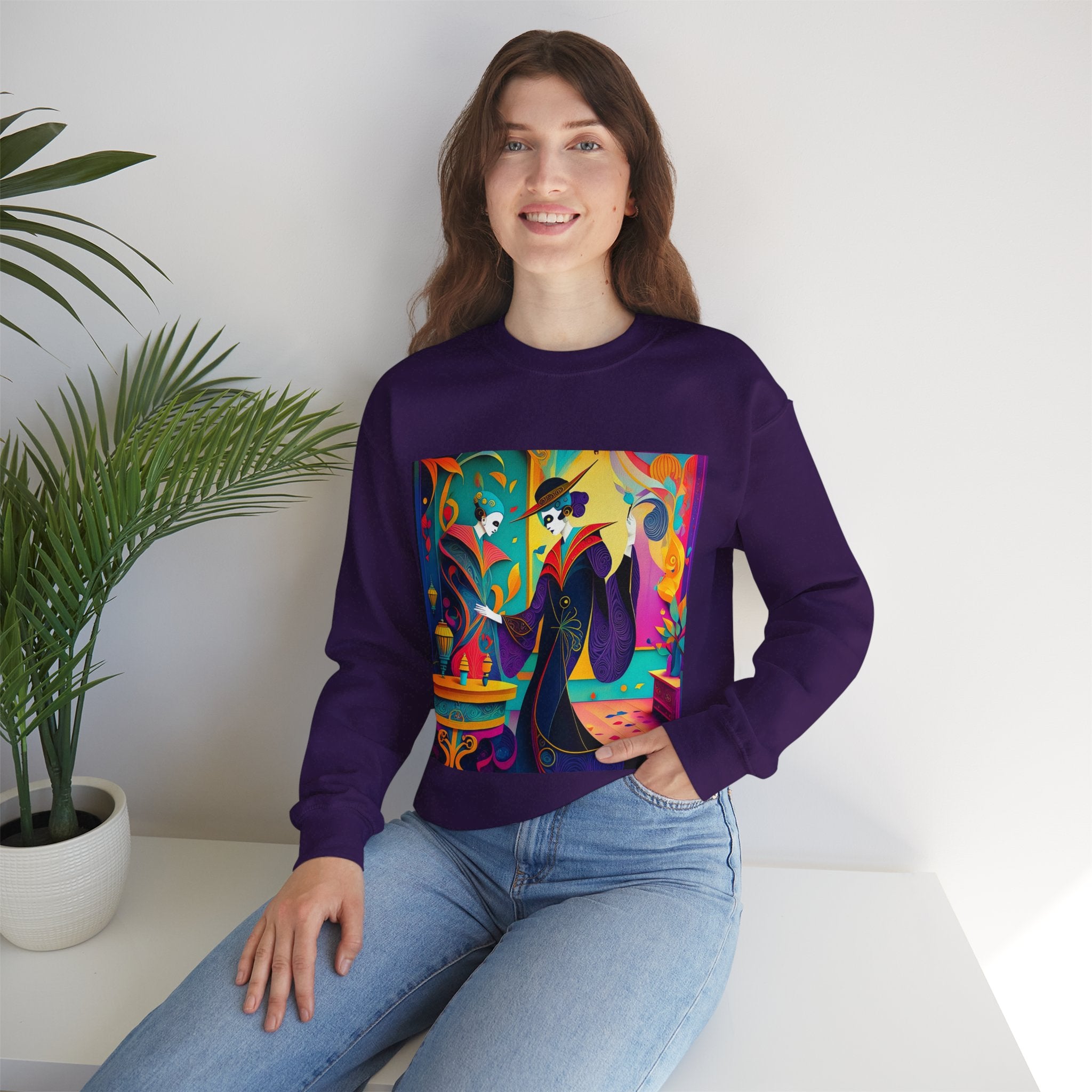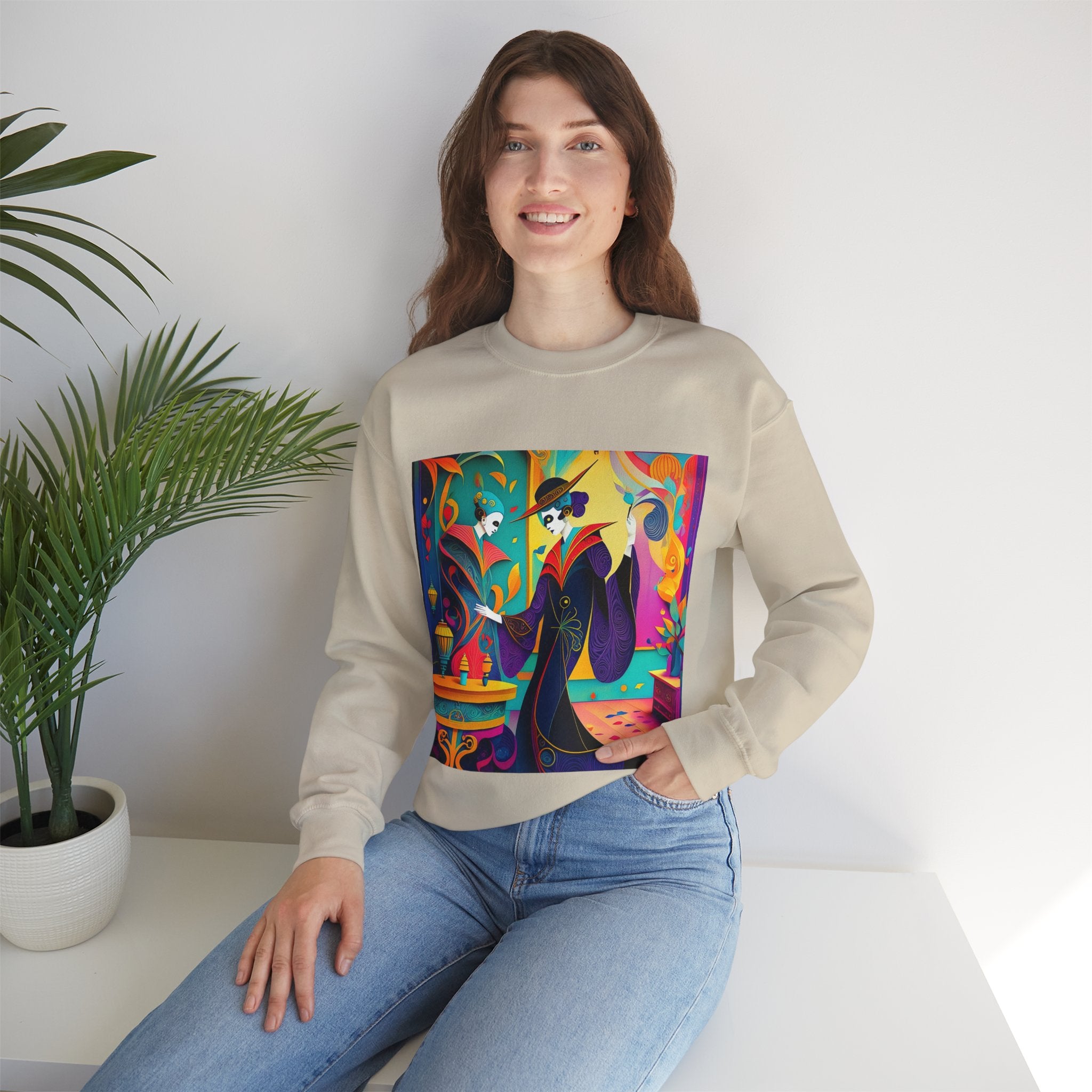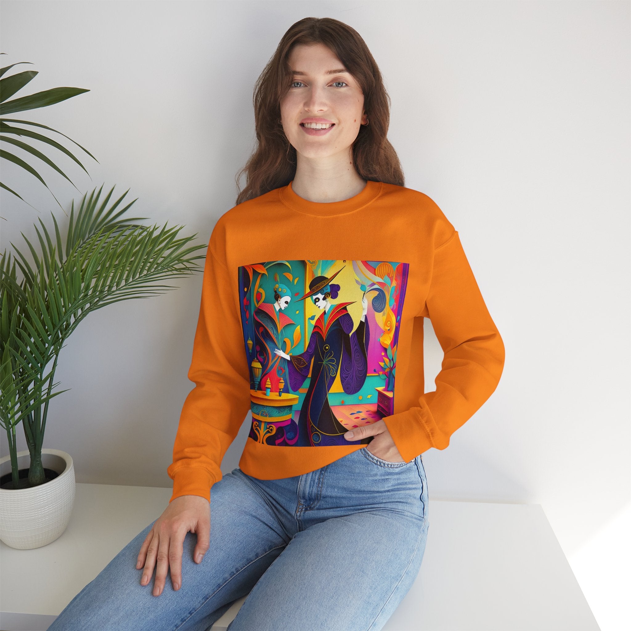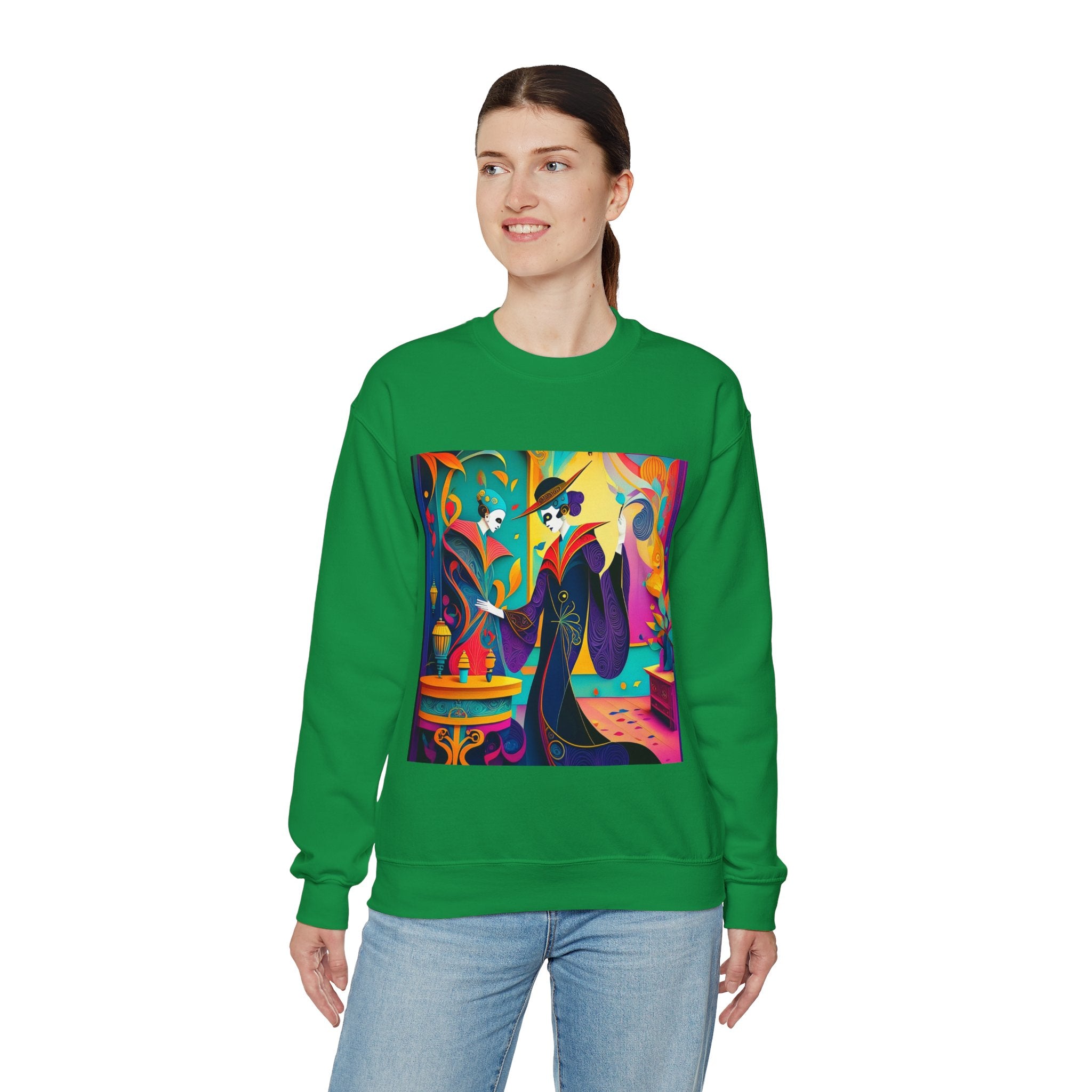 Perfect for embracing the Halloween spirit, the unisex heavy blend crewneck sweatshirt is the epitome of comfort and festive style. Made from a cozy blend of 50% polyester and 50% cotton, this medium-heavy fabric ensures that the Halloween-themed artwork appears fresh and vibrant. The ribbed knit collar maintains its shape even after numerous washes, and the absence of itchy side seams enhances comfort. With a classic fit and crew neckline, this sweatshirt offers a cozy wearing experience with a clean, stylish look, while the double-needle stitching at critical seams guarantees exceptional durability.