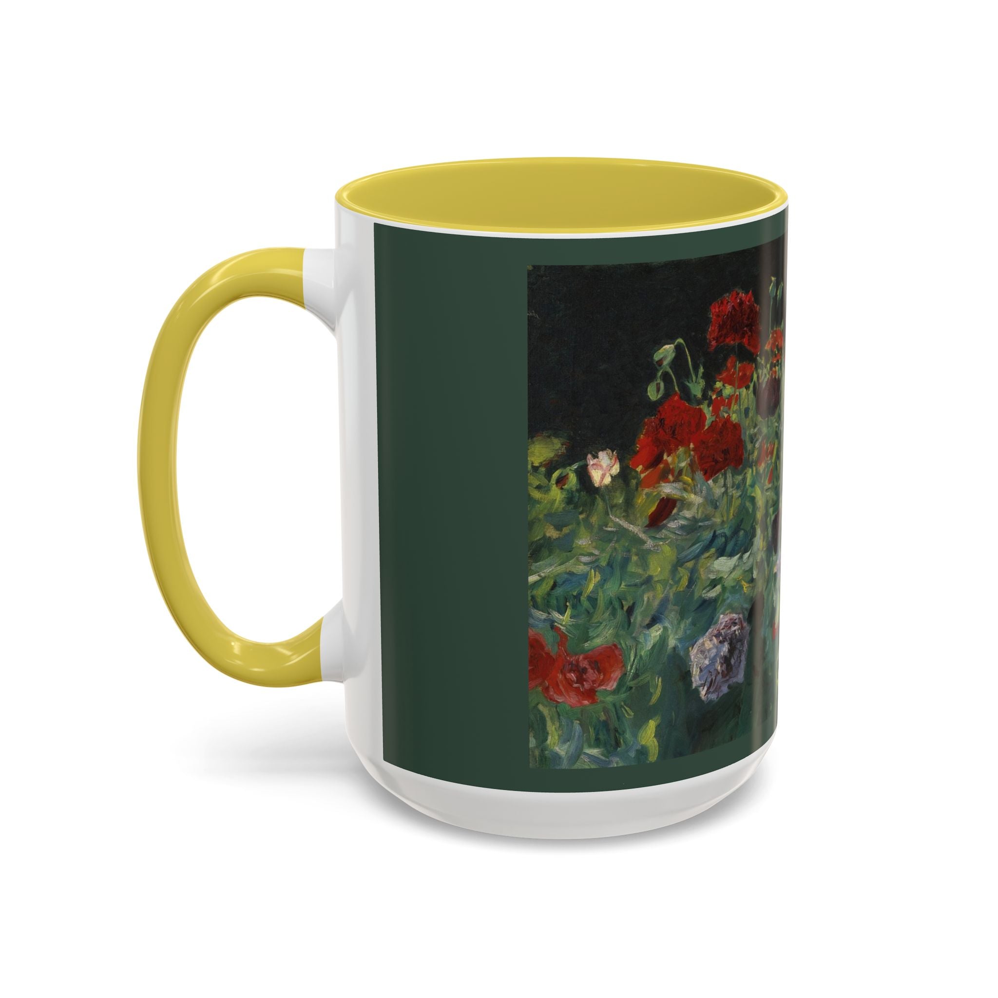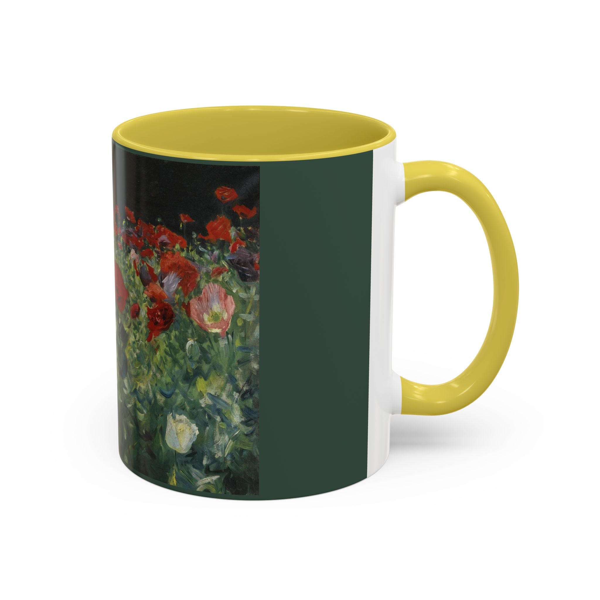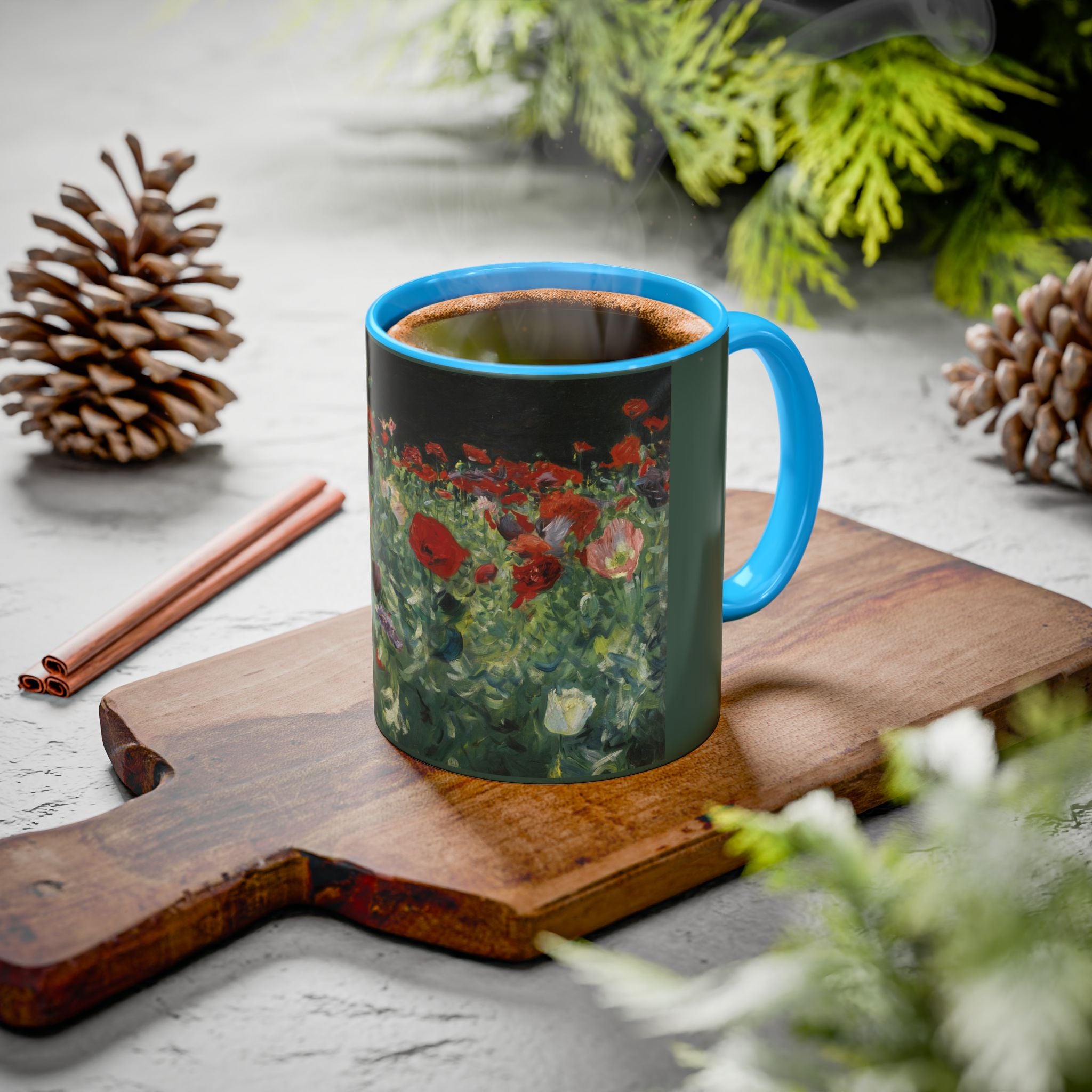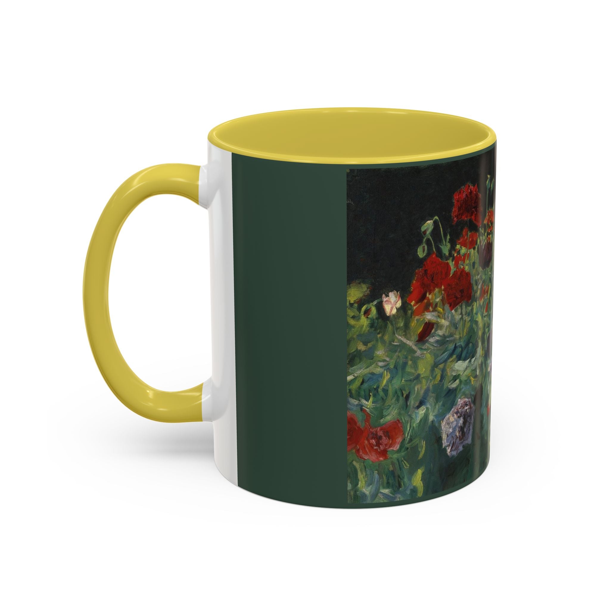 Mugs are a kitchen essential, and when infused with a personalized touch, they transform into cherished favorites. These mugs, offered in 12 vibrant color choices, can hold up to 11oz of your preferred rejuvenating beverage and feature a colored handle and interior. The glossy finish adds an elegant accent that beautifully complements the high-fidelity artwork print, making them not only a delightful addition to your kitchen but also a fantastic choice for thoughtful gifts.