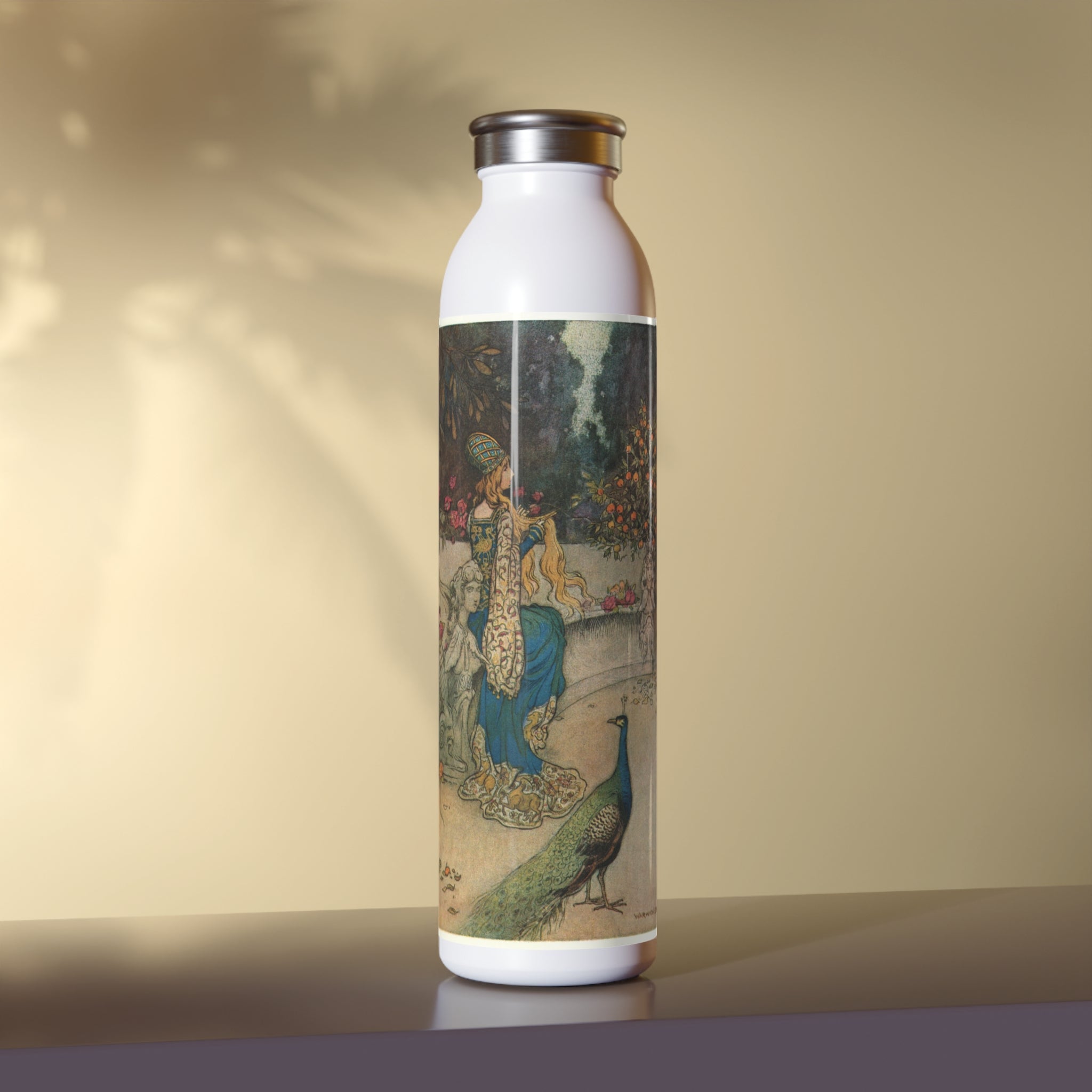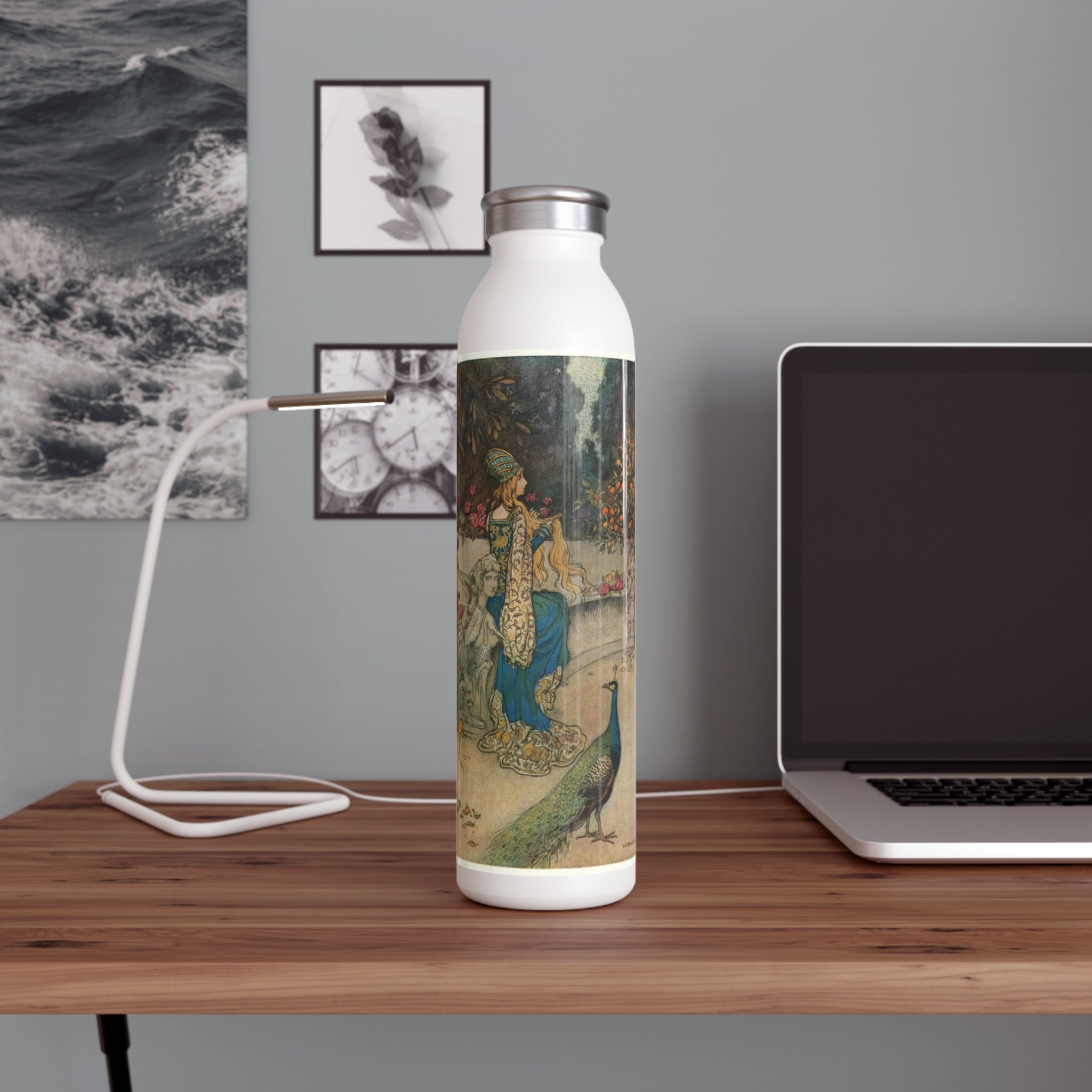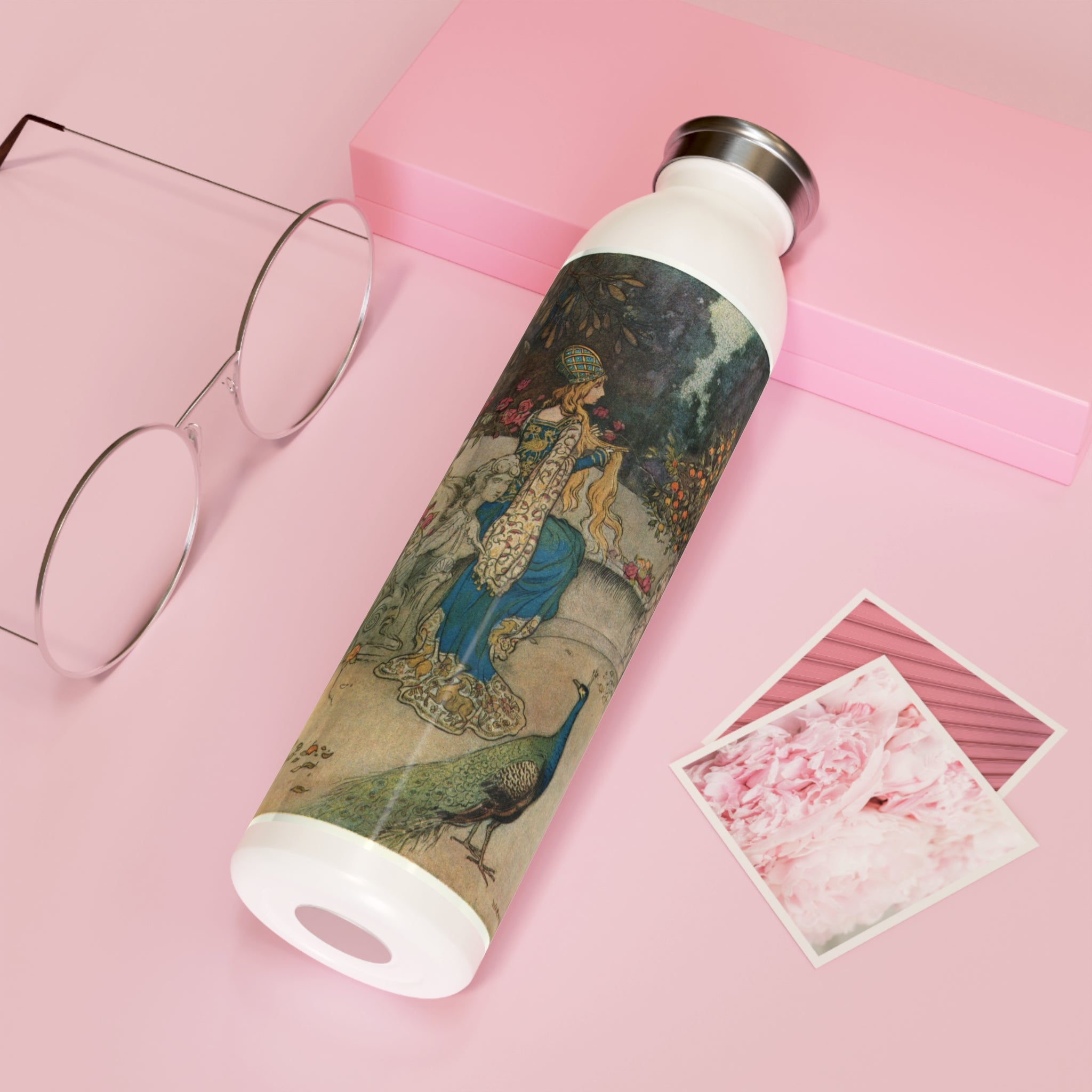 This artful water bottle boasts a 20oz capacity, a trendy lid, double-wall stainless steel construction, and employs vacuum insulation to maintain the ideal temperature of your beverages for extended periods. The vintage art design comes alive in vibrant detail against the chic matte finish.