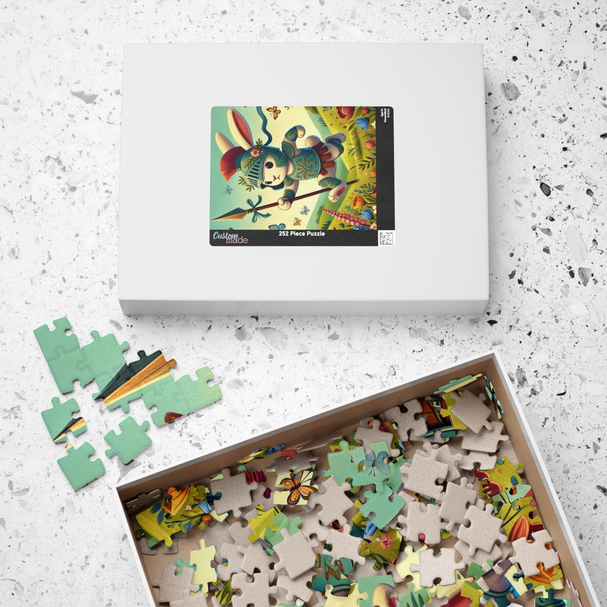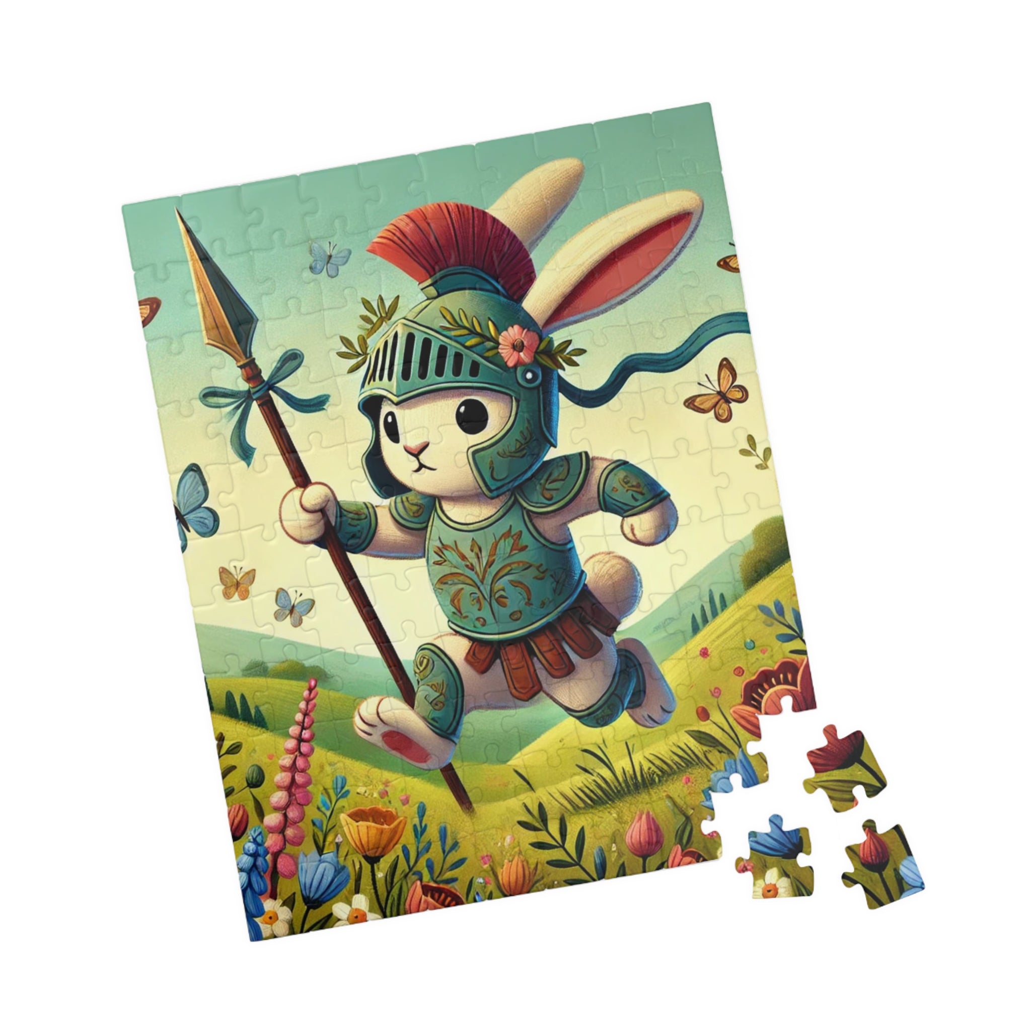 Step into a world of courage and imagination with Rabbit Gladiator Puzzle, where bravery meets charm in a whimsical display of adventure. This delightful puzzle helps adults and kids alike spend quality time over a game they’ll love. Each puzzle comes in a glossy finish and features a sturdy chipboard backing, while each pack includes a reference print to easily put the puzzle together. Available in 110, 252, or 520 piece options, it’s designed for hours of creative relaxation and storytelling fun.