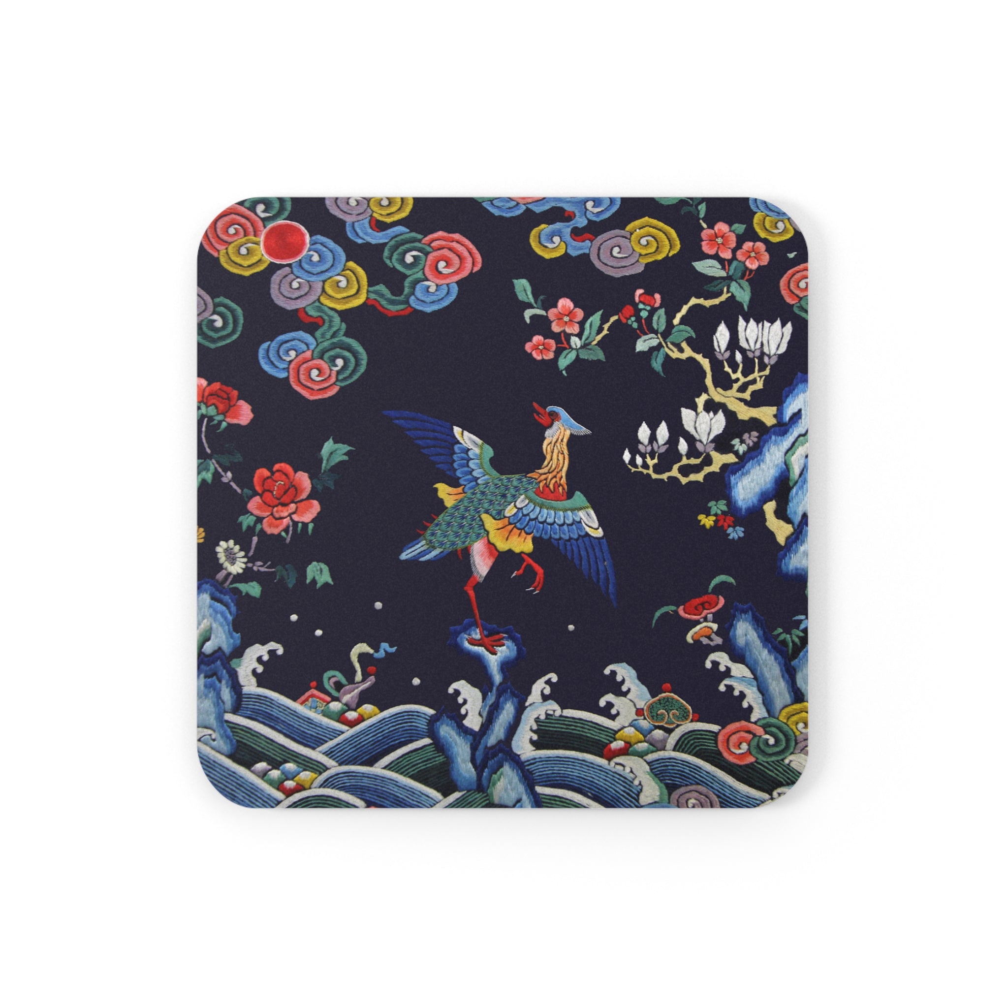 Rank Badge with Mandarin | Cork Back Coaster celebrates centuries of Chinese artistry and cultural symbolism. This elegant vintage art coaster combines historical depth with refined craftsmanship, bringing the prestige of imperial tradition to your modern table setting.