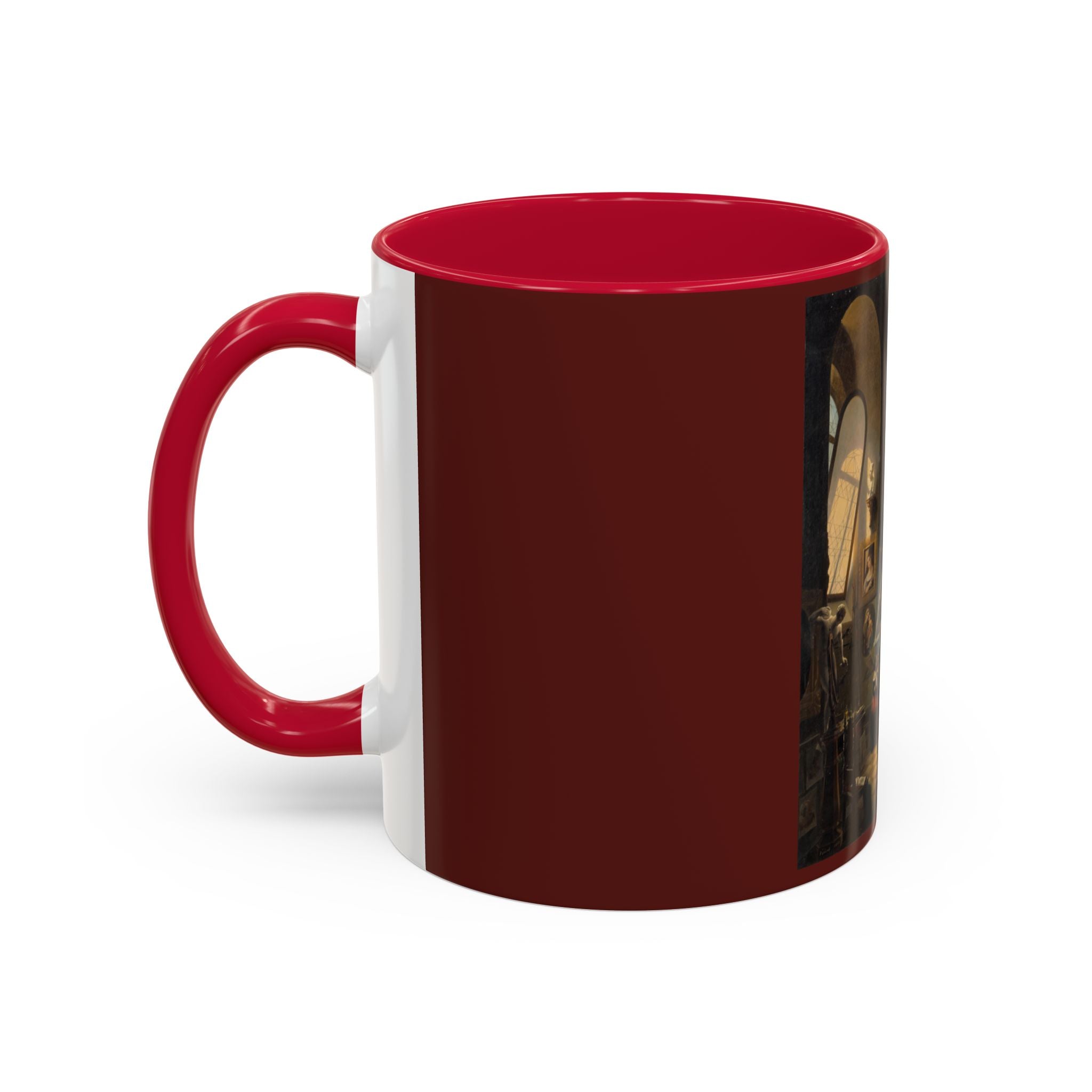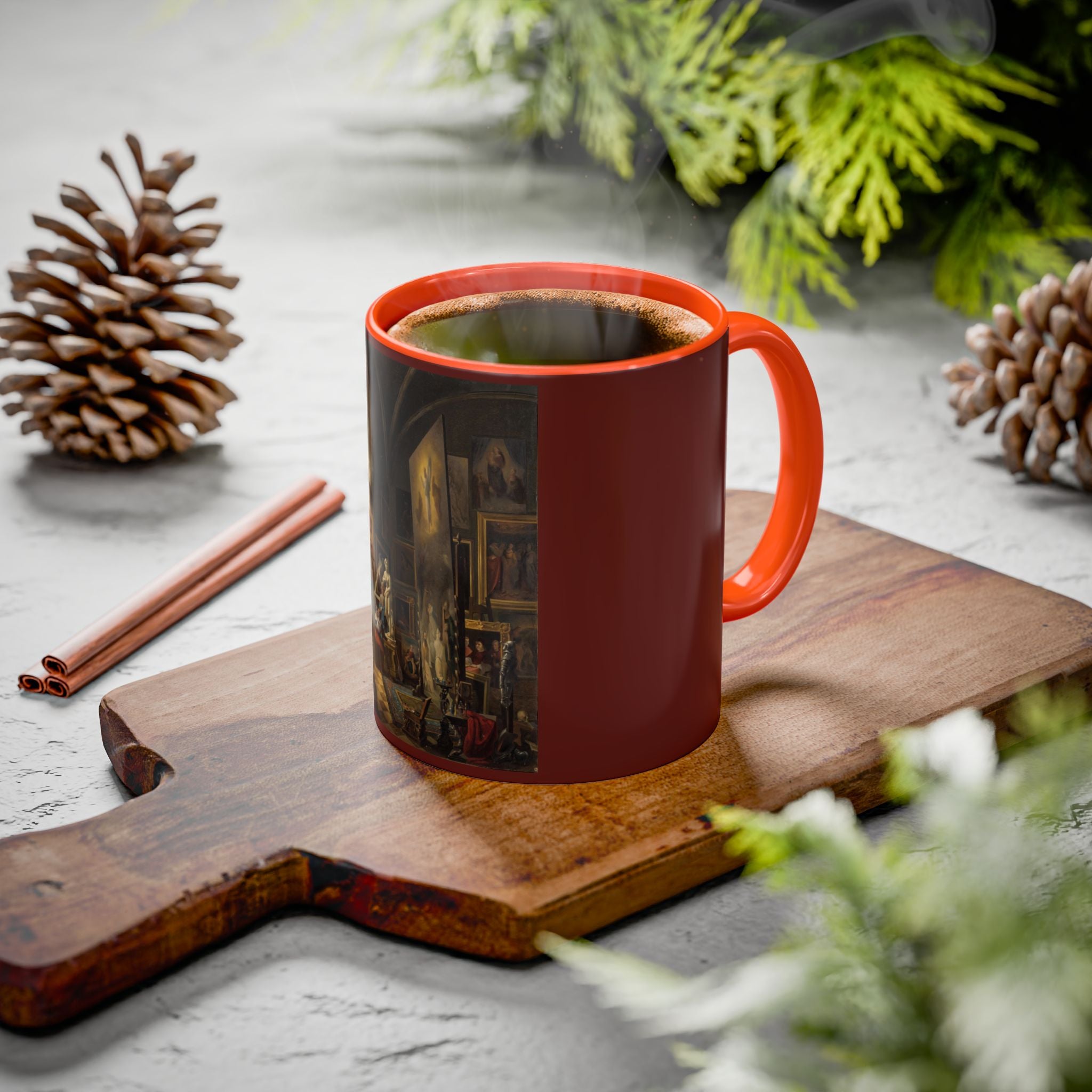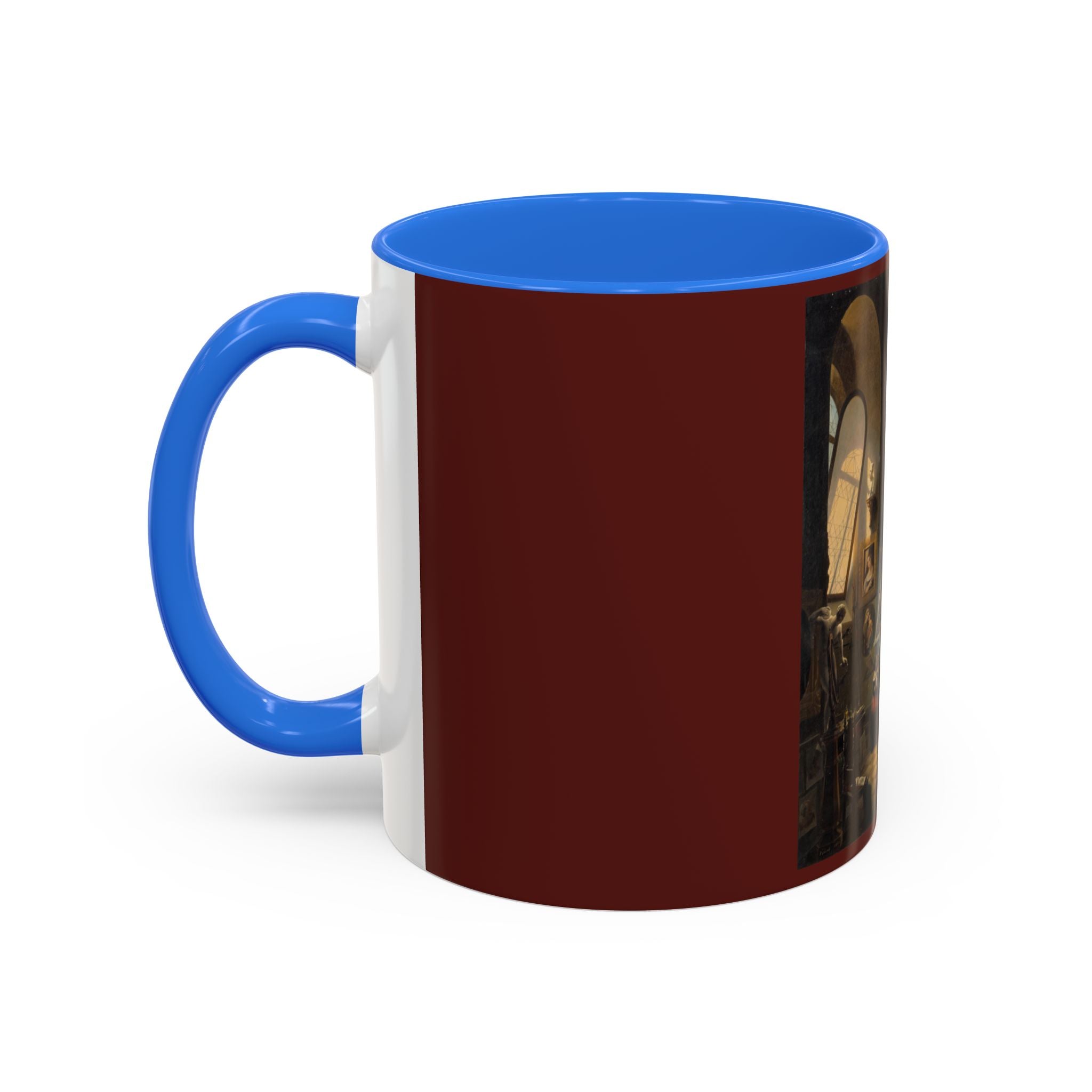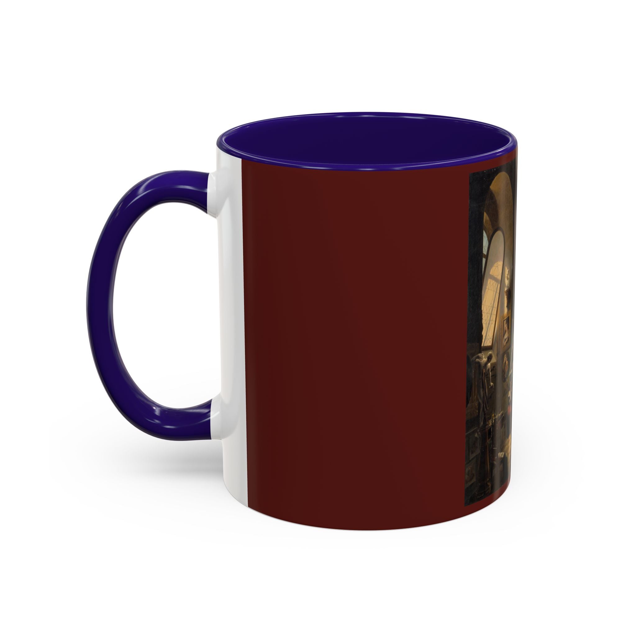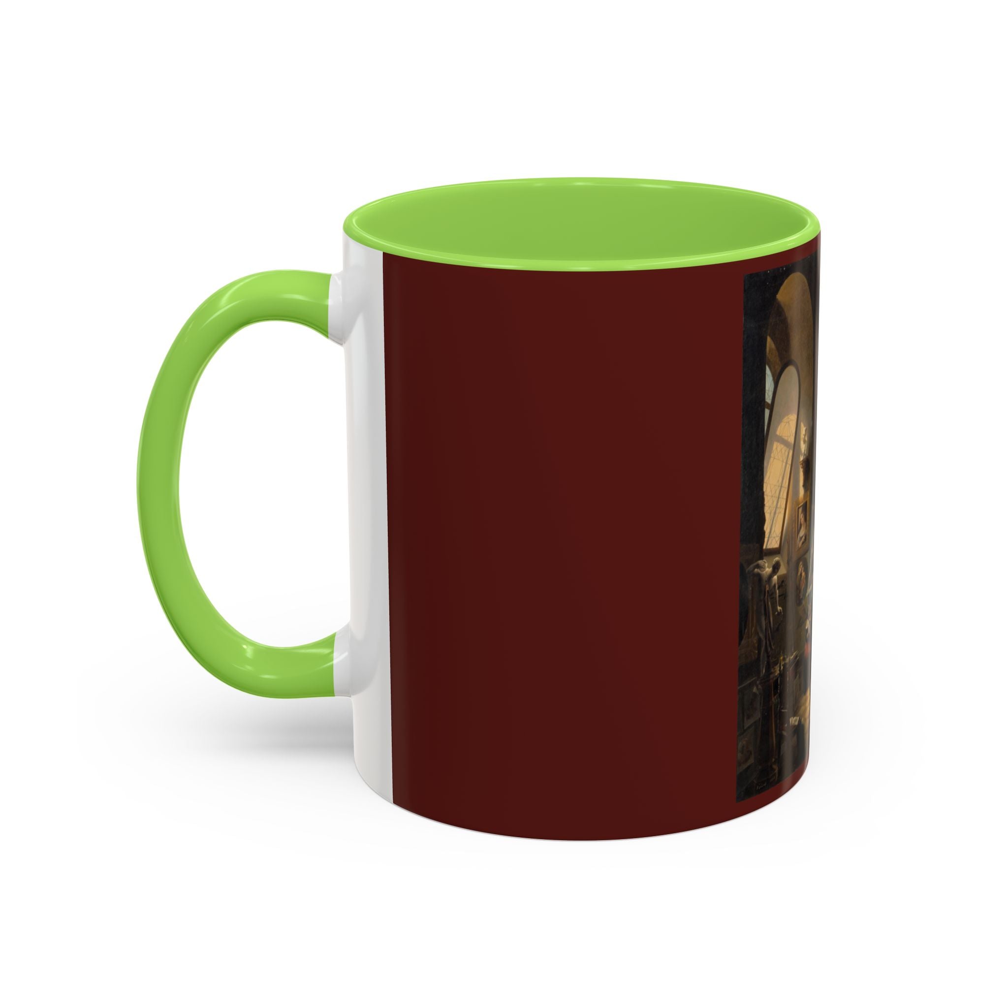 Mugs are a kitchen essential, and when infused with a personalized touch, they transform into cherished favorites. These mugs, offered in 12 vibrant color choices, can hold up to 11oz of your preferred rejuvenating beverage and feature a colored handle and interior. The glossy finish adds an elegant accent that beautifully complements the high-fidelity artwork print, making them not only a delightful addition to your kitchen but also a fantastic choice for thoughtful gifts.