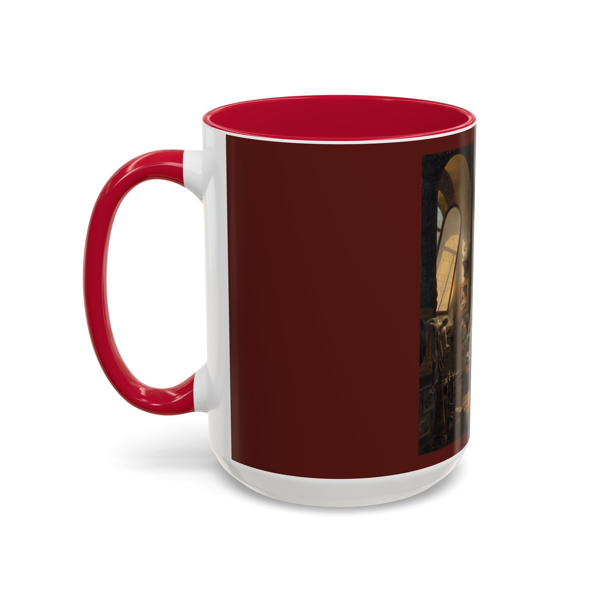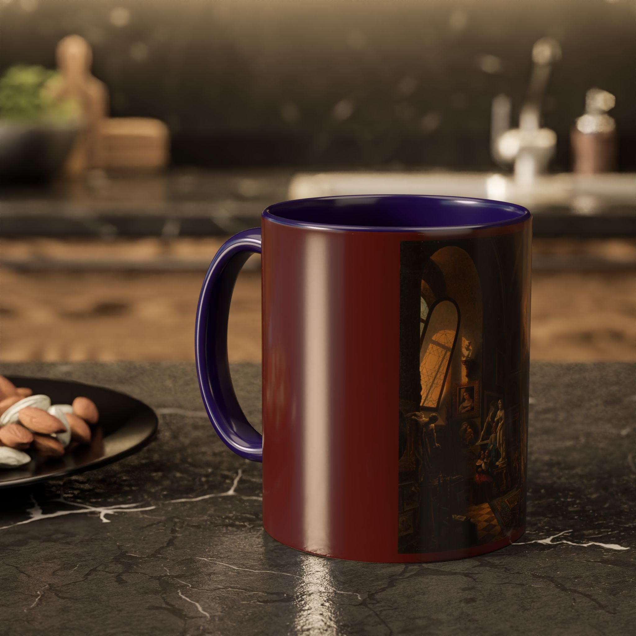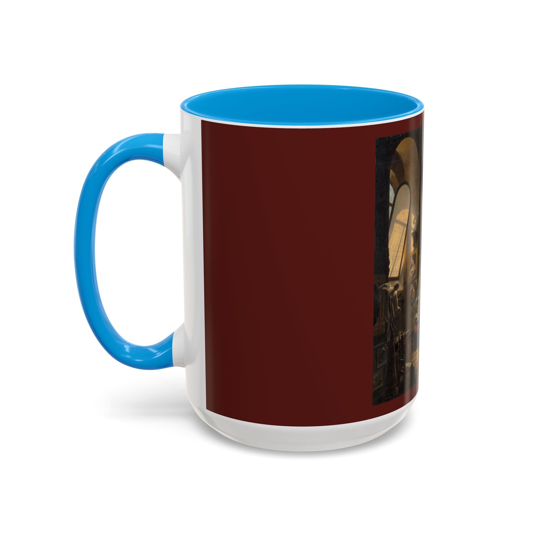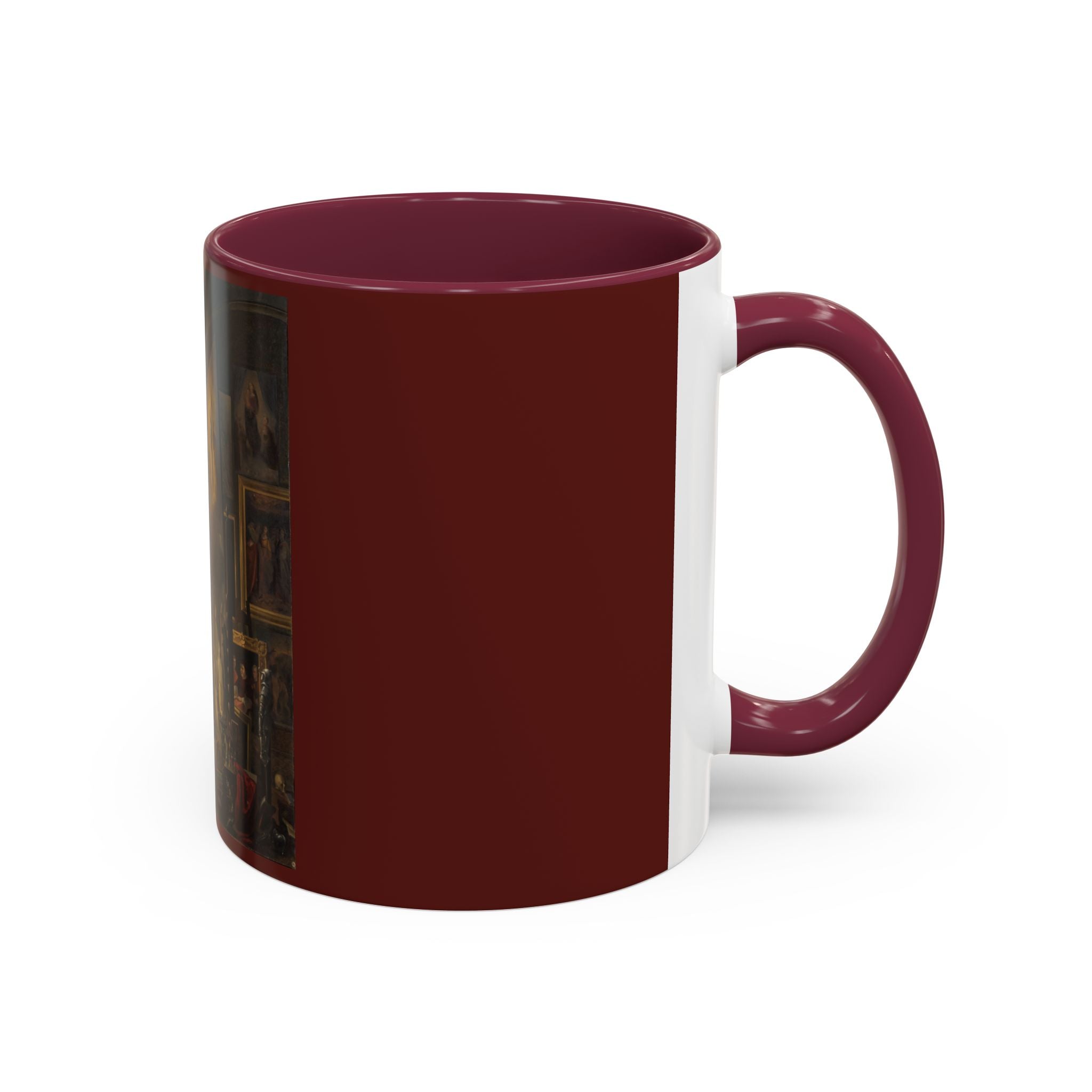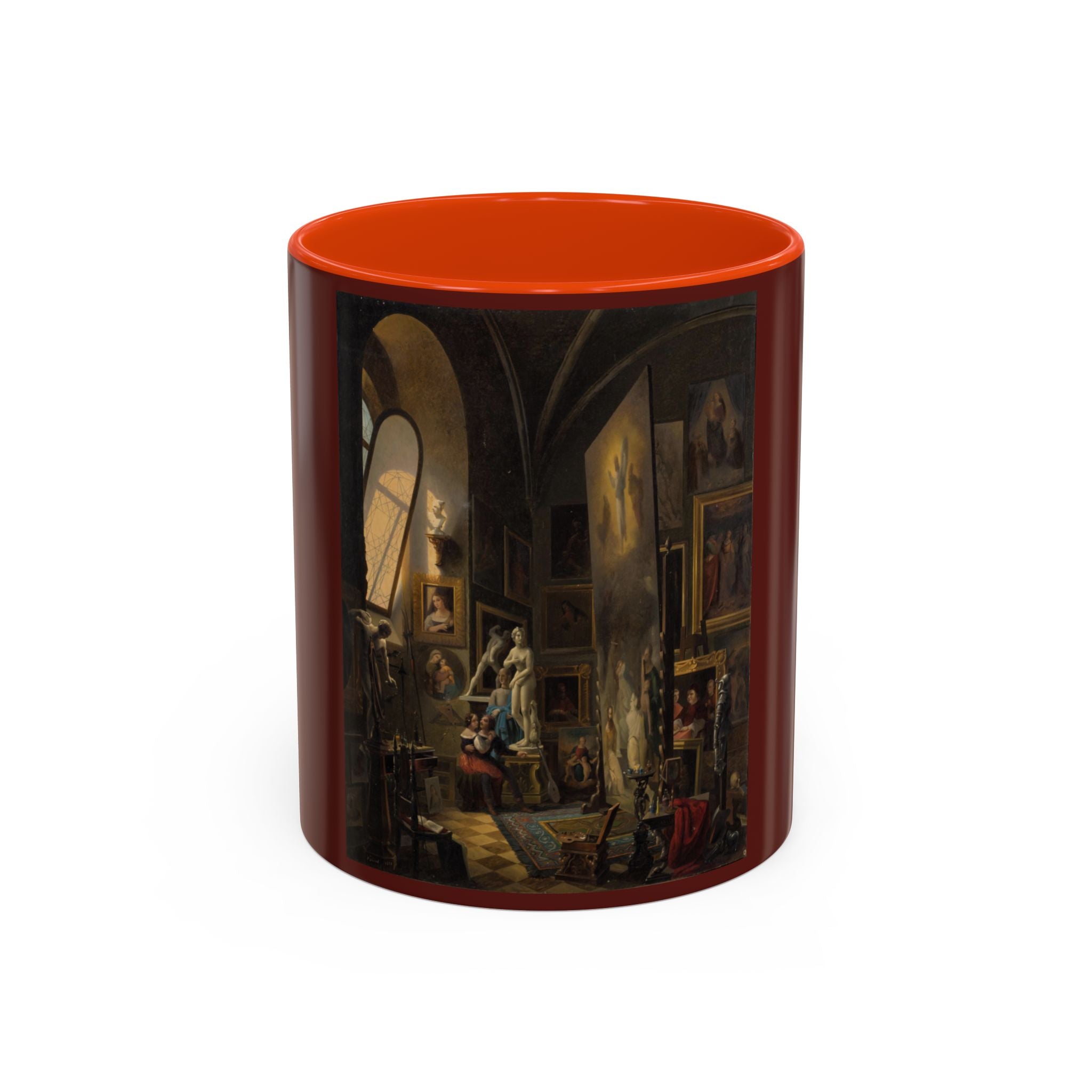 Mugs are a kitchen essential, and when infused with a personalized touch, they transform into cherished favorites. These mugs, offered in 12 vibrant color choices, can hold up to 11oz of your preferred rejuvenating beverage and feature a colored handle and interior. The glossy finish adds an elegant accent that beautifully complements the high-fidelity artwork print, making them not only a delightful addition to your kitchen but also a fantastic choice for thoughtful gifts.
