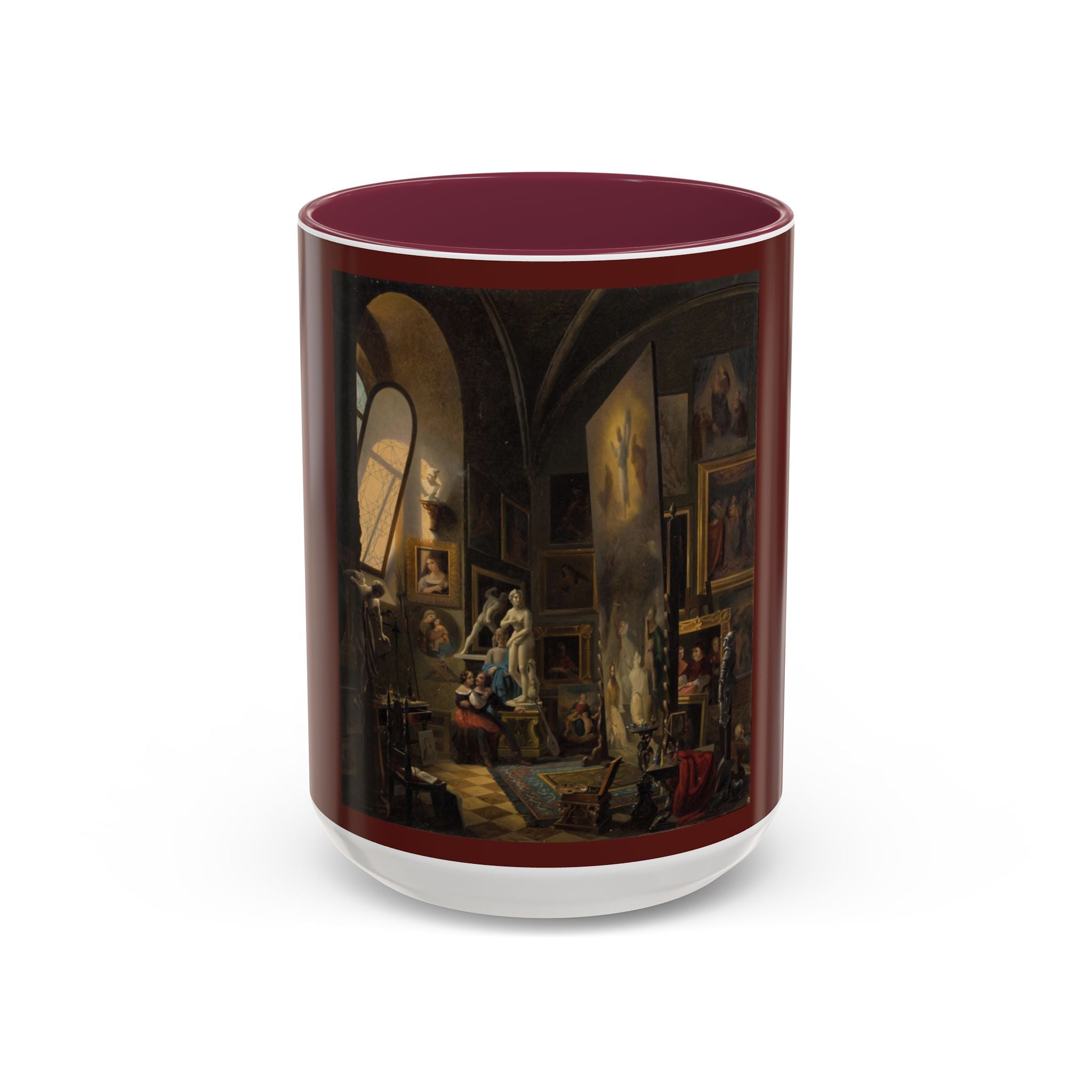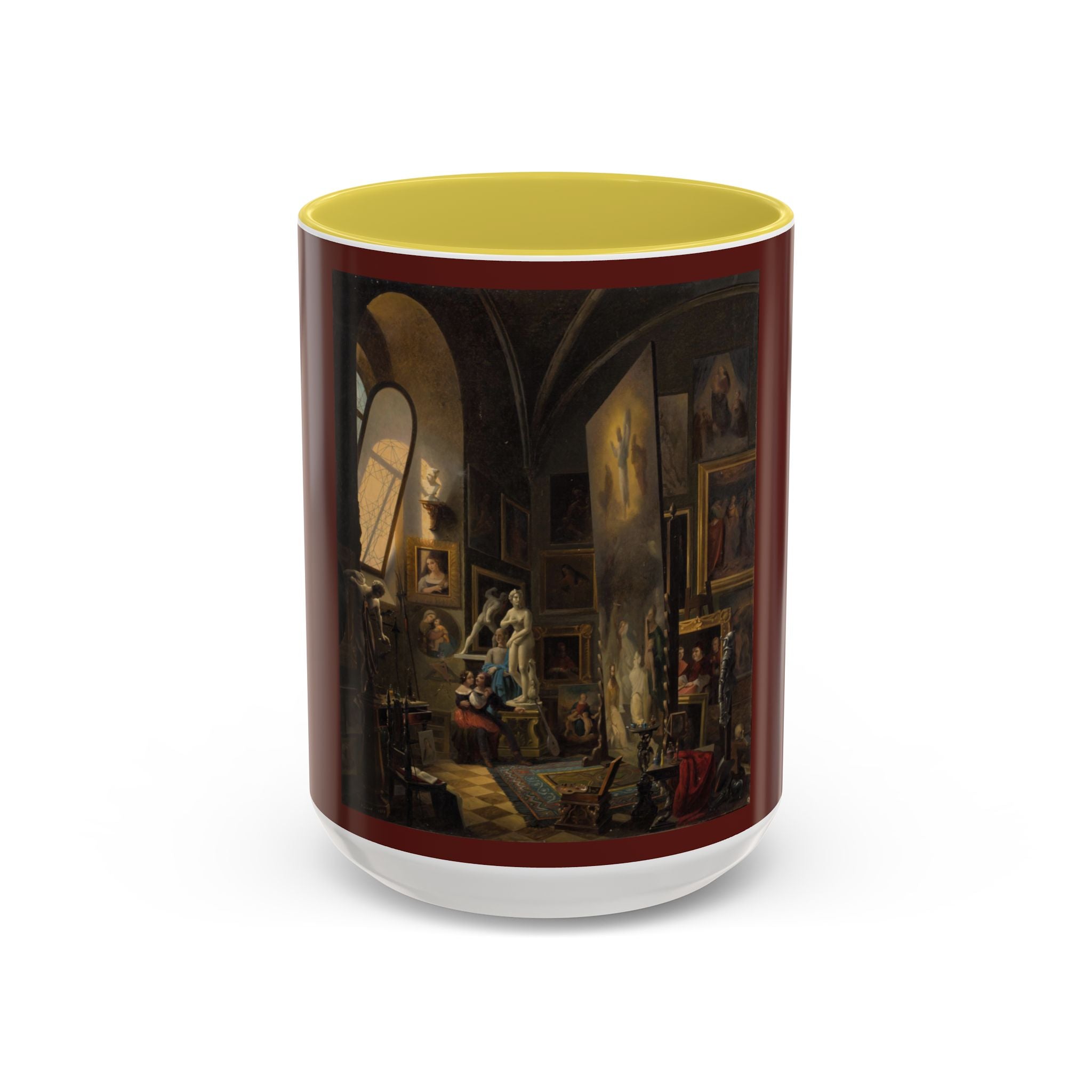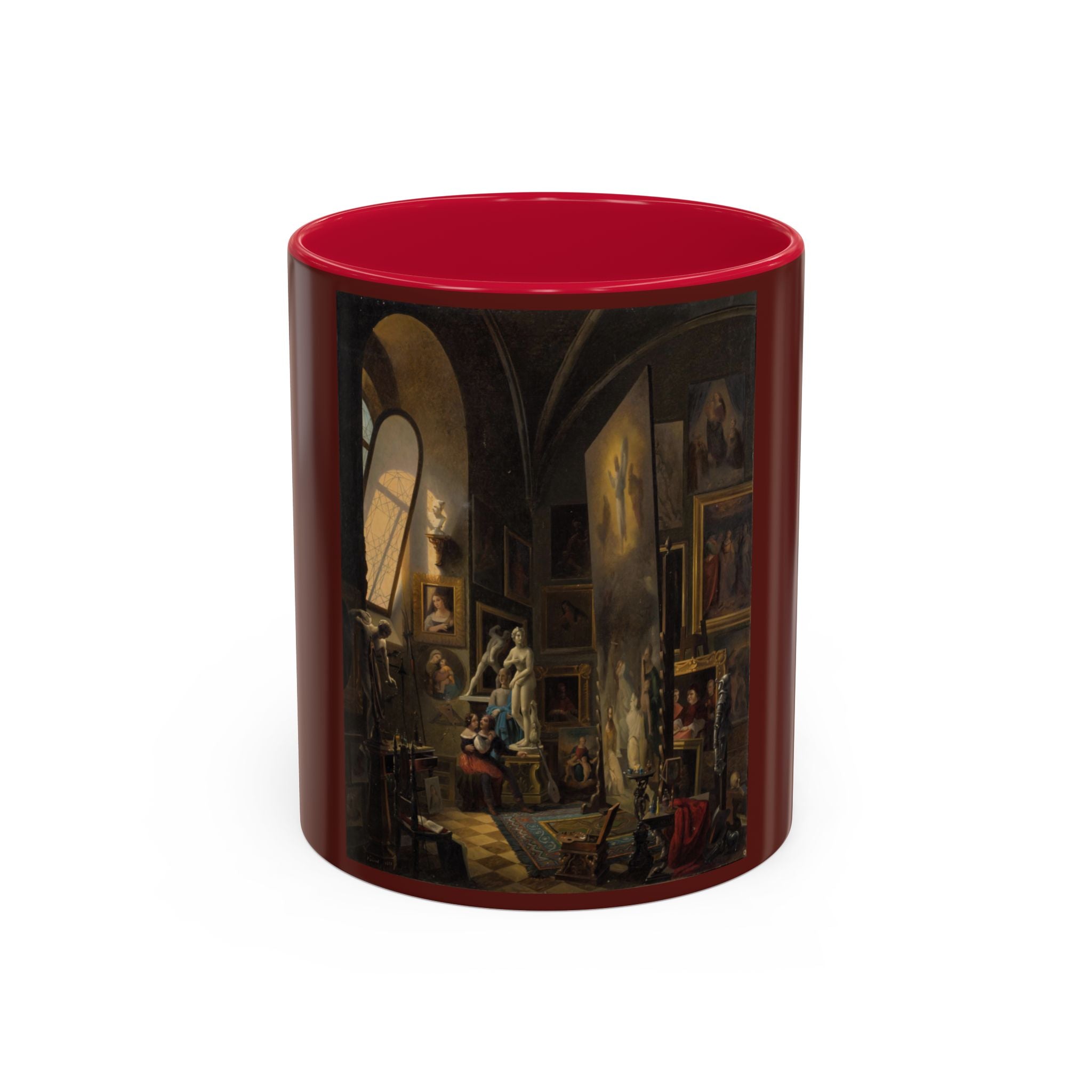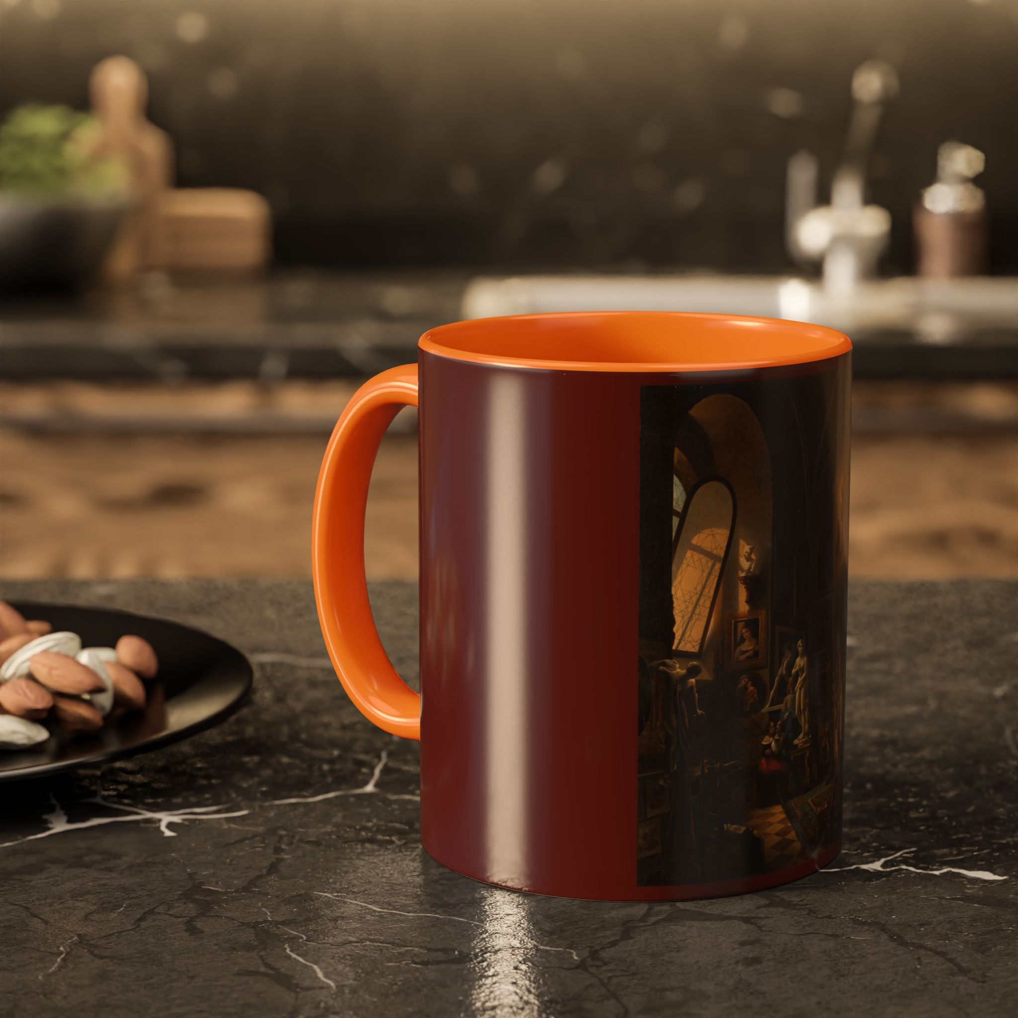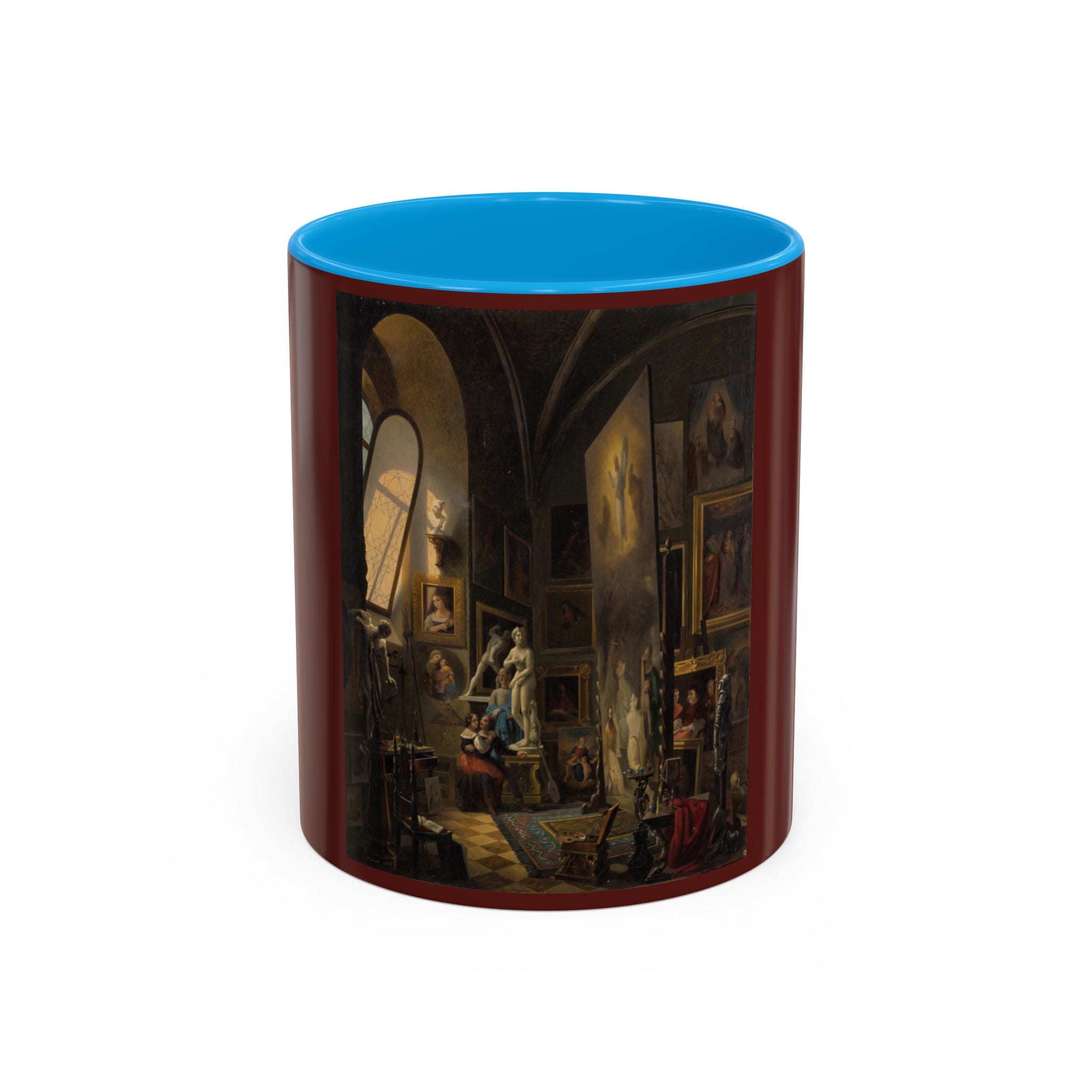 Mugs are a kitchen essential, and when infused with a personalized touch, they transform into cherished favorites. These mugs, offered in 12 vibrant color choices, can hold up to 11oz of your preferred rejuvenating beverage and feature a colored handle and interior. The glossy finish adds an elegant accent that beautifully complements the high-fidelity artwork print, making them not only a delightful addition to your kitchen but also a fantastic choice for thoughtful gifts.