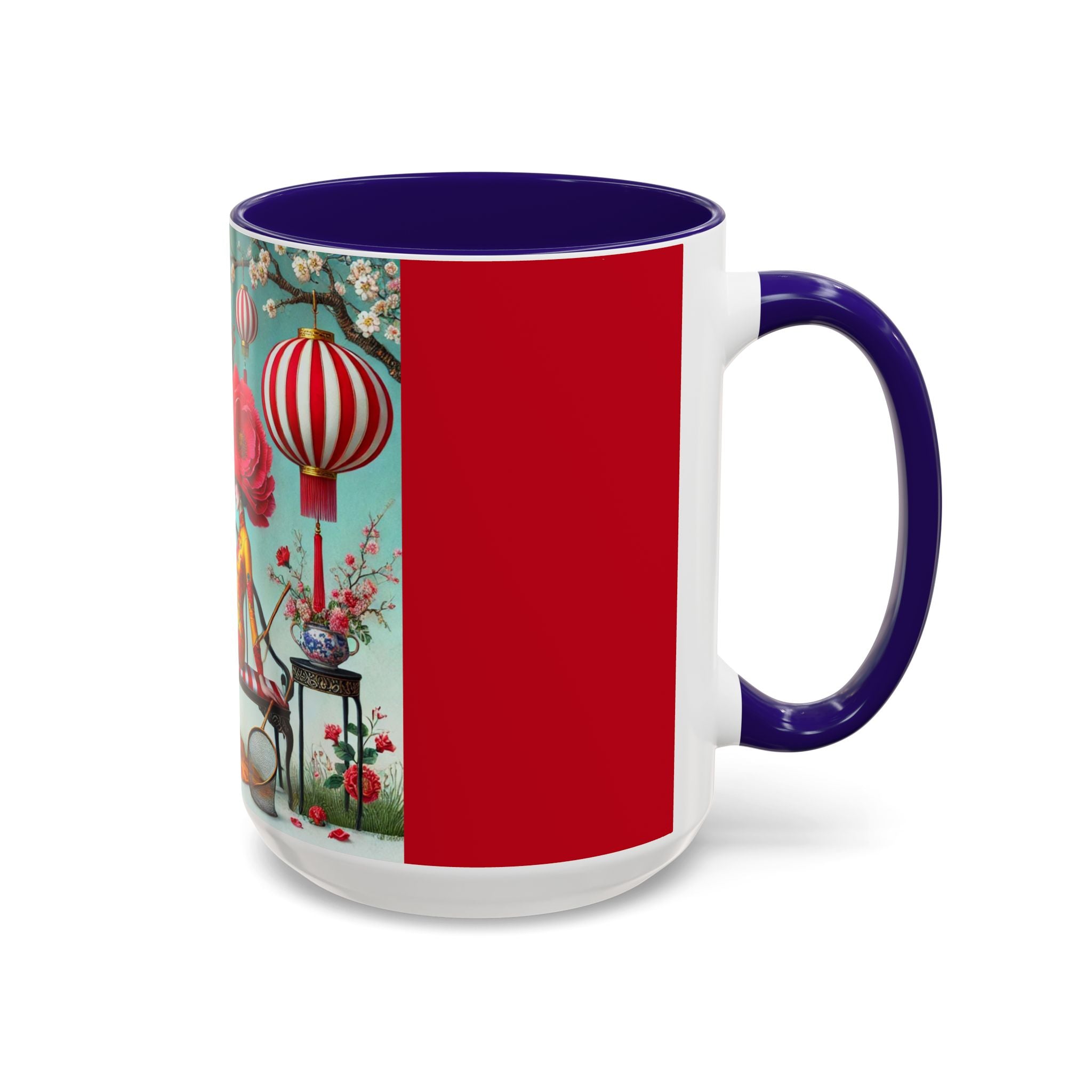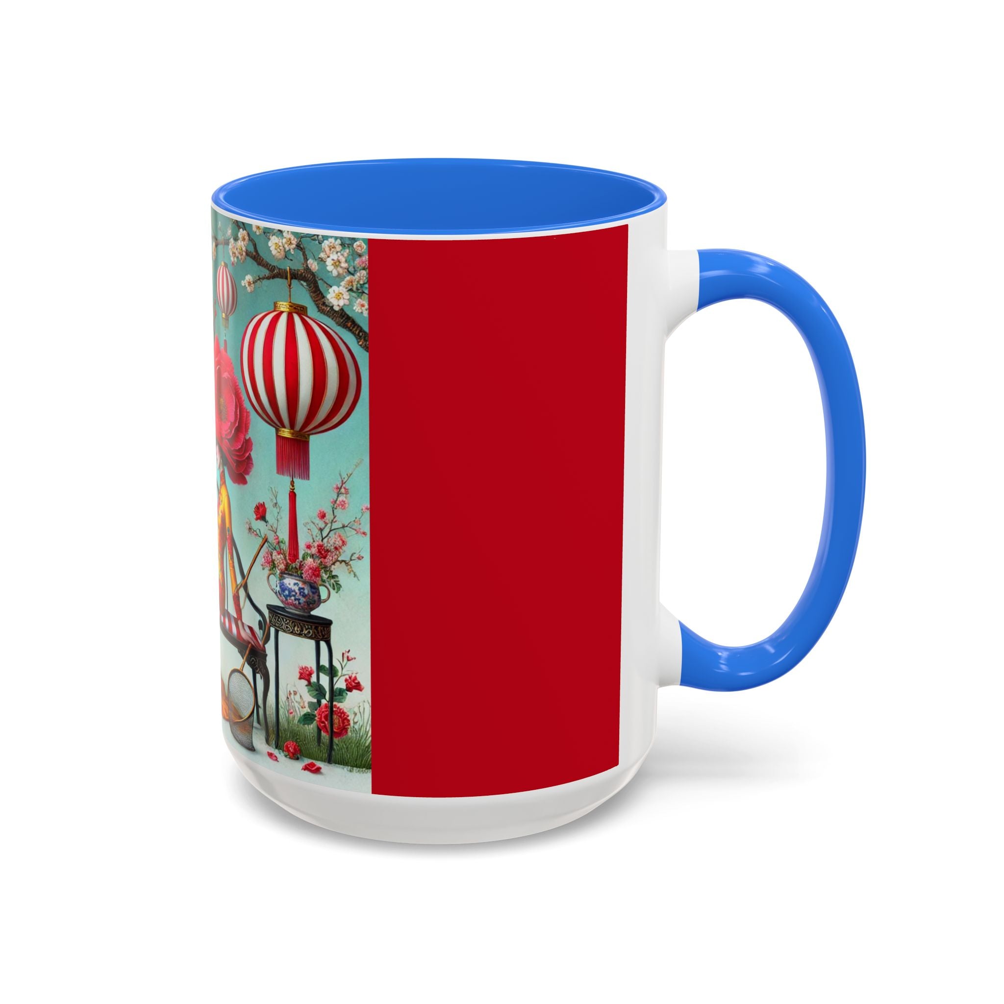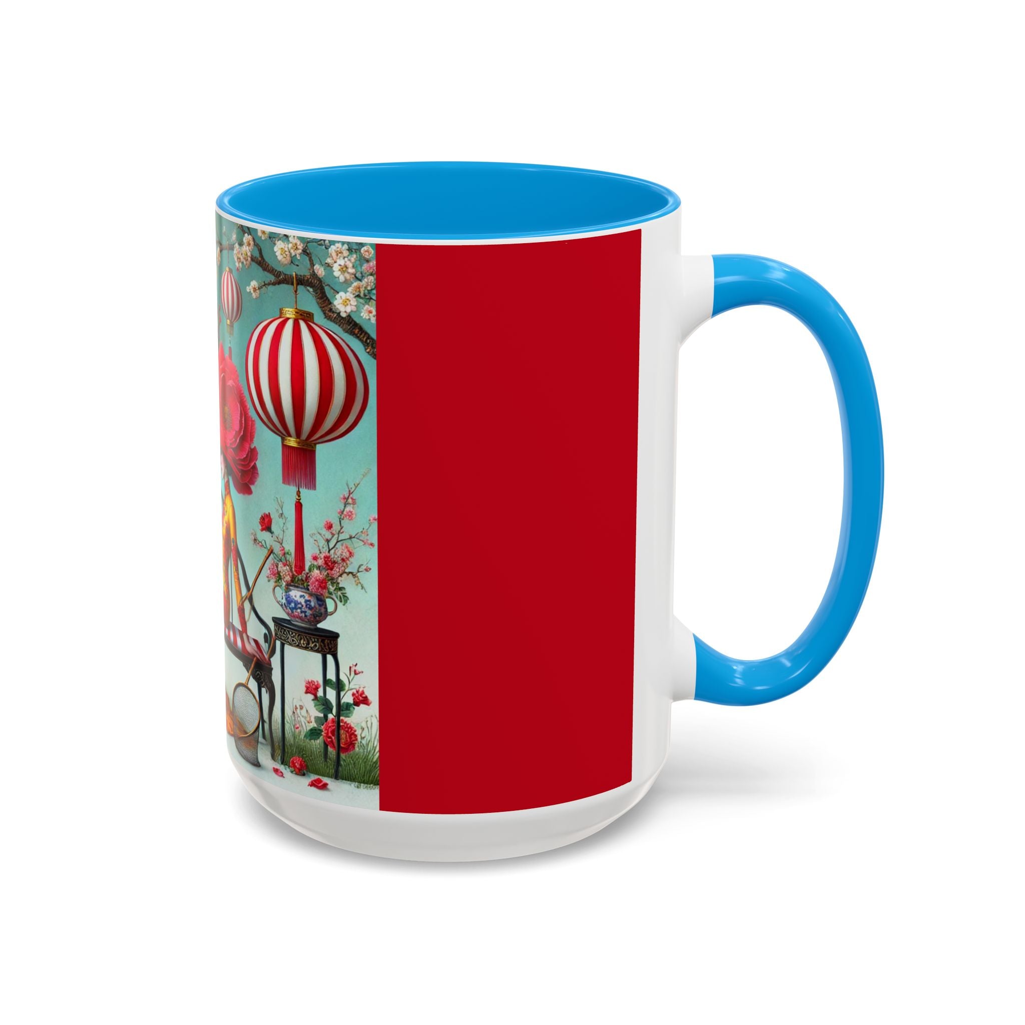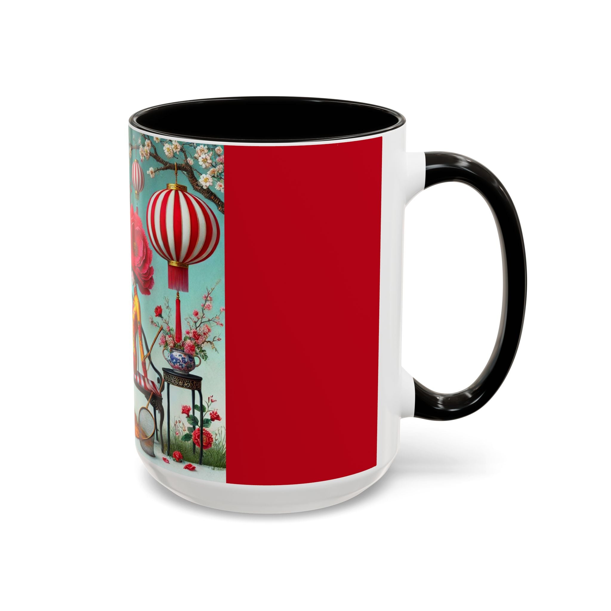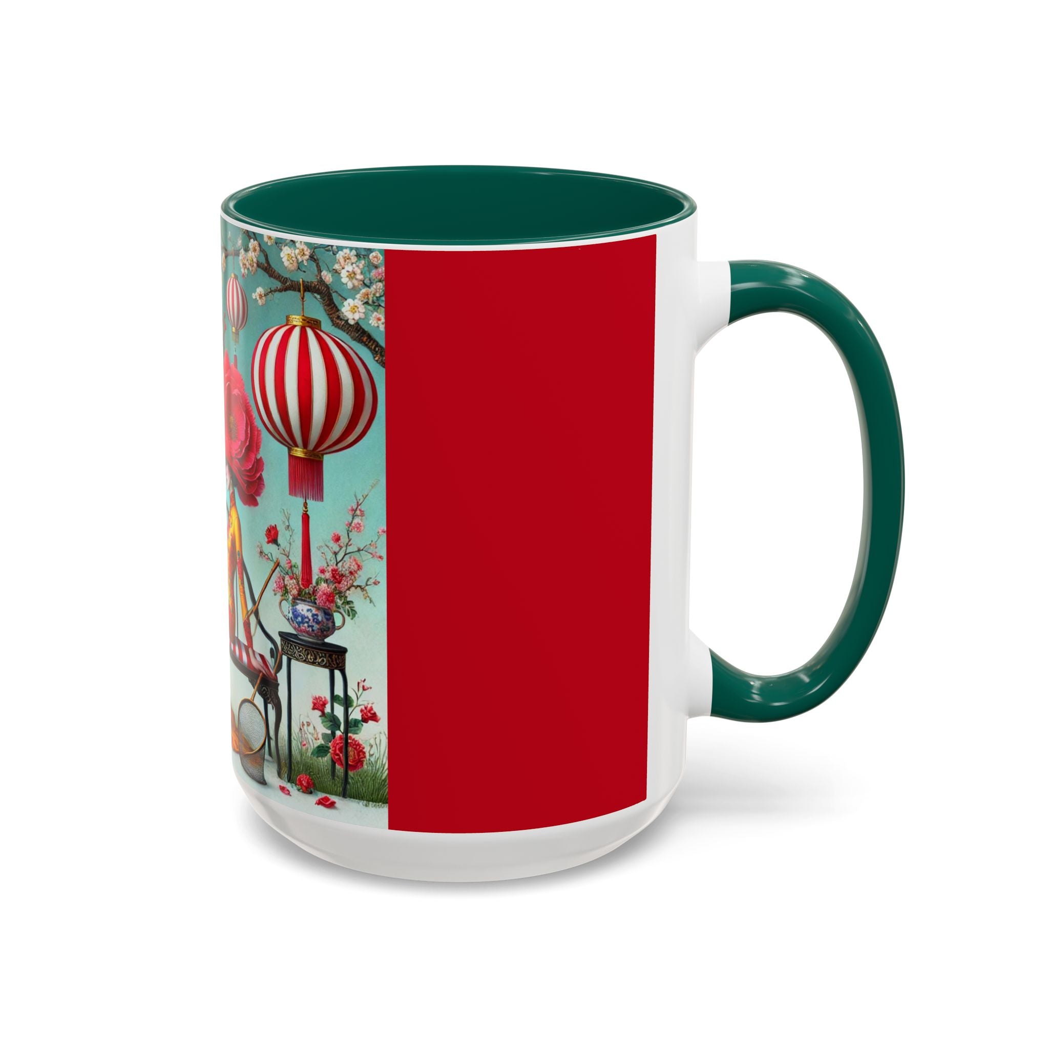 Reading in a Painted Garden turns every sip into a quiet, beautiful pause—featuring a graceful figure lost in a book beneath blooming branches, floating lanterns, and drifting butterflies. Turquoise skies, warm florals, and delicate gold-toned details create a serene, storybook atmosphere that feels curated and calm. With 12 accent colors to choose from and two generous sizes, this glossy ceramic mug is a cheerful everyday staple that also makes a thoughtful gift for readers, art lovers, and anyone who enjoys a peaceful moment.
