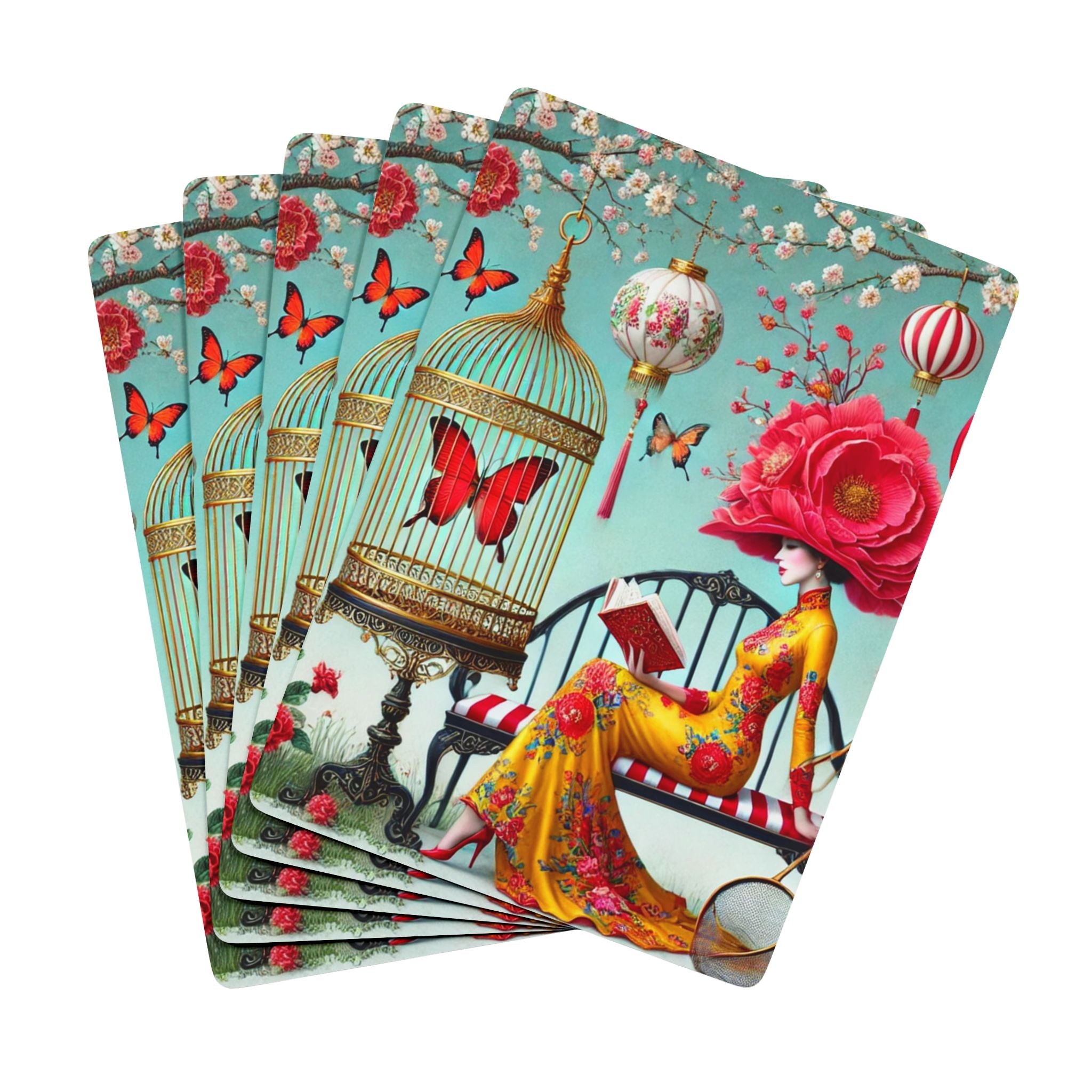 Reading in a Painted Garden Playing Cards