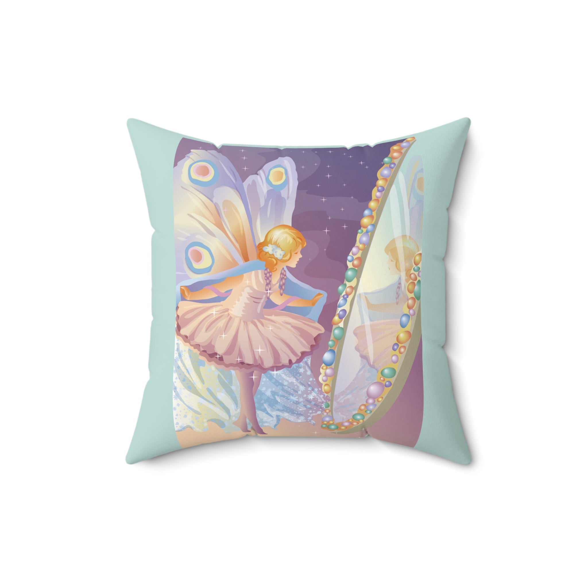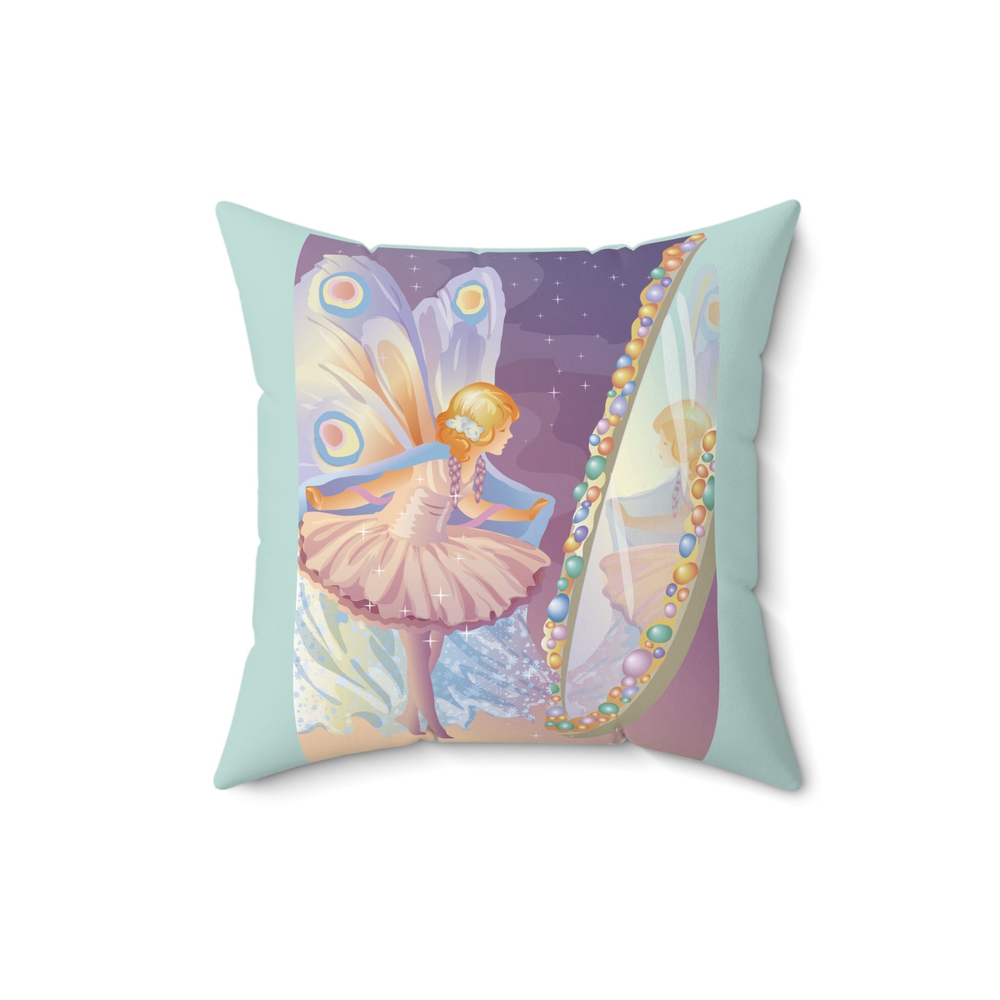 Artwork created, designed and digitally remastered by Sarasvati Designs. The artwork, “Reflections of Enchantment,” Step into a world of enchantment with this delightful artwork rendered in soft pastels. A young fairy takes center stage, standing gracefully before a bejeweled full-length oval mirror. With a sweet curtsy, she acknowledges her own reflection, which sparkles back at her from the bedazzled surface.