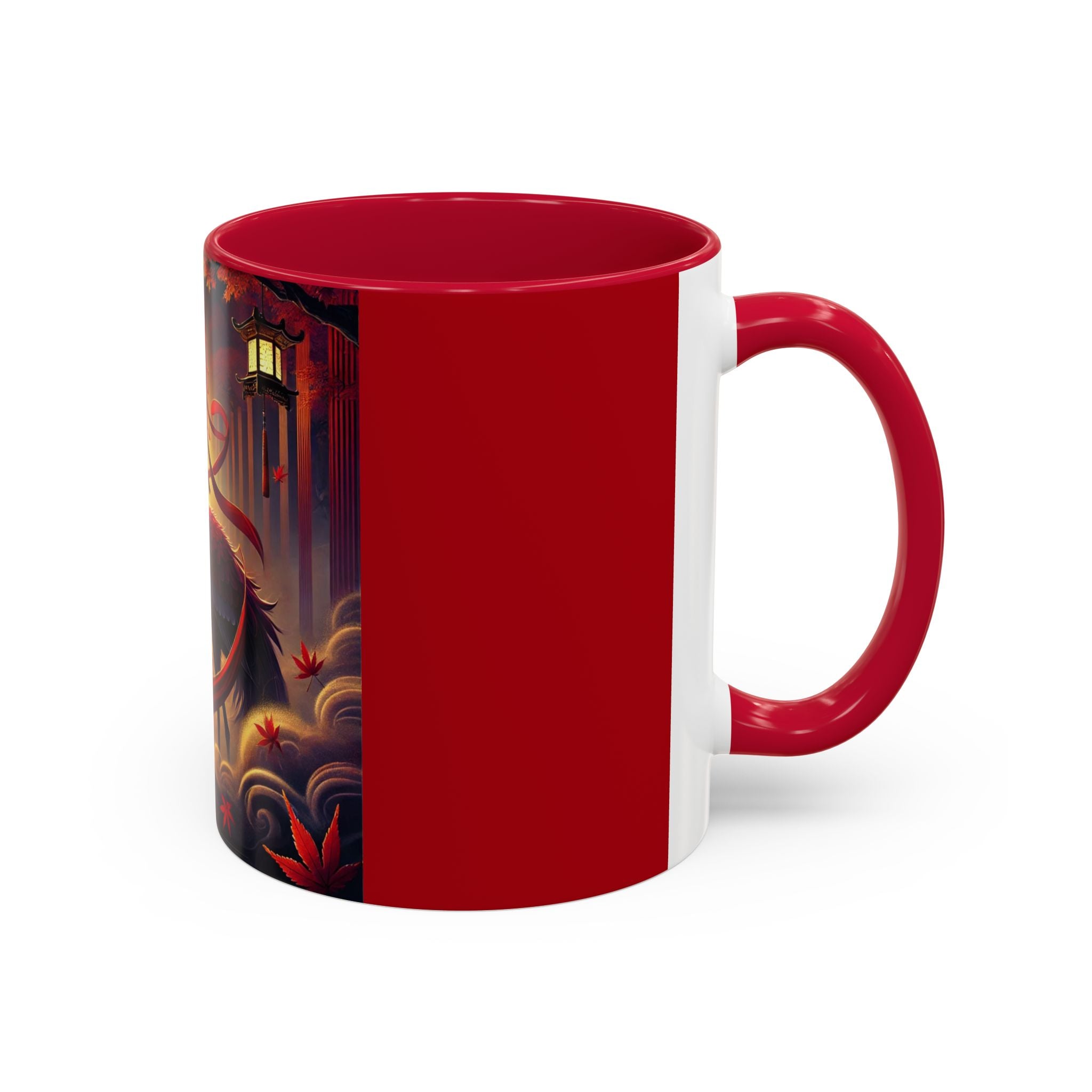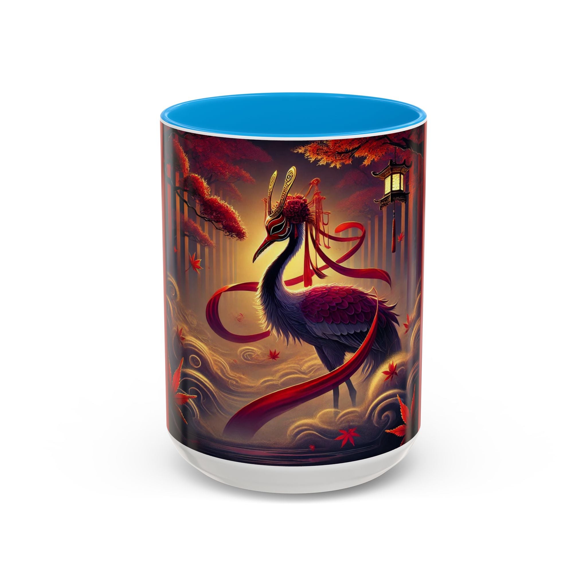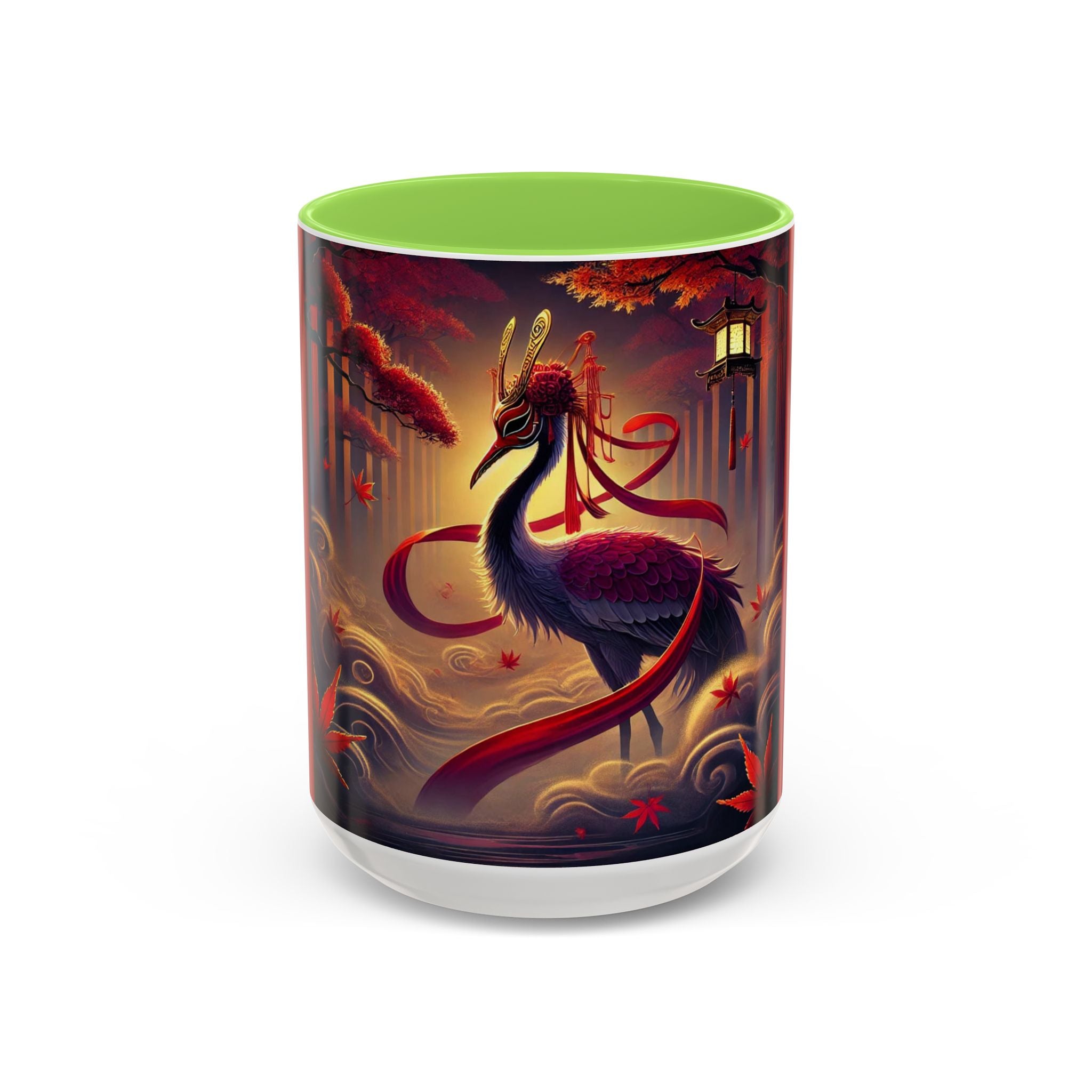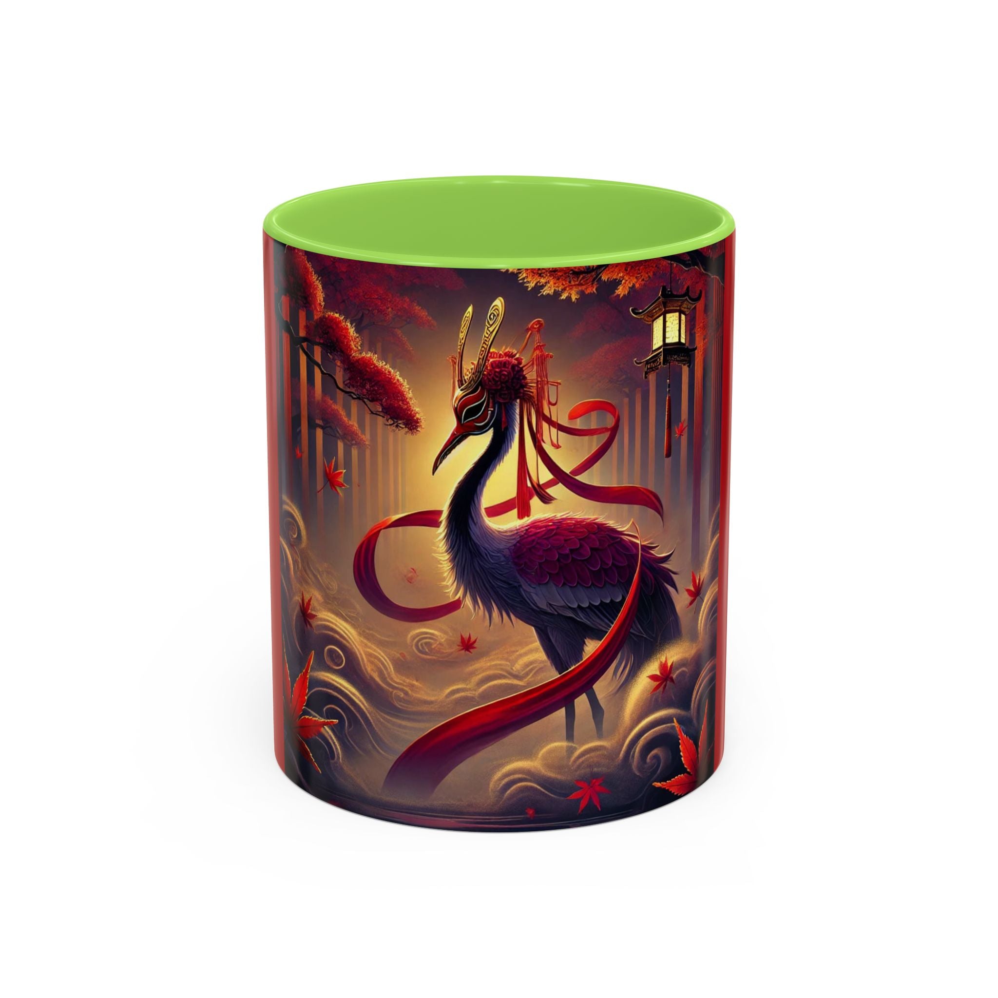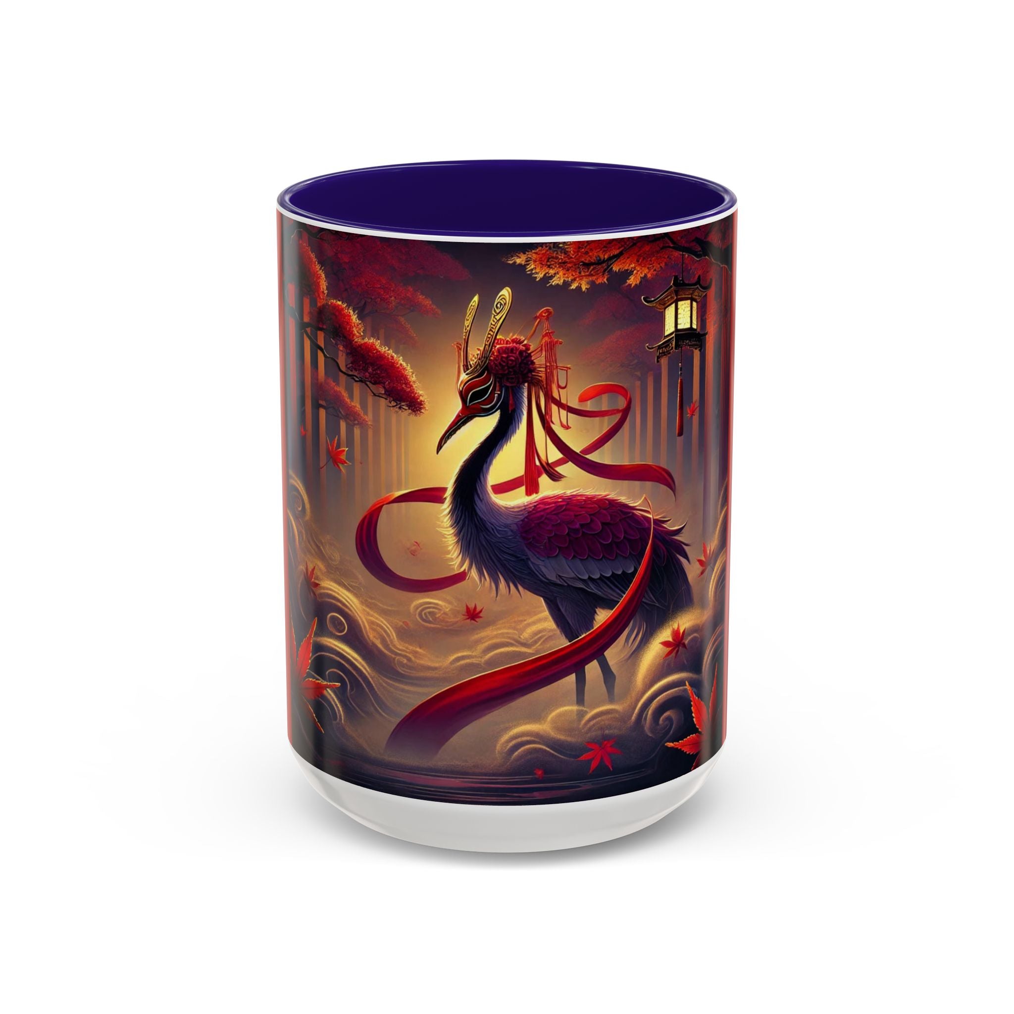 Sip your favorite drink in style with these ceramic mugs that blend function and artistry. Available in 11oz and 15oz sizes, each mug comes with a colored handle and interior in 12 vibrant options, while the glossy finish enhances the high-fidelity print. Wrapped around the surface is the Regal Crimson Crane in the Autumn Mist artwork—a kabuki-inspired Halloween portrait featuring a crimson-feathered crane standing gracefully in drifting autumn mist, adorned in traditional Japanese attire with harvest motifs. The haunting yet refined design transforms this everyday kitchen staple into a functional piece of seasonal art, perfect for coffee, tea, or gifting during the autumn months.
