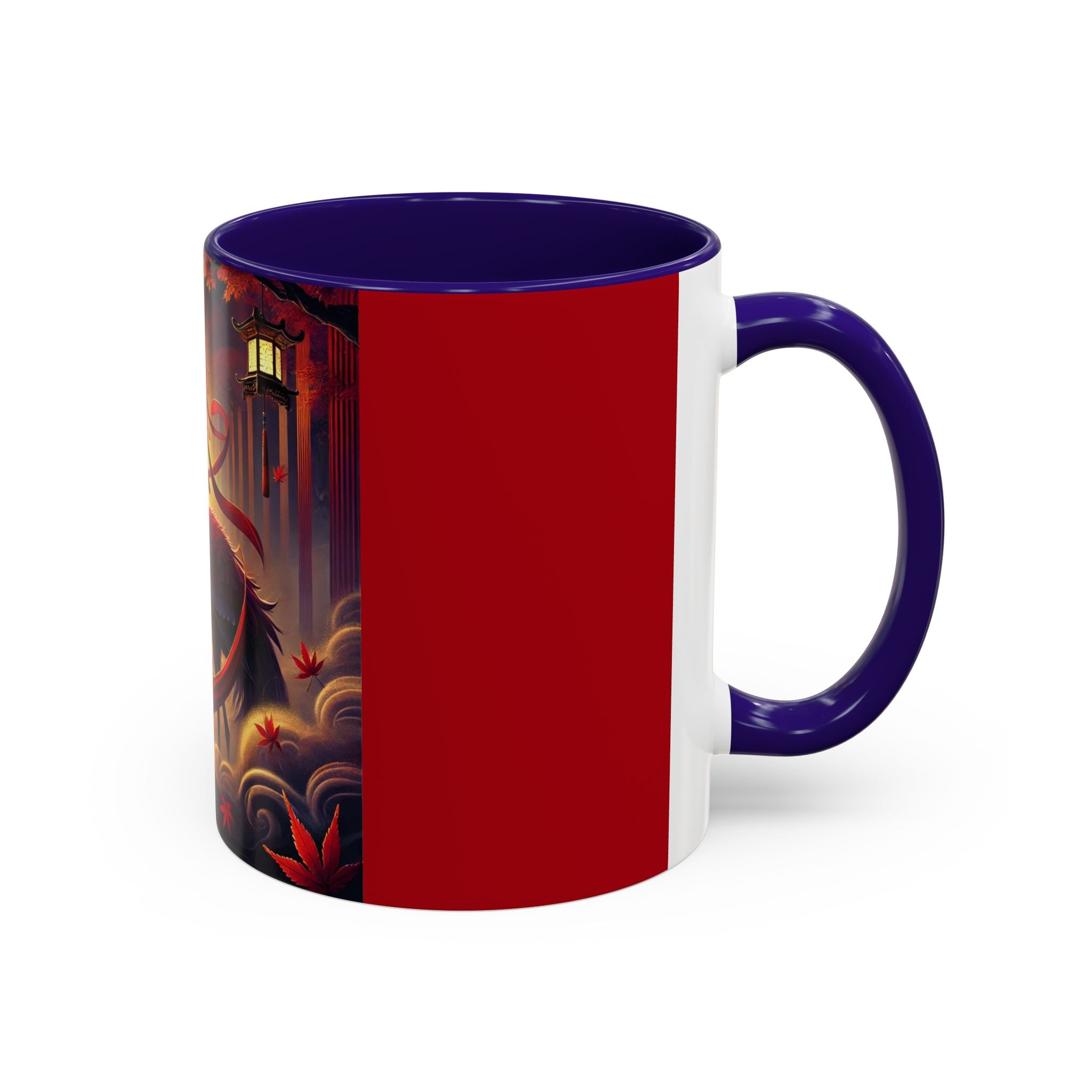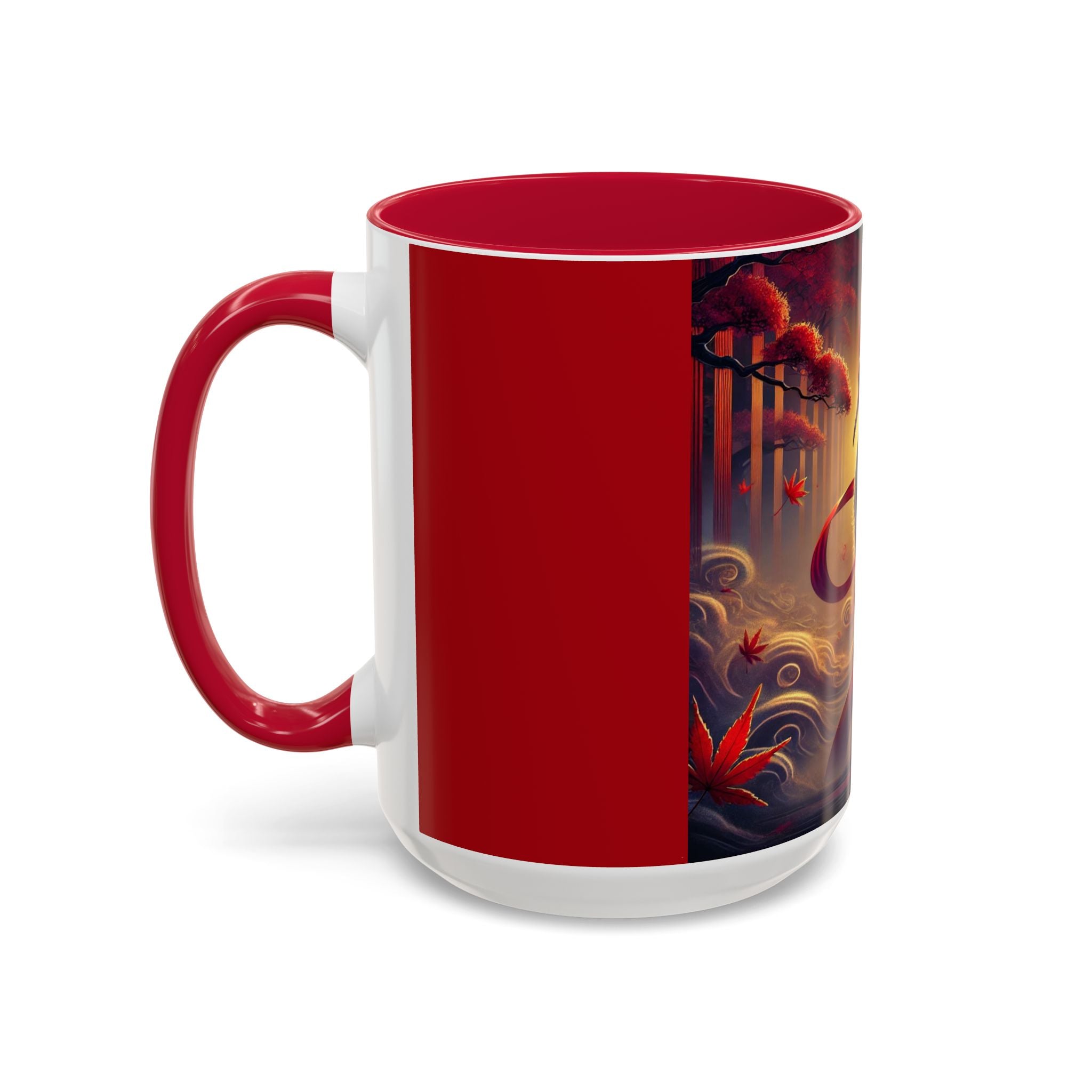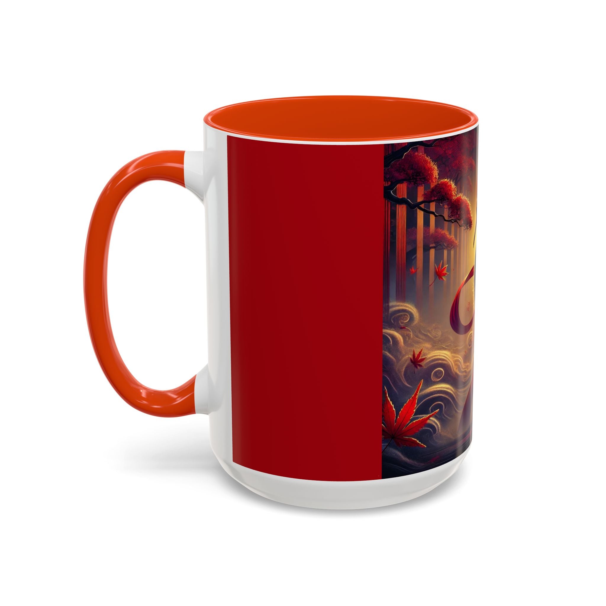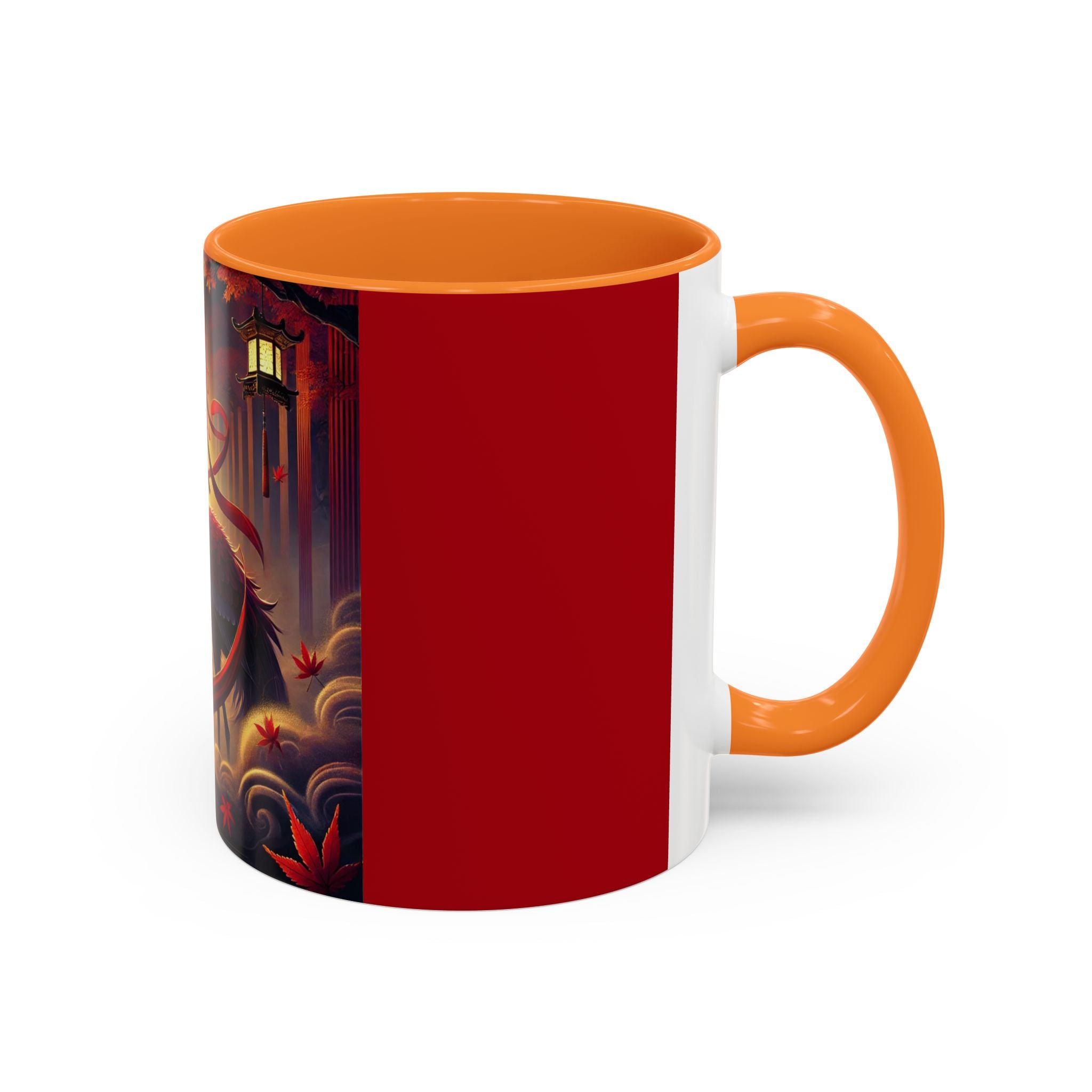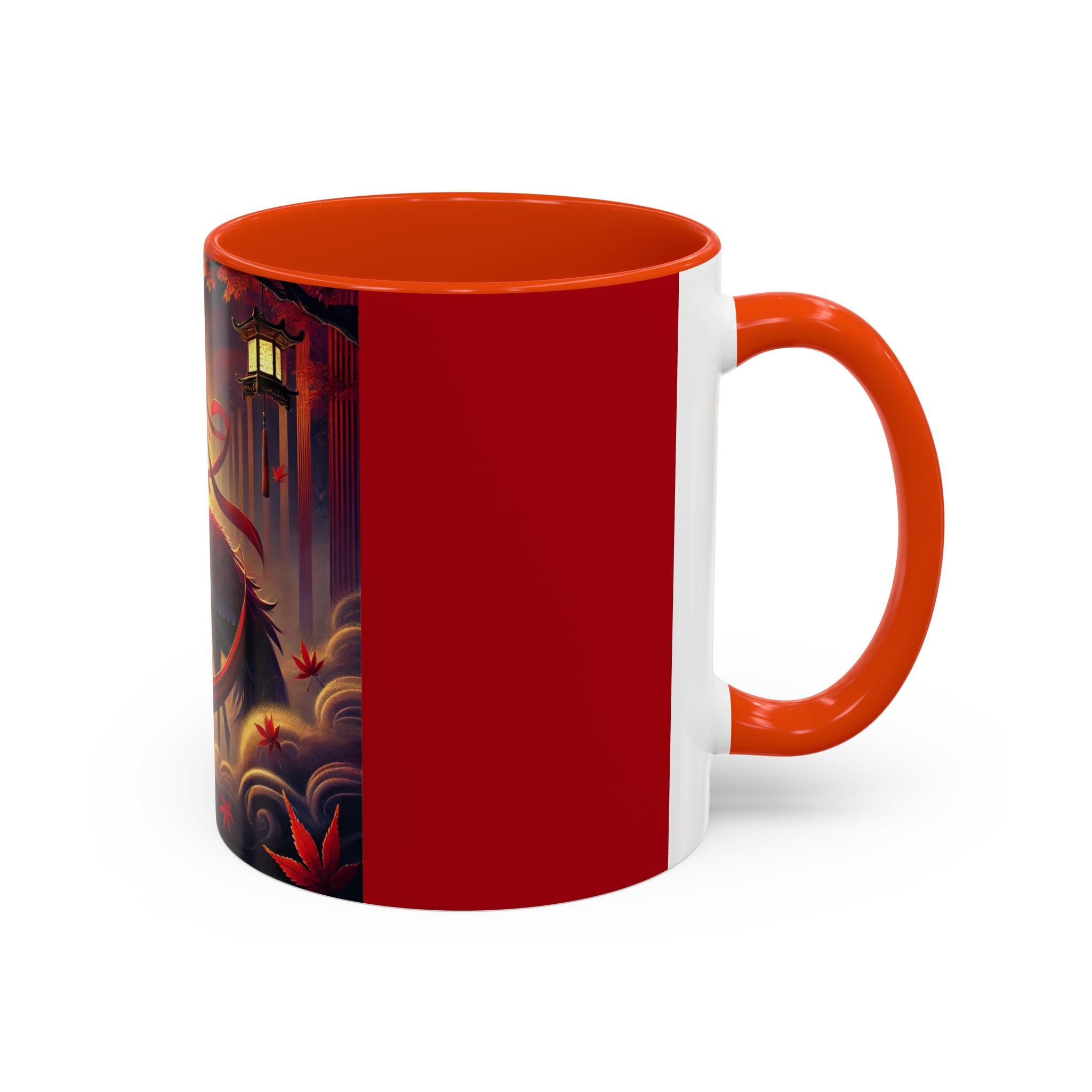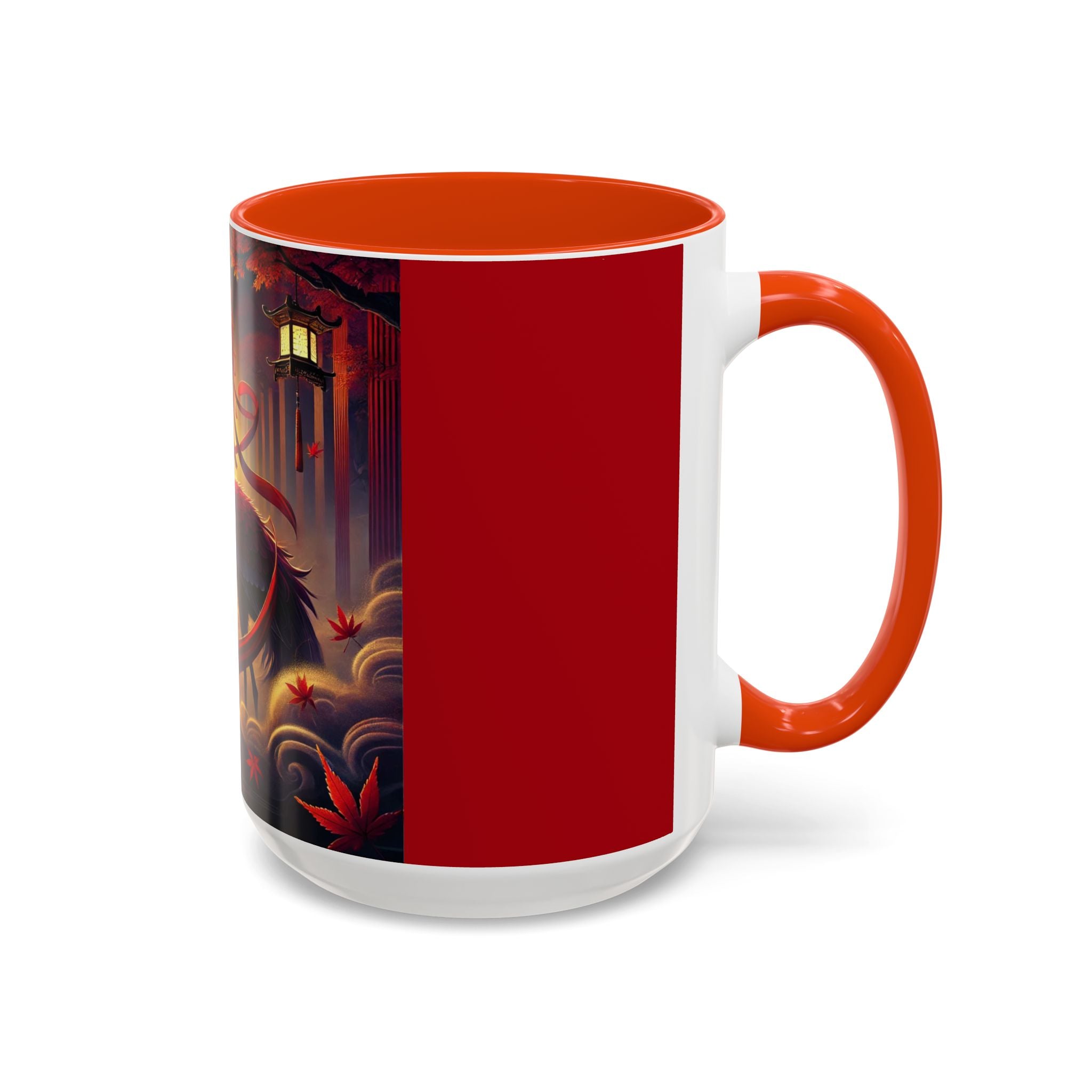 Sip your favorite drink in style with these ceramic mugs that blend function and artistry. Available in 11oz and 15oz sizes, each mug comes with a colored handle and interior in 12 vibrant options, while the glossy finish enhances the high-fidelity print. Wrapped around the surface is the Regal Crimson Crane in the Autumn Mist artwork—a kabuki-inspired Halloween portrait featuring a crimson-feathered crane standing gracefully in drifting autumn mist, adorned in traditional Japanese attire with harvest motifs. The haunting yet refined design transforms this everyday kitchen staple into a functional piece of seasonal art, perfect for coffee, tea, or gifting during the autumn months.