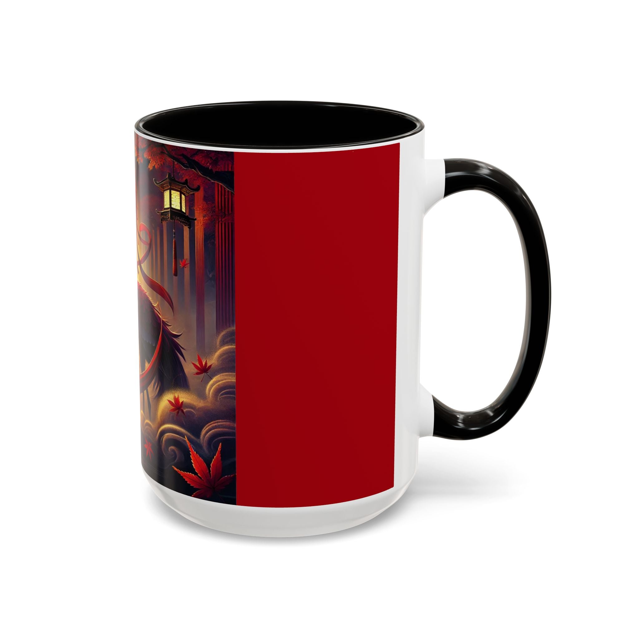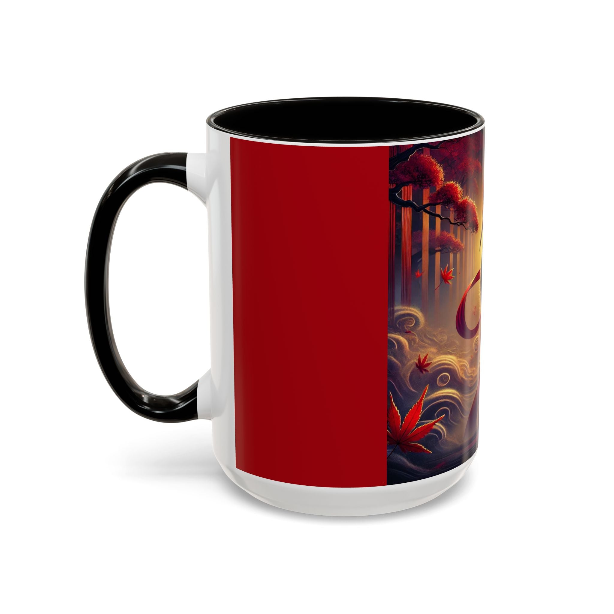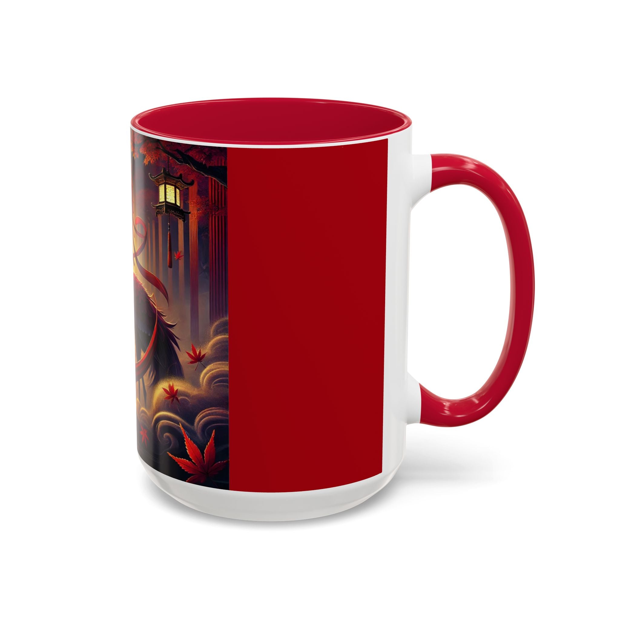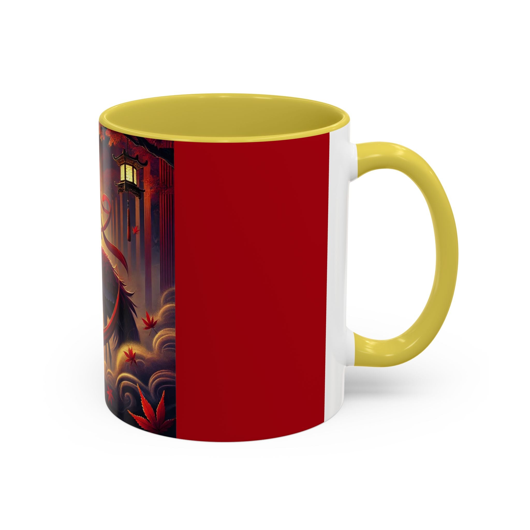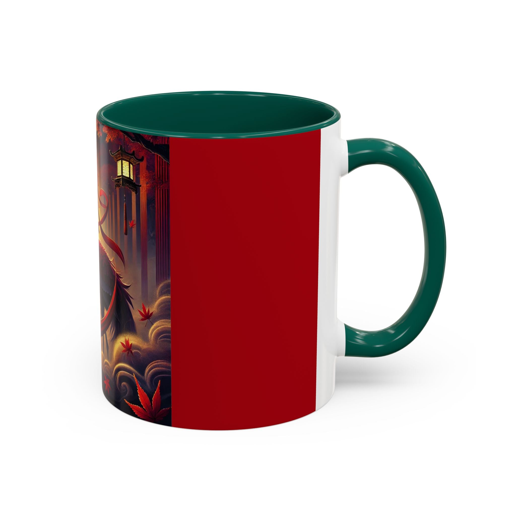 Sip your favorite drink in style with these ceramic mugs that blend function and artistry. Available in 11oz and 15oz sizes, each mug comes with a colored handle and interior in 12 vibrant options, while the glossy finish enhances the high-fidelity print. Wrapped around the surface is the Regal Crimson Crane in the Autumn Mist artwork—a kabuki-inspired Halloween portrait featuring a crimson-feathered crane standing gracefully in drifting autumn mist, adorned in traditional Japanese attire with harvest motifs. The haunting yet refined design transforms this everyday kitchen staple into a functional piece of seasonal art, perfect for coffee, tea, or gifting during the autumn months.