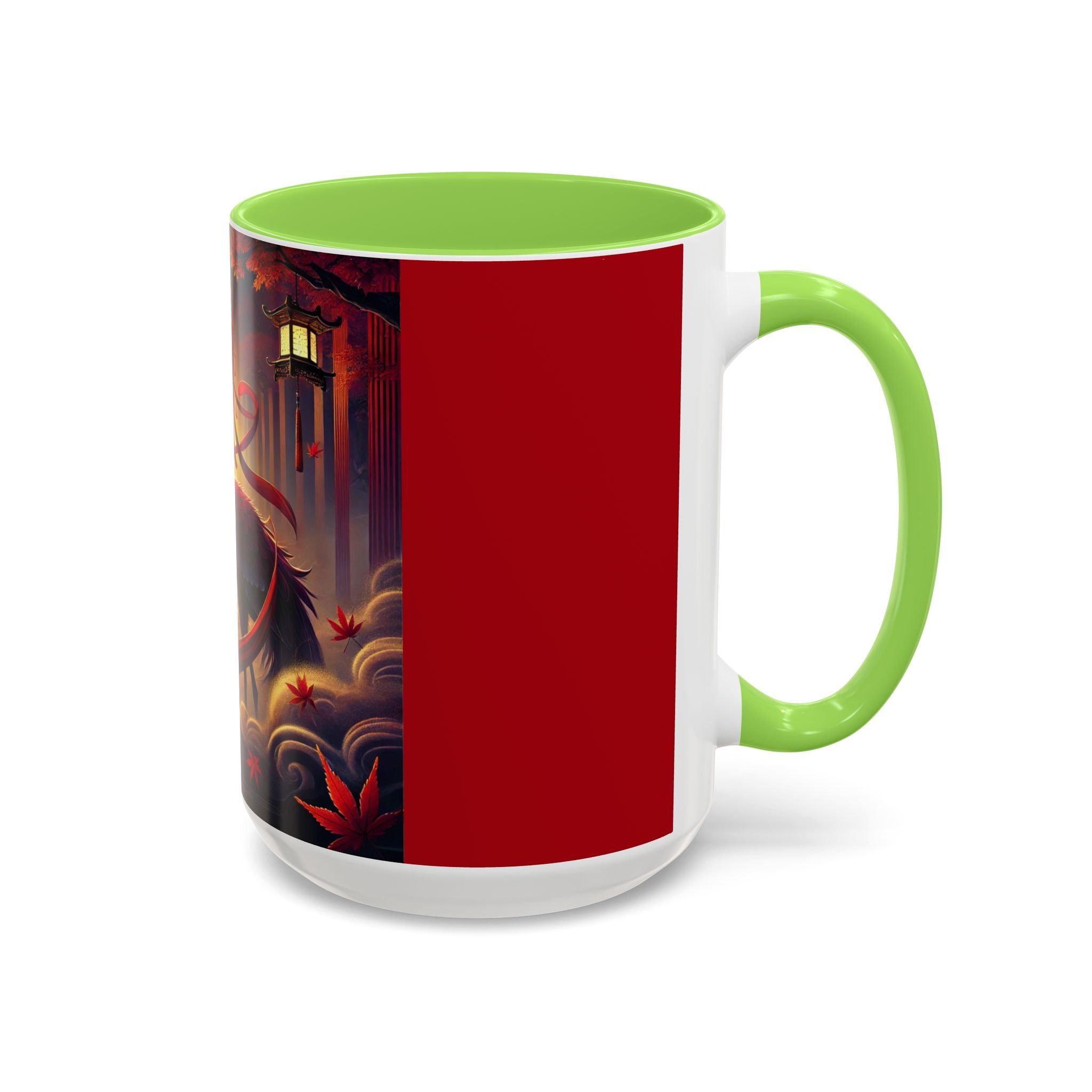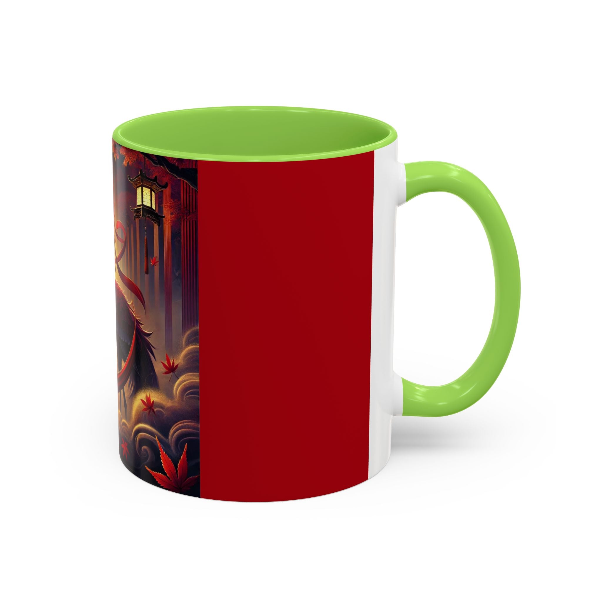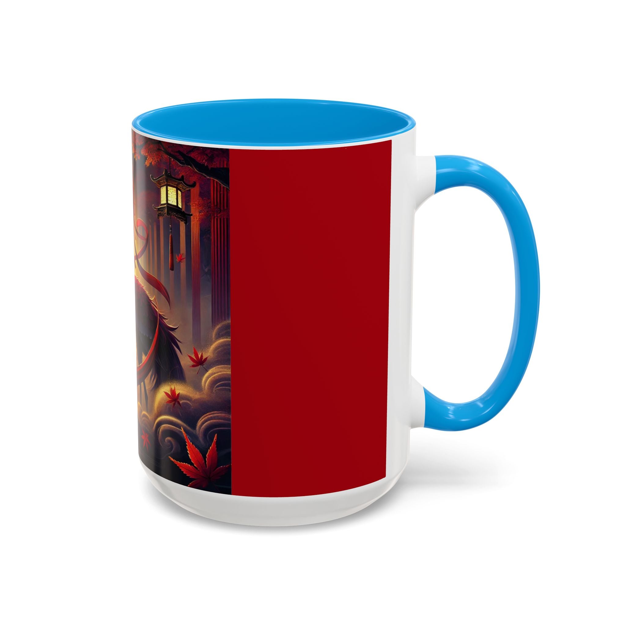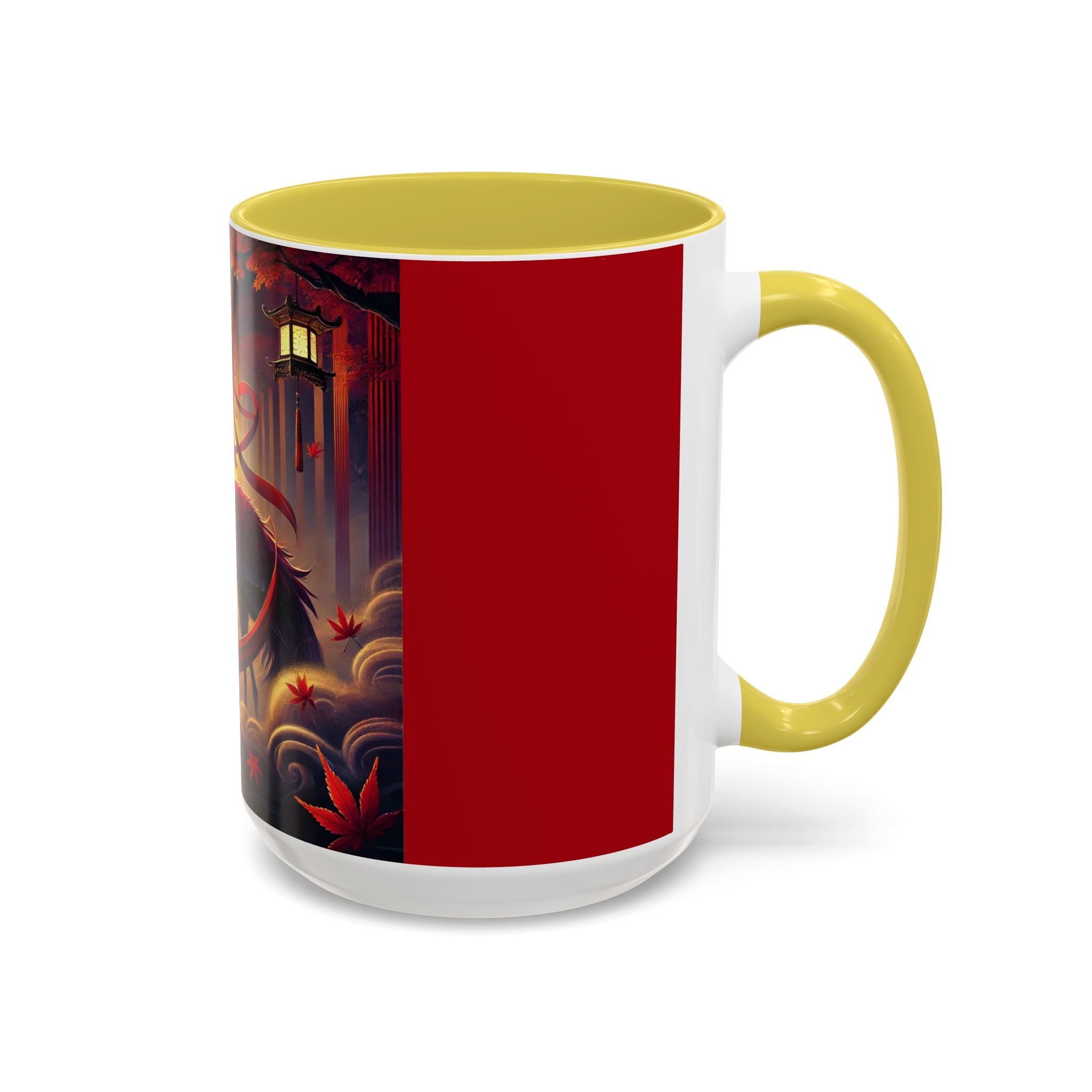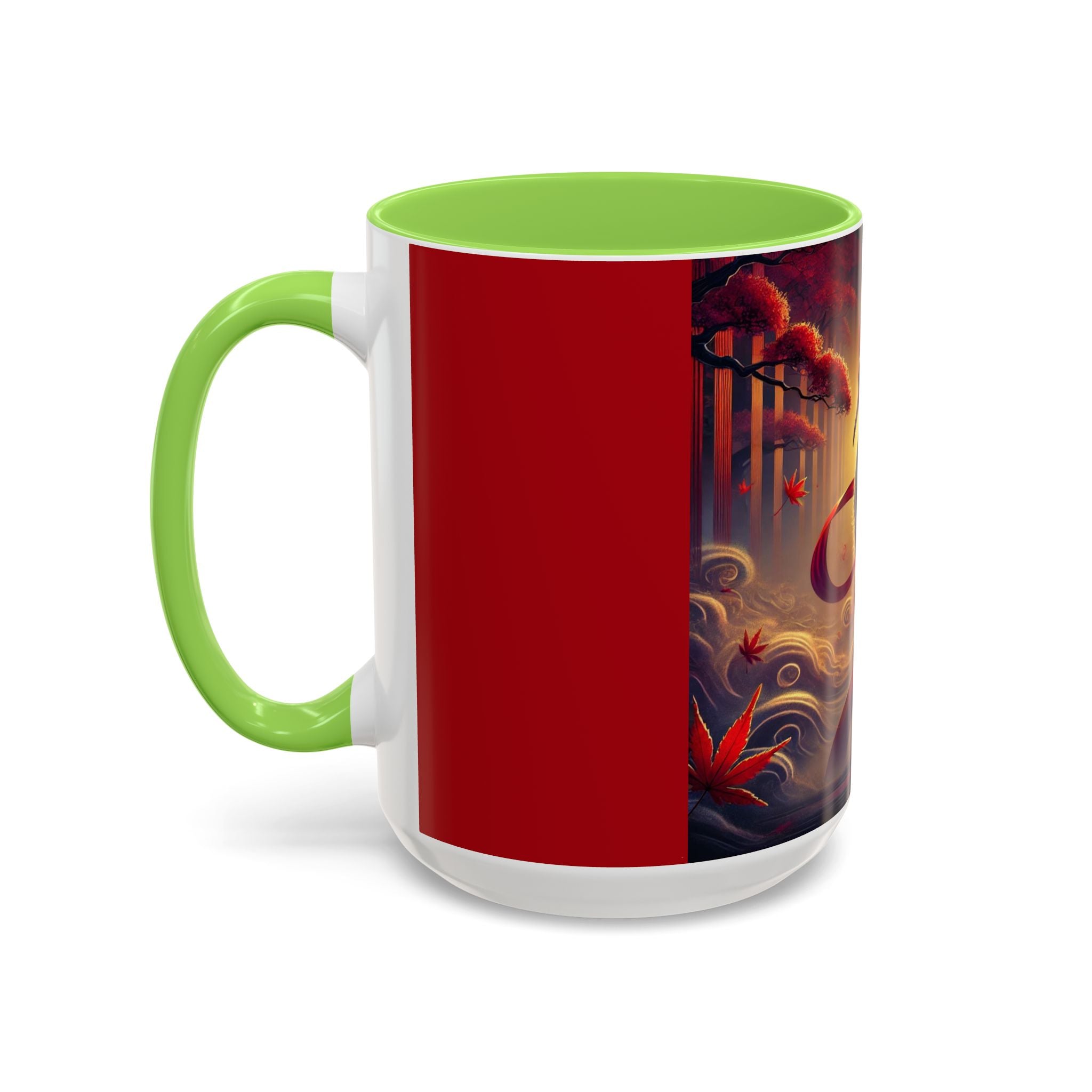 Sip your favorite drink in style with these ceramic mugs that blend function and artistry. Available in 11oz and 15oz sizes, each mug comes with a colored handle and interior in 12 vibrant options, while the glossy finish enhances the high-fidelity print. Wrapped around the surface is the Regal Crimson Crane in the Autumn Mist artwork—a kabuki-inspired Halloween portrait featuring a crimson-feathered crane standing gracefully in drifting autumn mist, adorned in traditional Japanese attire with harvest motifs. The haunting yet refined design transforms this everyday kitchen staple into a functional piece of seasonal art, perfect for coffee, tea, or gifting during the autumn months.
