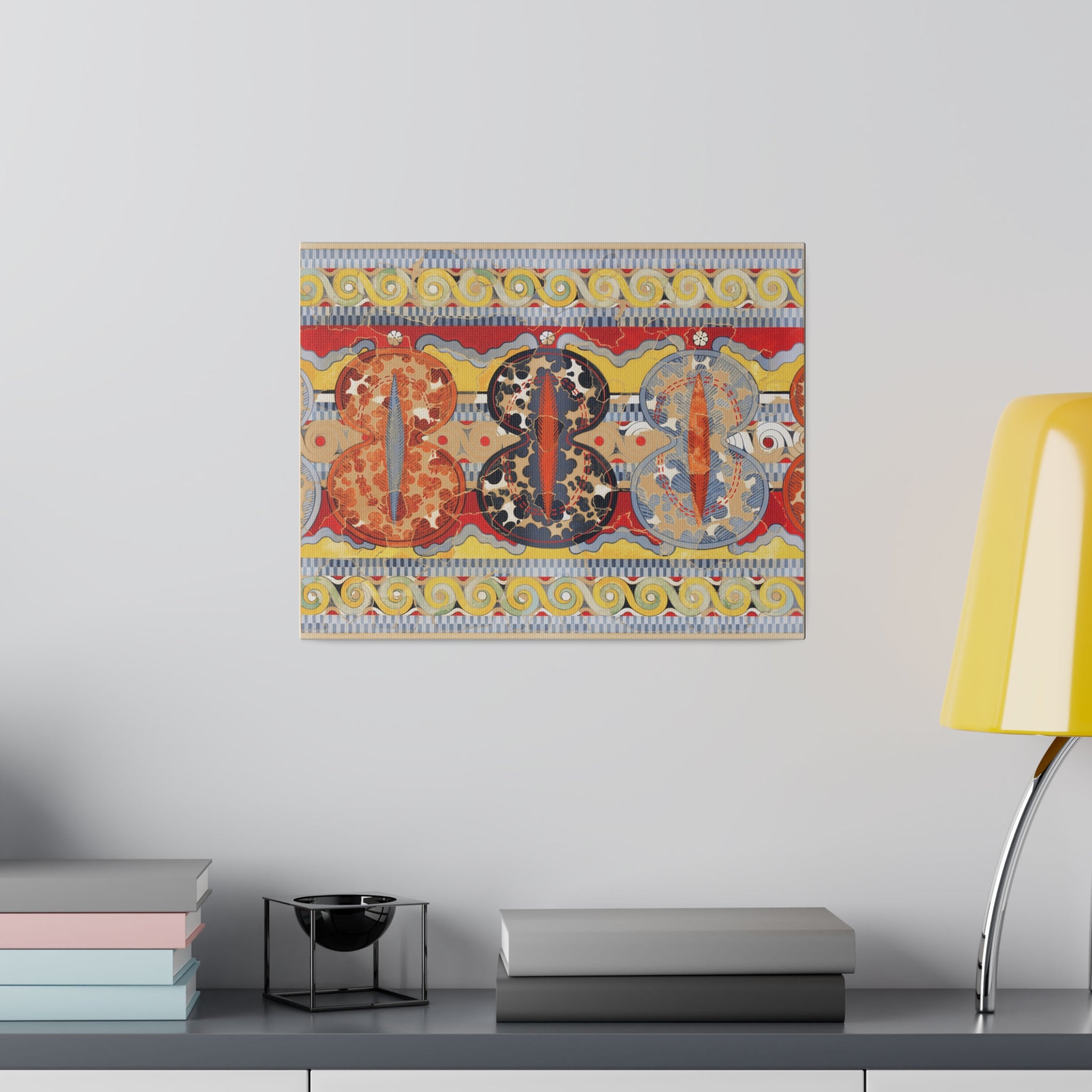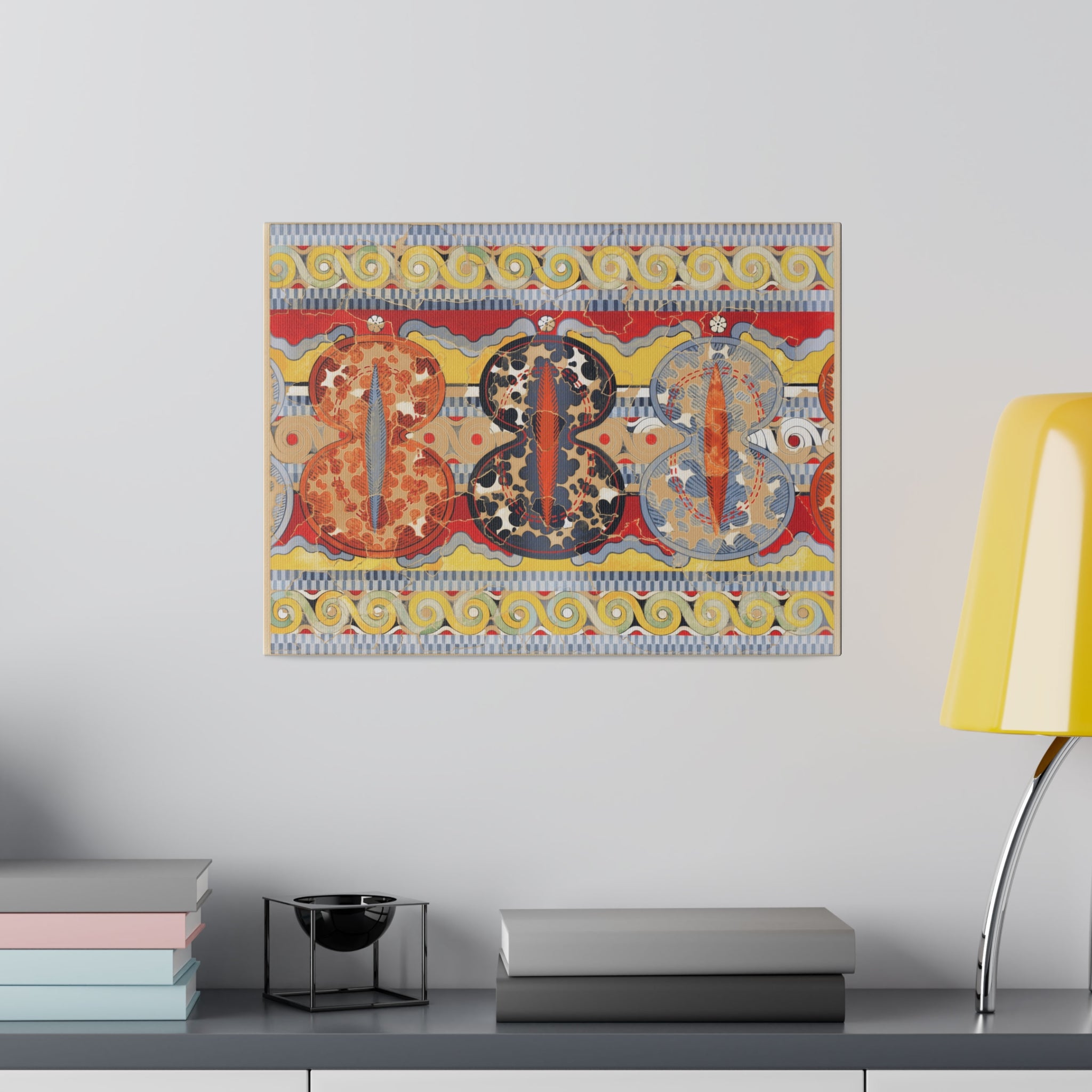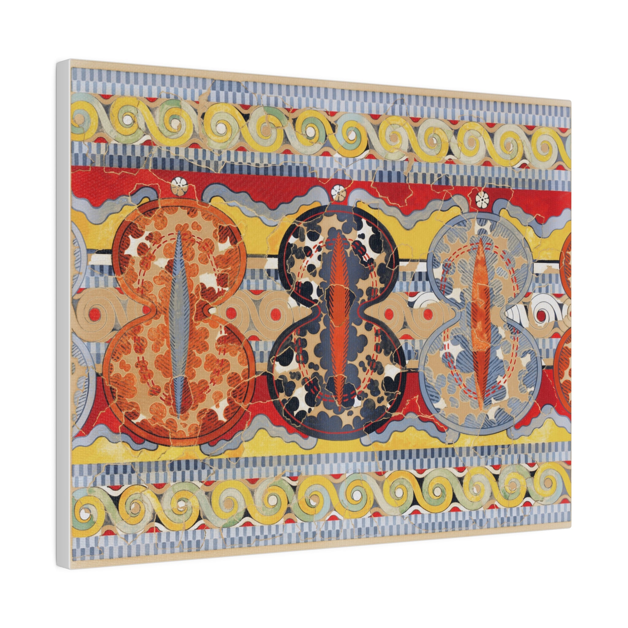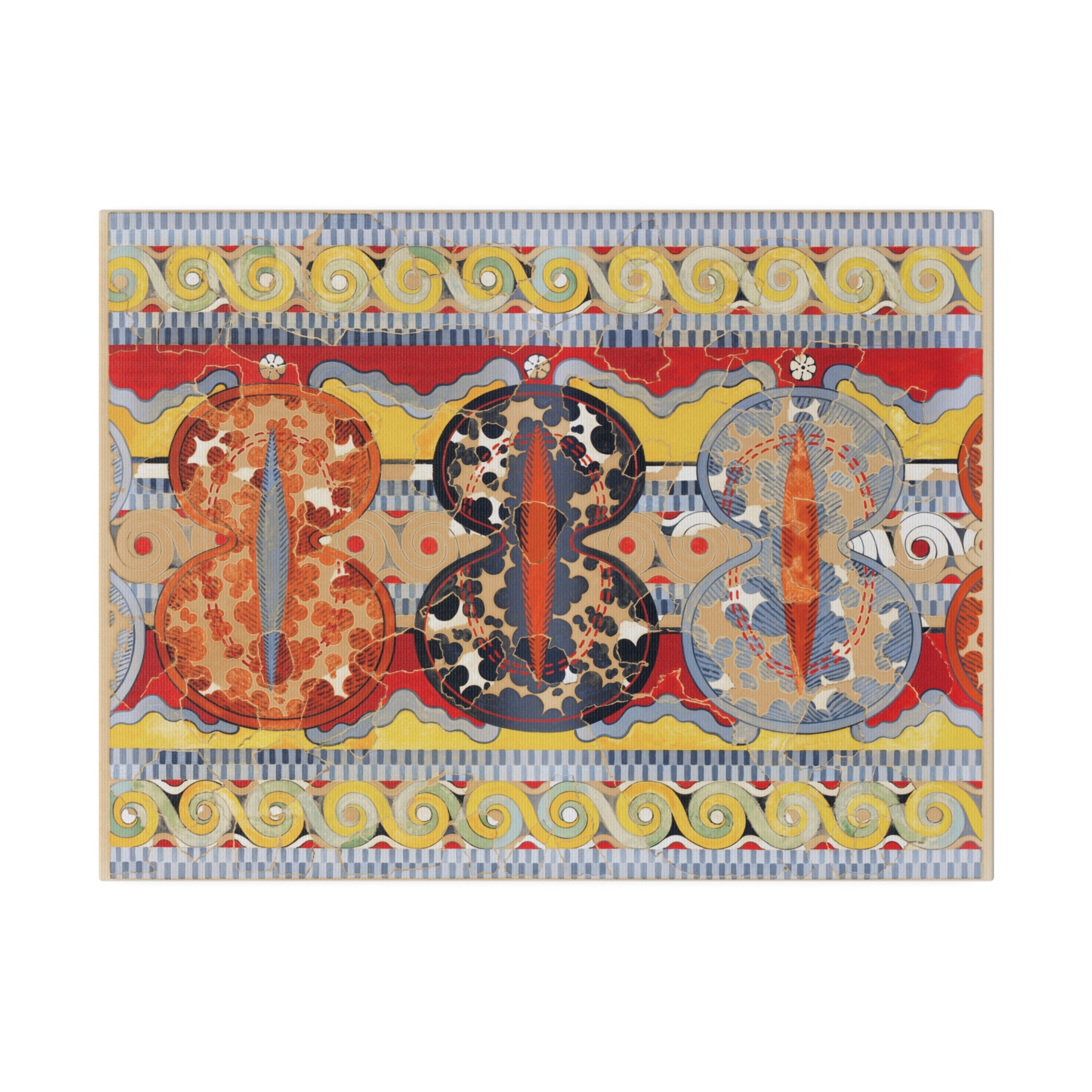 Artwork designed and digitally remastered by Sarasvati Designs. “Reproduction of the Shield Frieze” is a watercolor painting, a reproduction of a Mycenaean fresco, on paper by Emile Gilliéron.