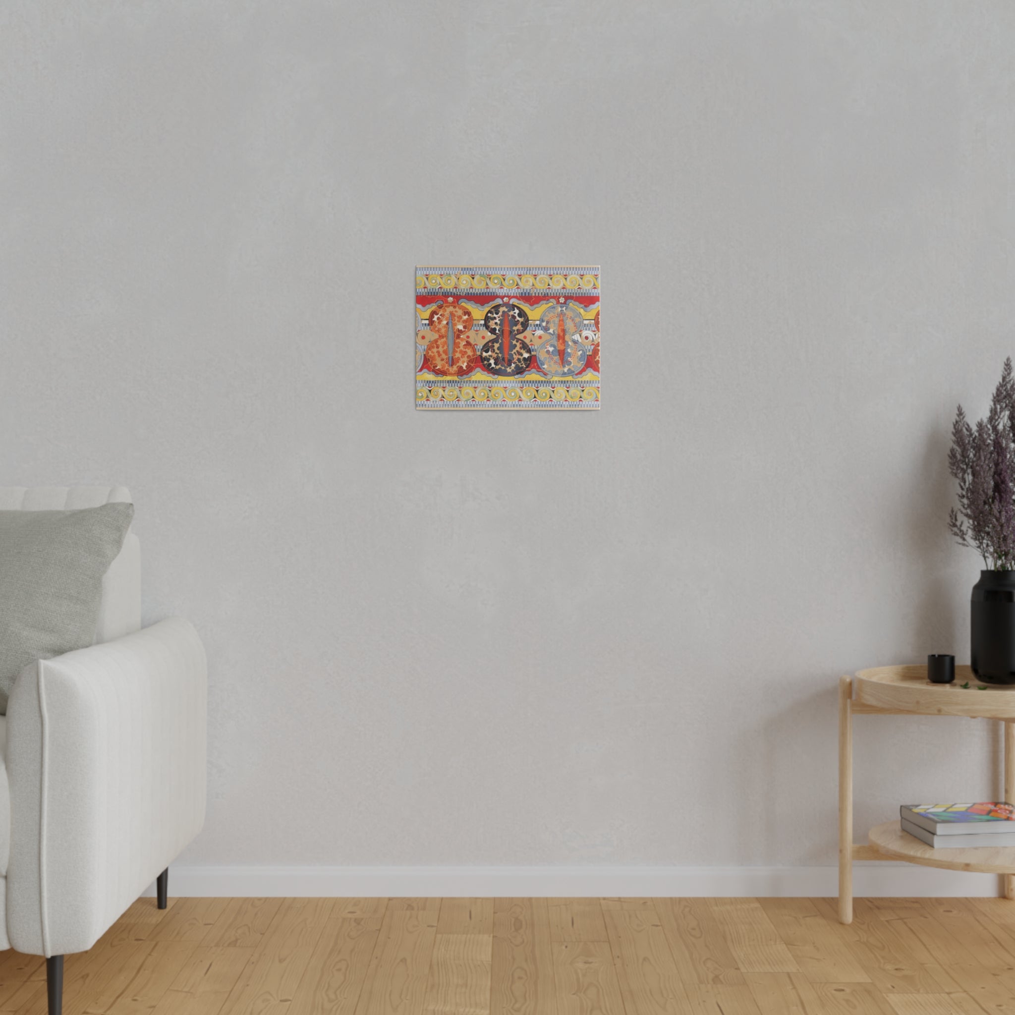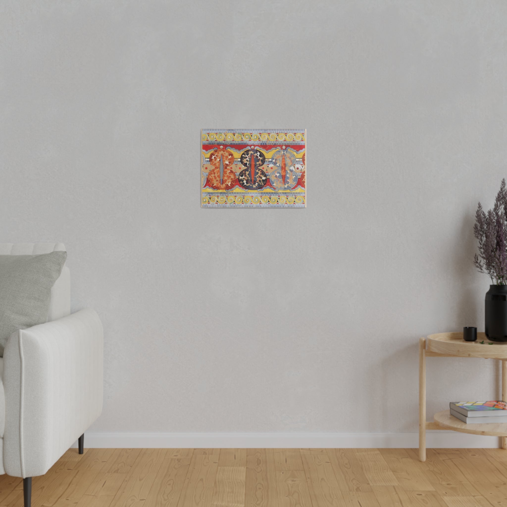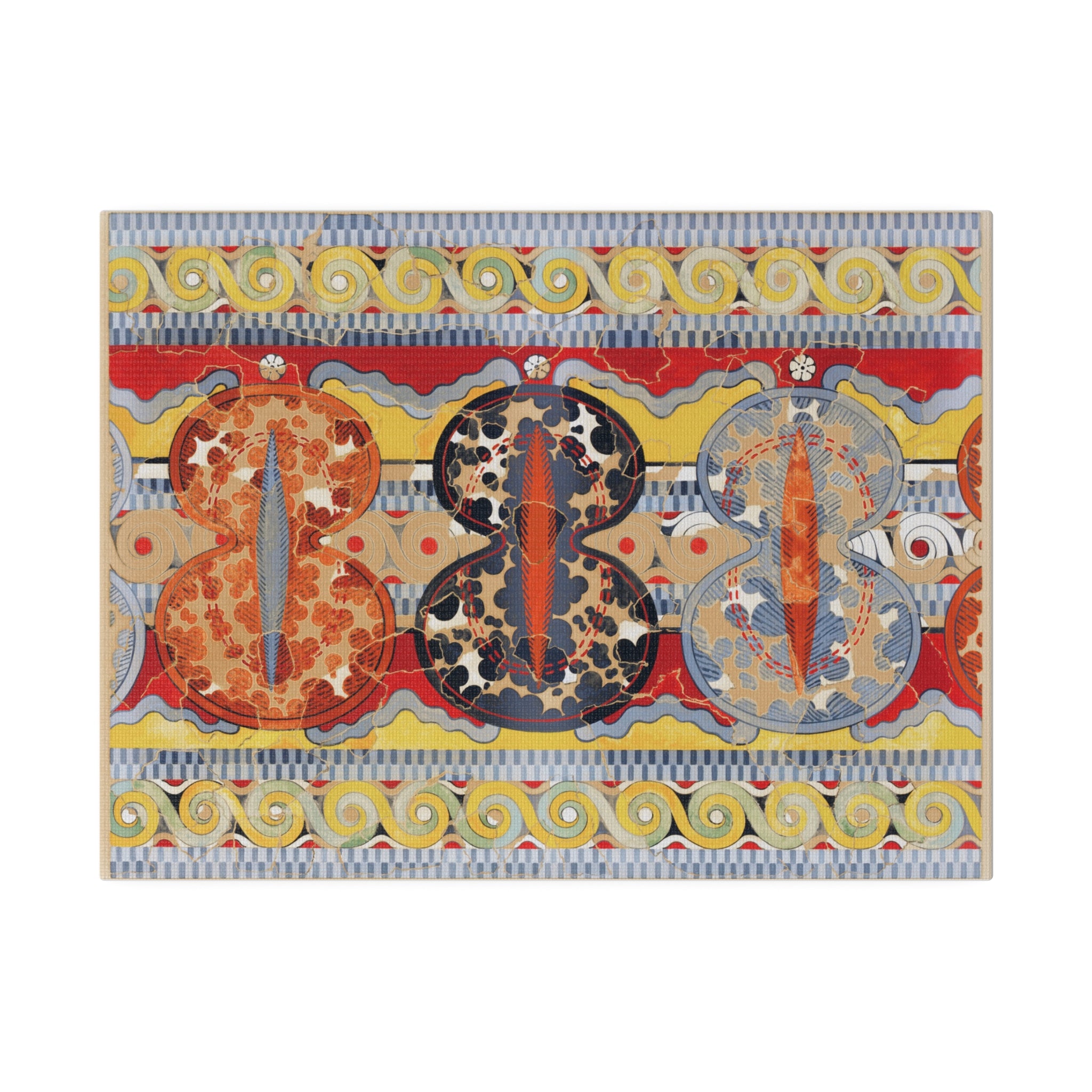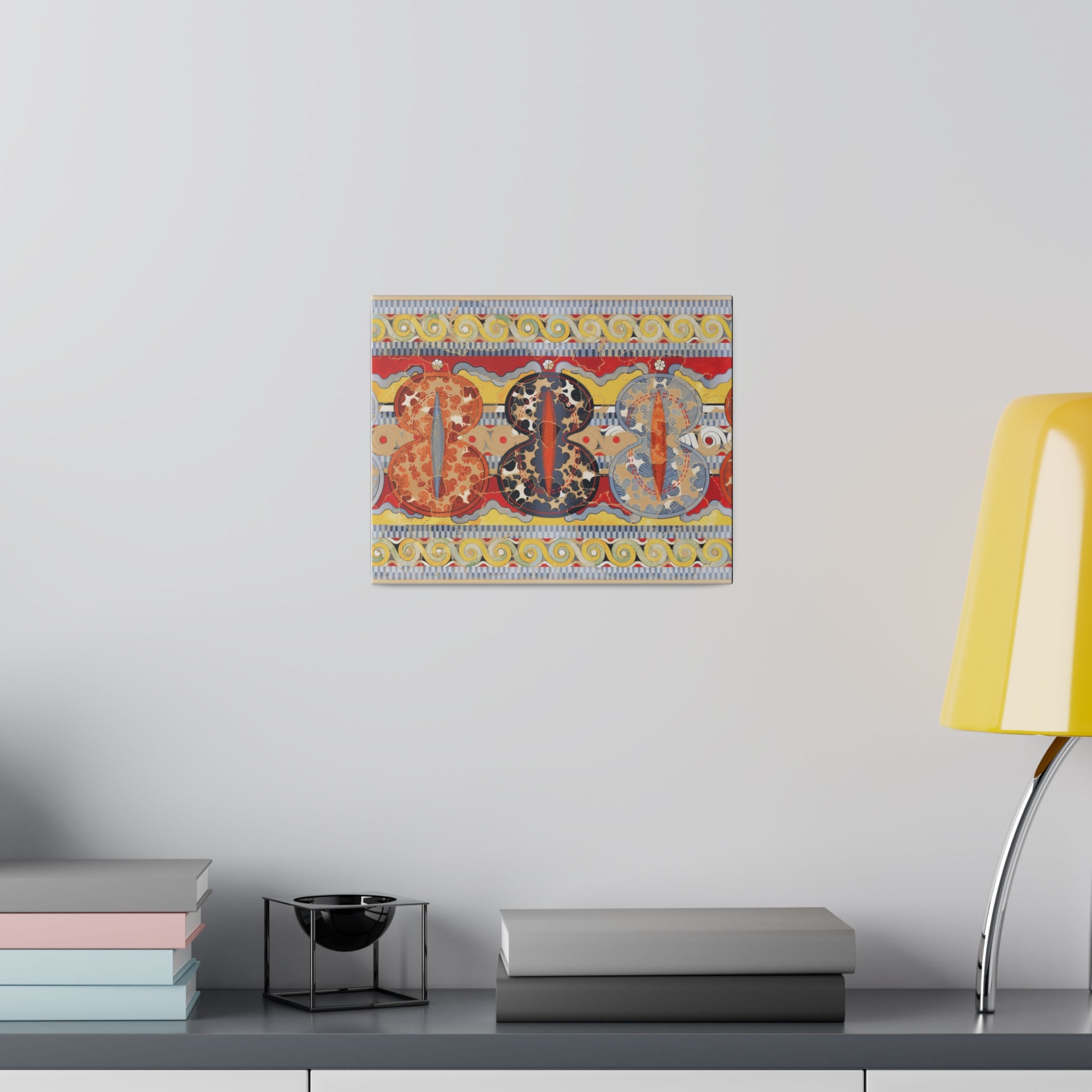 Artwork designed and digitally remastered by Sarasvati Designs. “Reproduction of the Shield Frieze” is a watercolor painting, a reproduction of a Mycenaean fresco, on paper by Emile Gilliéron.