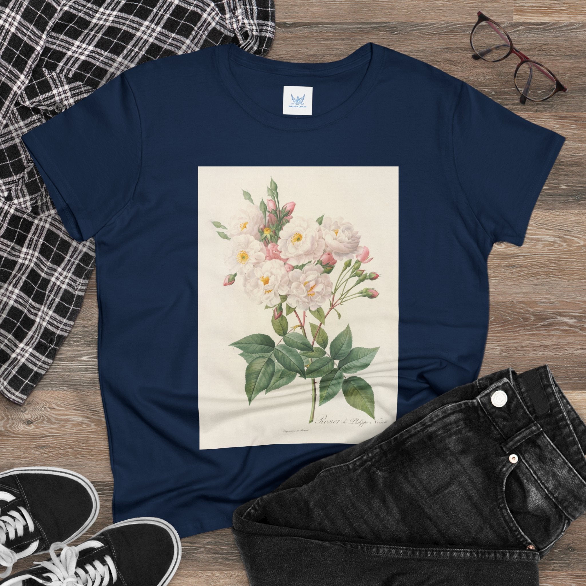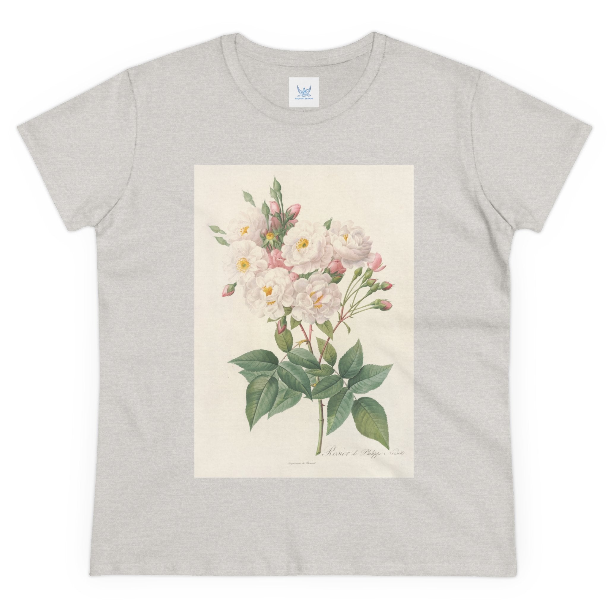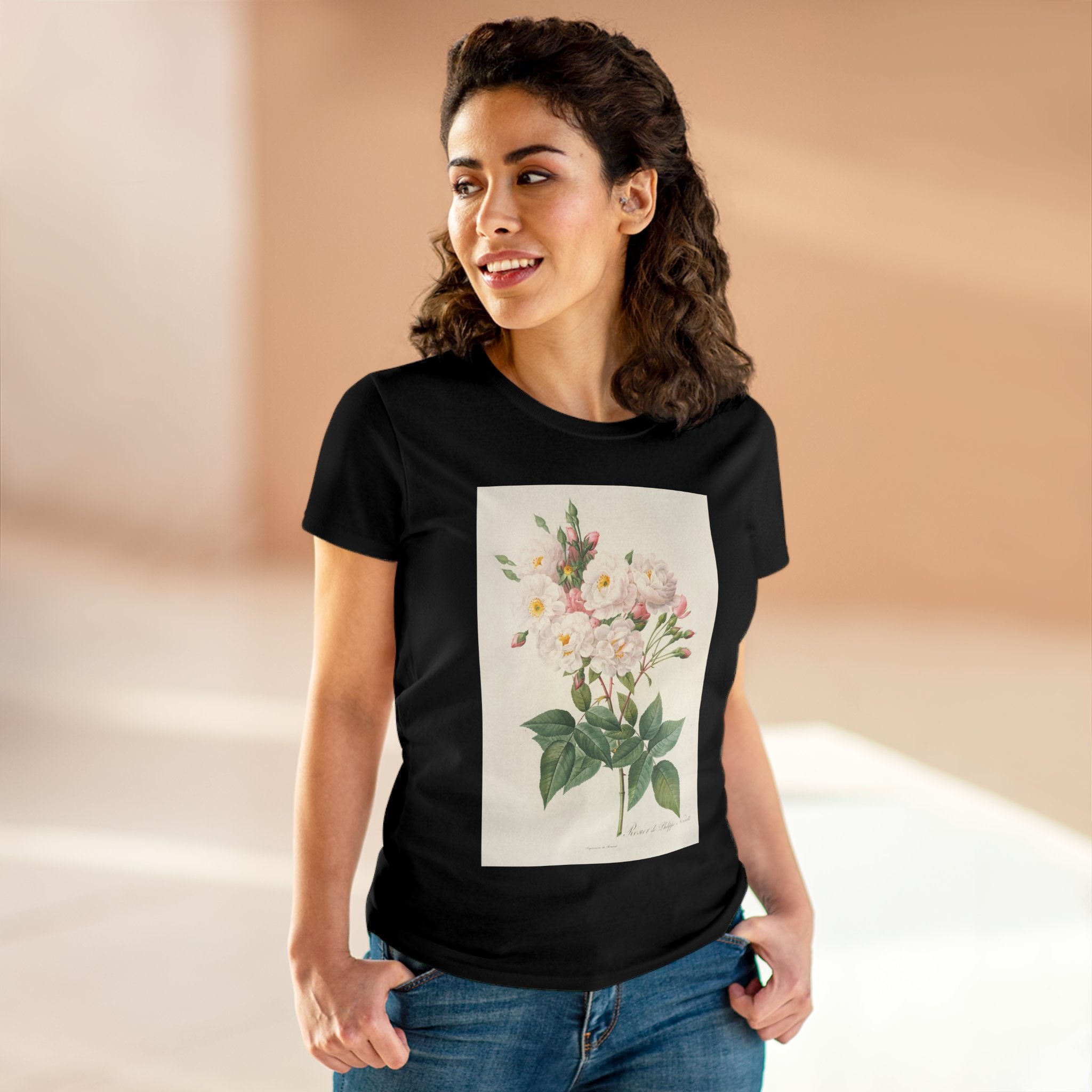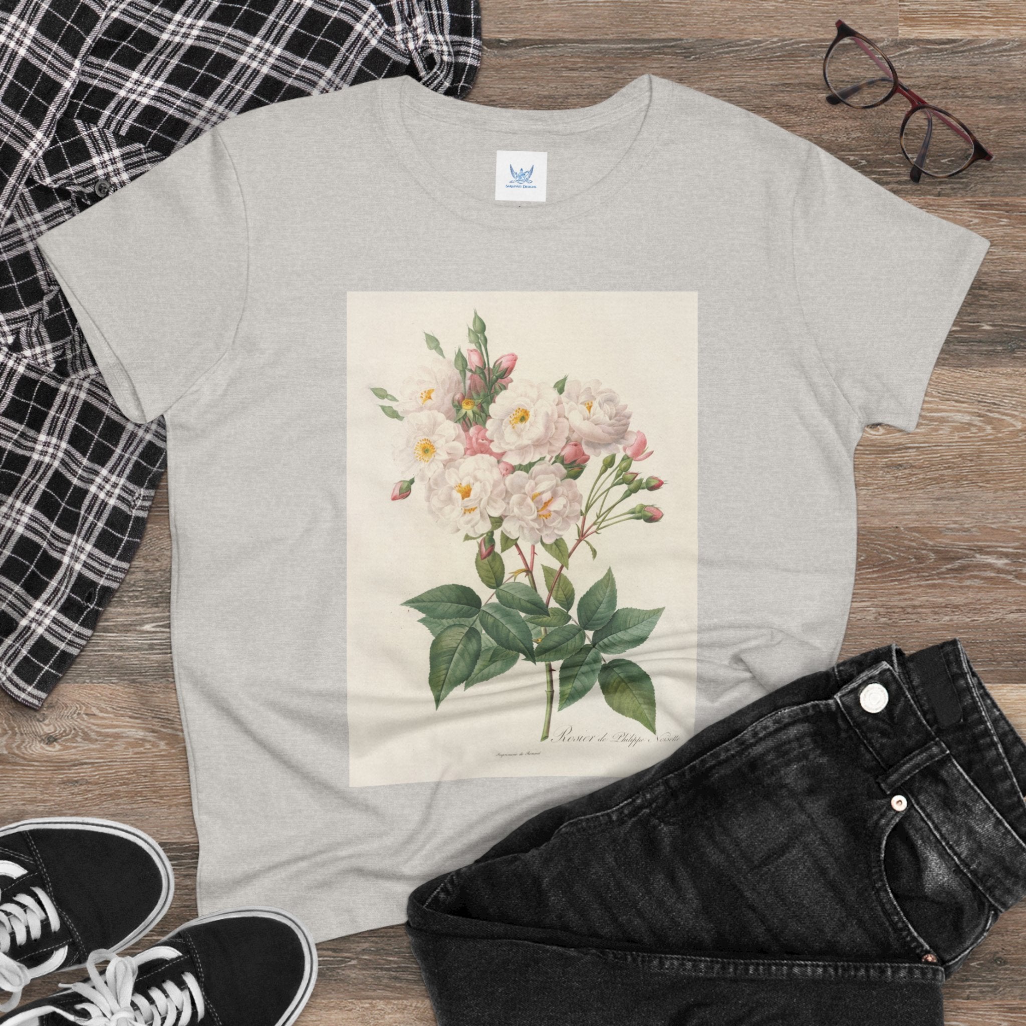 Artwork designed and digitally remastered by Sarasvati Designs. This delicate artwork by the esteemed French botanical artist Pierre Joseph Redouté features the Rosa Noisettiana, a charming representation of pale pink and white roses. Created between 1817 and 1824, the piece captures the subtle beauty and grace of these blossoms. Each petal is meticulously illustrated to highlight its soft hues and gentle curves, while the lush green leaves provide a vibrant contrast. Redouté’s attention to detail and his masterful use of watercolor techniques bring an ethereal quality to the roses, making them appear almost lifelike. This piece is a testament to Redouté’s exceptional skill in botanical illustration and his enduring legacy in the art world.