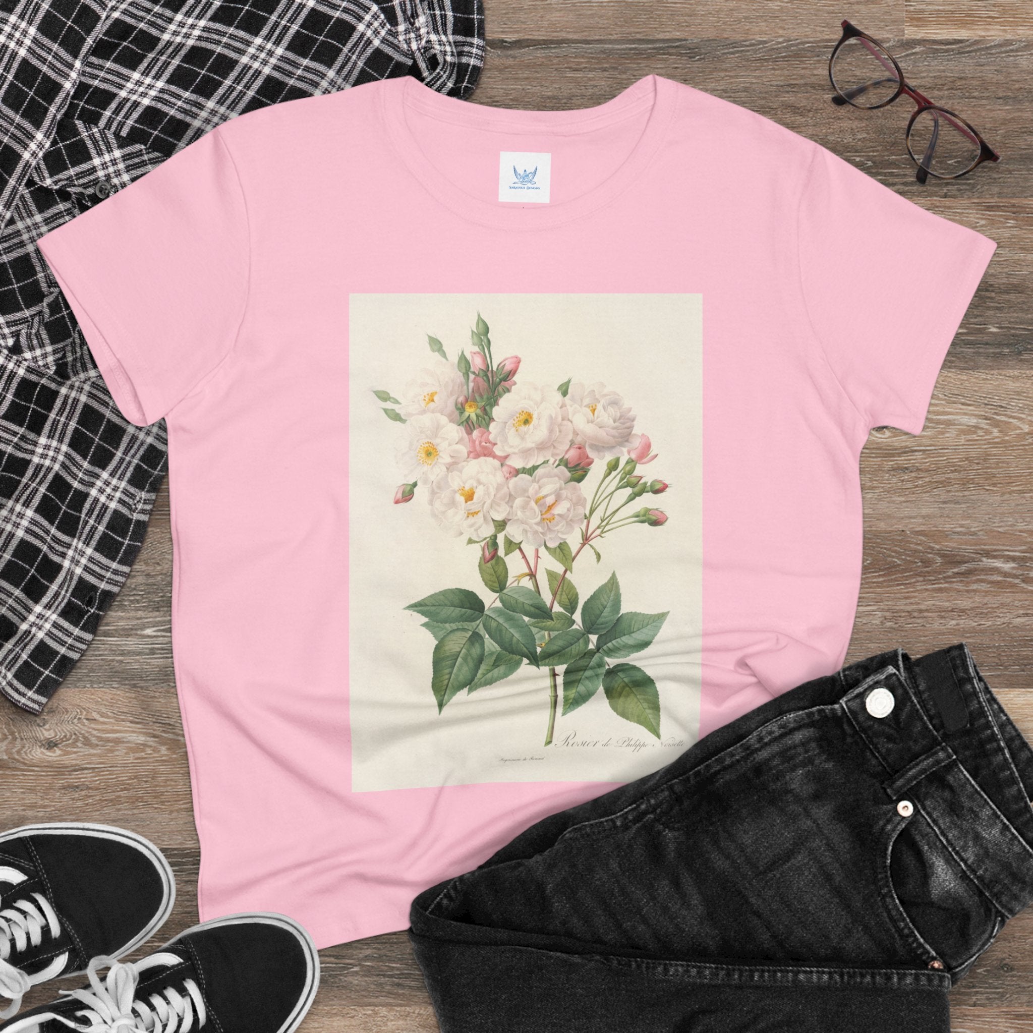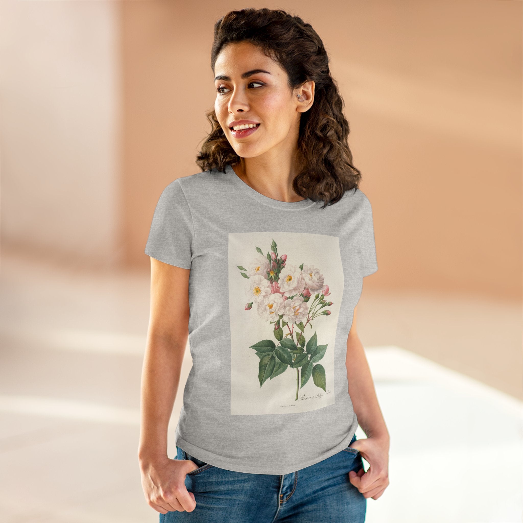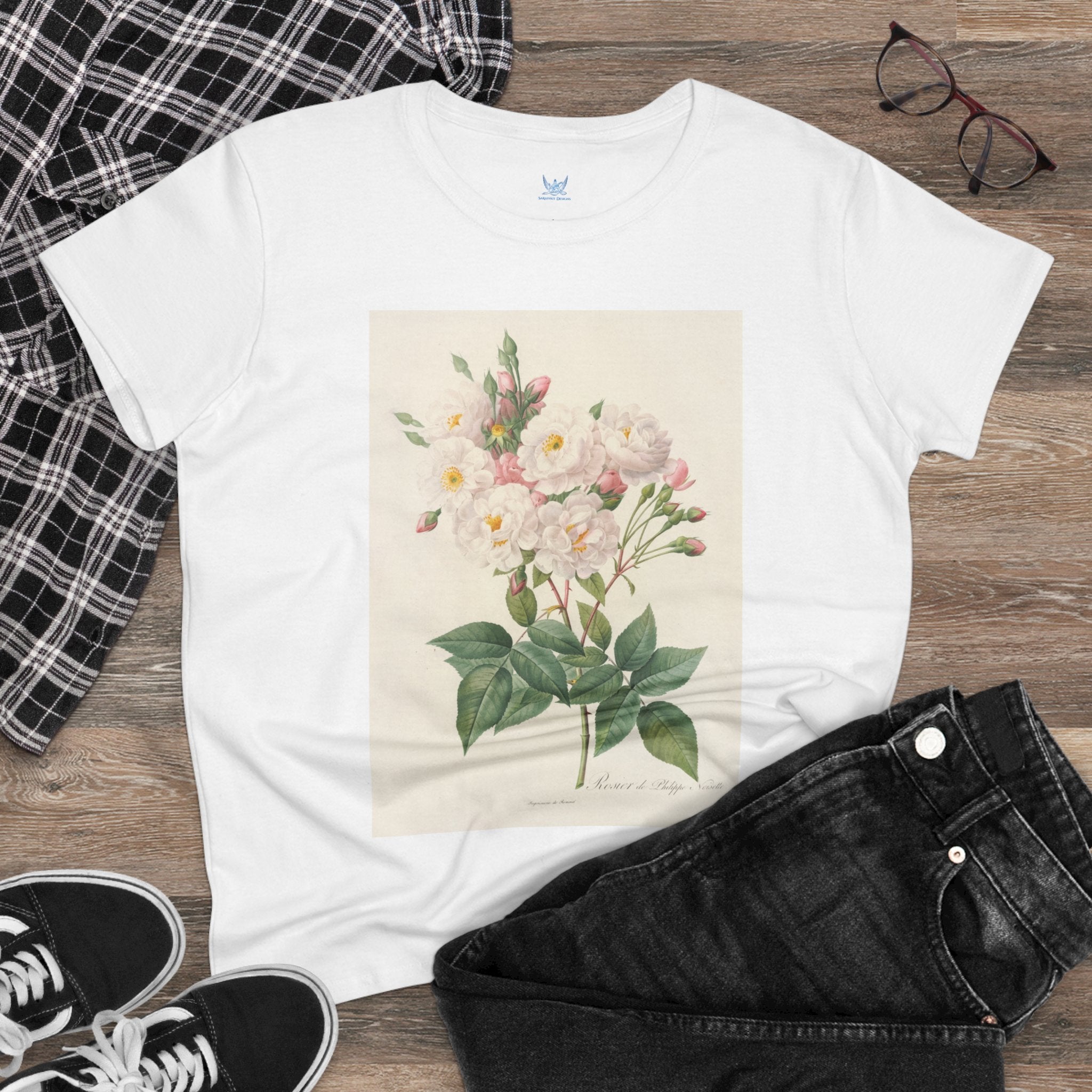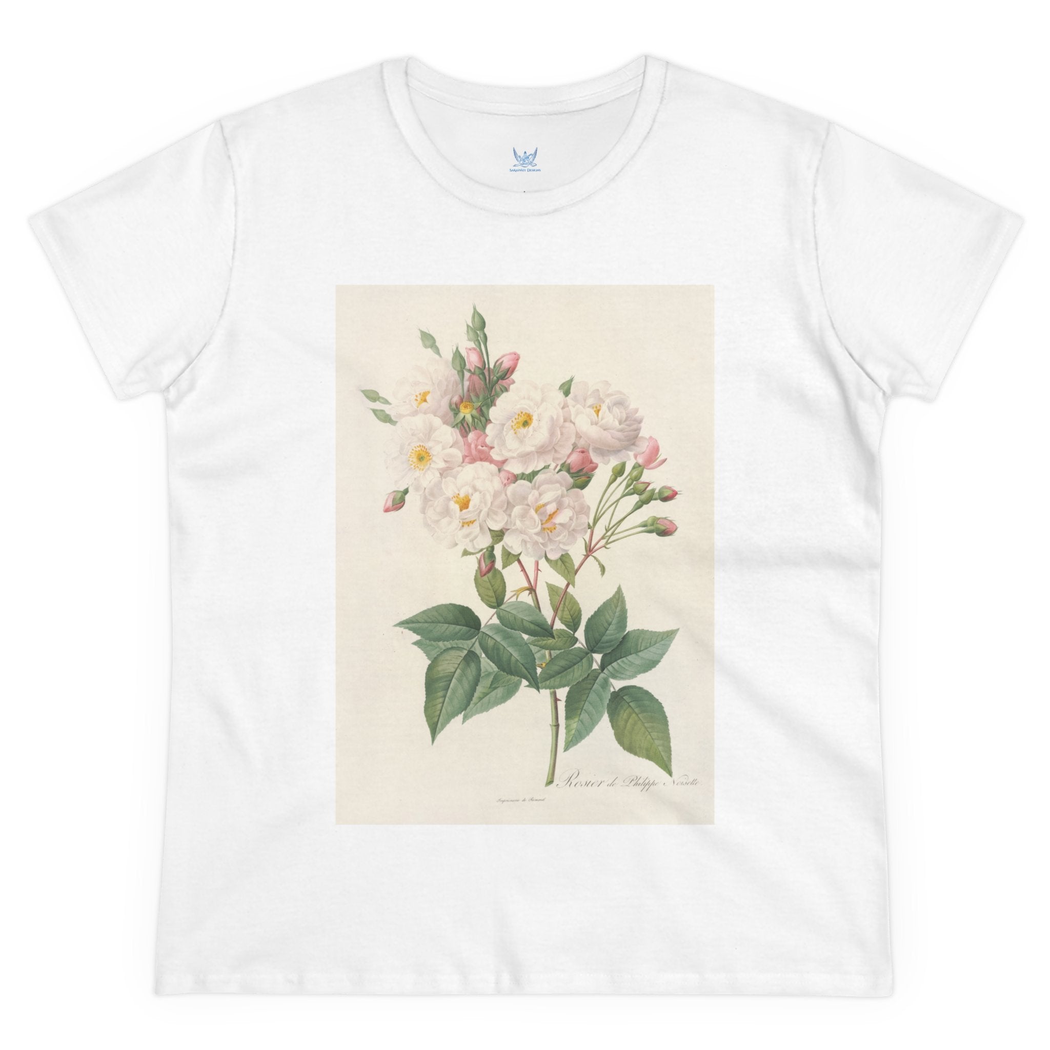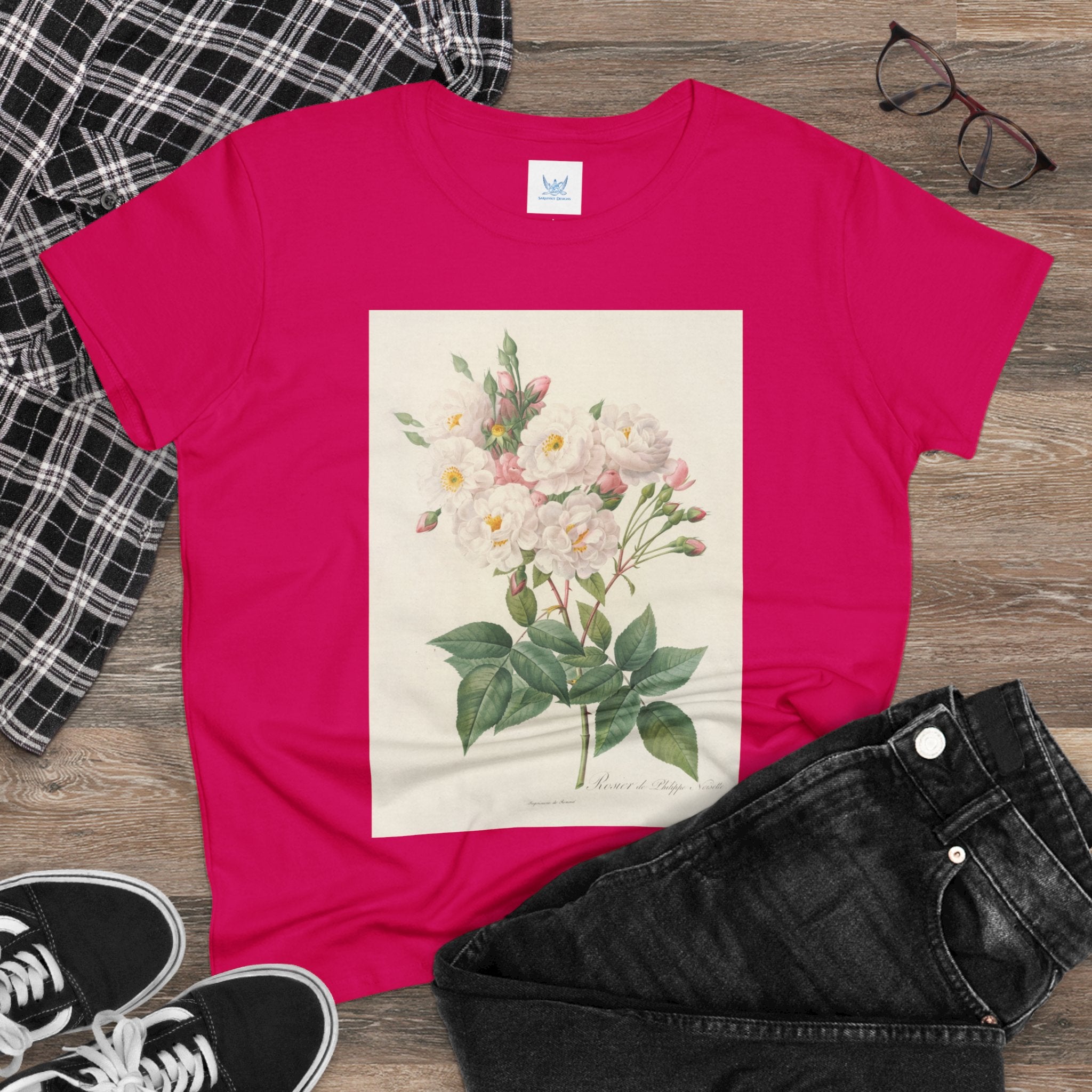 Artwork designed and digitally remastered by Sarasvati Designs. This delicate artwork by the esteemed French botanical artist Pierre Joseph Redouté features the Rosa Noisettiana, a charming representation of pale pink and white roses. Created between 1817 and 1824, the piece captures the subtle beauty and grace of these blossoms. Each petal is meticulously illustrated to highlight its soft hues and gentle curves, while the lush green leaves provide a vibrant contrast. Redouté’s attention to detail and his masterful use of watercolor techniques bring an ethereal quality to the roses, making them appear almost lifelike. This piece is a testament to Redouté’s exceptional skill in botanical illustration and his enduring legacy in the art world.
