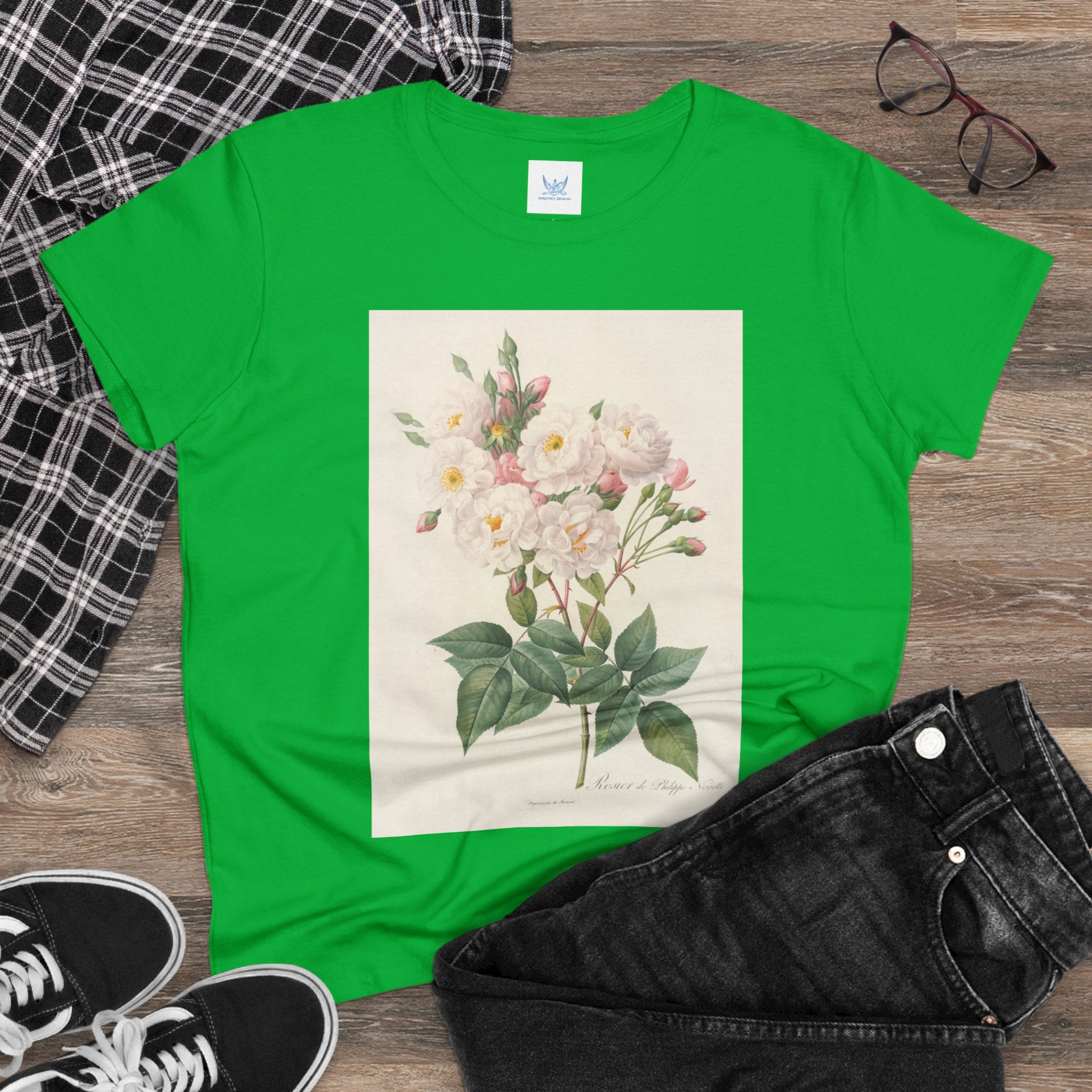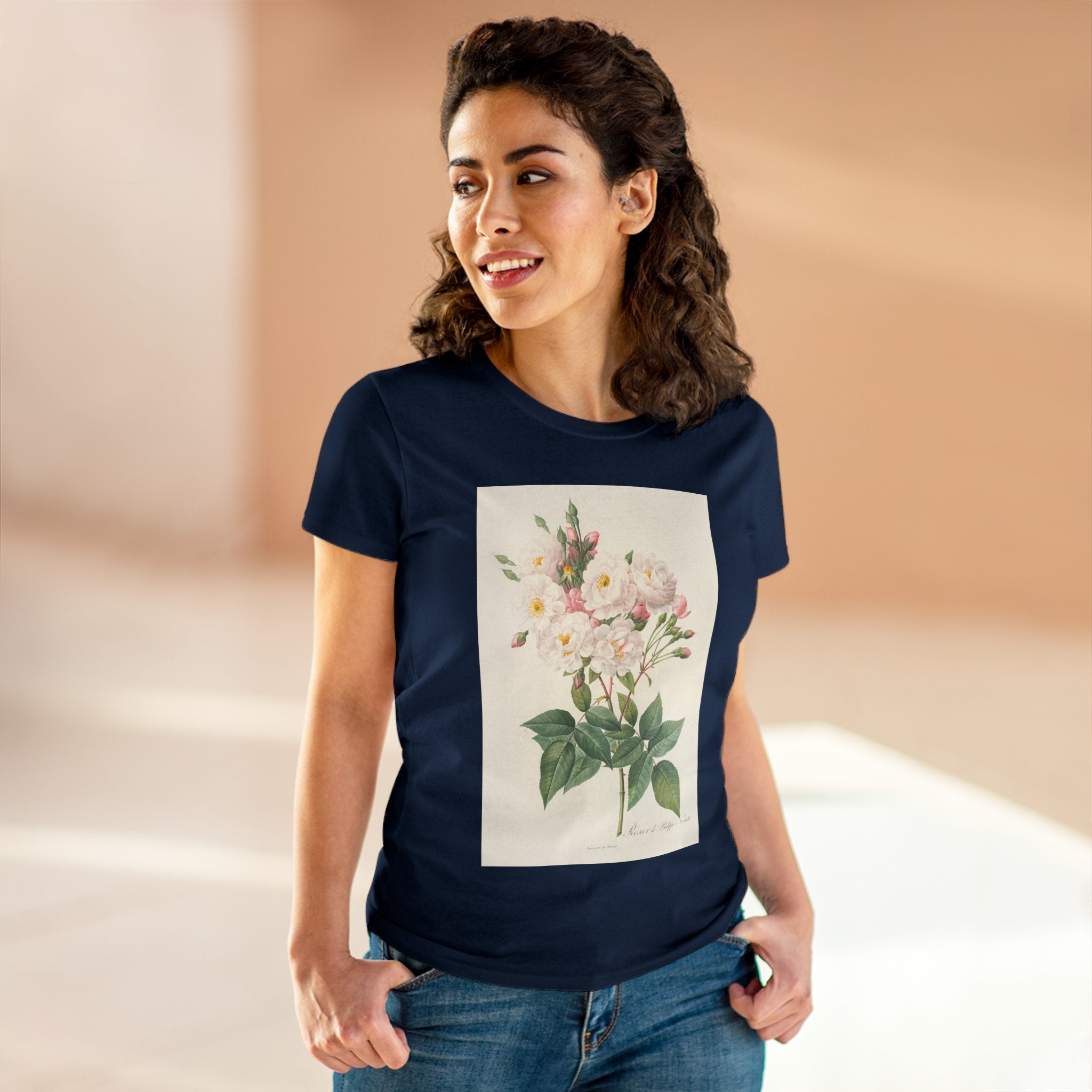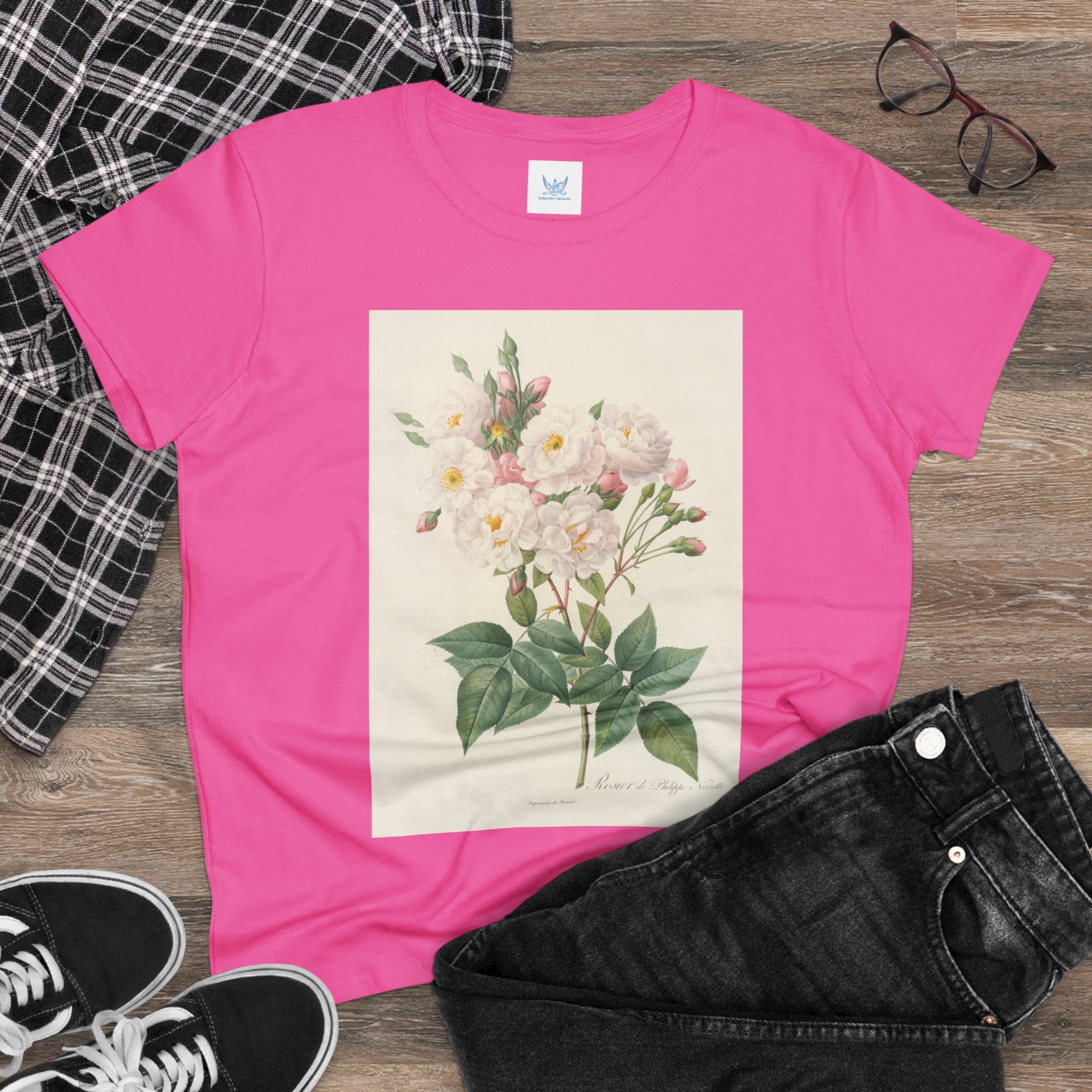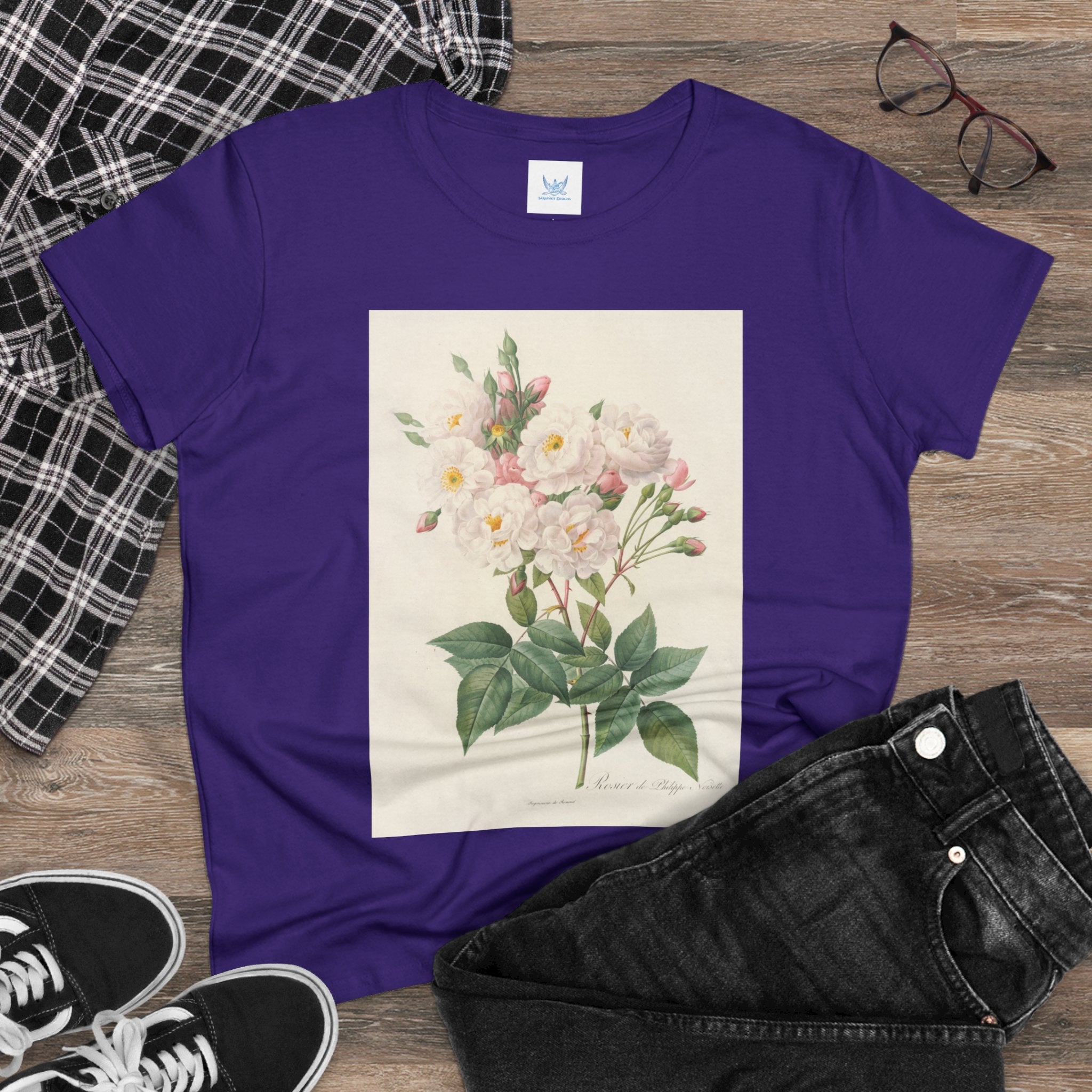 Artwork designed and digitally remastered by Sarasvati Designs. This delicate artwork by the esteemed French botanical artist Pierre Joseph Redouté features the Rosa Noisettiana, a charming representation of pale pink and white roses. Created between 1817 and 1824, the piece captures the subtle beauty and grace of these blossoms. Each petal is meticulously illustrated to highlight its soft hues and gentle curves, while the lush green leaves provide a vibrant contrast. Redouté’s attention to detail and his masterful use of watercolor techniques bring an ethereal quality to the roses, making them appear almost lifelike. This piece is a testament to Redouté’s exceptional skill in botanical illustration and his enduring legacy in the art world.
