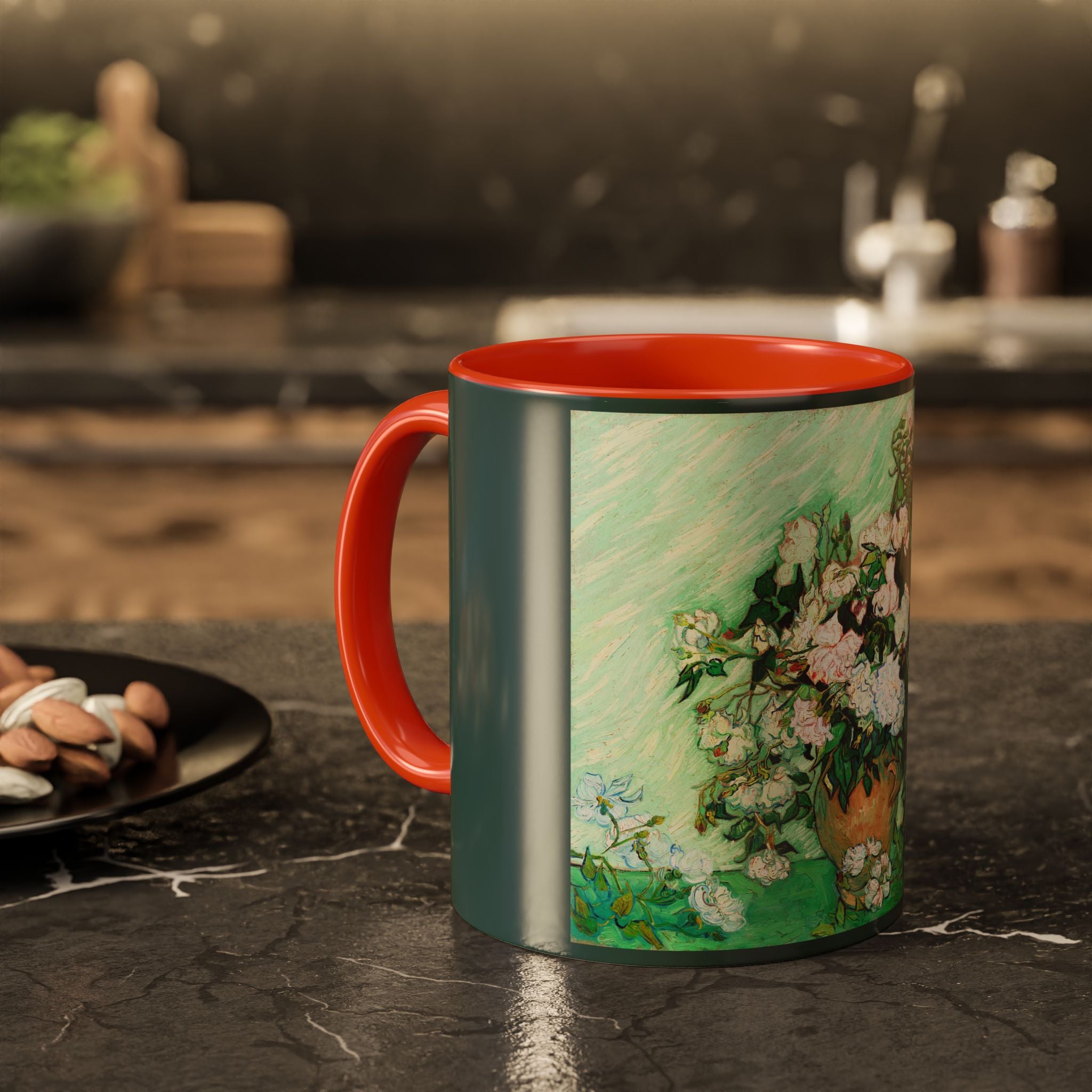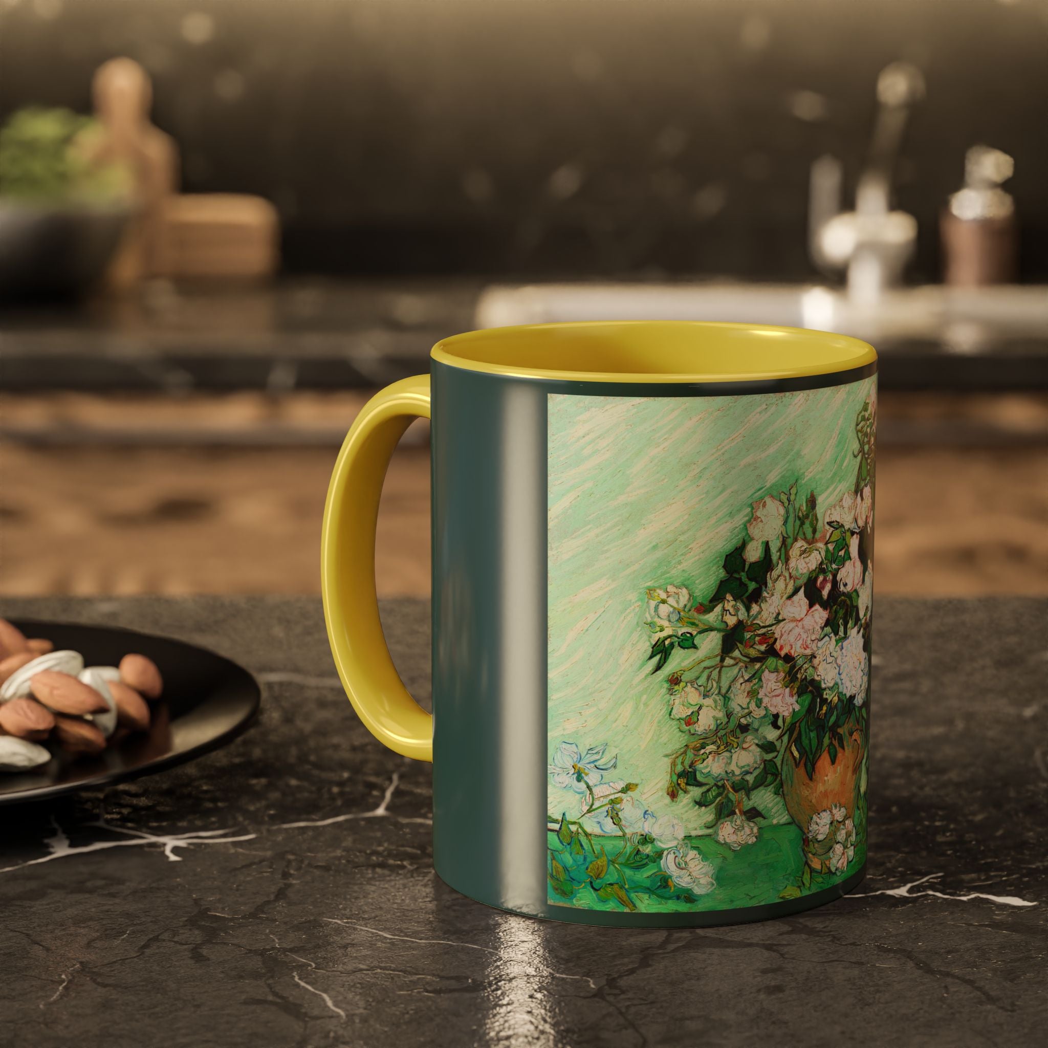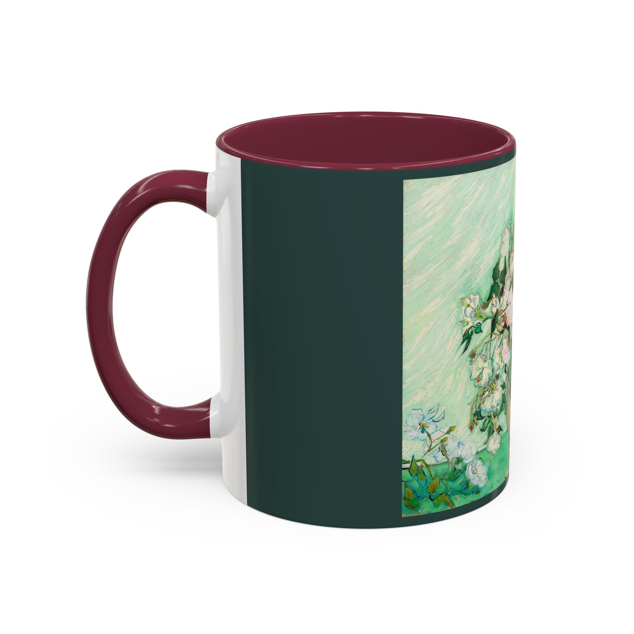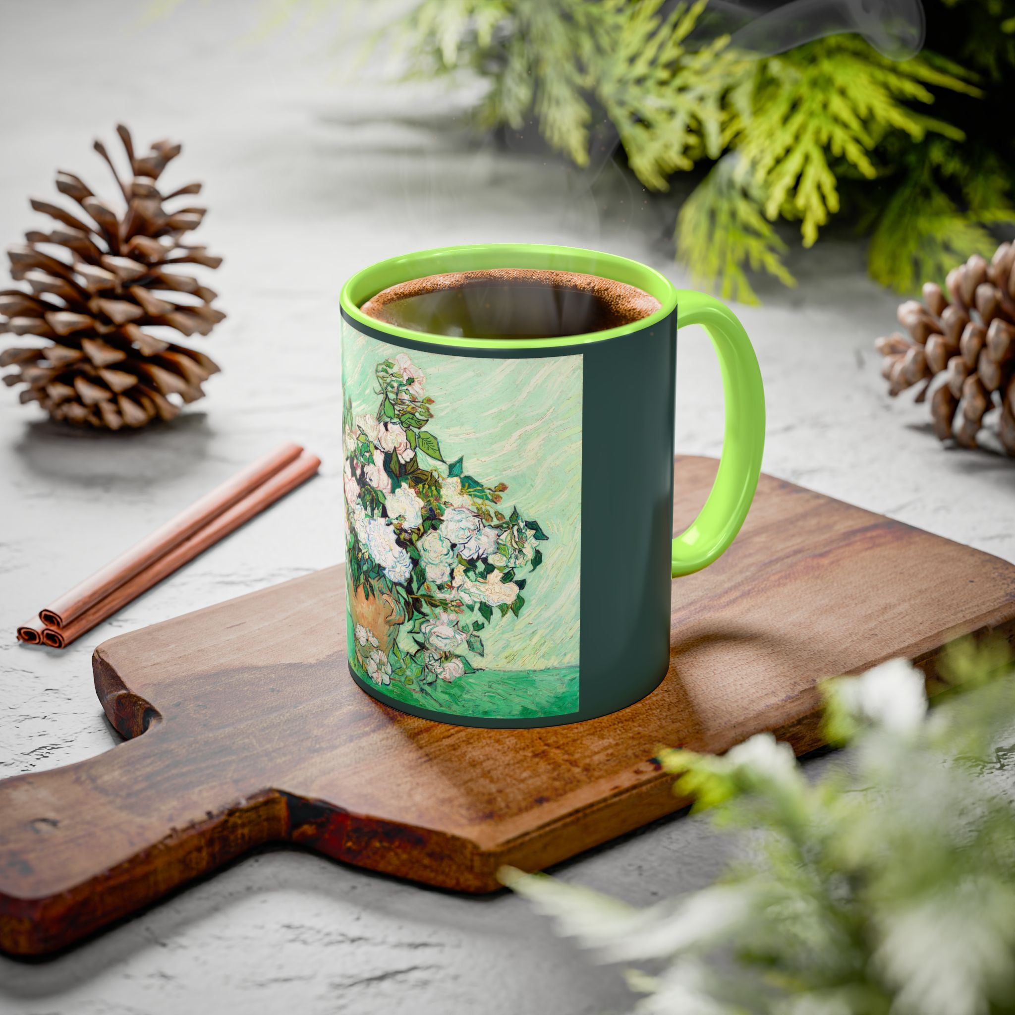 Mugs are a kitchen essential, and when infused with a personalized touch, they transform into cherished favorites. These mugs, offered in 12 vibrant color choices, can hold up to 11oz of your preferred rejuvenating beverage and feature a colored handle and interior. The glossy finish adds an elegant accent that beautifully complements the high-fidelity artwork print, making them not only a delightful addition to your kitchen but also a fantastic choice for thoughtful gifts.