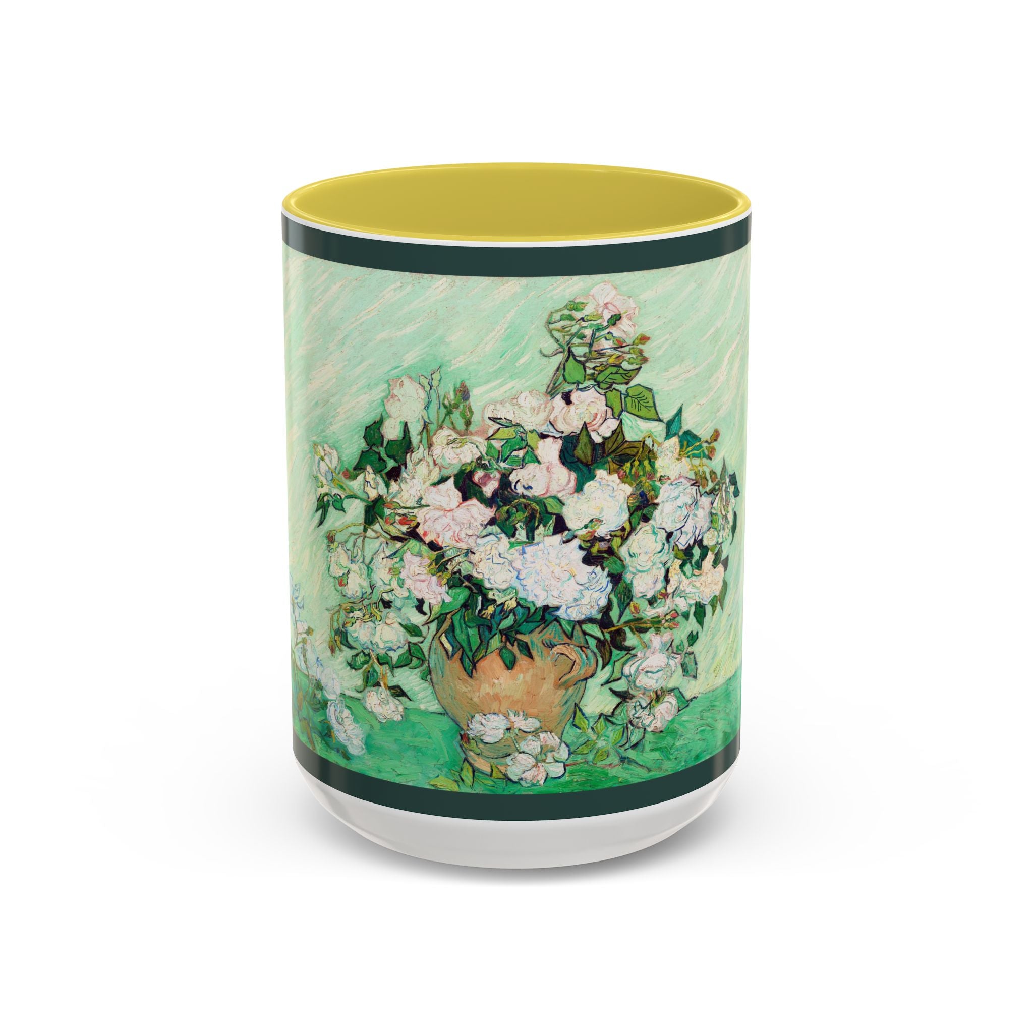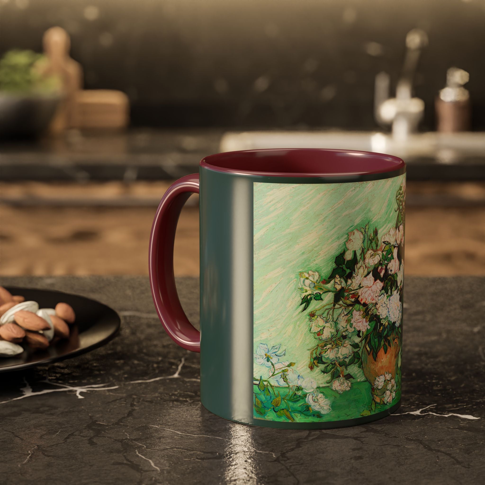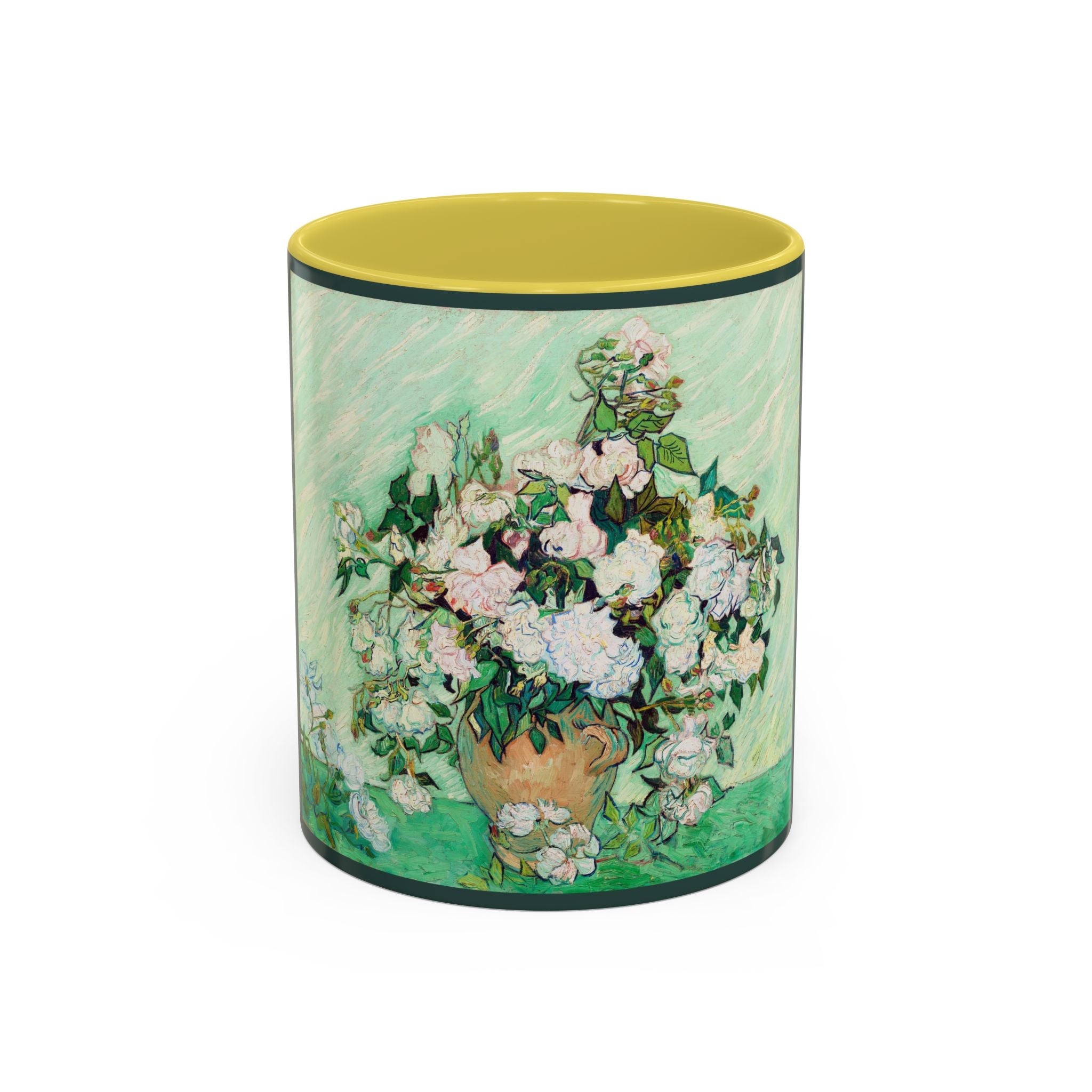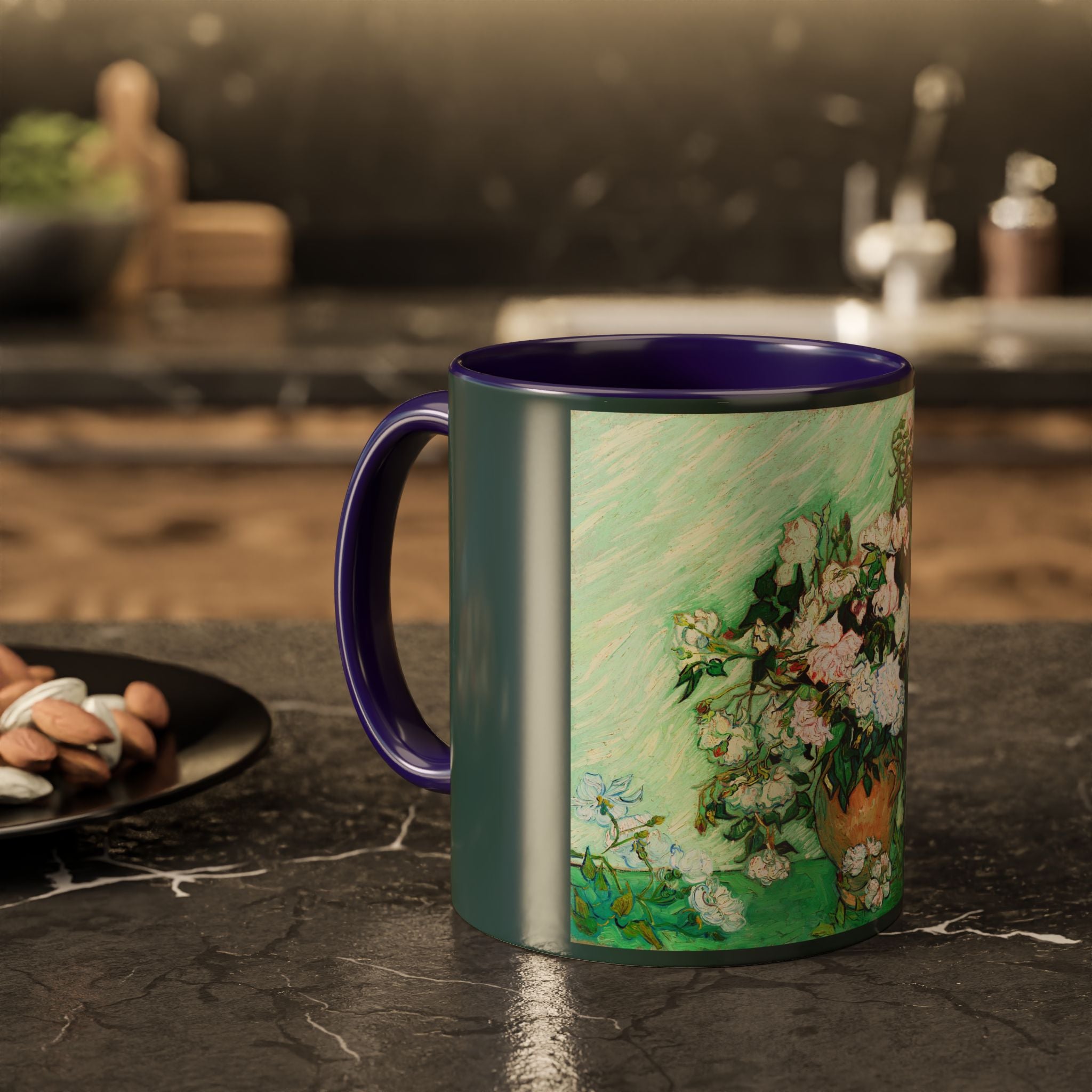Mugs are a kitchen essential, and when infused with a personalized touch, they transform into cherished favorites. These mugs, offered in 12 vibrant color choices, can hold up to 11oz of your preferred rejuvenating beverage and feature a colored handle and interior. The glossy finish adds an elegant accent that beautifully complements the high-fidelity artwork print, making them not only a delightful addition to your kitchen but also a fantastic choice for thoughtful gifts.