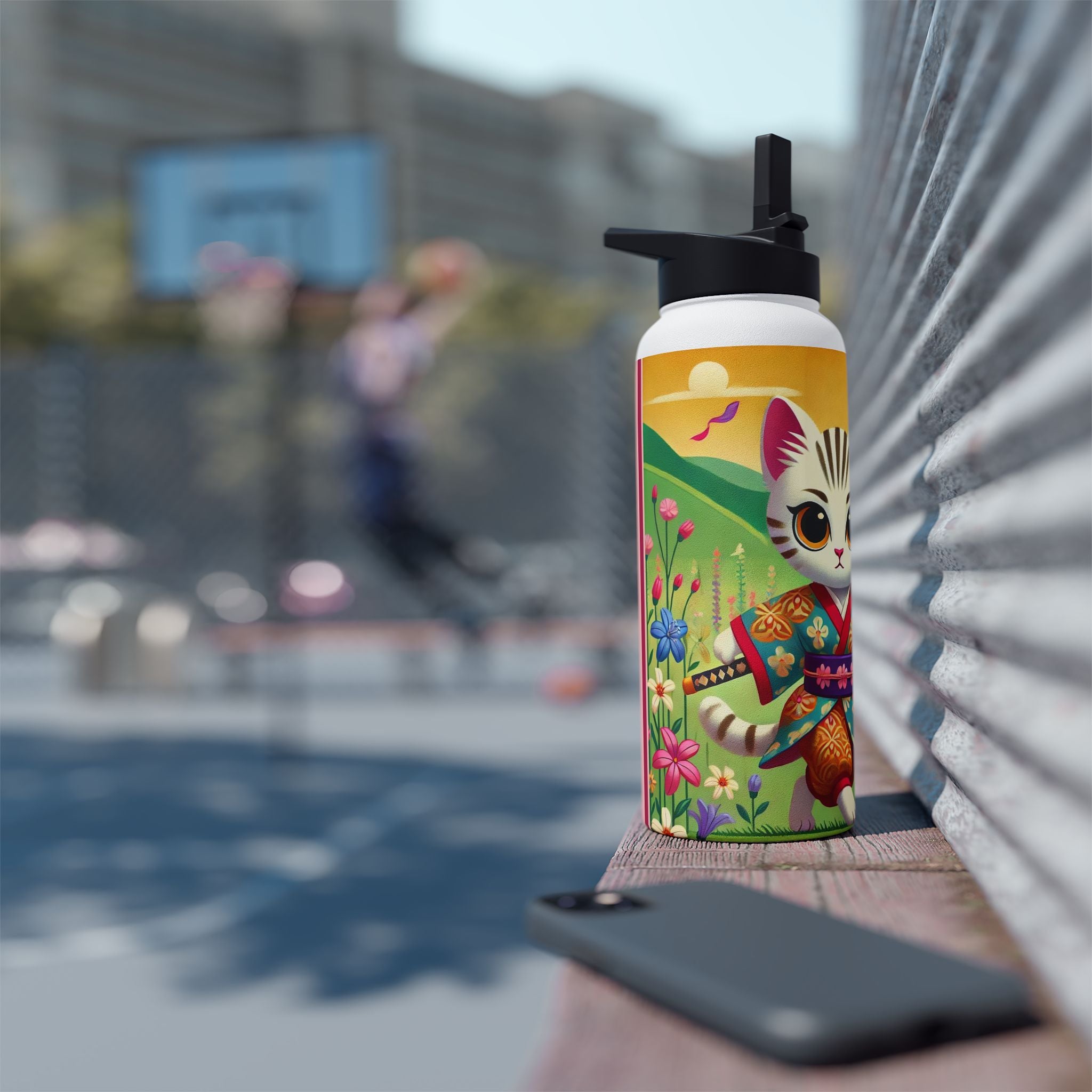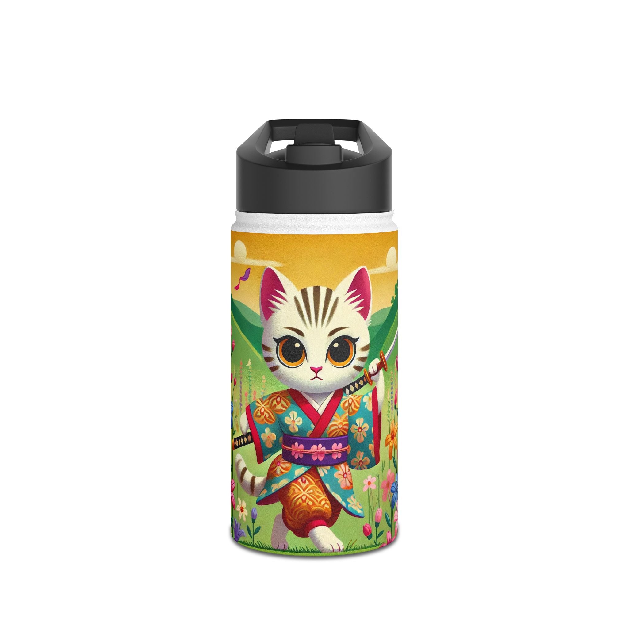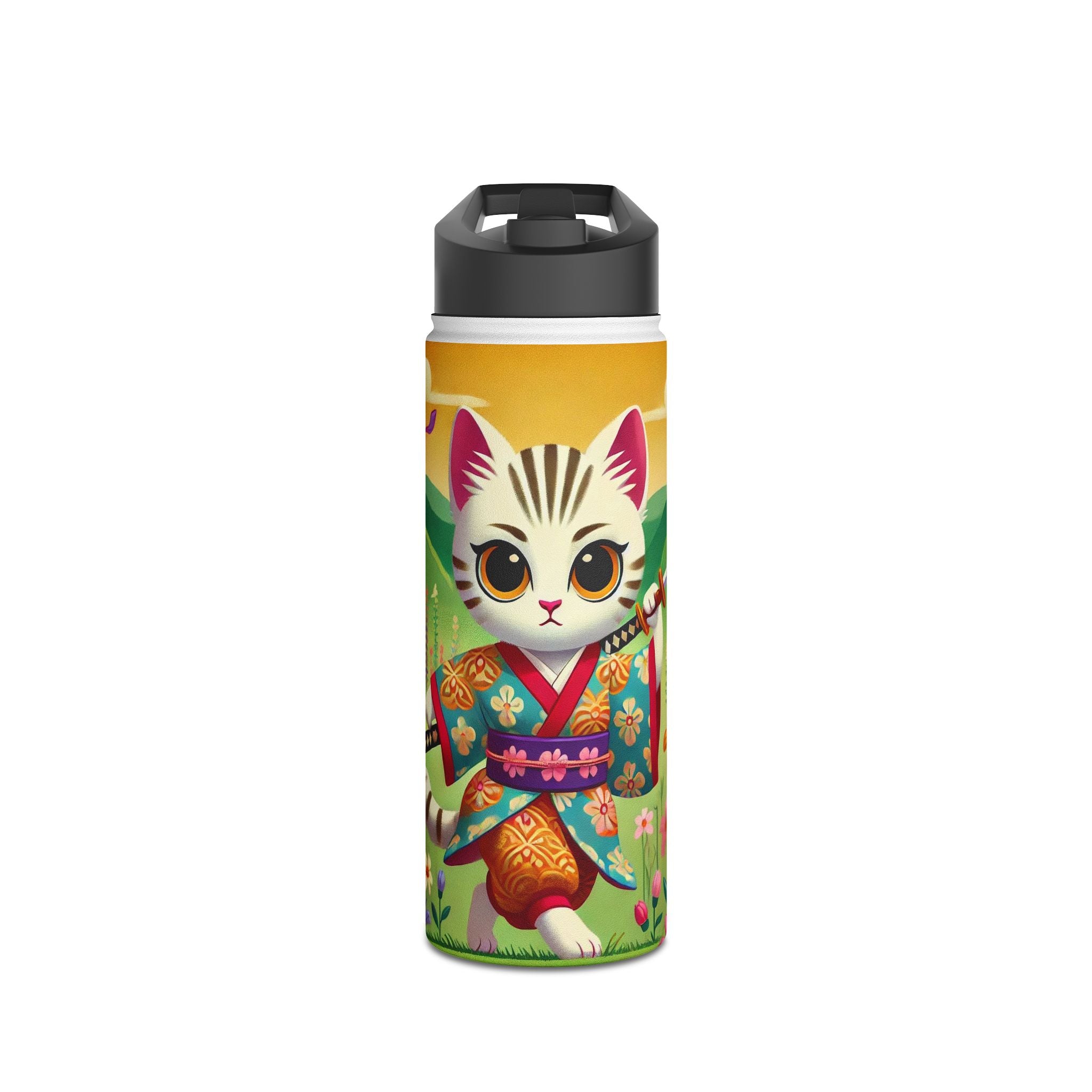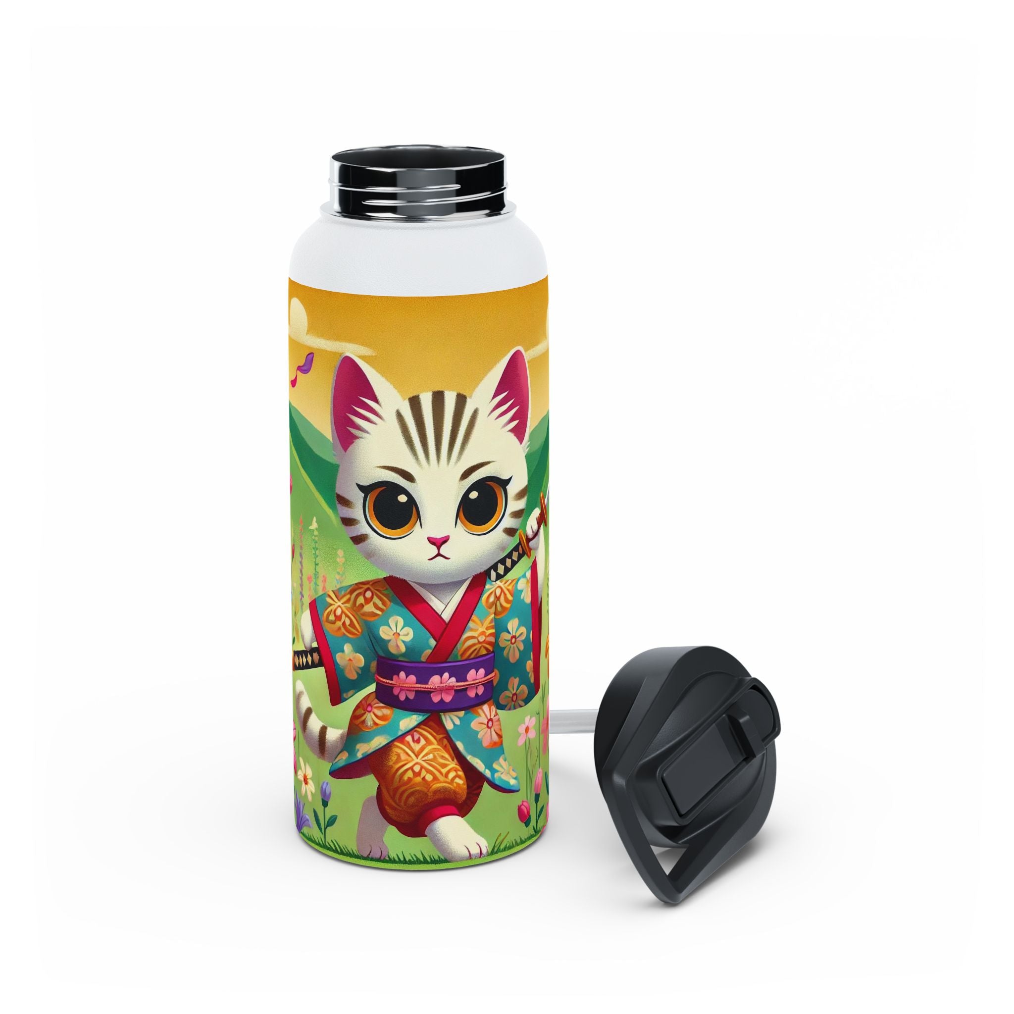 Samurai Kitten Stainless Steel Water Bottle, Standard Lid blends functional design with artistic storytelling for those who appreciate whimsy and adventure. Crafted from premium double-wall stainless steel, this BPA-free water bottle keeps beverages cold for 24 hours or hot for 12, ensuring refreshment wherever you go. Available in three convenient sizes (12oz, 18oz, 32oz) with a twist-on lid for easy sipping, it’s ideal for school, work, travel, or leisure.