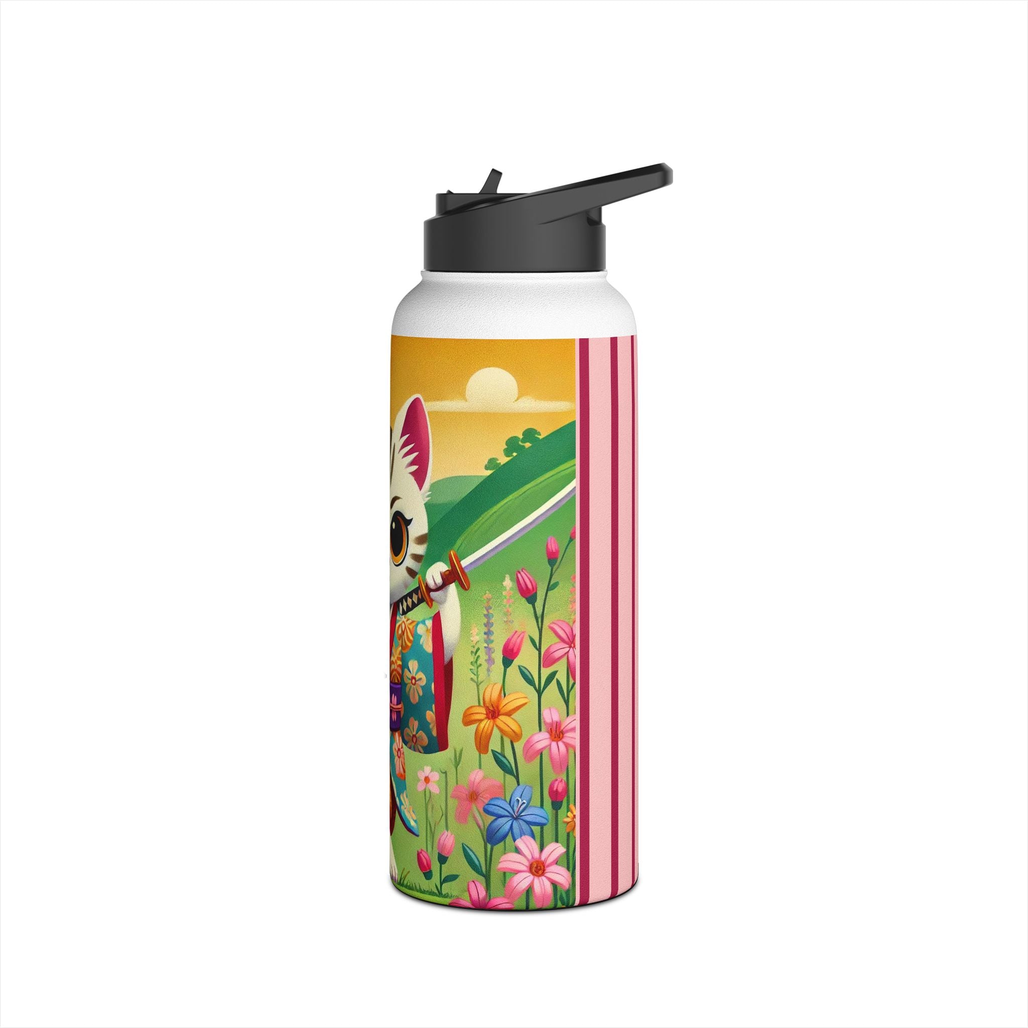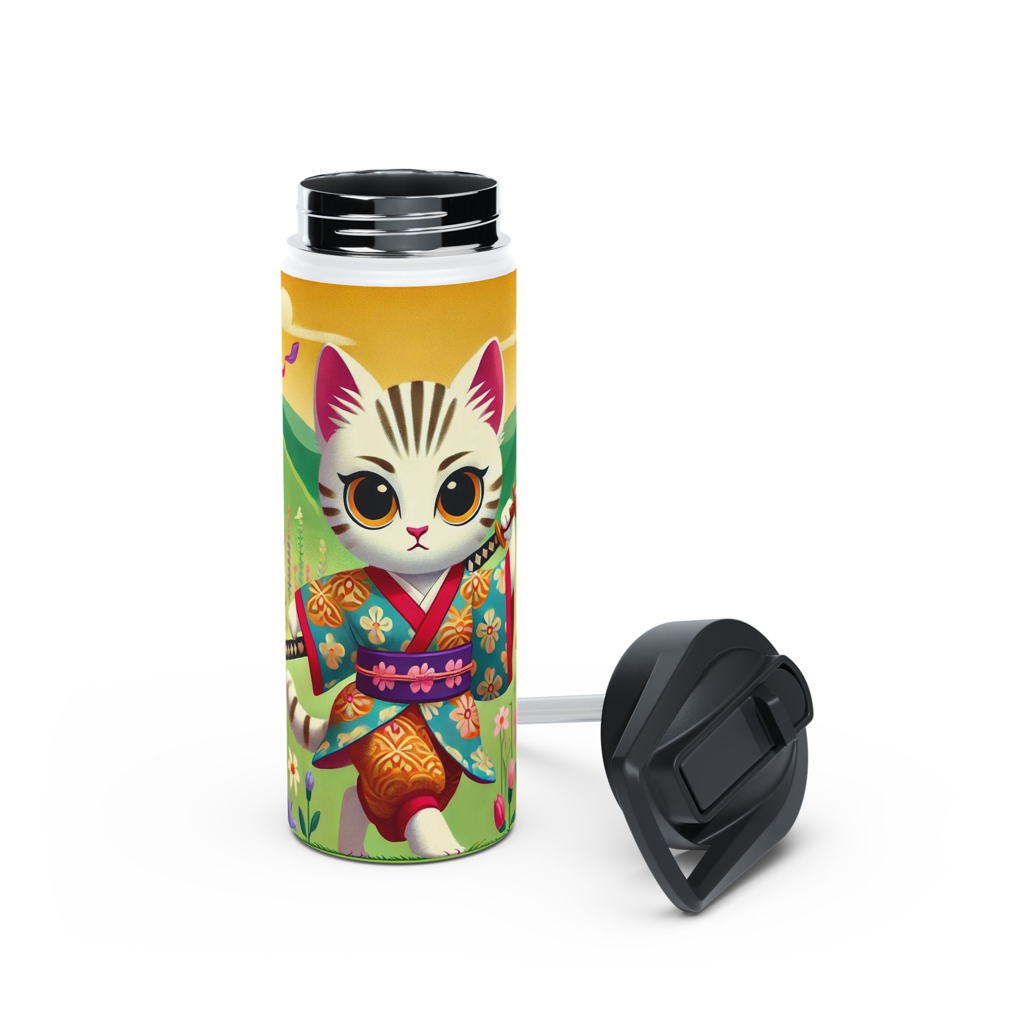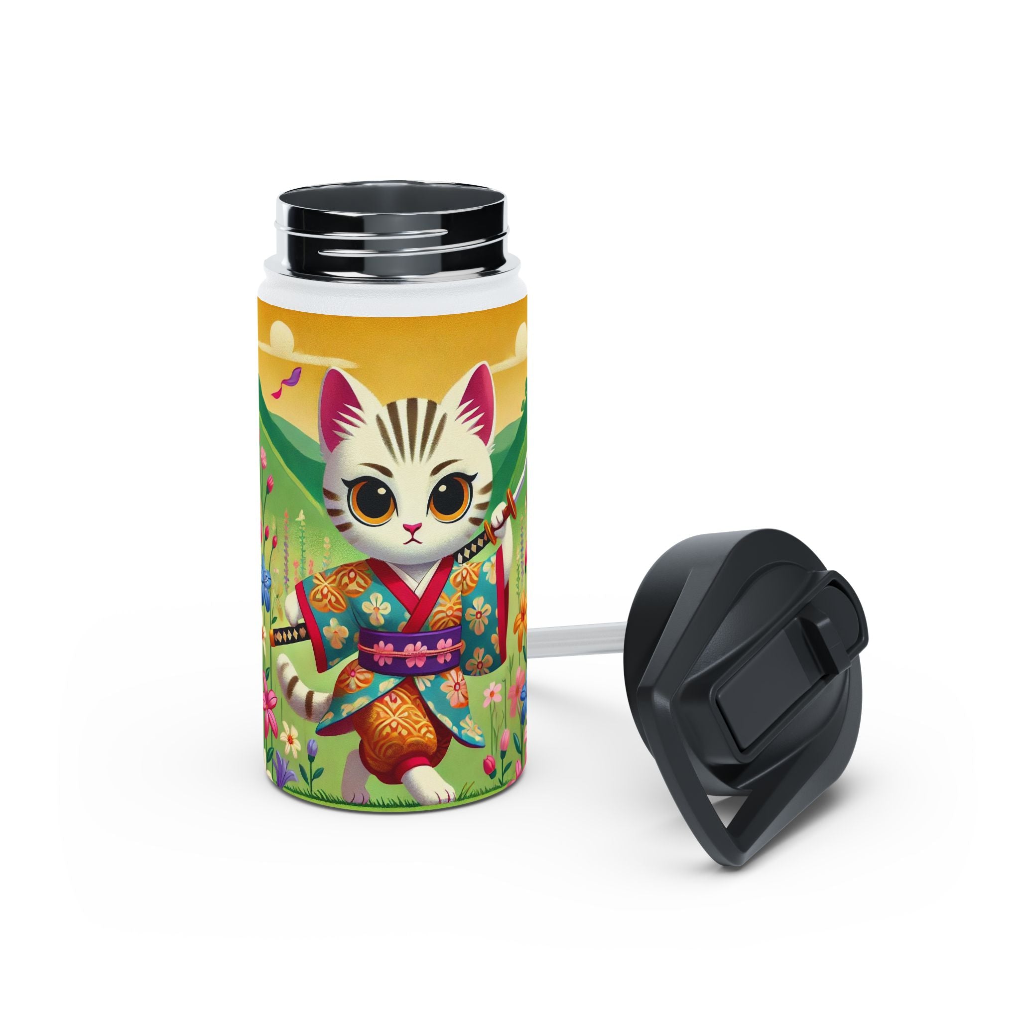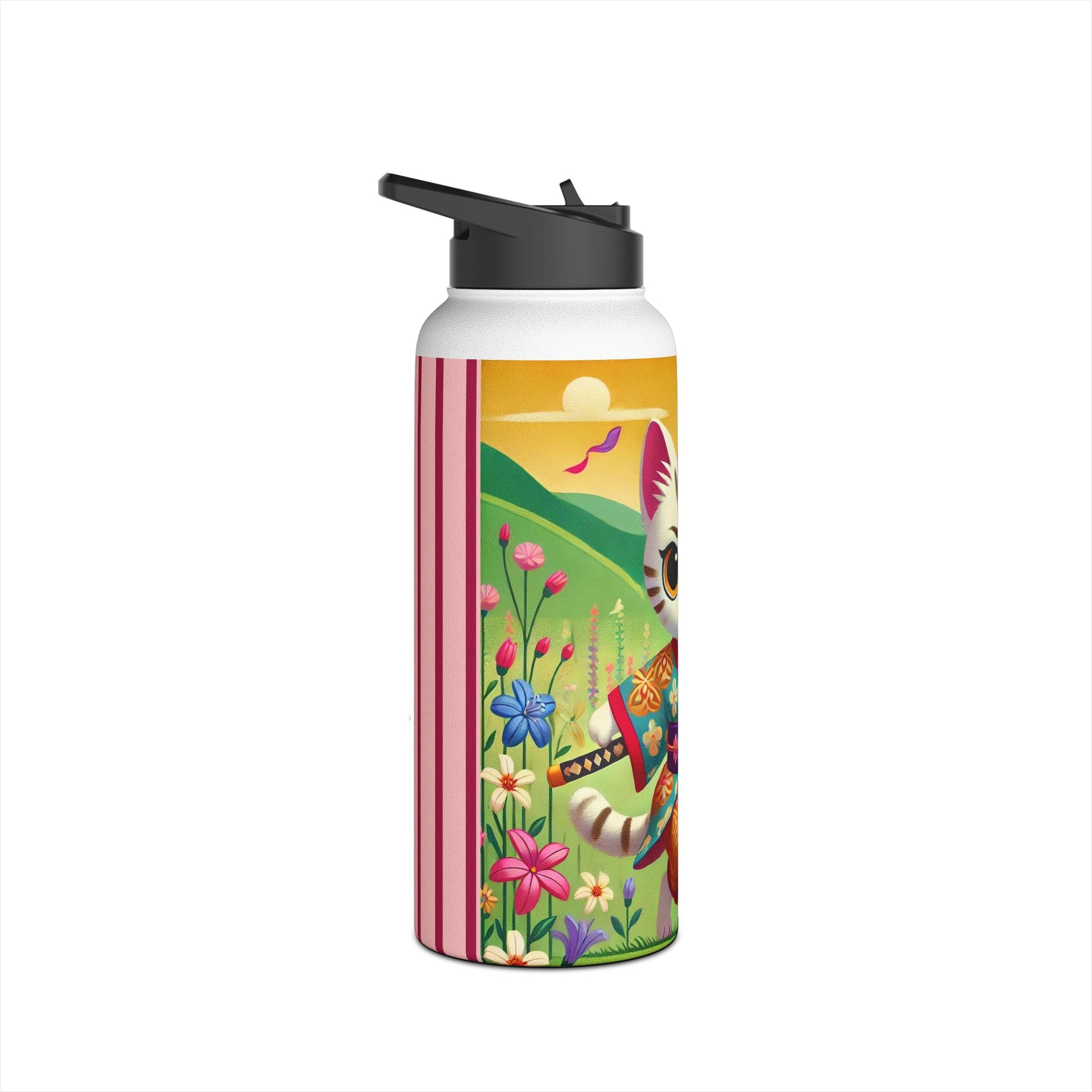 Samurai Kitten Stainless Steel Water Bottle, Standard Lid blends functional design with artistic storytelling for those who appreciate whimsy and adventure. Crafted from premium double-wall stainless steel, this BPA-free water bottle keeps beverages cold for 24 hours or hot for 12, ensuring refreshment wherever you go. Available in three convenient sizes (12oz, 18oz, 32oz) with a twist-on lid for easy sipping, it’s ideal for school, work, travel, or leisure.