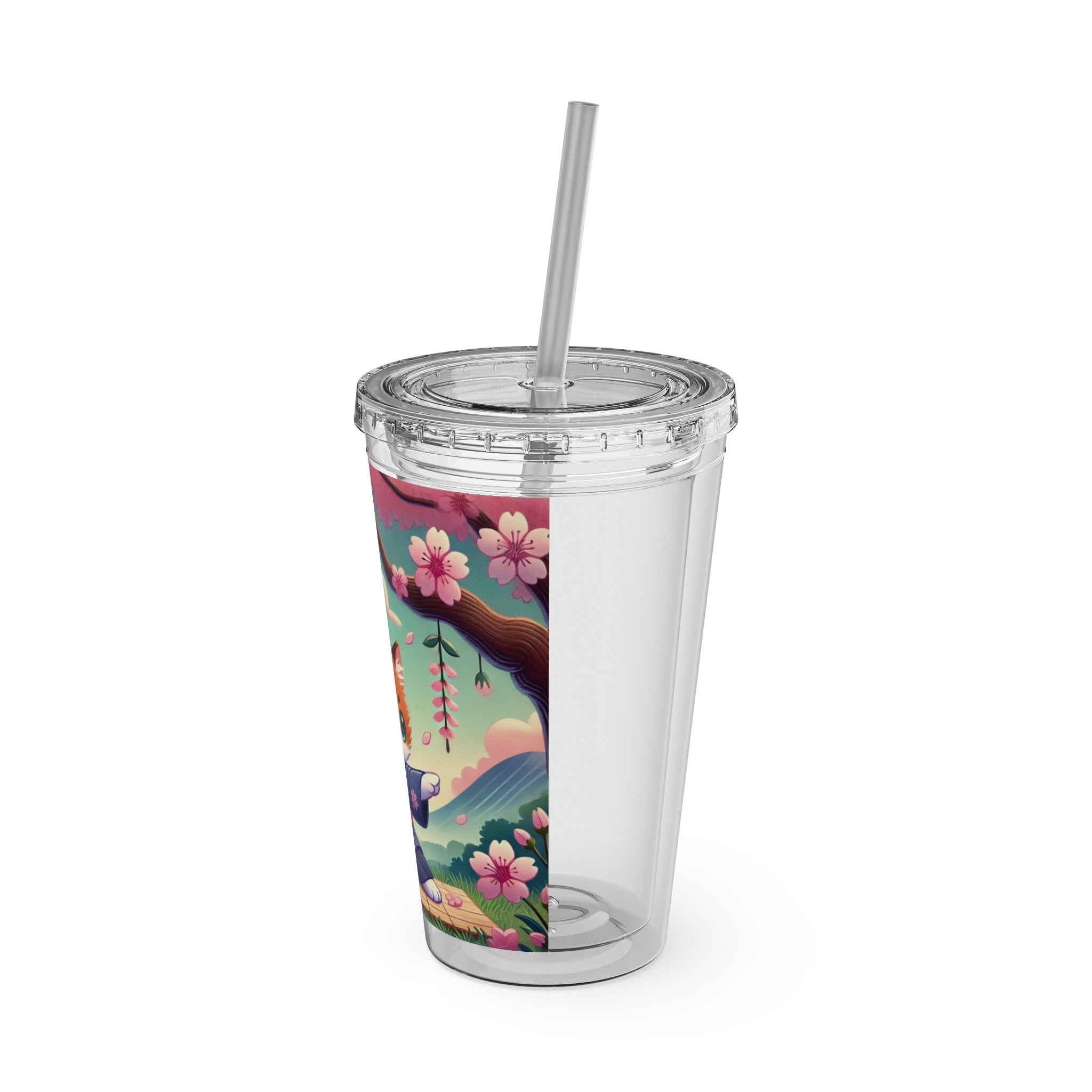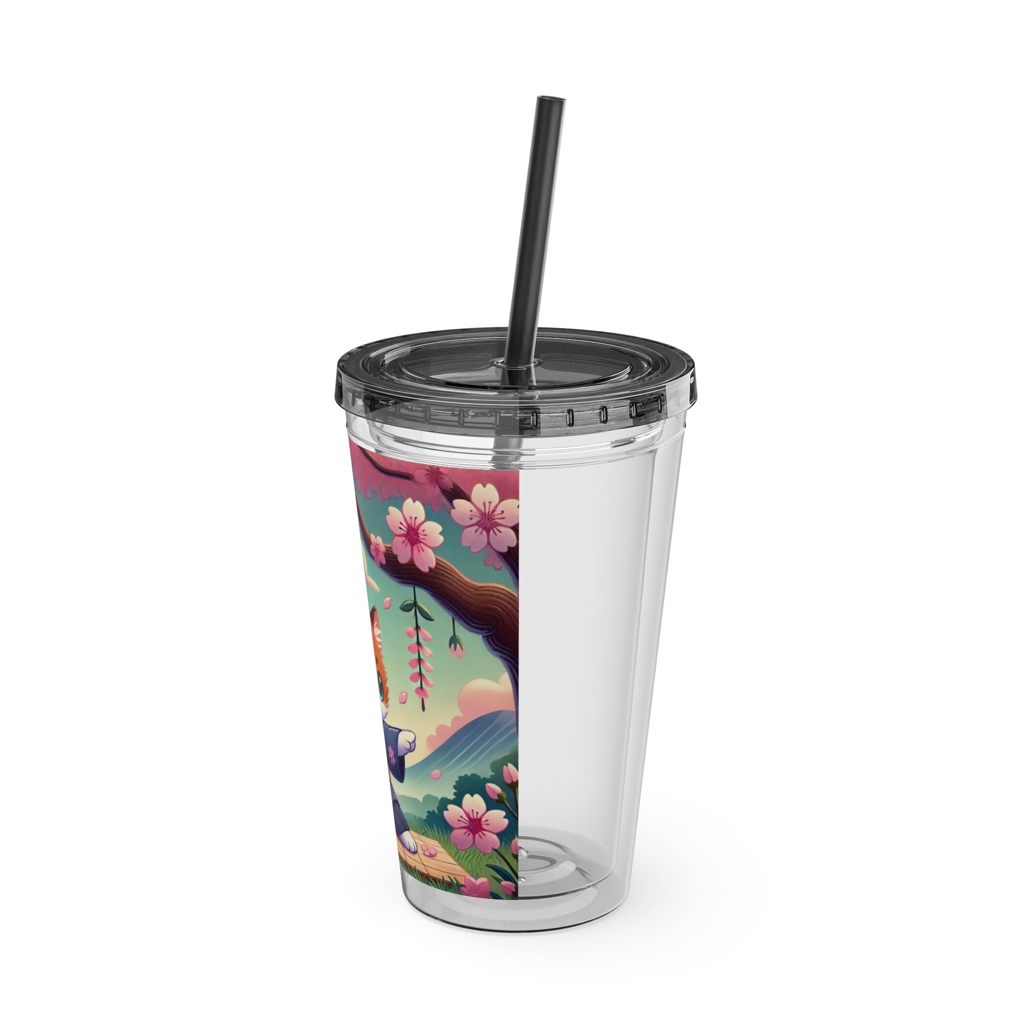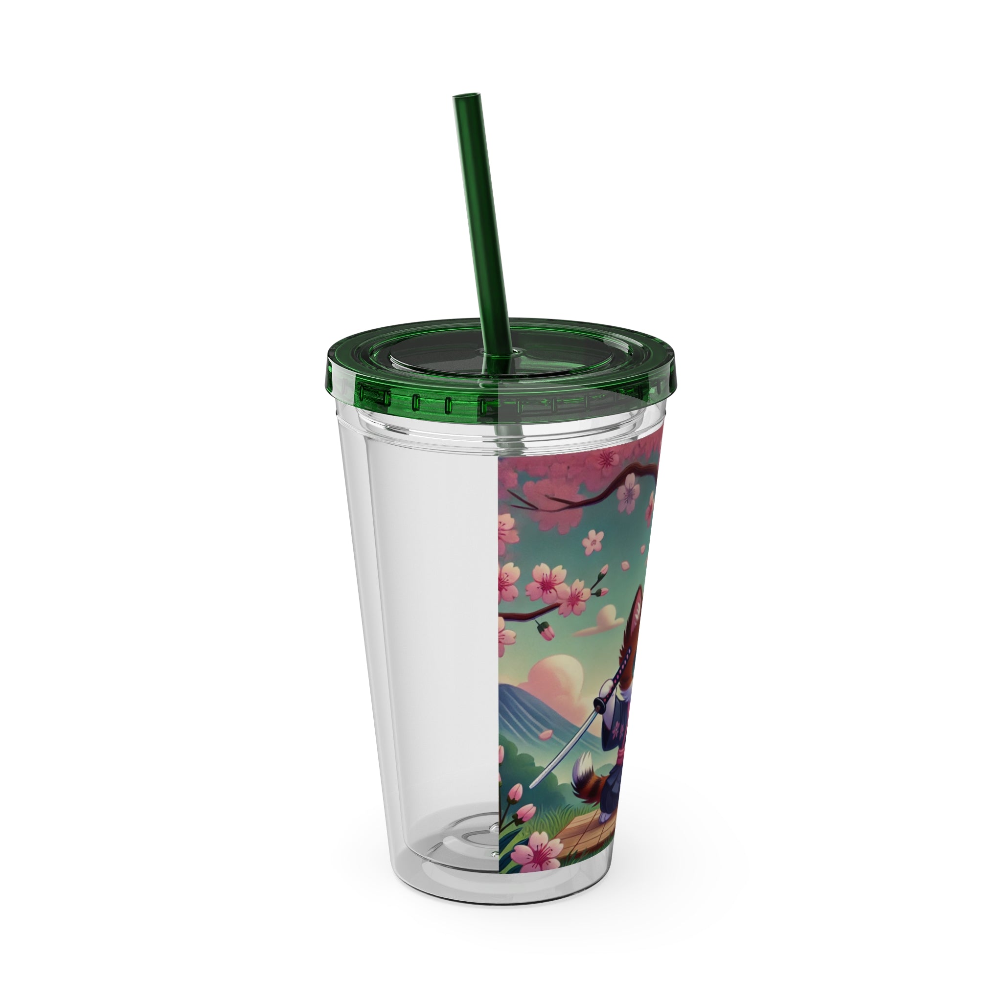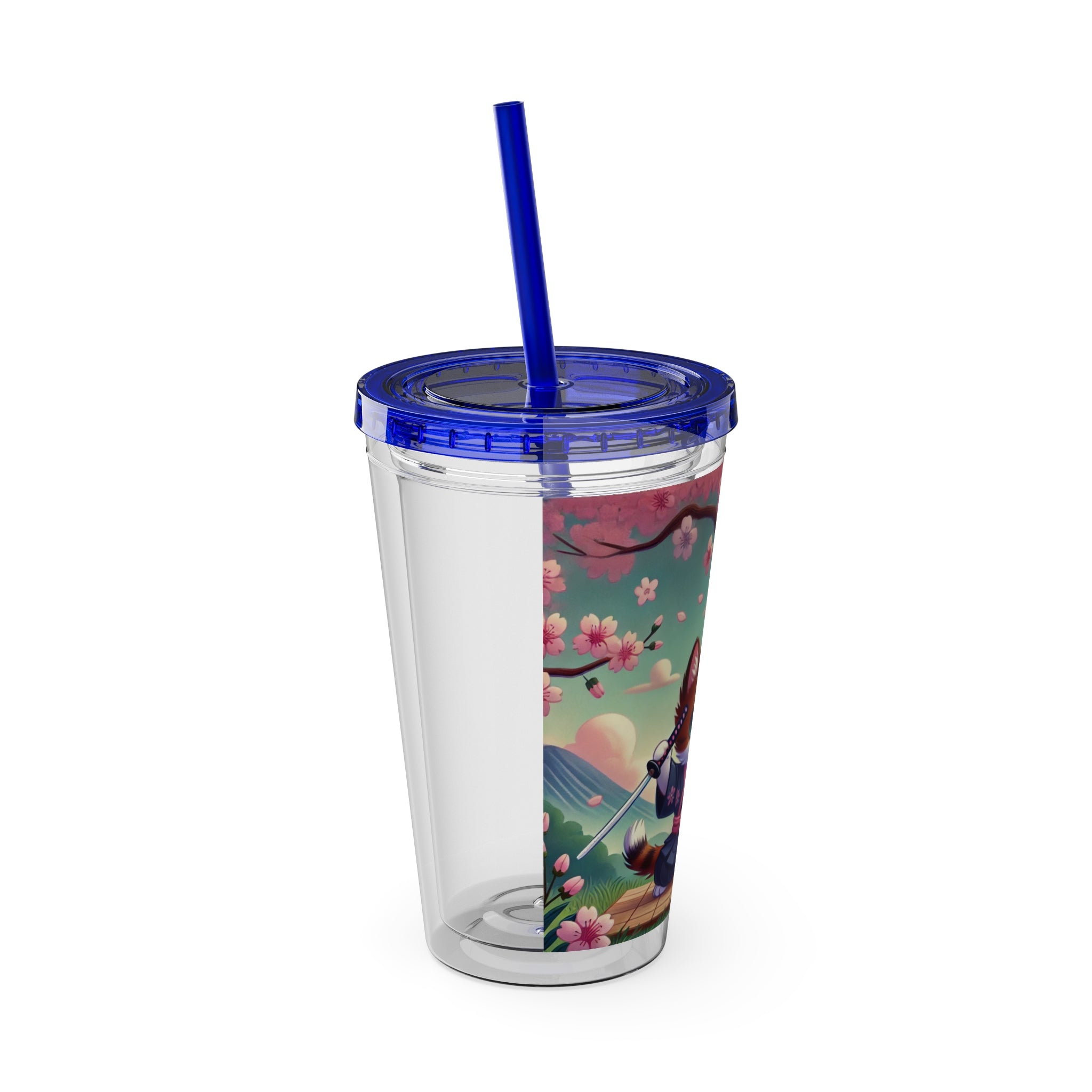 Stay refreshed in style with the Samurai Kitten Sunsplash Tumbler. Featuring a whimsical artwork of a skilled kitten dressed in a traditional samurai kimono, gracefully practicing precise sword techniques under a blooming cherry blossom tree, this design blends strength with serenity. Soft pink petals drift through the air, adding a peaceful yet dynamic touch to this everyday essential.