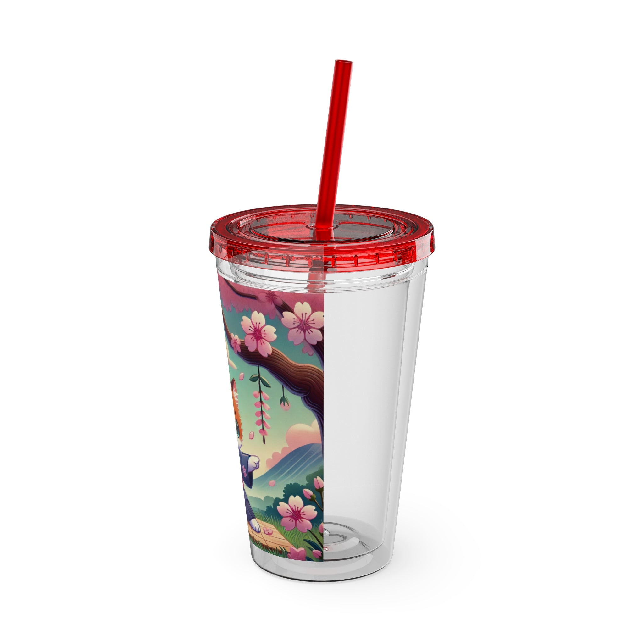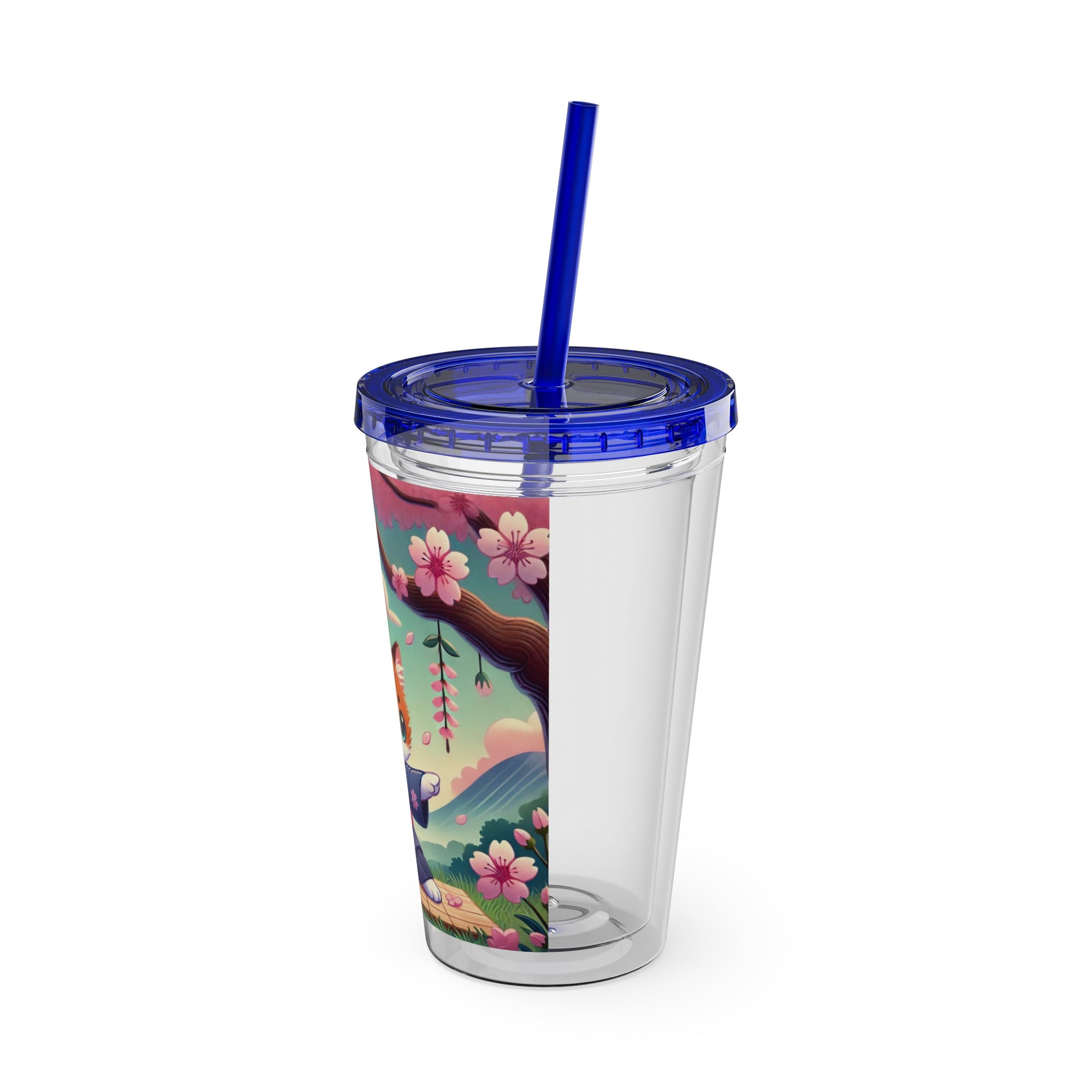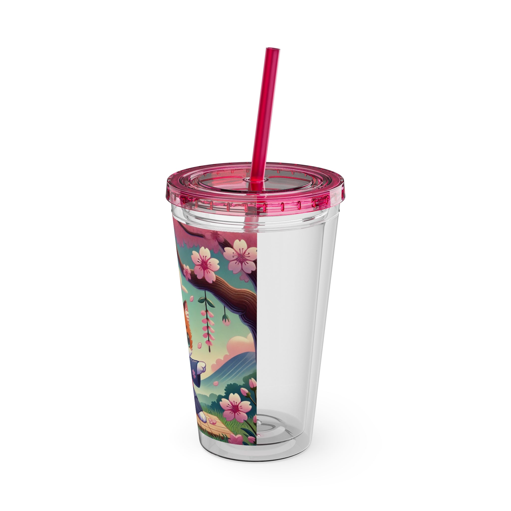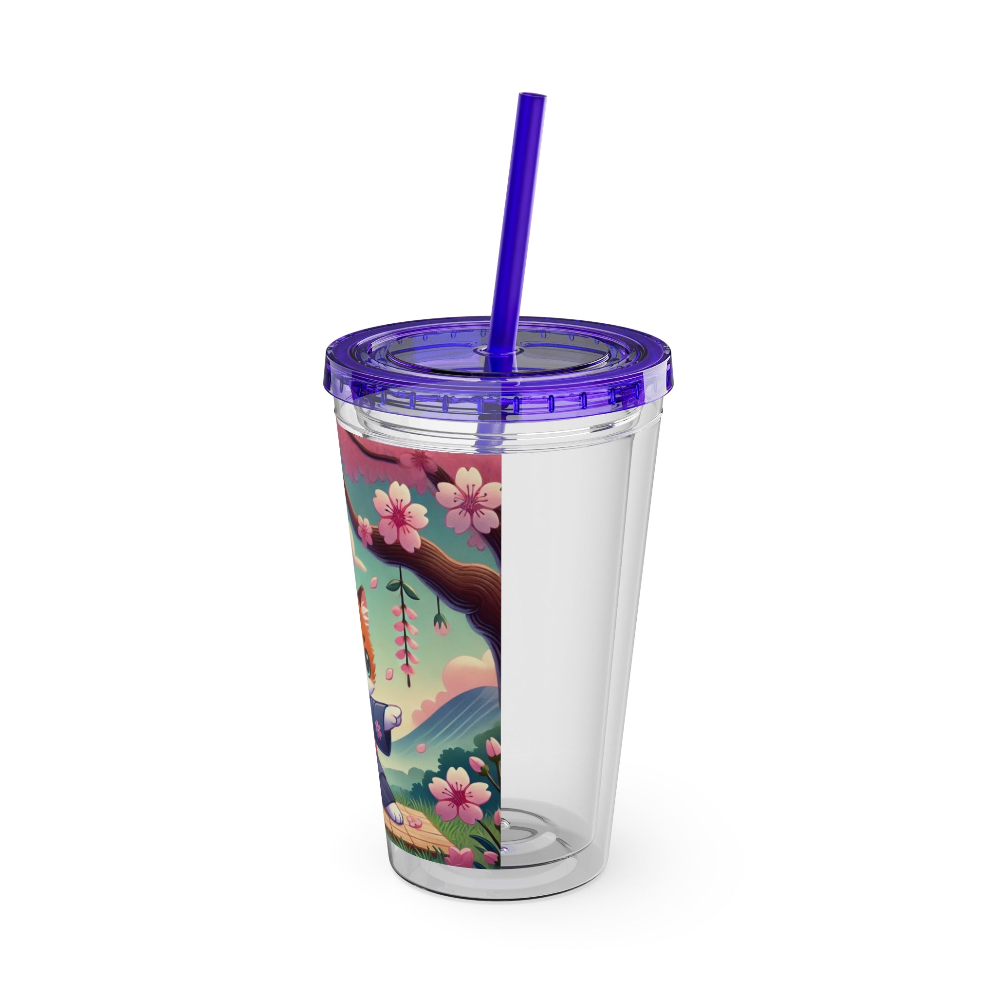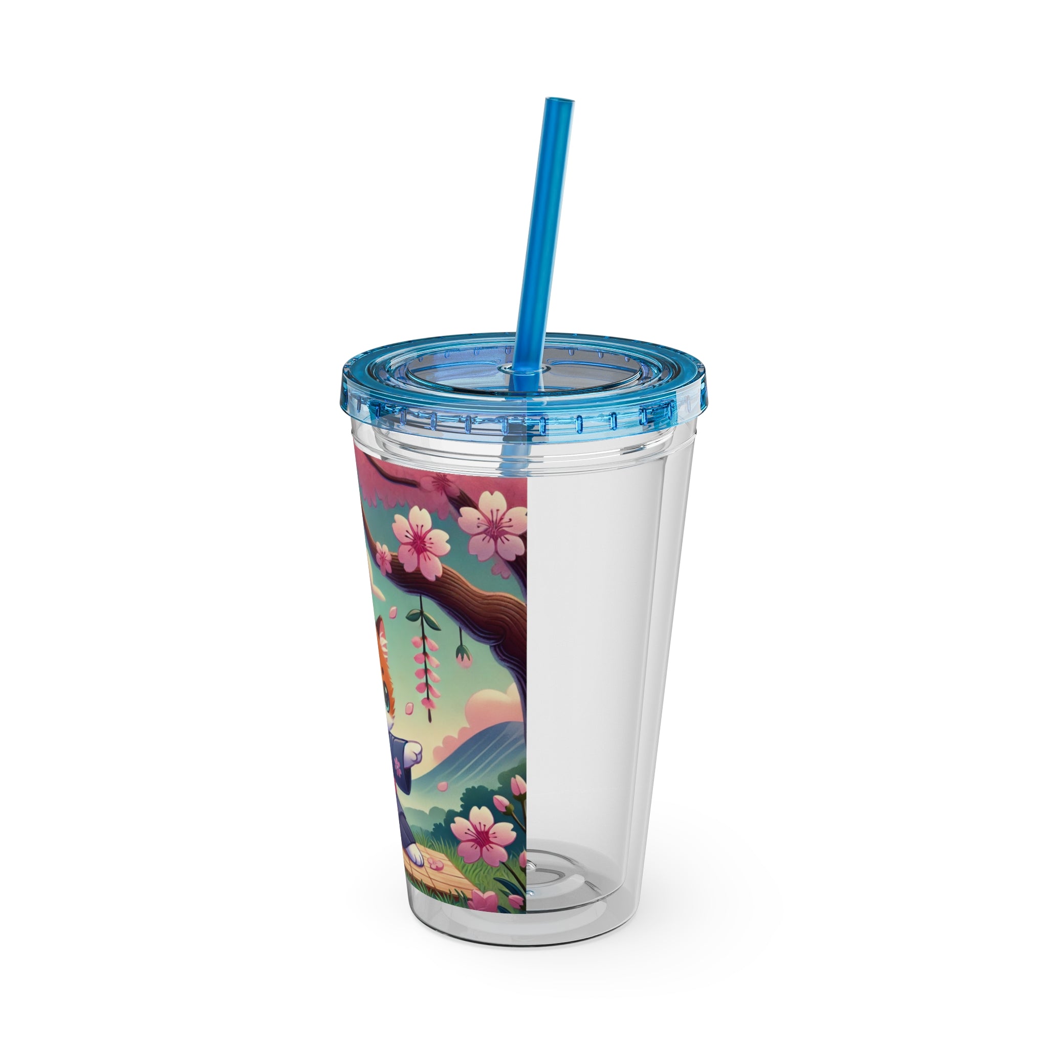 Stay refreshed in style with the Samurai Kitten Sunsplash Tumbler. Featuring a whimsical artwork of a skilled kitten dressed in a traditional samurai kimono, gracefully practicing precise sword techniques under a blooming cherry blossom tree, this design blends strength with serenity. Soft pink petals drift through the air, adding a peaceful yet dynamic touch to this everyday essential.