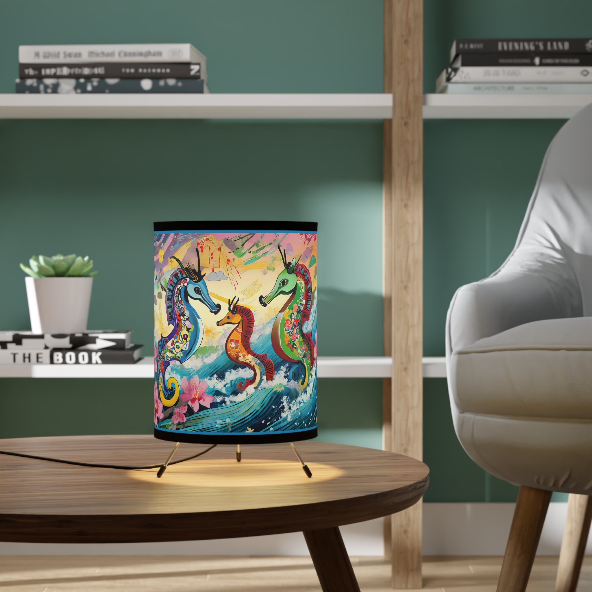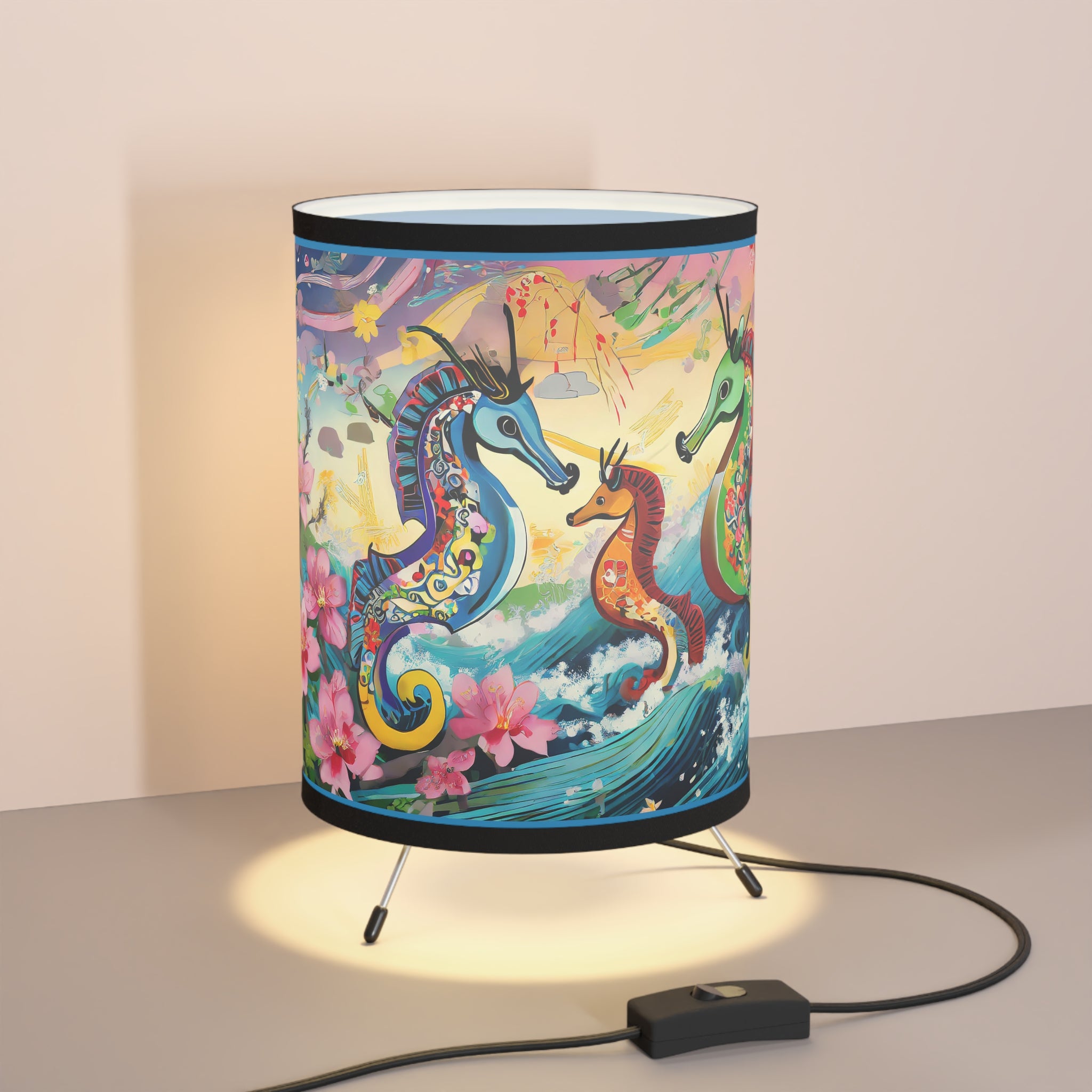Transform your room with this epic tripod lamp! This sturdy lamp has a cool metal base, and the best part? It comes with an awesome pre-designed artwork for the shade! The high-resolution image is super vibrant, so your favorite design will light up your space in style. This lamp isn't just for lighting, it's a statement piece that lets you show off your personality. Light up your room and your imagination with this must-have lamp!